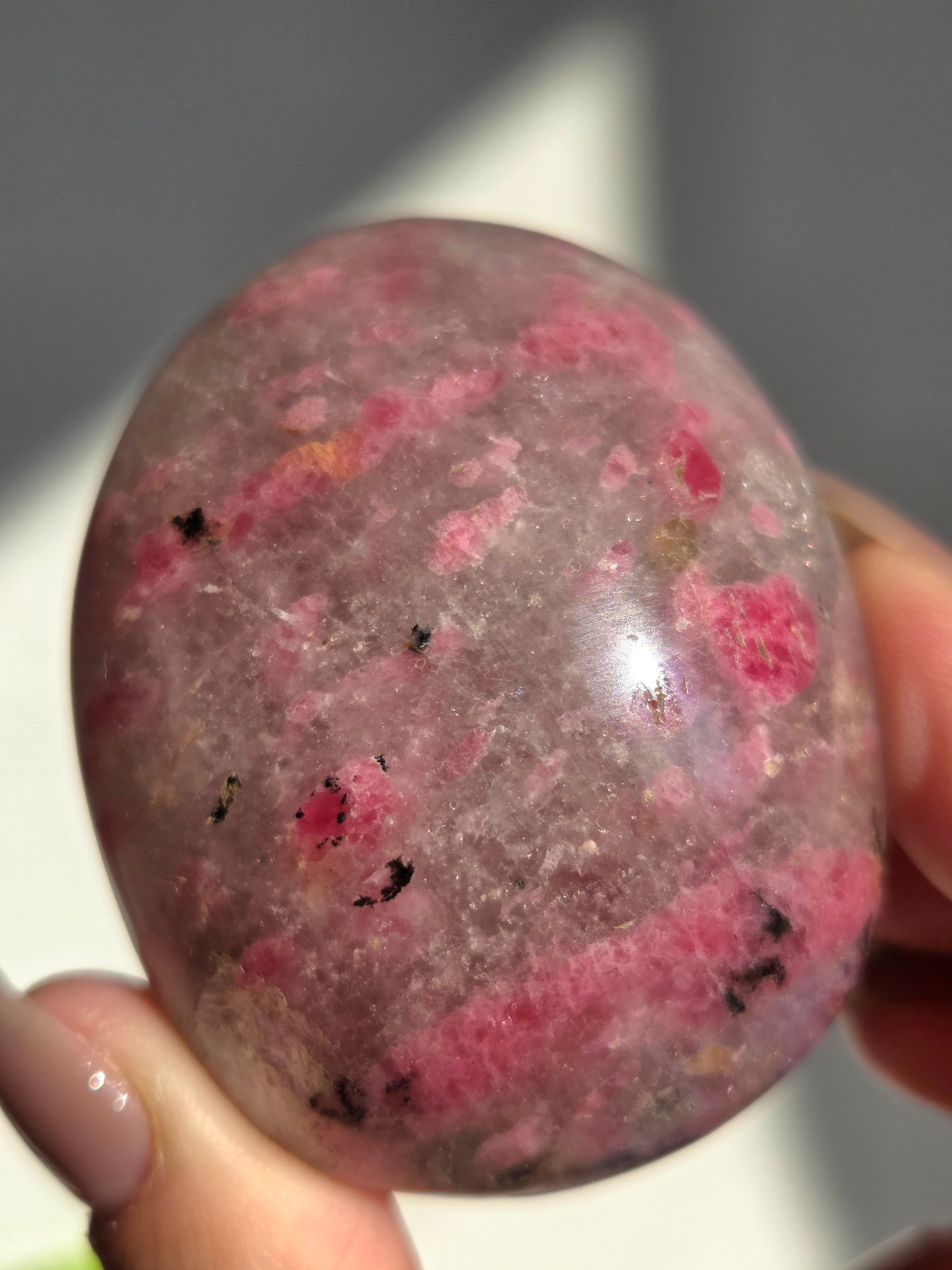 ロードナイトはマンガンの含有量によって、黒い部分が出ます。