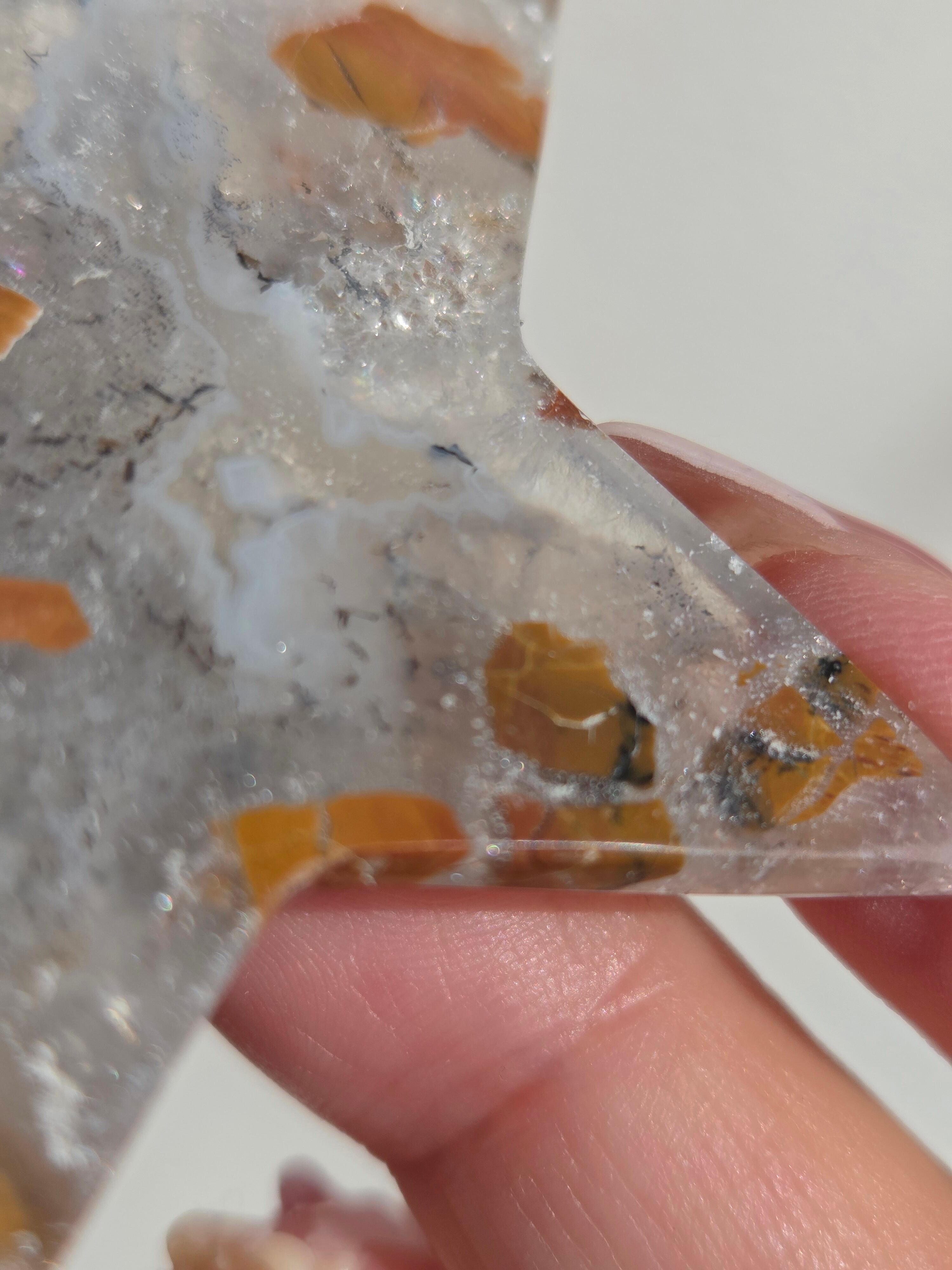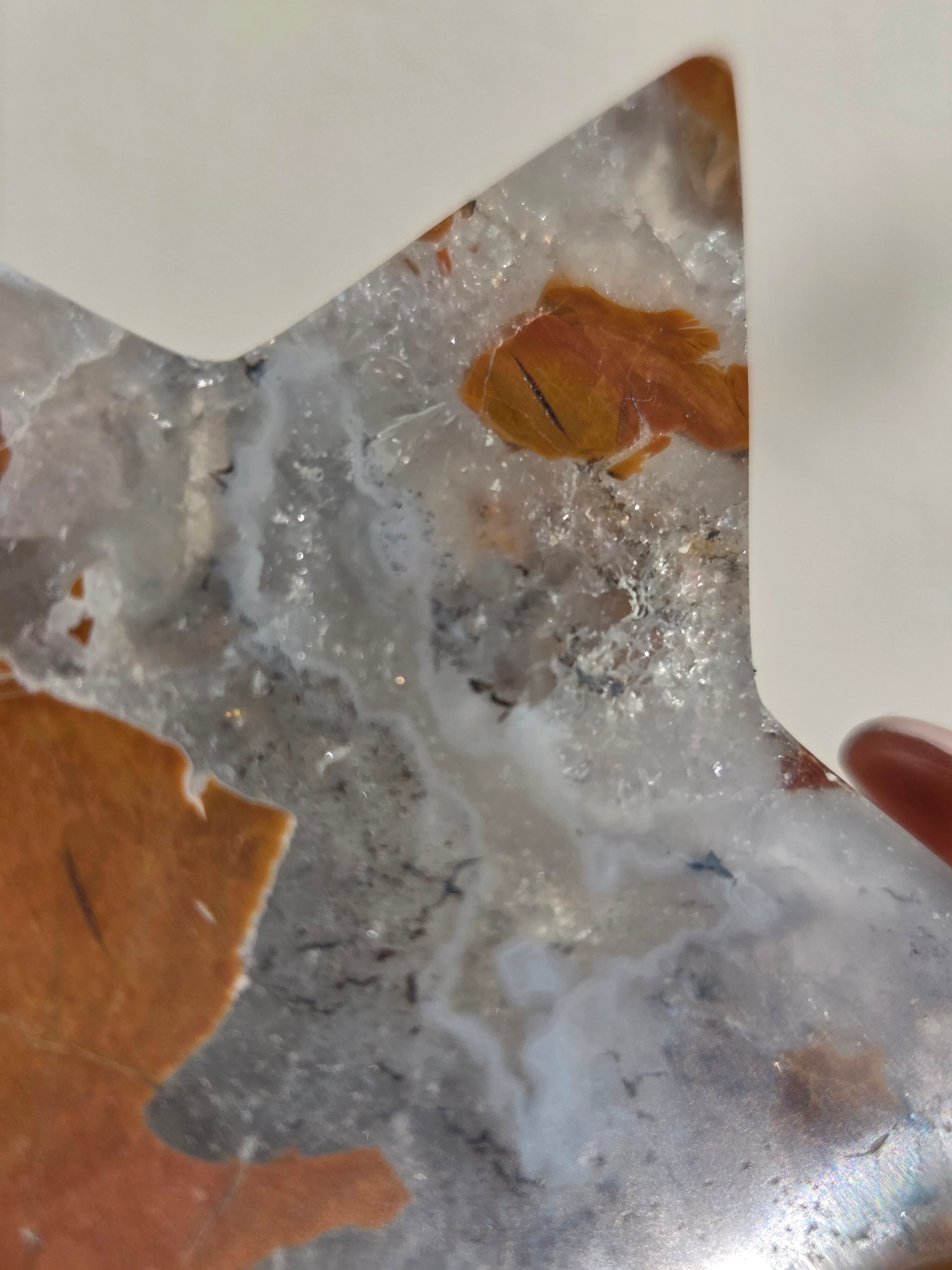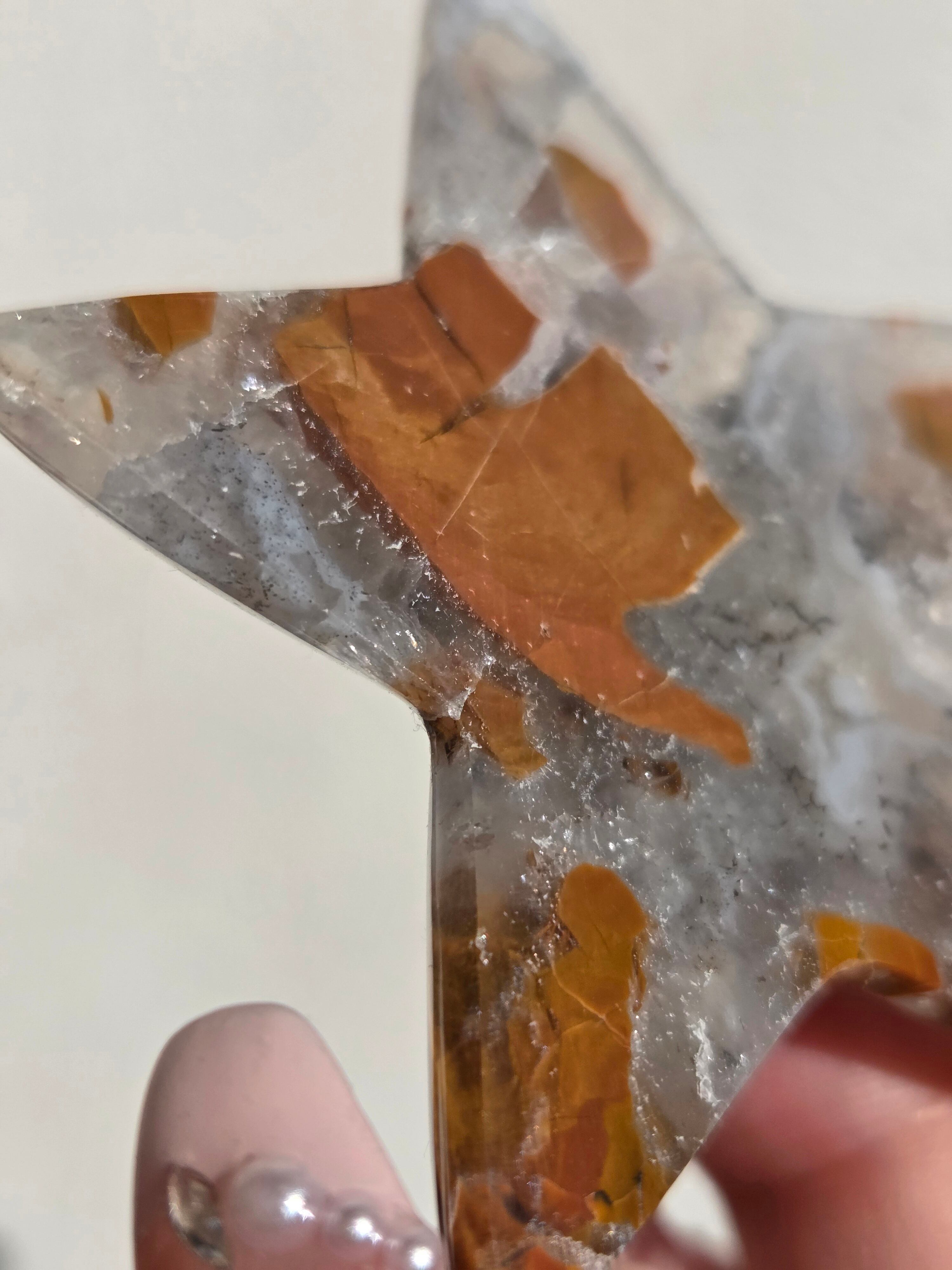オレンジカラーをメインに、合間からクォーツの煌めきが見えるスターカービングです。