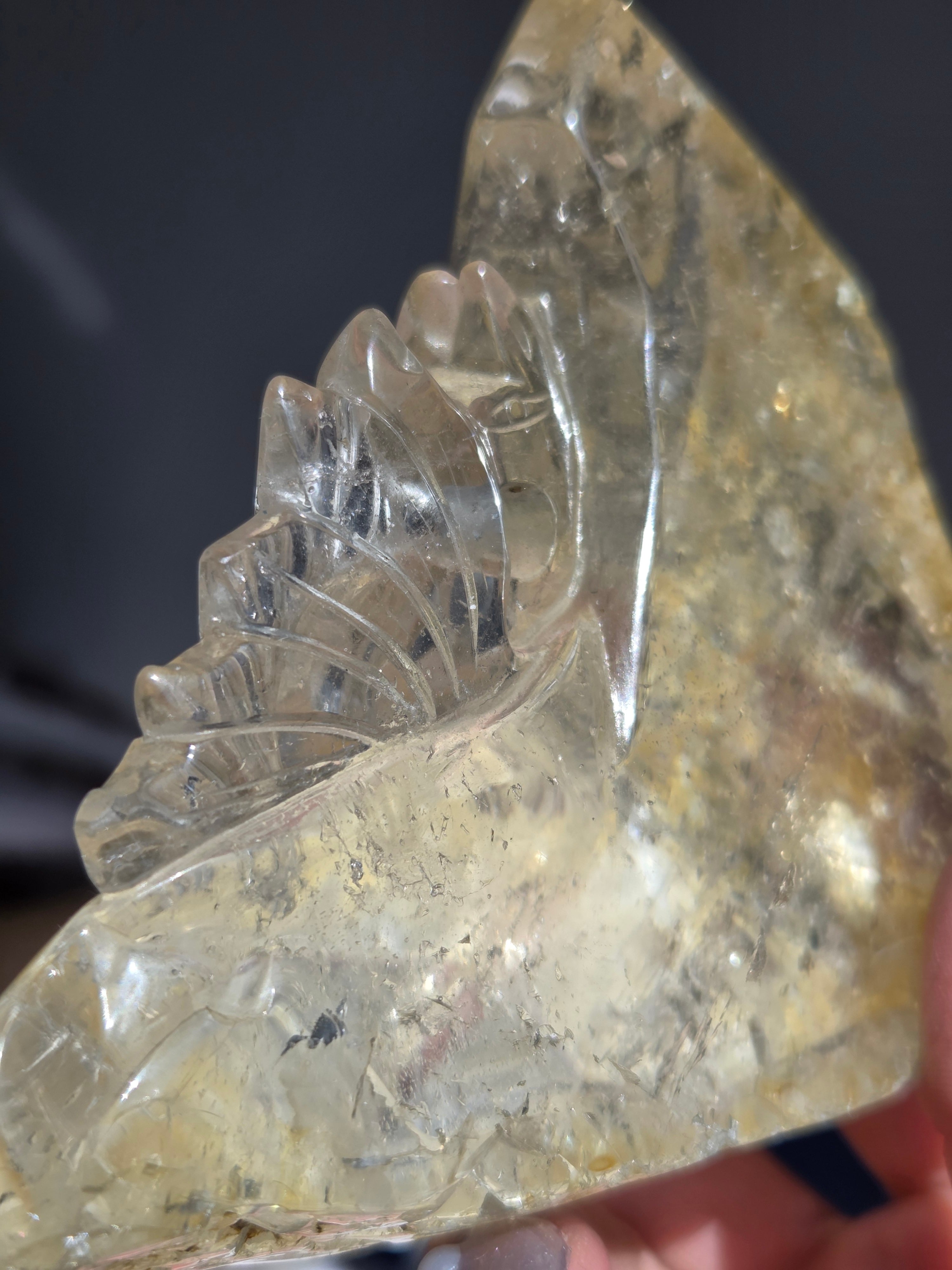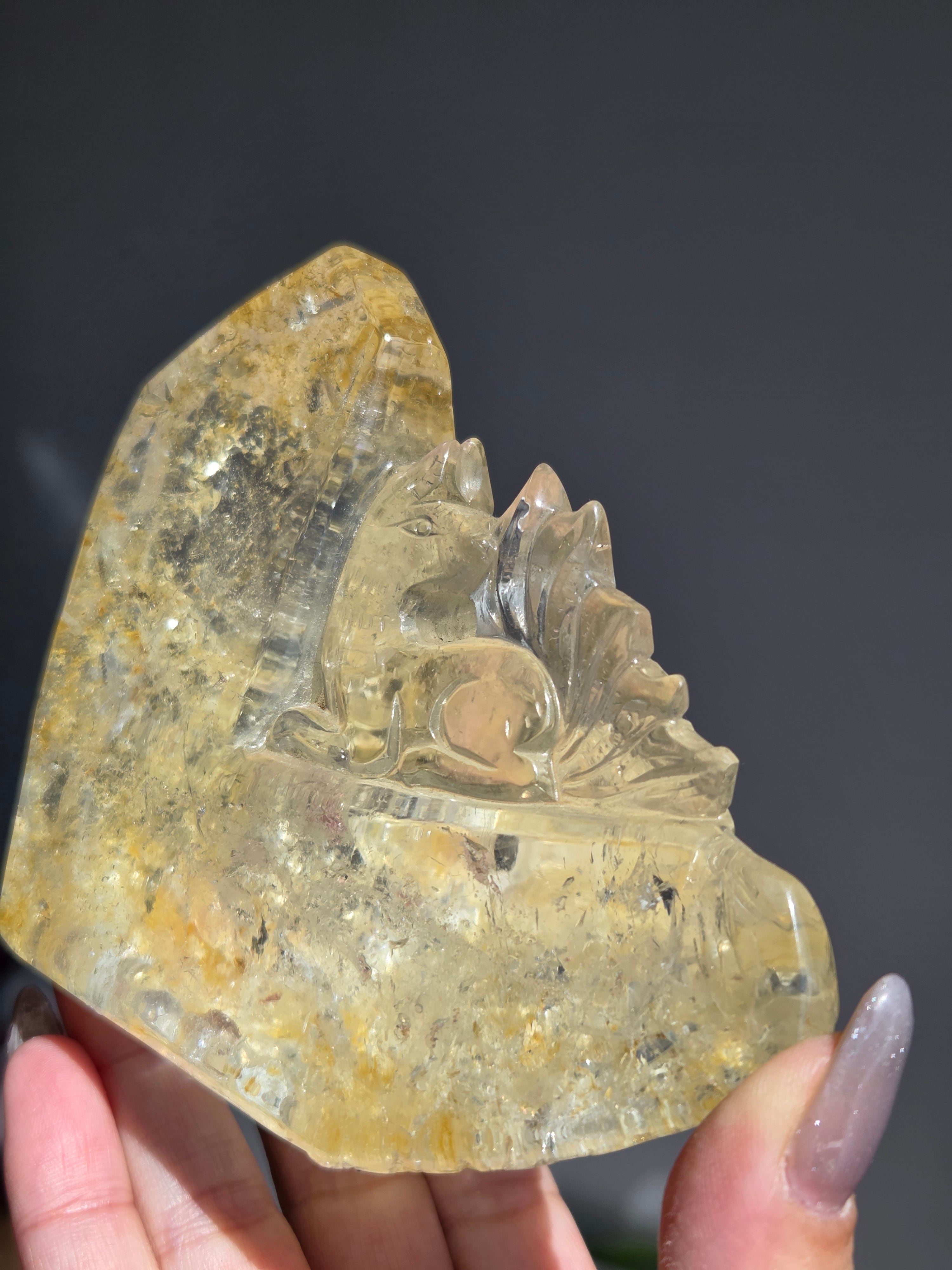 虹の煌めきと、シャンパンカラーが美しい九尾狐の彫り物です。