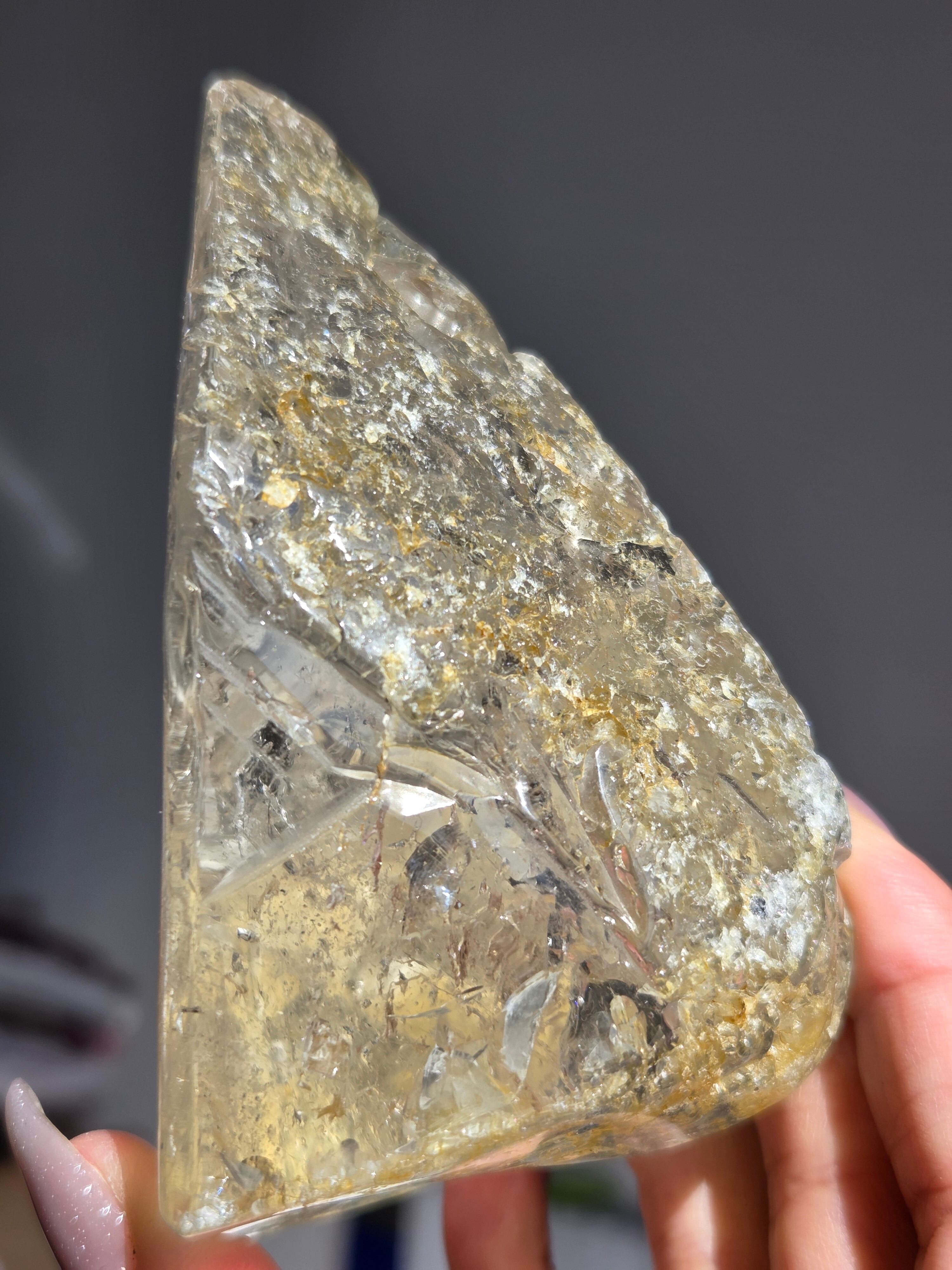 リモナイトインクォーツ(ライモナイトインクォーツ)は、水晶の亀裂(クラック)に鉄分(ライモナイト)が浸透し、赤や黄色に輝く石です。ネガティブな感情をポジティブへ変換し、やる気やモチベーションを高める強力なエネルギーを持つと言われています。別名「オーロラクォーツ」とも呼ばれ、創造力やビジネスのチャンスを引き寄せる効果が期待されています。