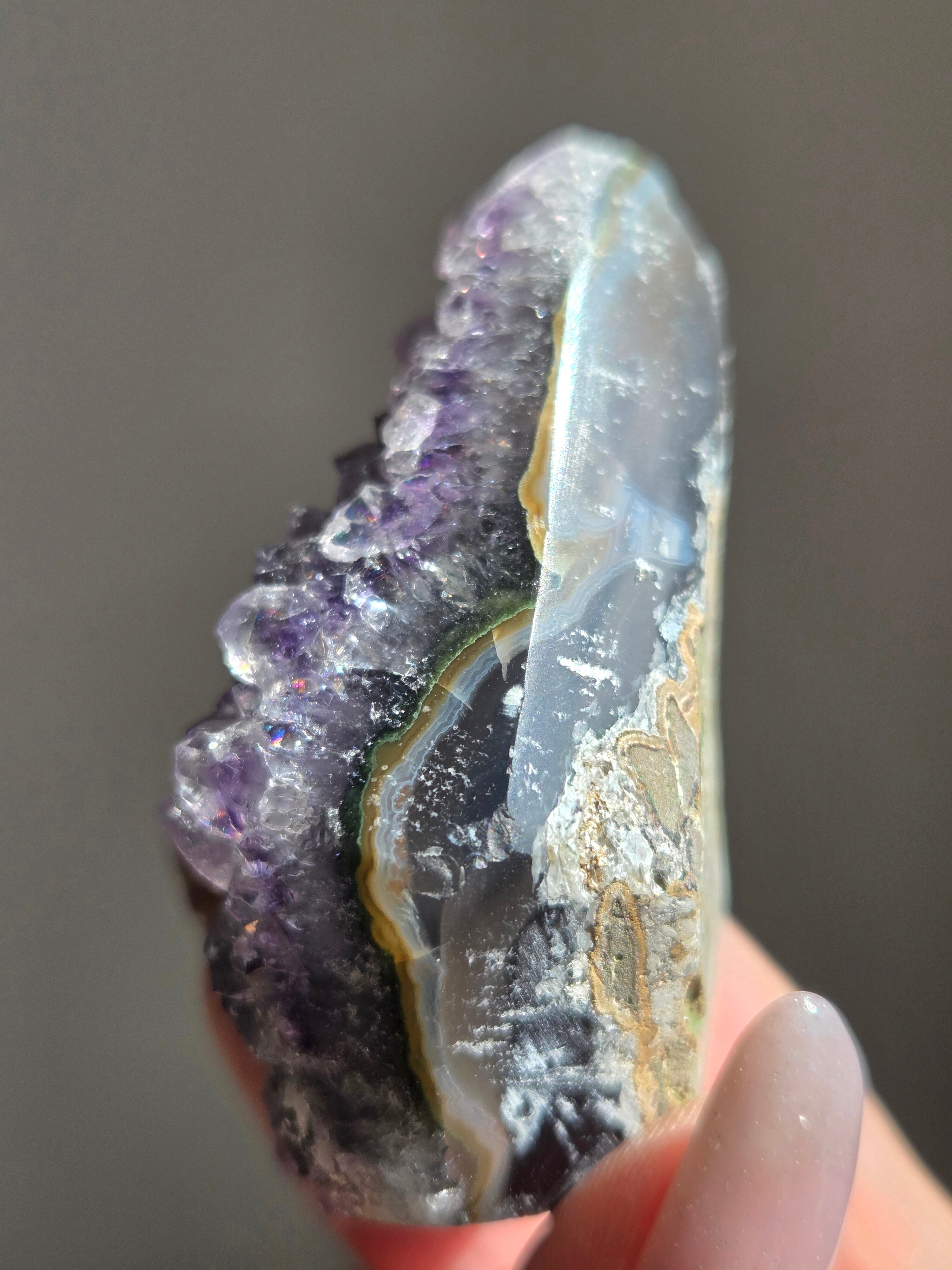 アメジスト(紫水晶)は、高い癒し効果と精神安定をもたらす強力なヒーリングストーンです。ストレス緩和、直感力・冷静な判断力の向上、真実の愛を守る恋愛成就、魔除けや浄化のパワーがあるとされています。不眠の解消や、人間関係の調和にも役立つ2月の誕生石です。