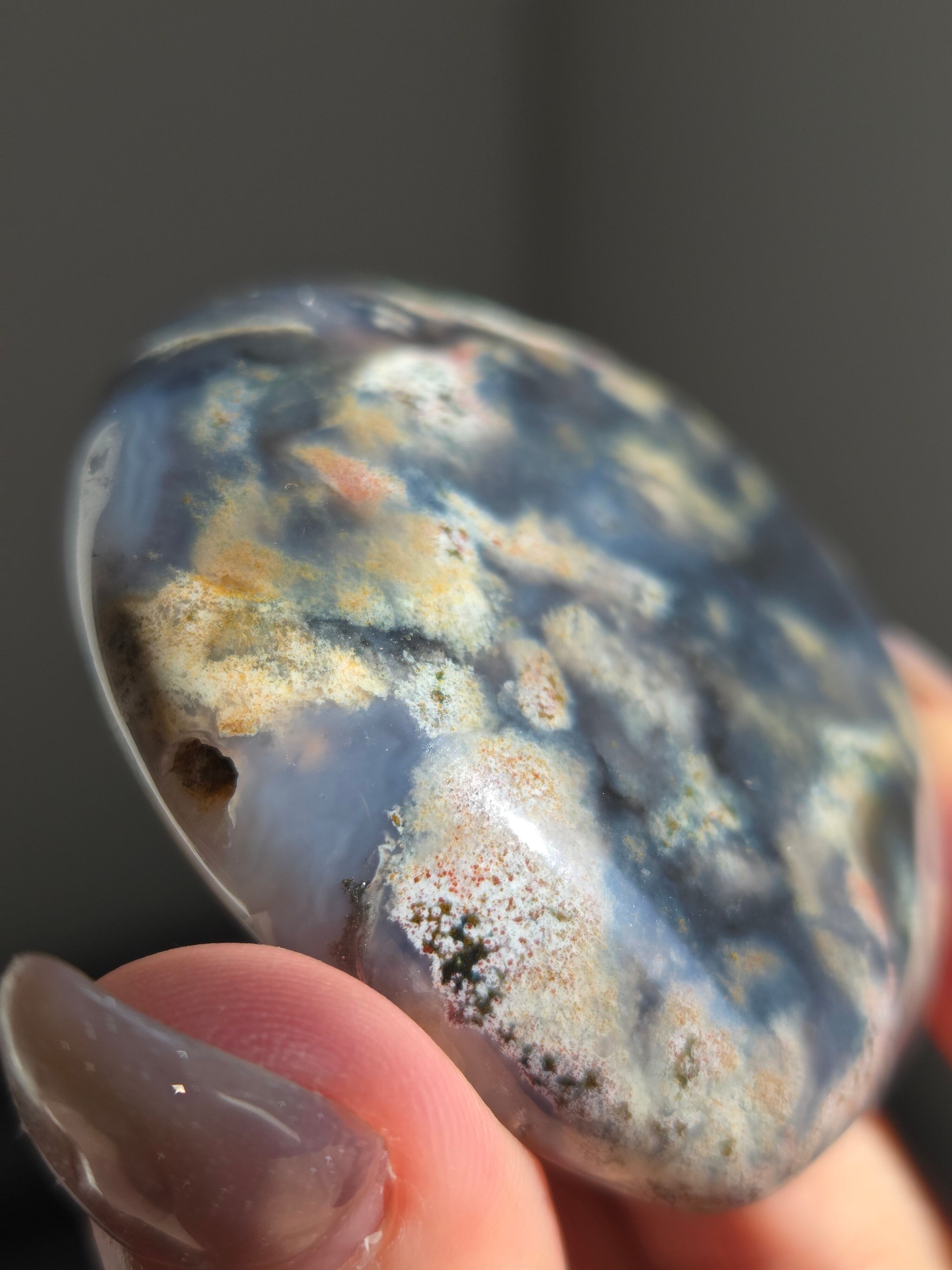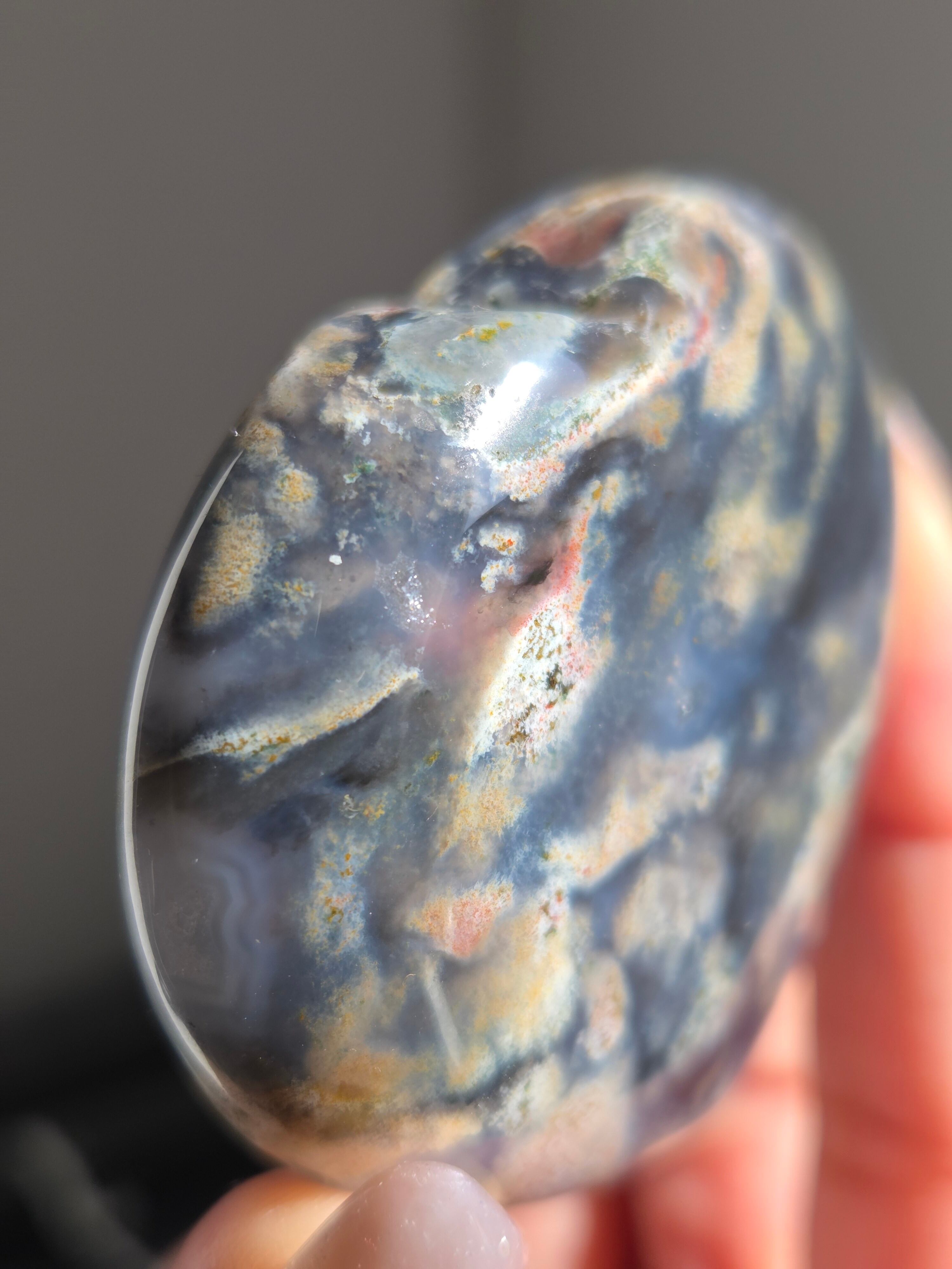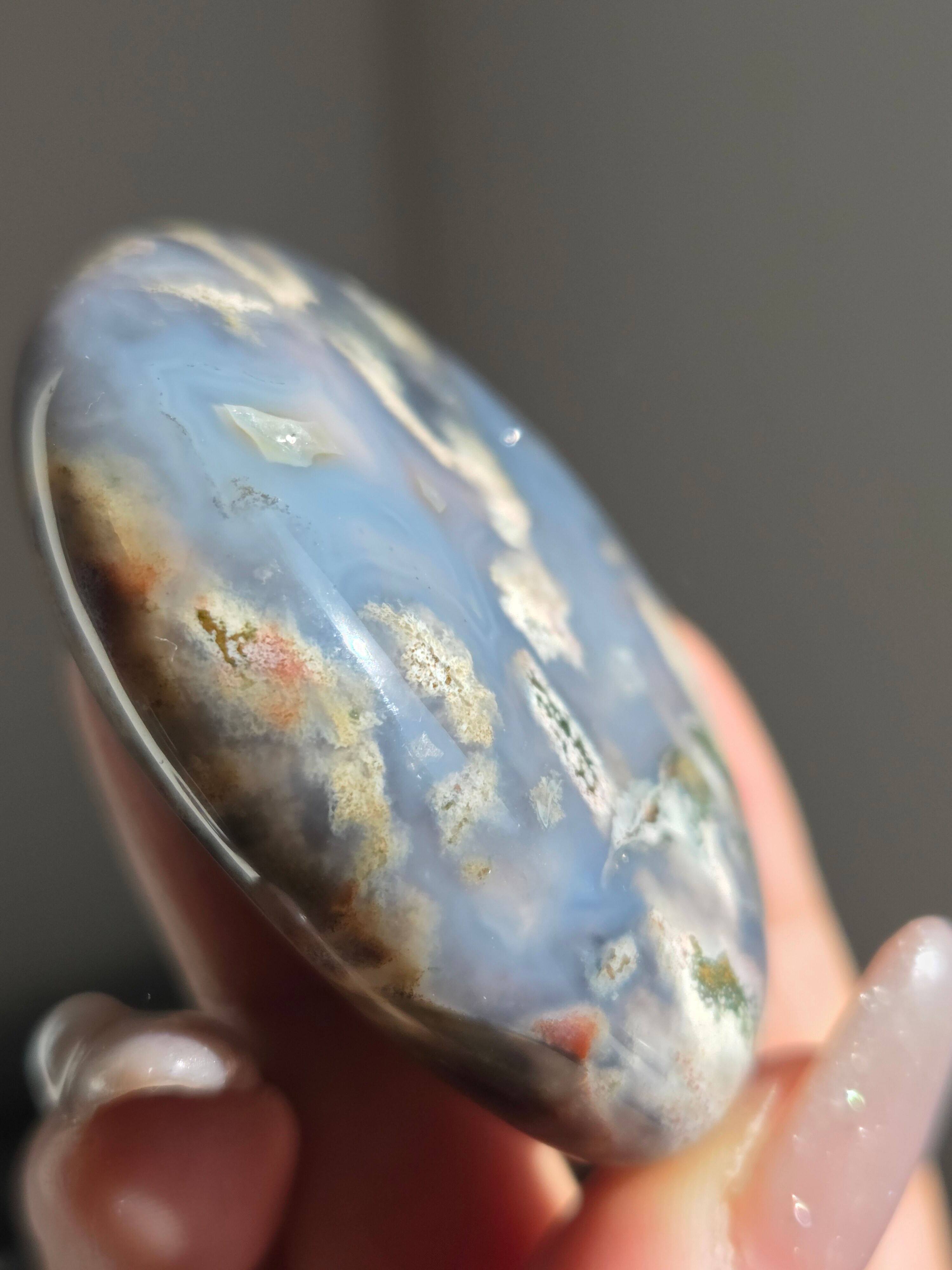 オーシャンジャスパーには高いヒーリング効果があると言われ、精神的な安心感や安定感をもたらし、悩みや問題などの解決へと導いてくれます。 包容力や奉仕の精神を養ってくれる石でもあります。 また、隠れた魅力・才能を引き出してくれる石でもあります。