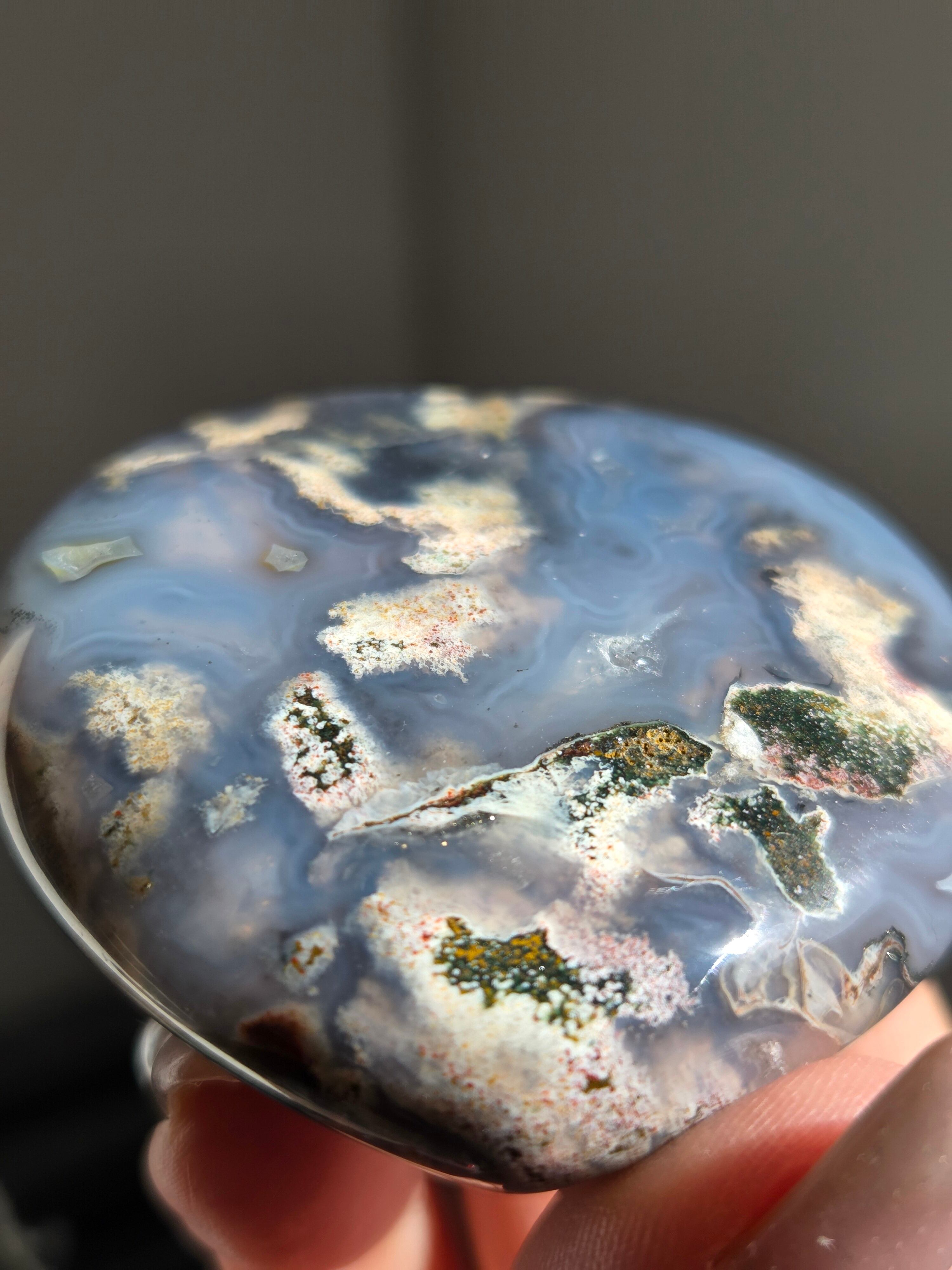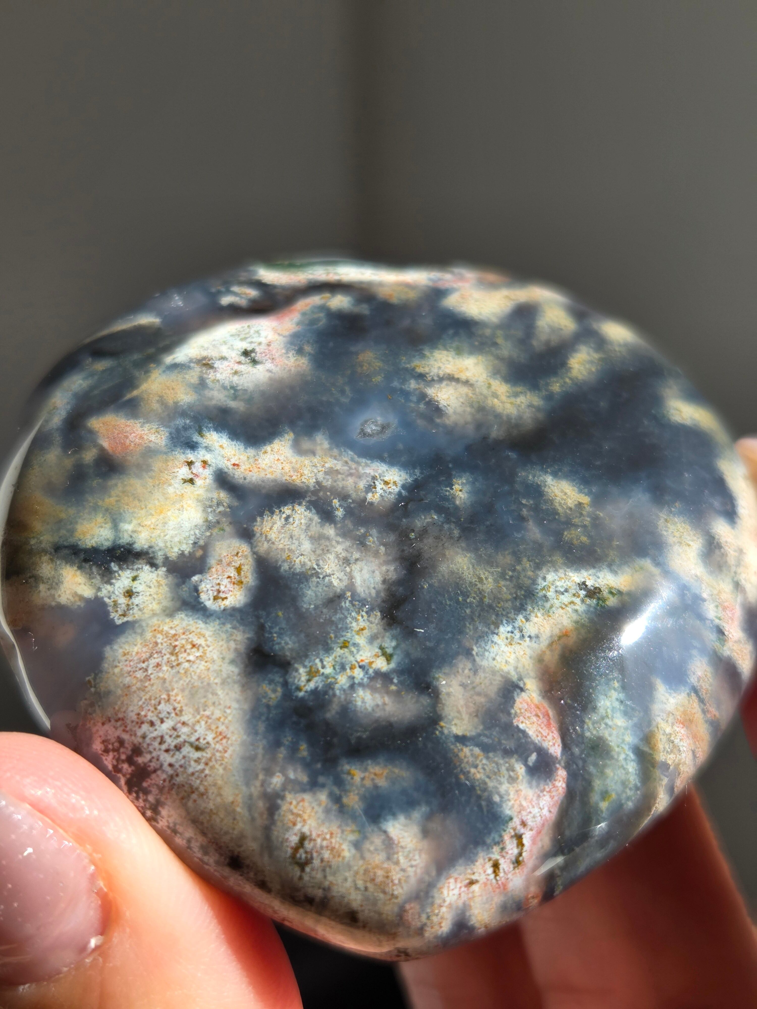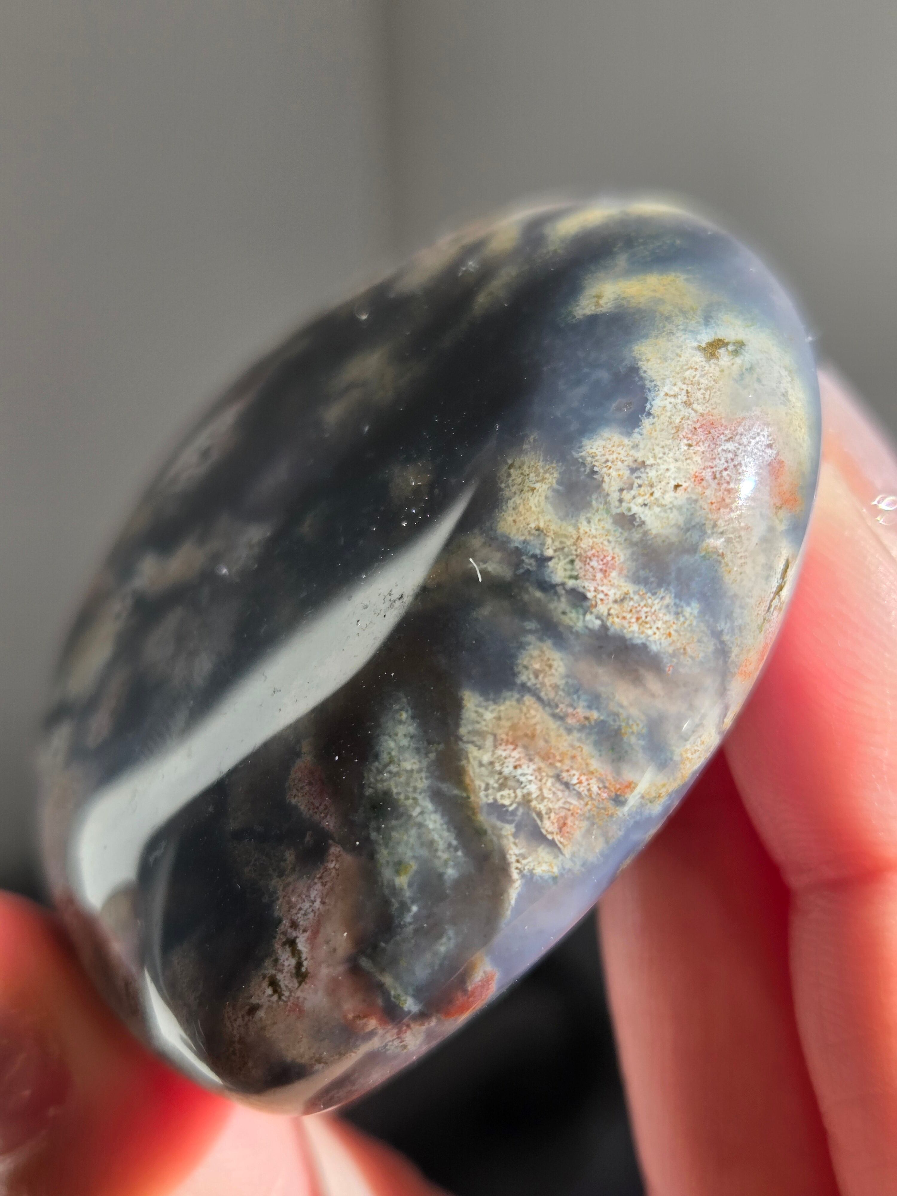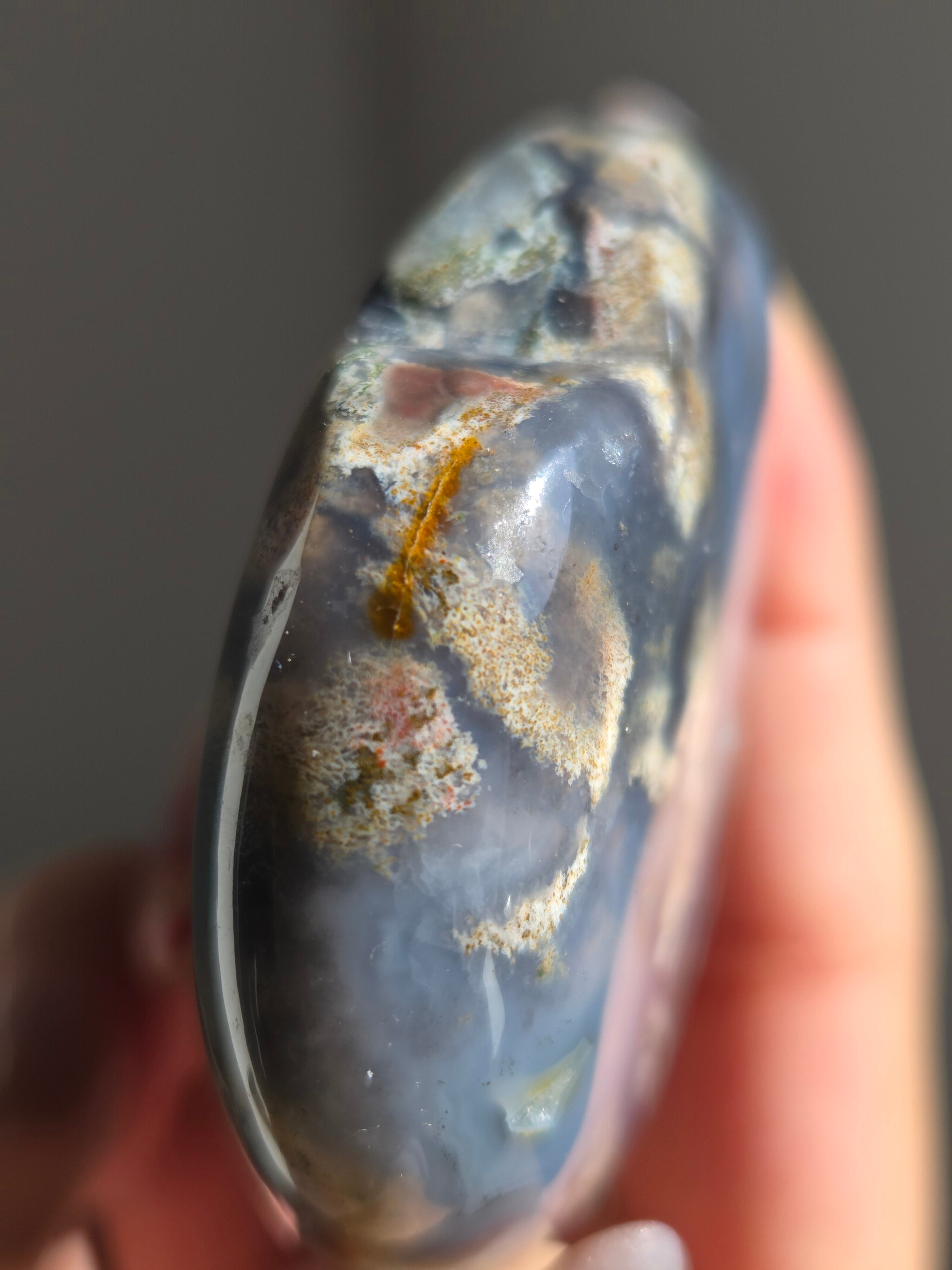 オーシャンジャスパーには高いヒーリング効果があると言われ、精神的な安心感や安定感をもたらし、悩みや問題などの解決へと導いてくれます。 包容力や奉仕の精神を養ってくれる石でもあります。 また、隠れた魅力・才能を引き出してくれる石でもあります。