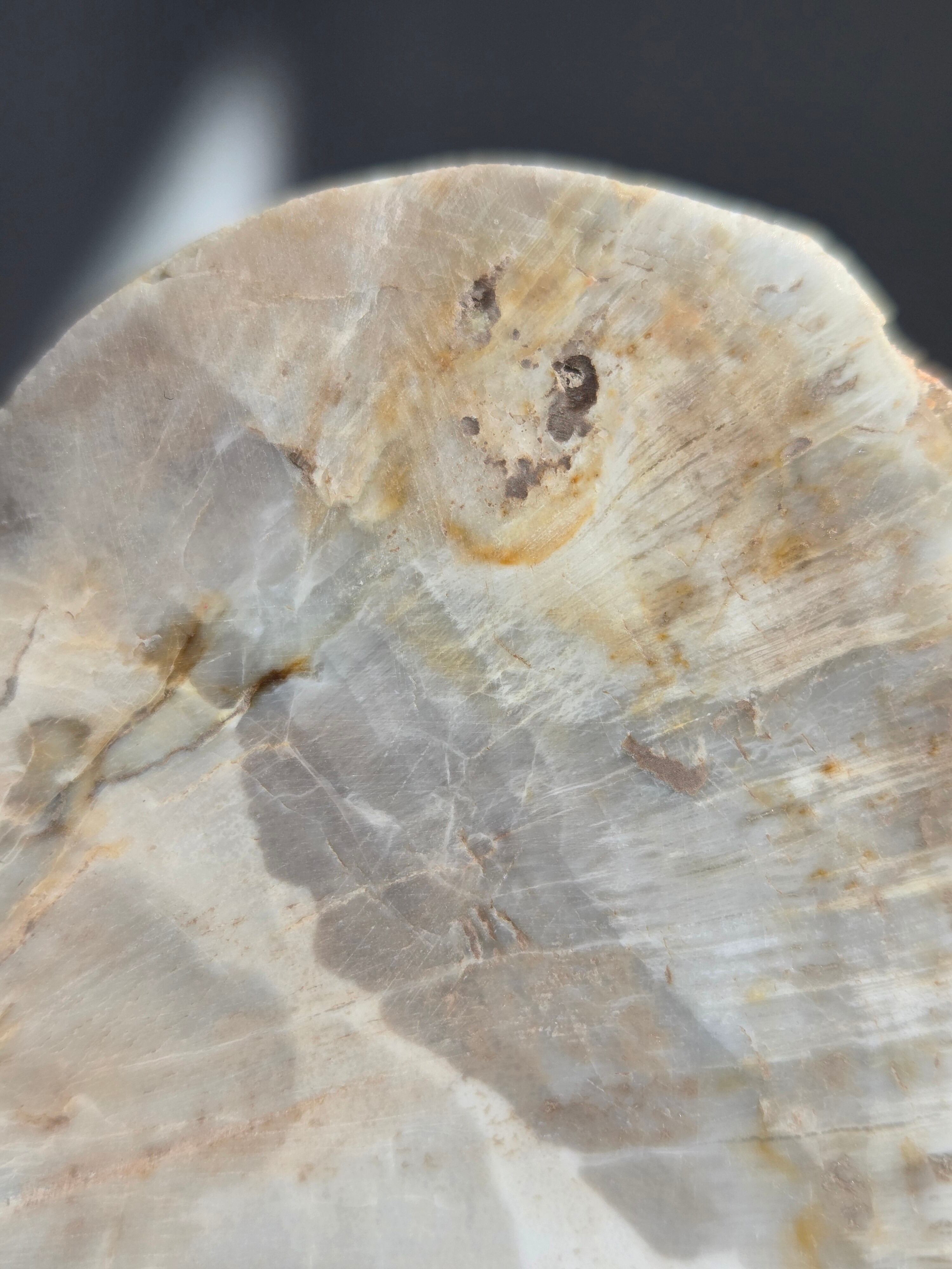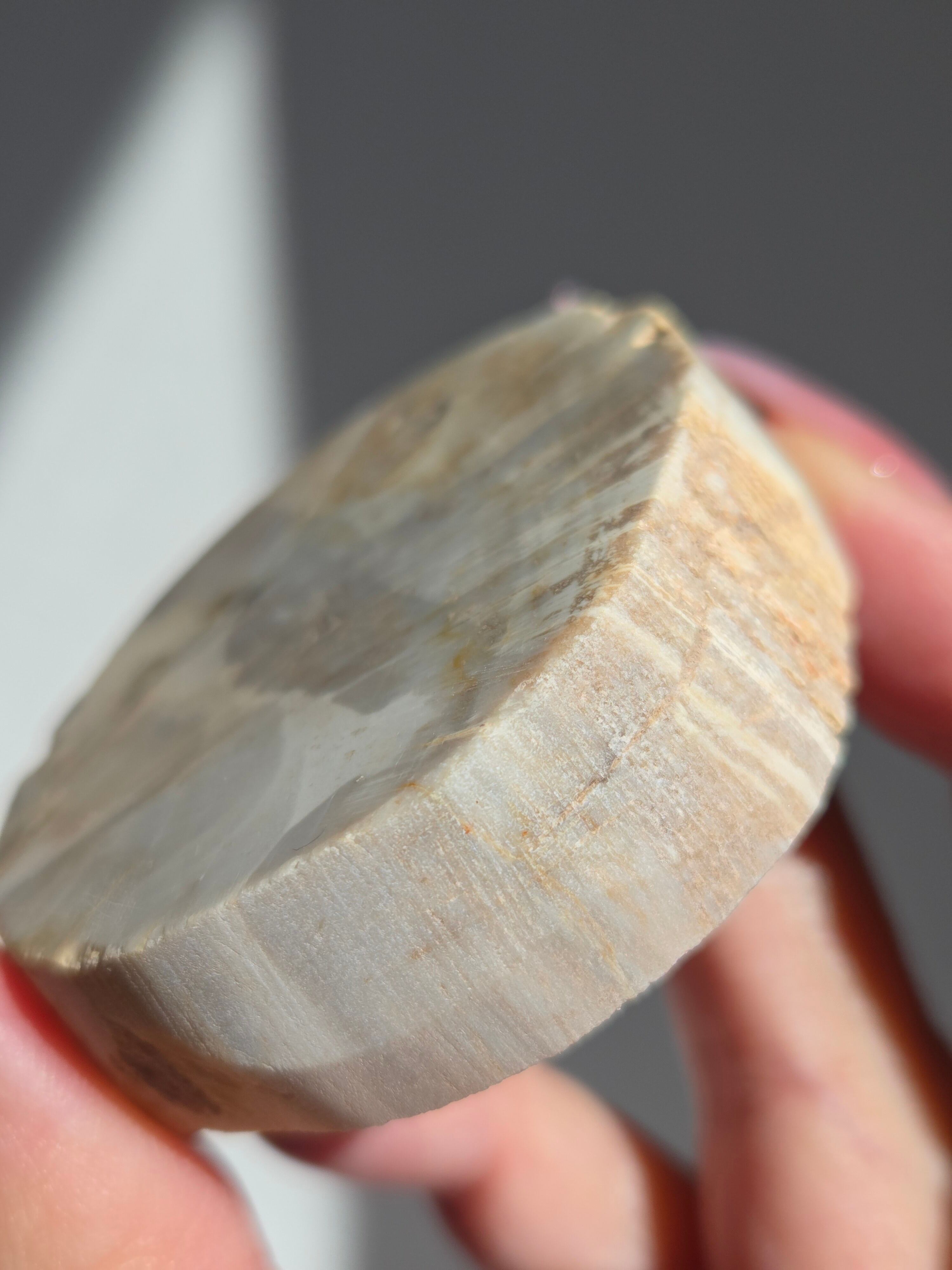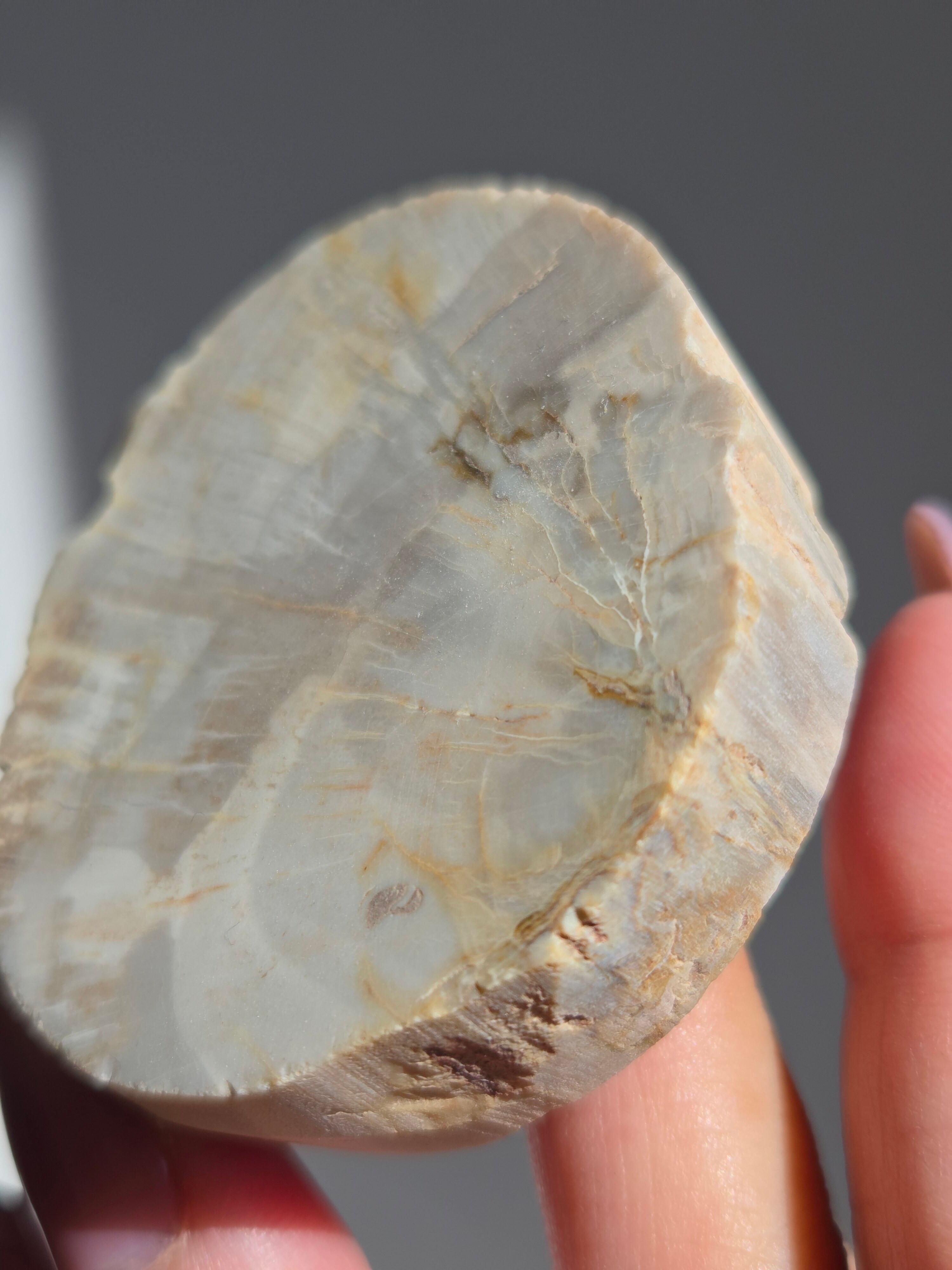 珪化木(けいかぼく)とは、地中に埋没した樹木が、珪酸分を含む地下水によって、木の組織が石英や玉髄などの鉱物に置き換わって化石になったものです。珪化木は「木の化石」とも呼ばれ、硬く、木材の微細な構造や年輪が残っていることもあります。馴染みやすい自然の雰囲気が素敵です。