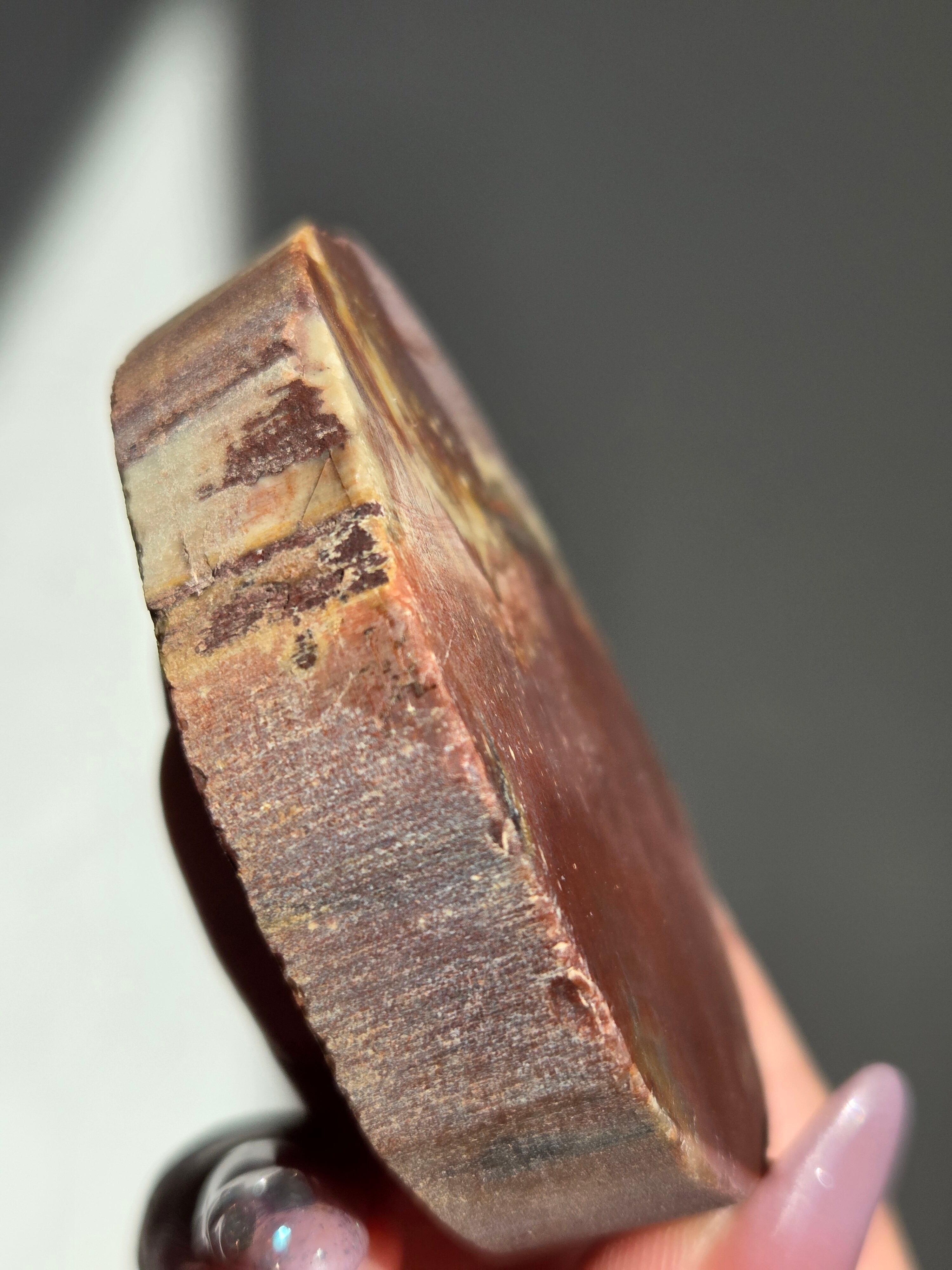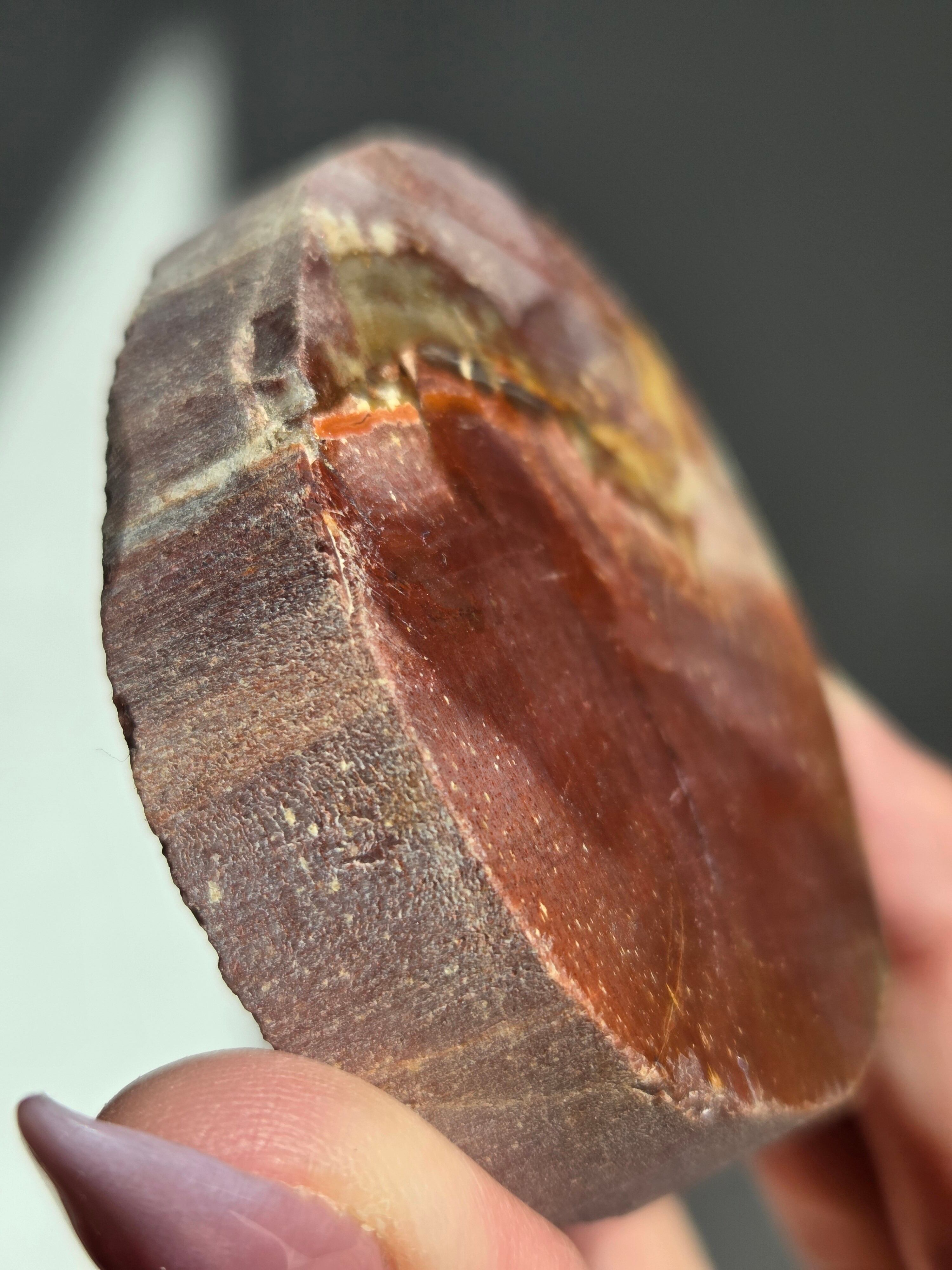 珪化木(けいかぼく)とは、地中に埋没した樹木が、珪酸分を含む地下水によって、木の組織が石英や玉髄などの鉱物に置き換わって化石になったものです。珪化木は「木の化石」とも呼ばれ、硬く、木材の微細な構造や年輪が残っていることもあります。馴染みやすい自然の雰囲気が素敵です。