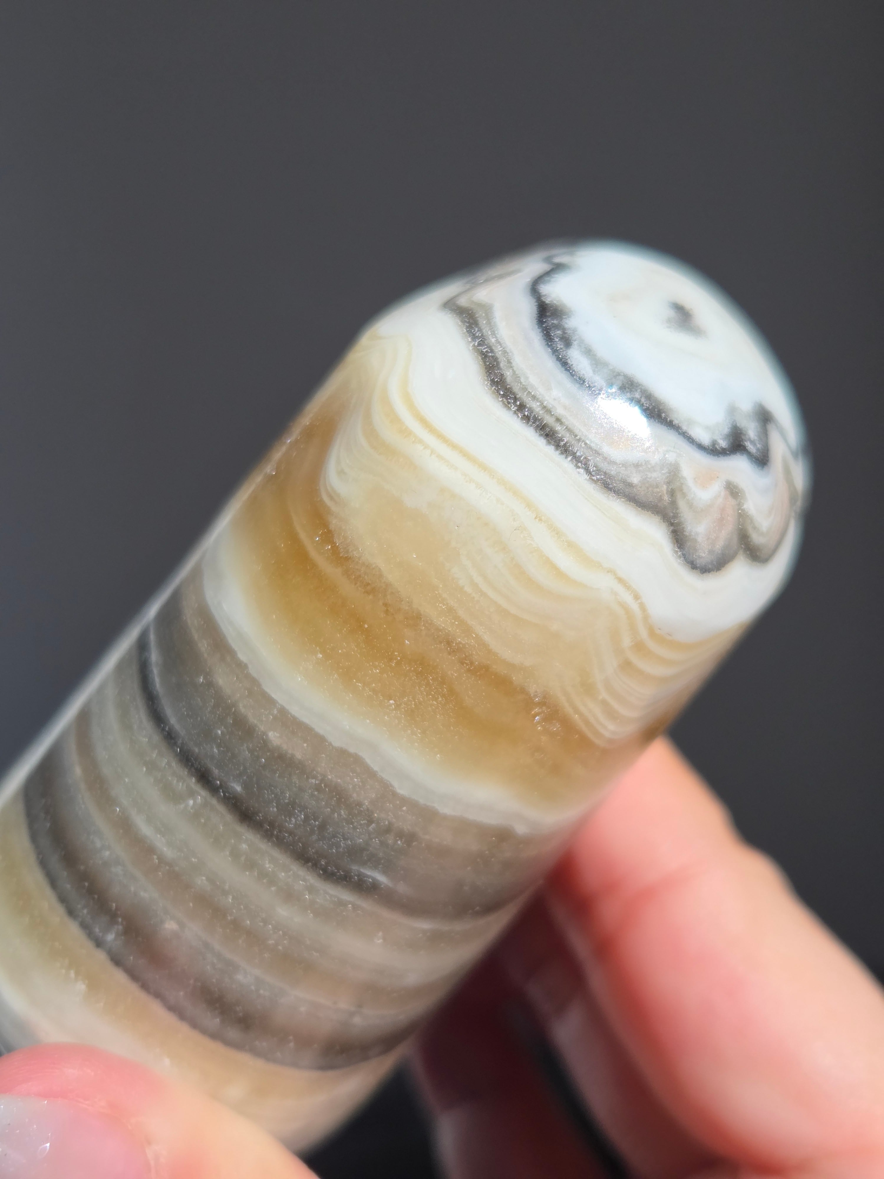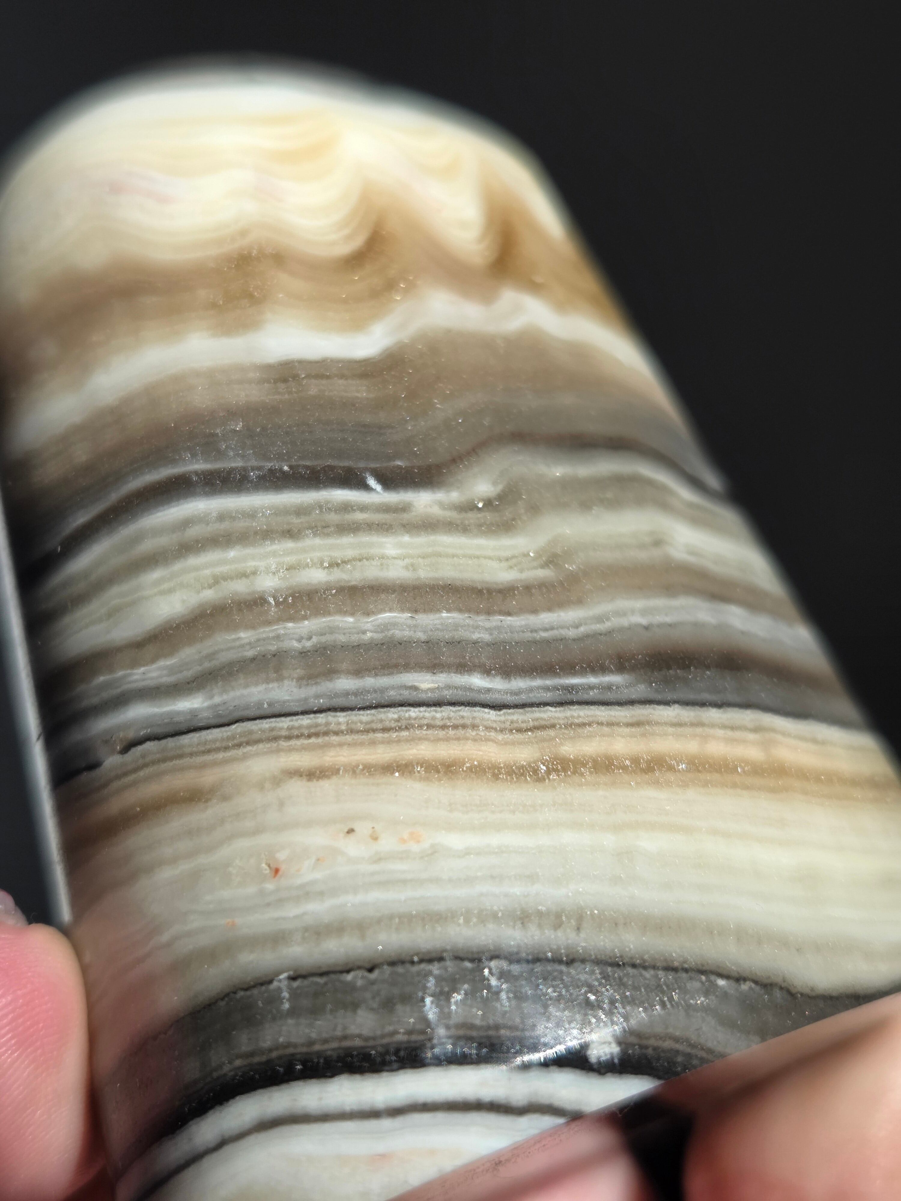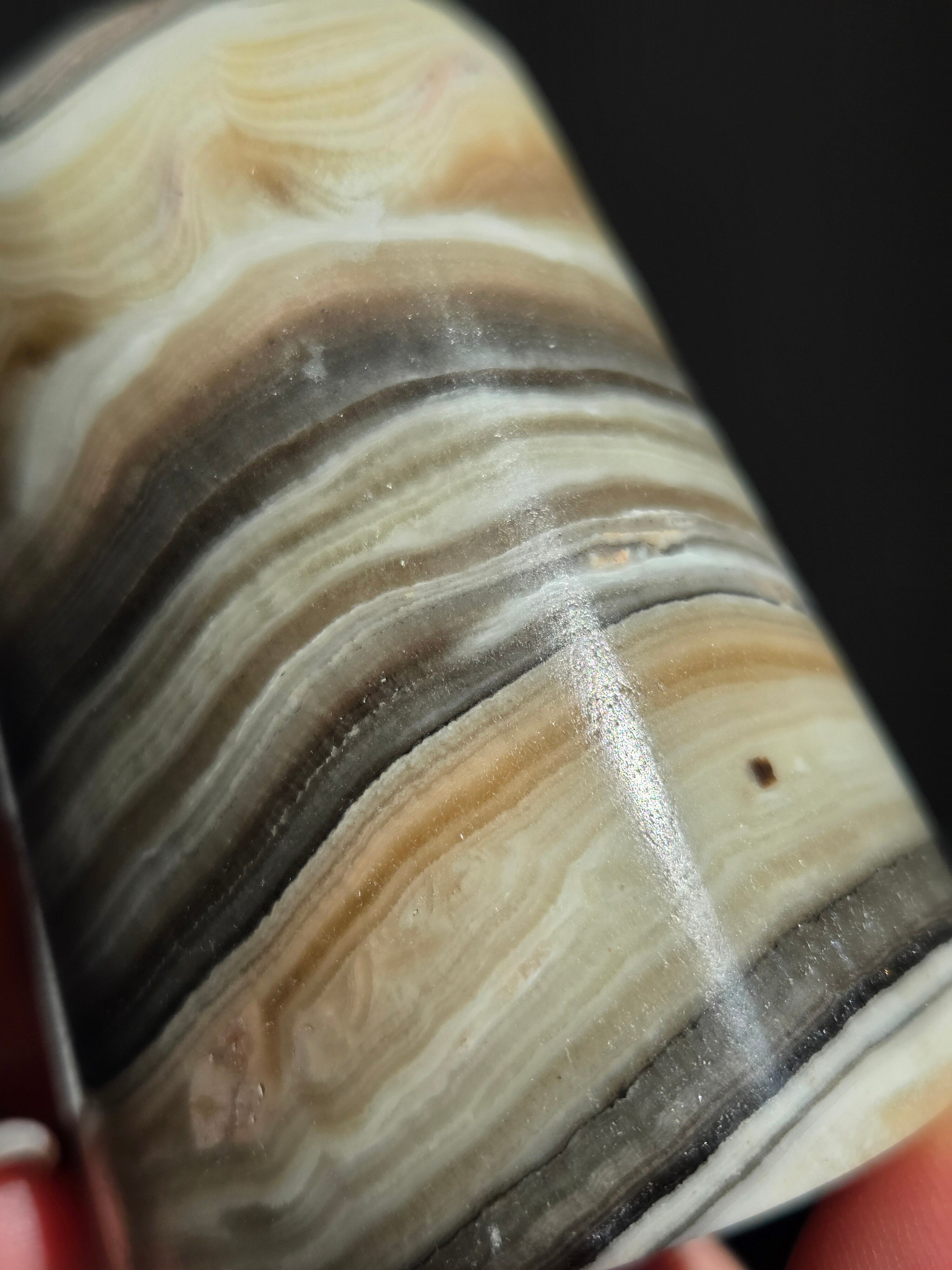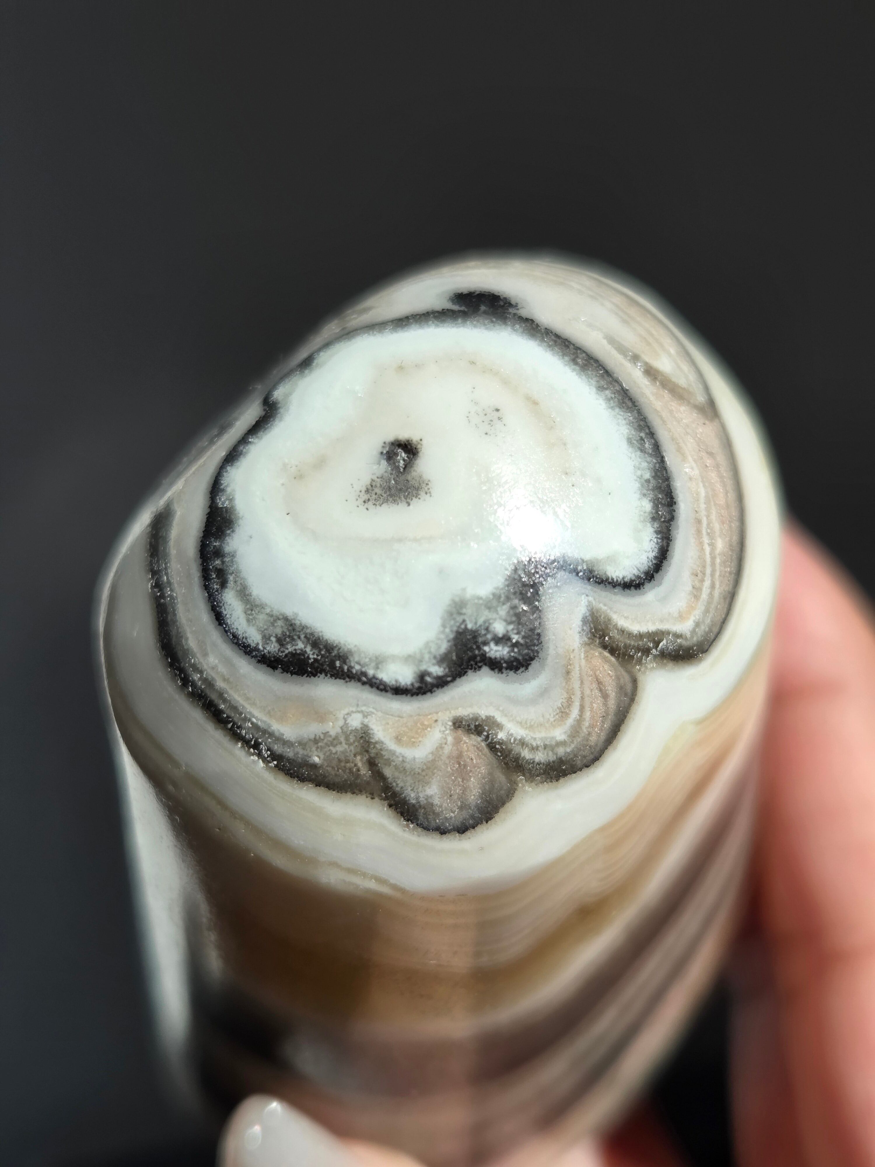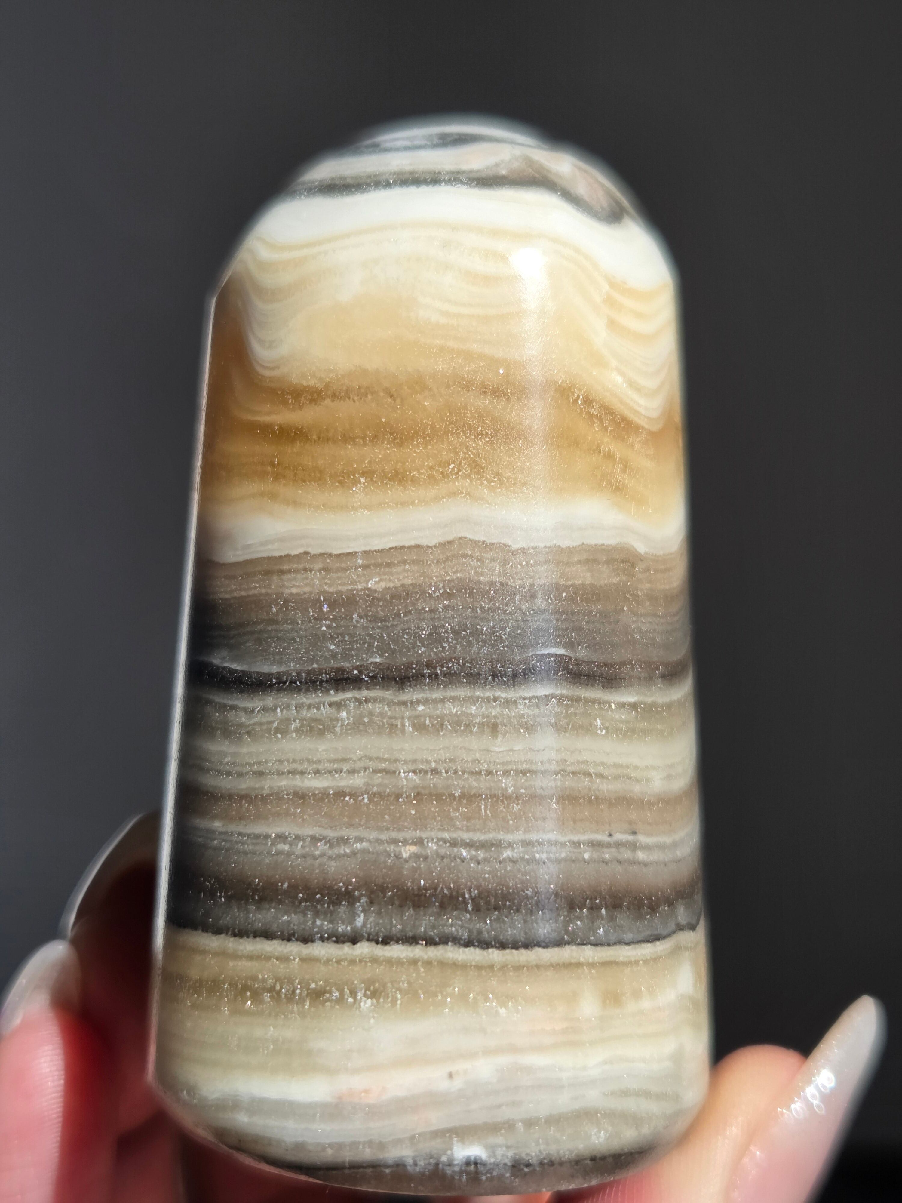 白(カルサイト)と黒(不純物)が縞模様を描く、個性的でモノトーンな表情が魅力の天然石です。