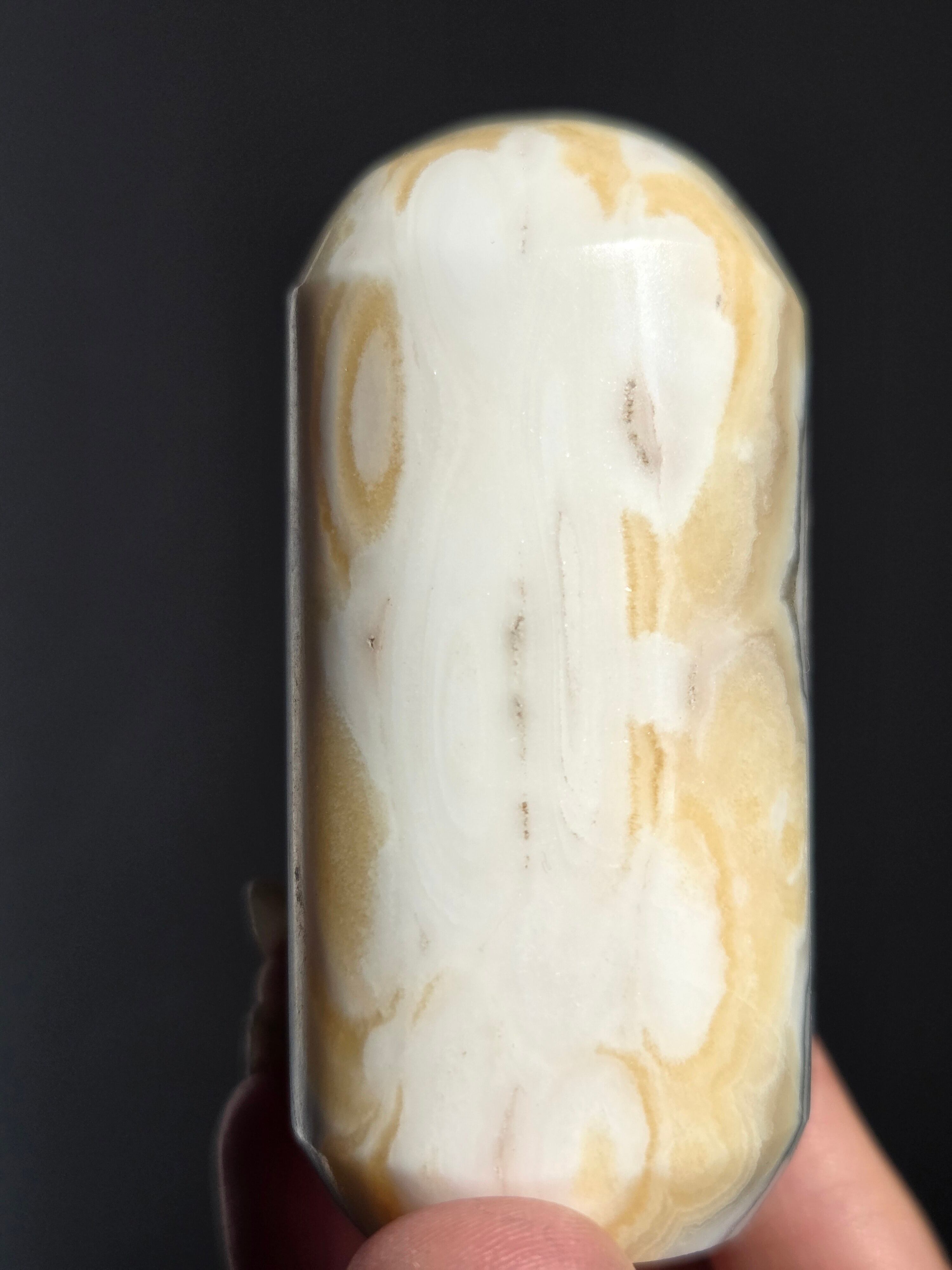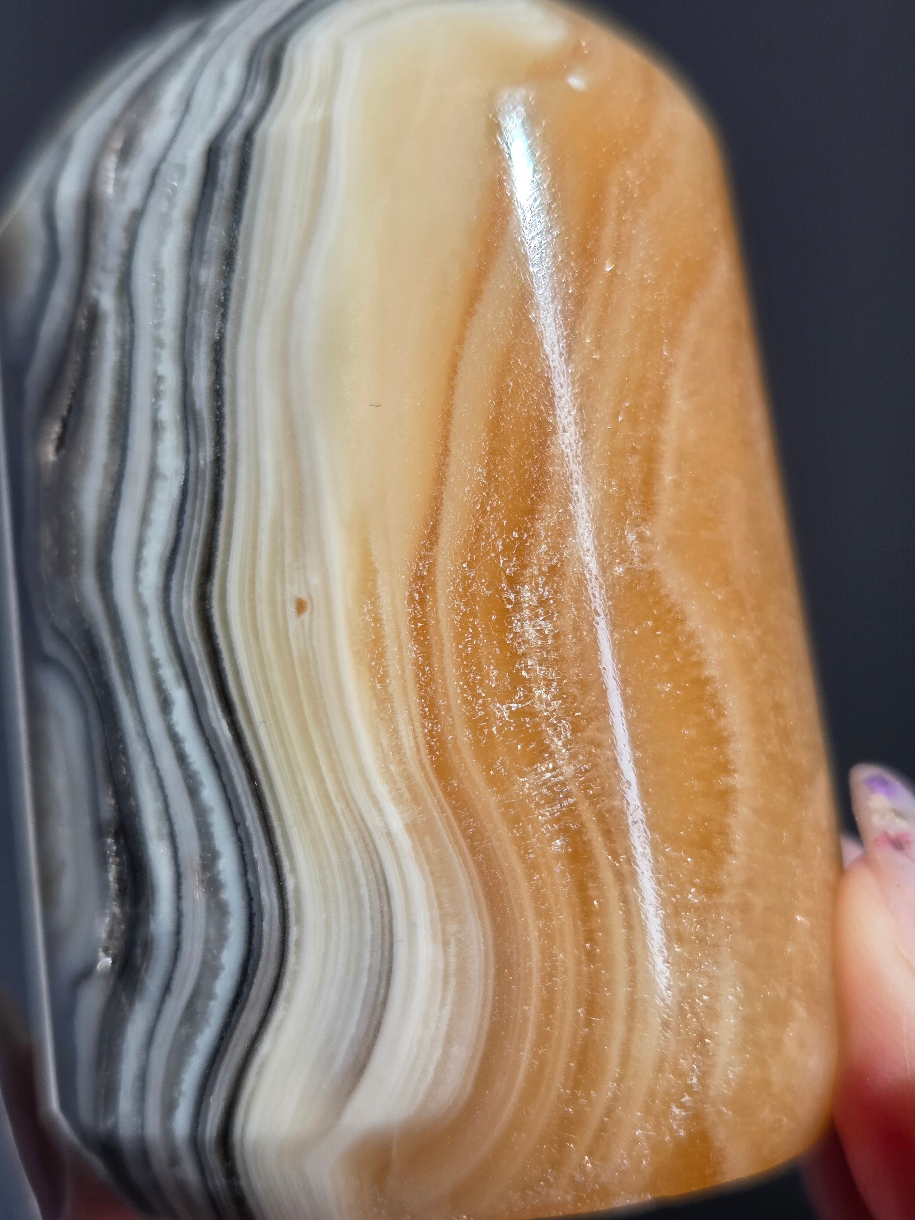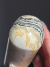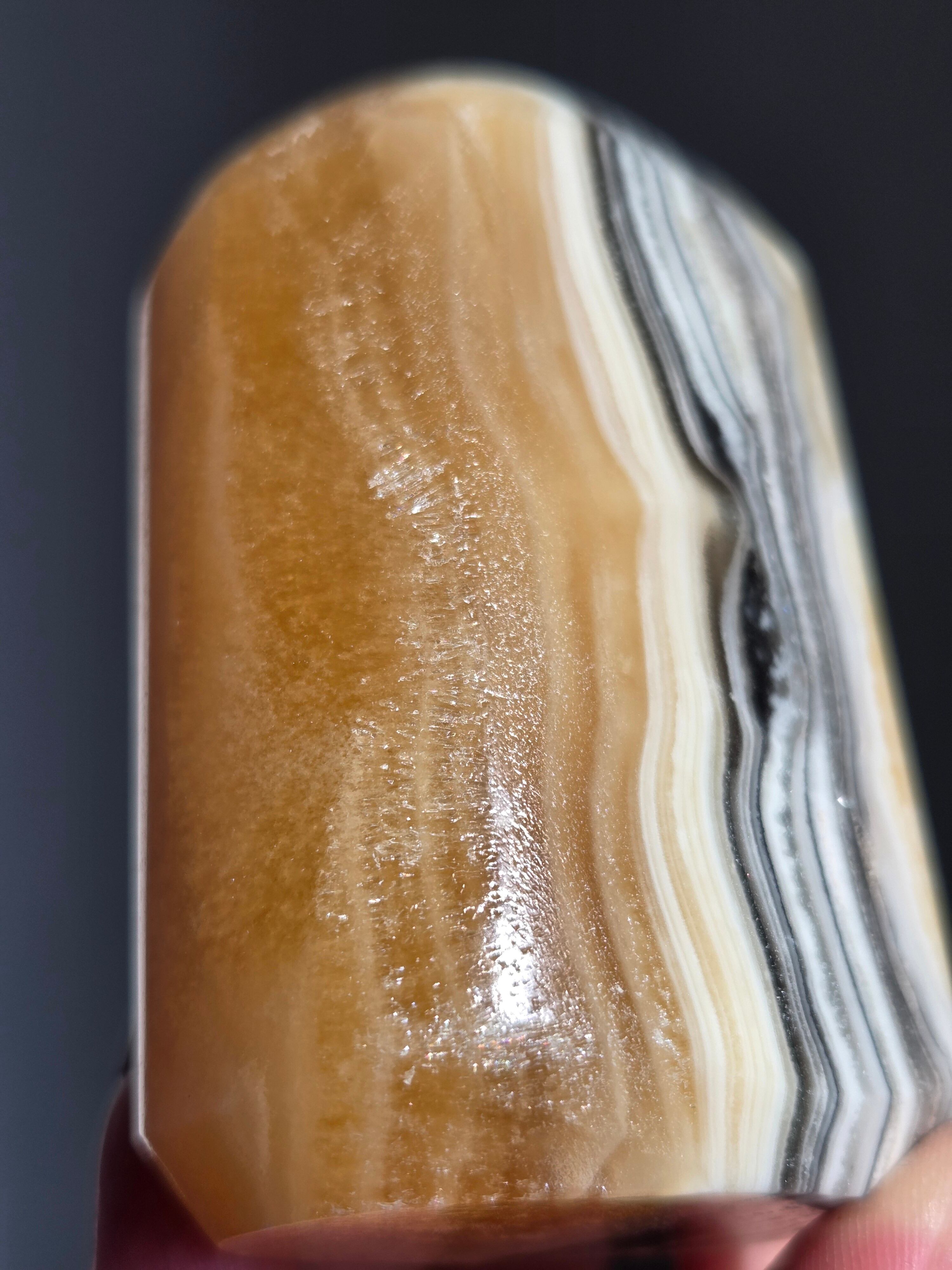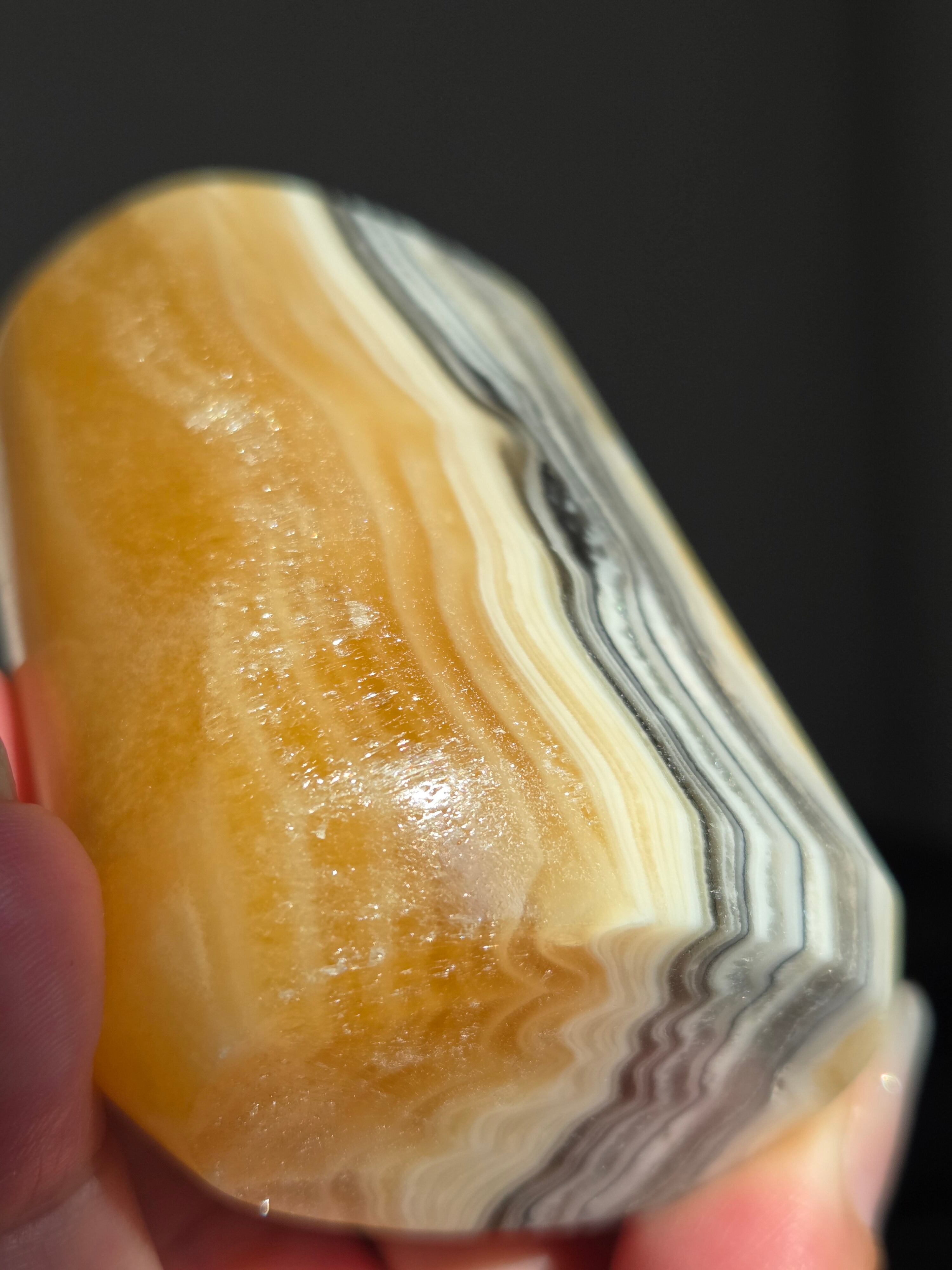 白(カルサイト)と黒(不純物)が縞模様を描く、個性的でモノトーンな表情が魅力の天然石です。