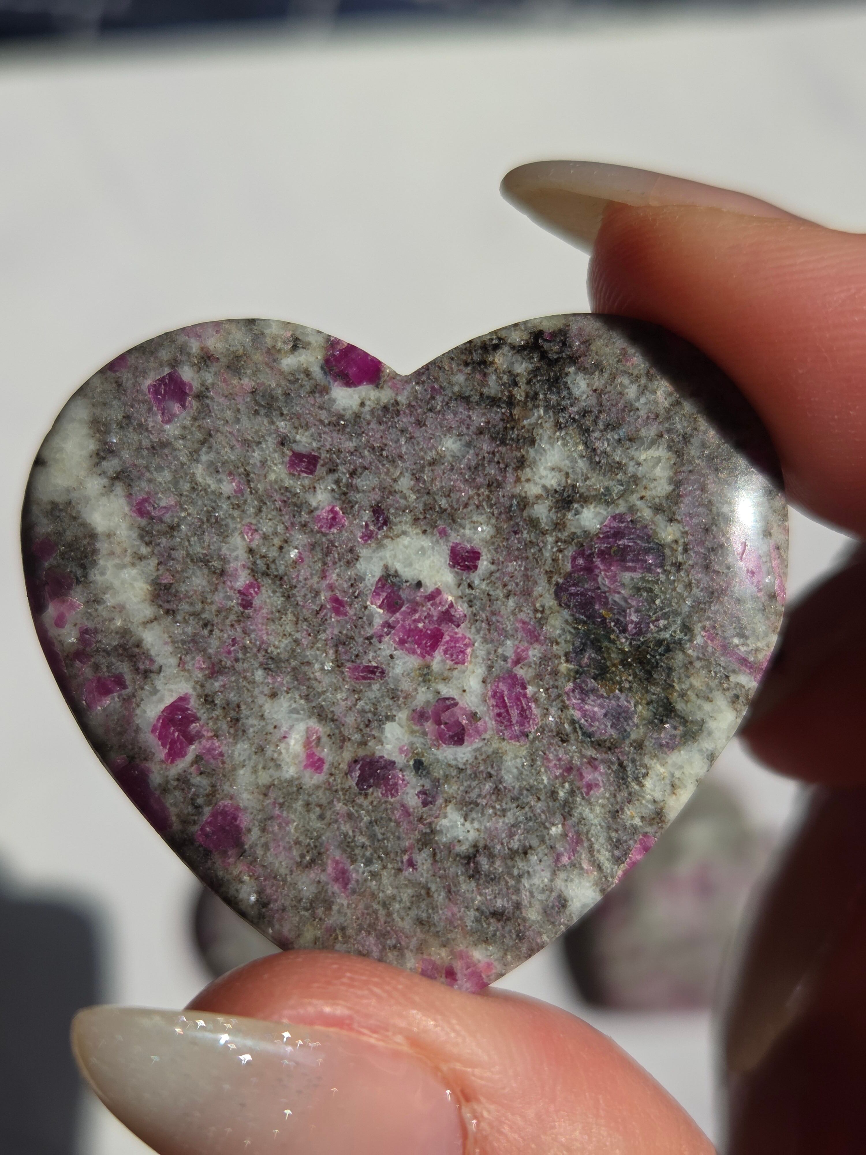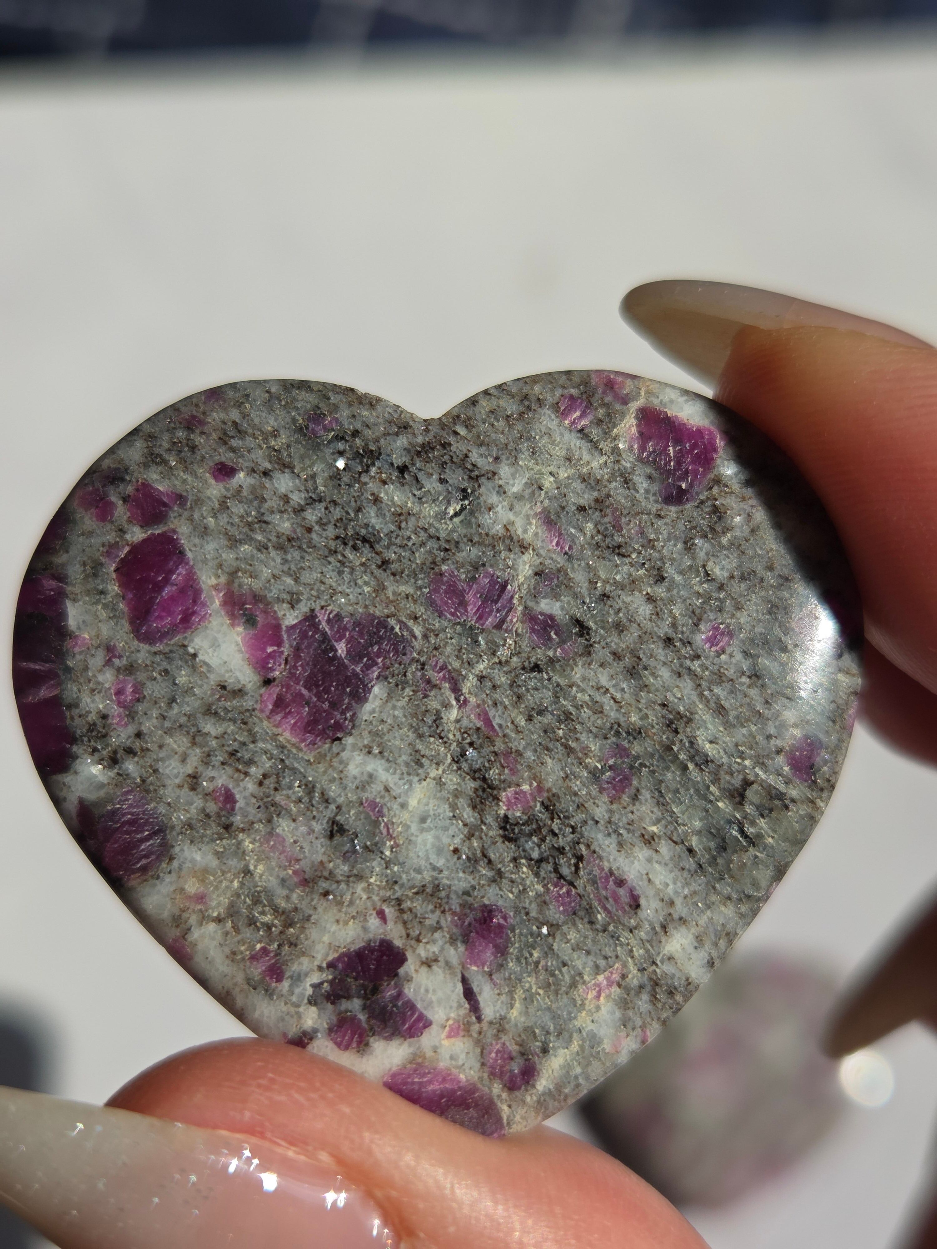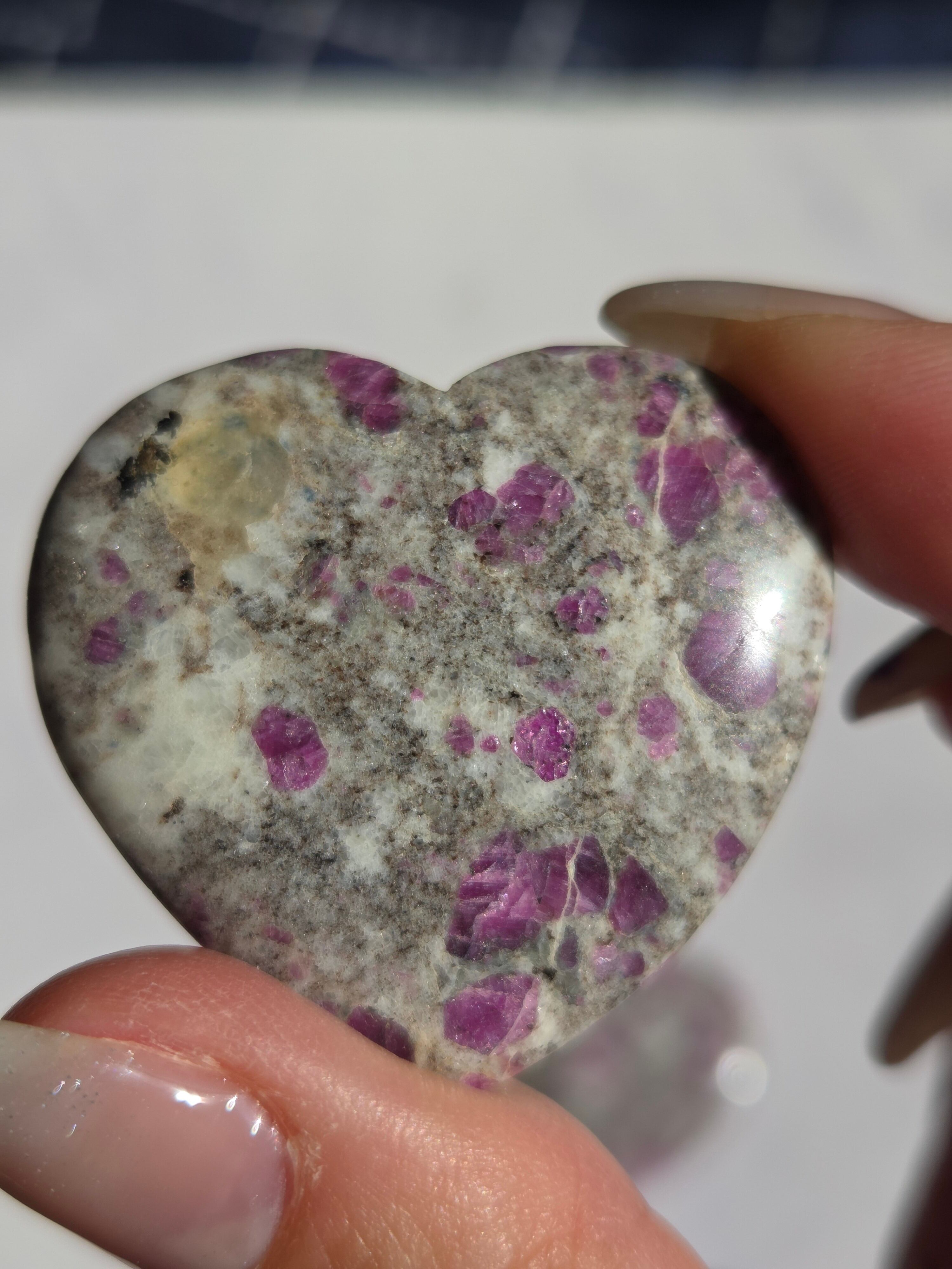ルビーインアルバイト(Ruby in Albite)は、白い長石の一種であるアルバイト(曹長石)の中に、真っ赤なルビーが内包された個性的な天然石です。