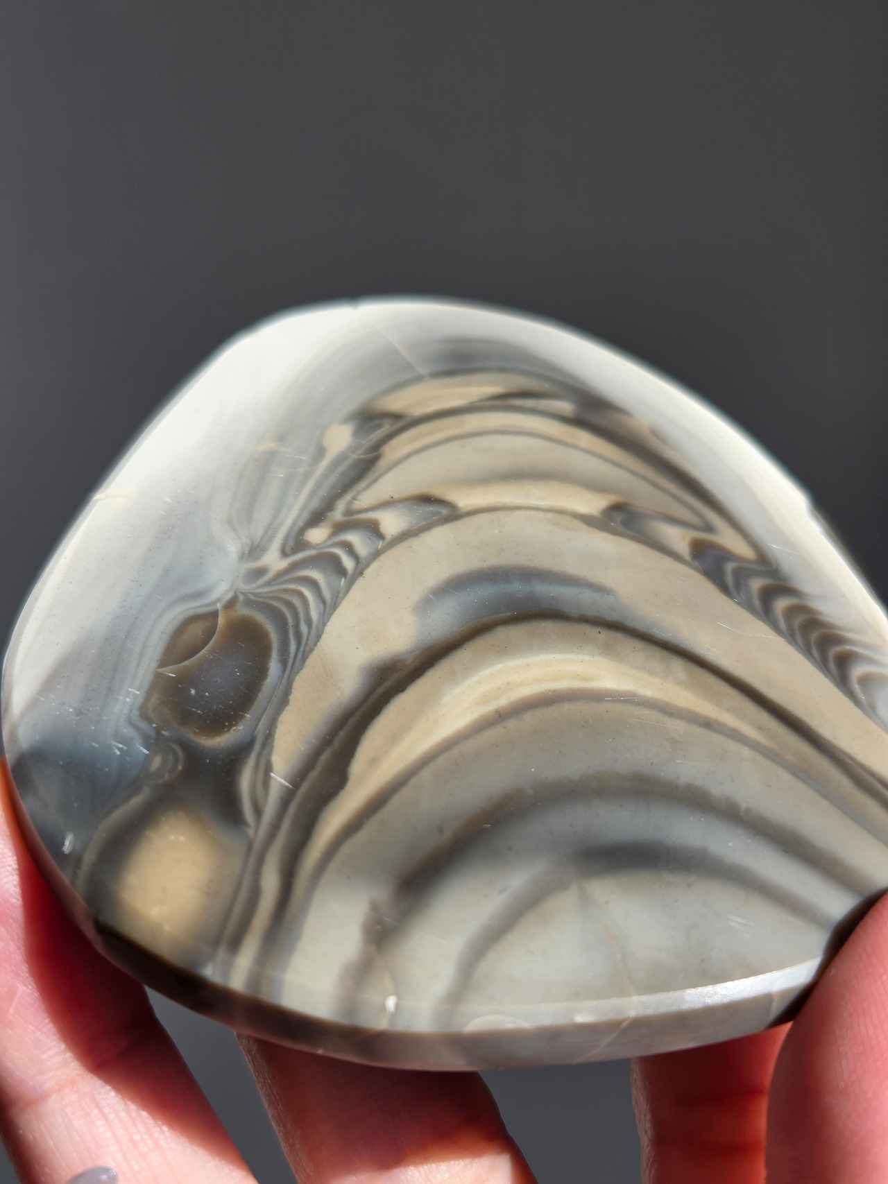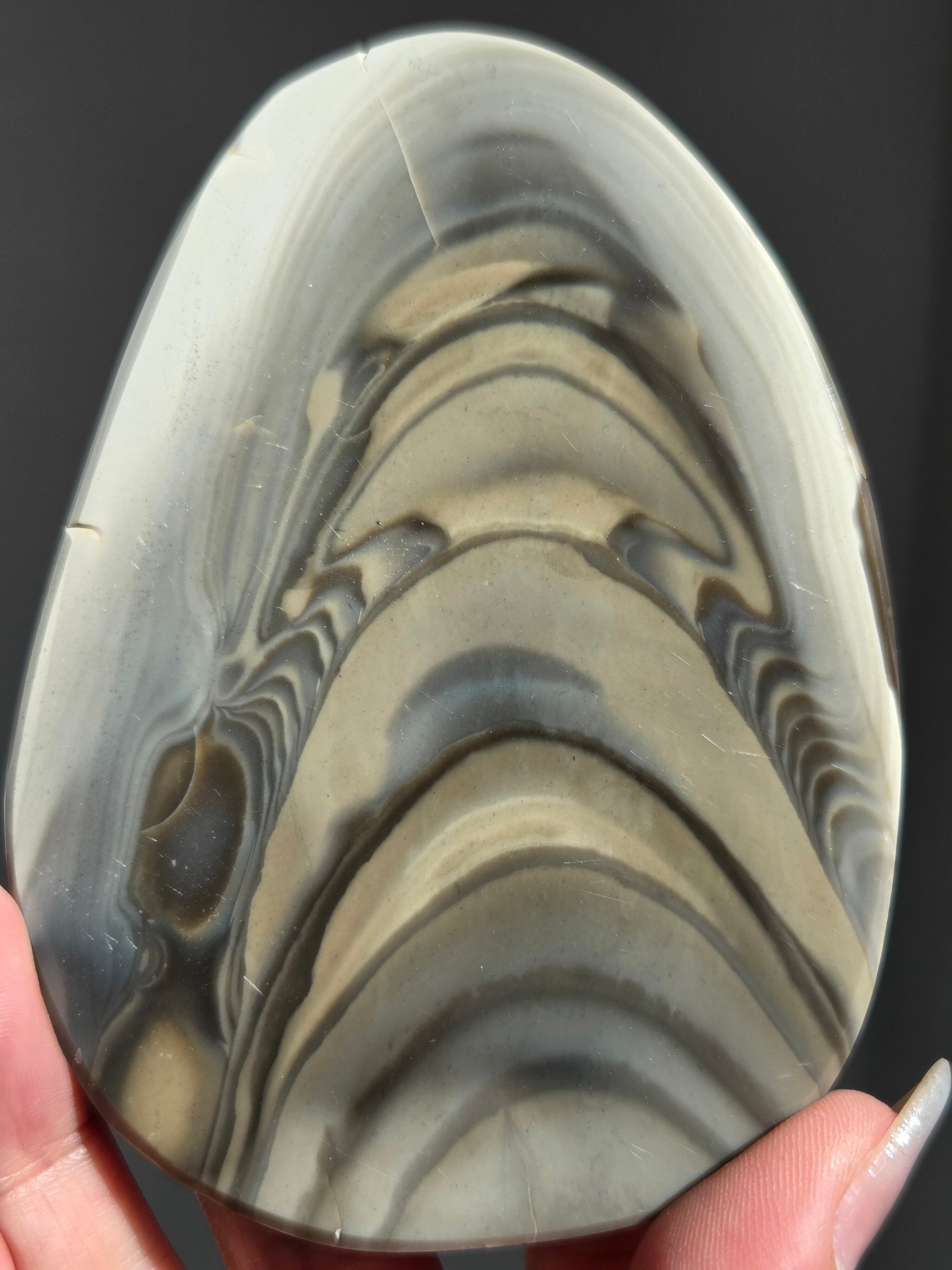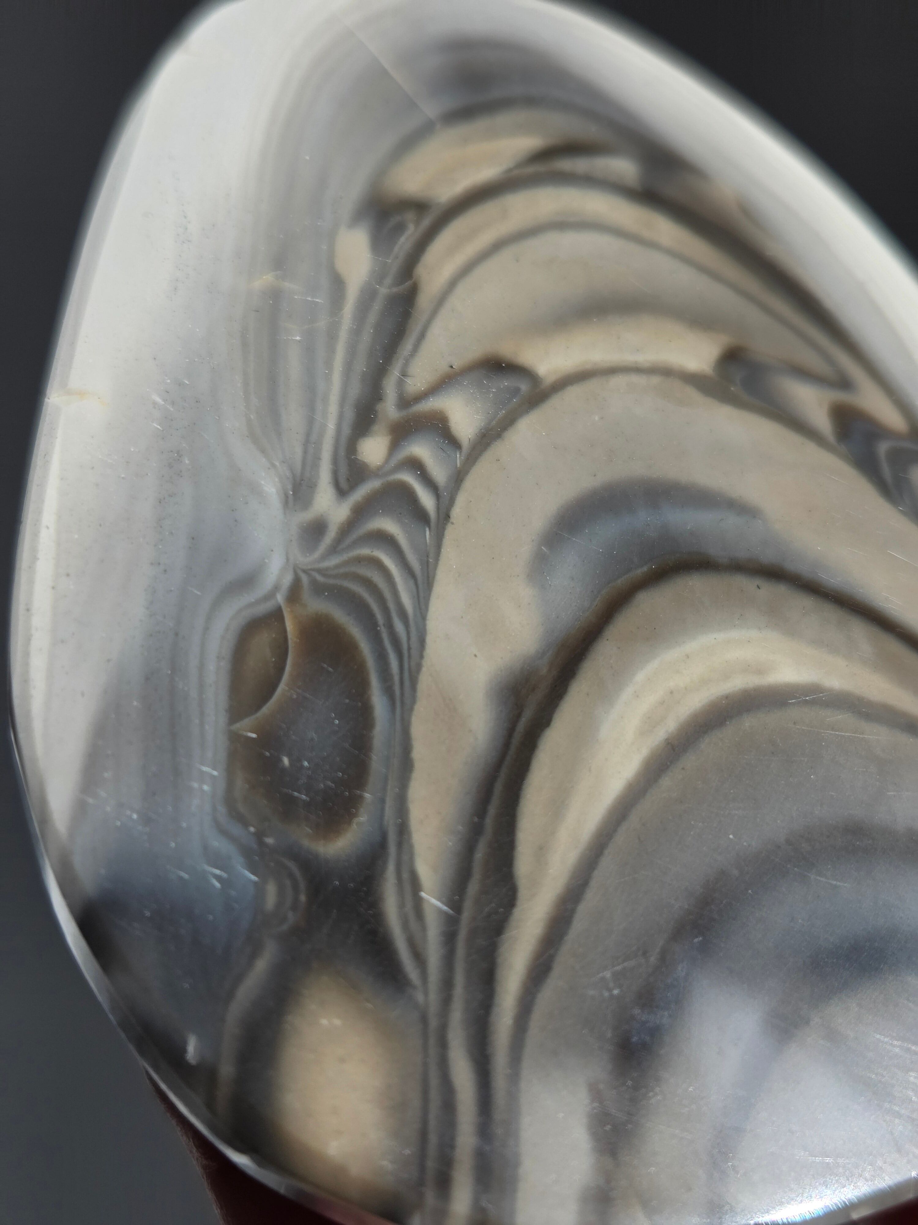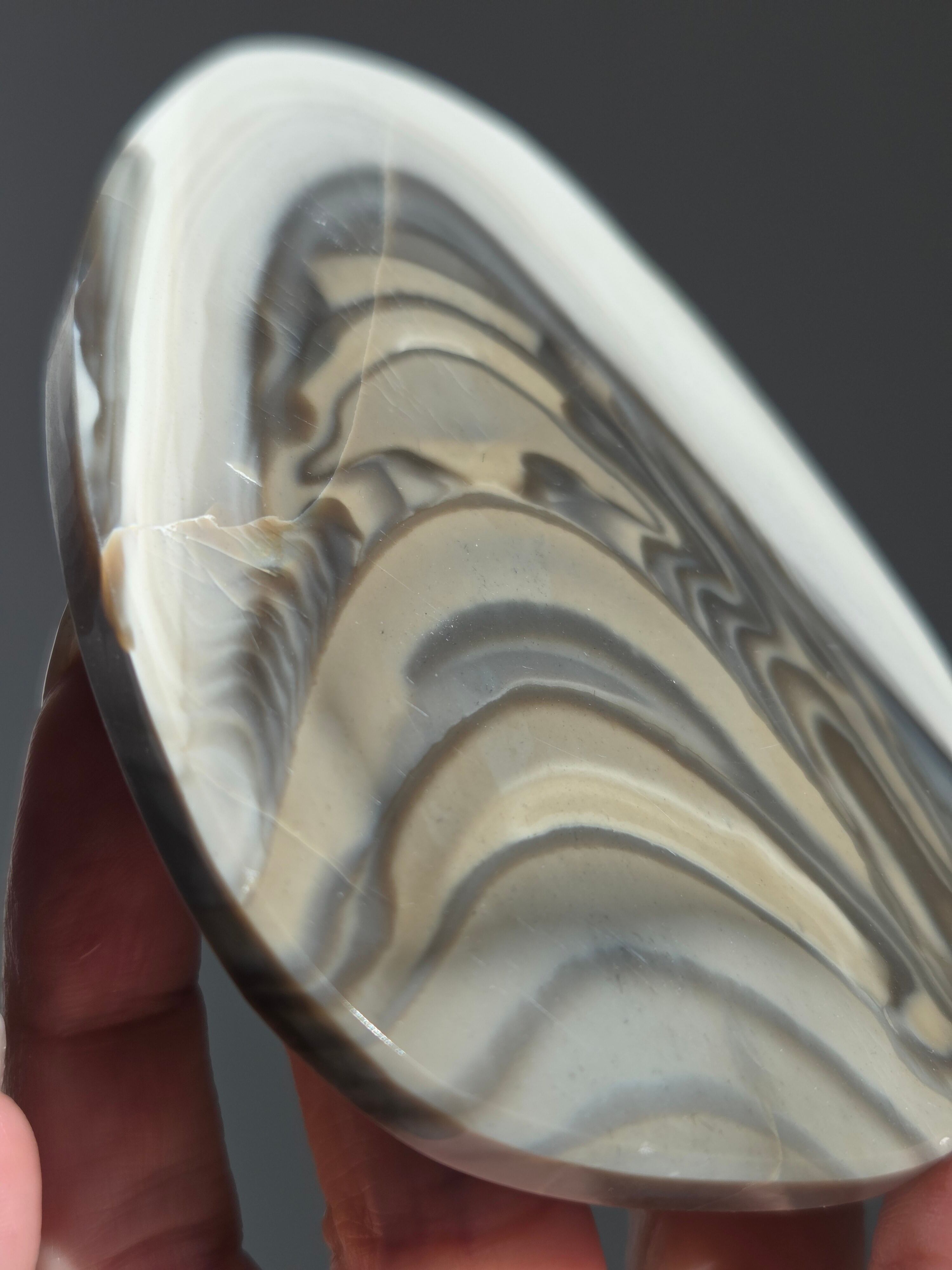 バンデッドフリント(Banded Flint)は、主にポーランドで産出する、グレージュ・ブラウン・ホワイトの美しい縞模様(バンデッド)が特徴の天然石です。別名「ストライプフリント」や「モカラインシリカ」とも呼ばれます。