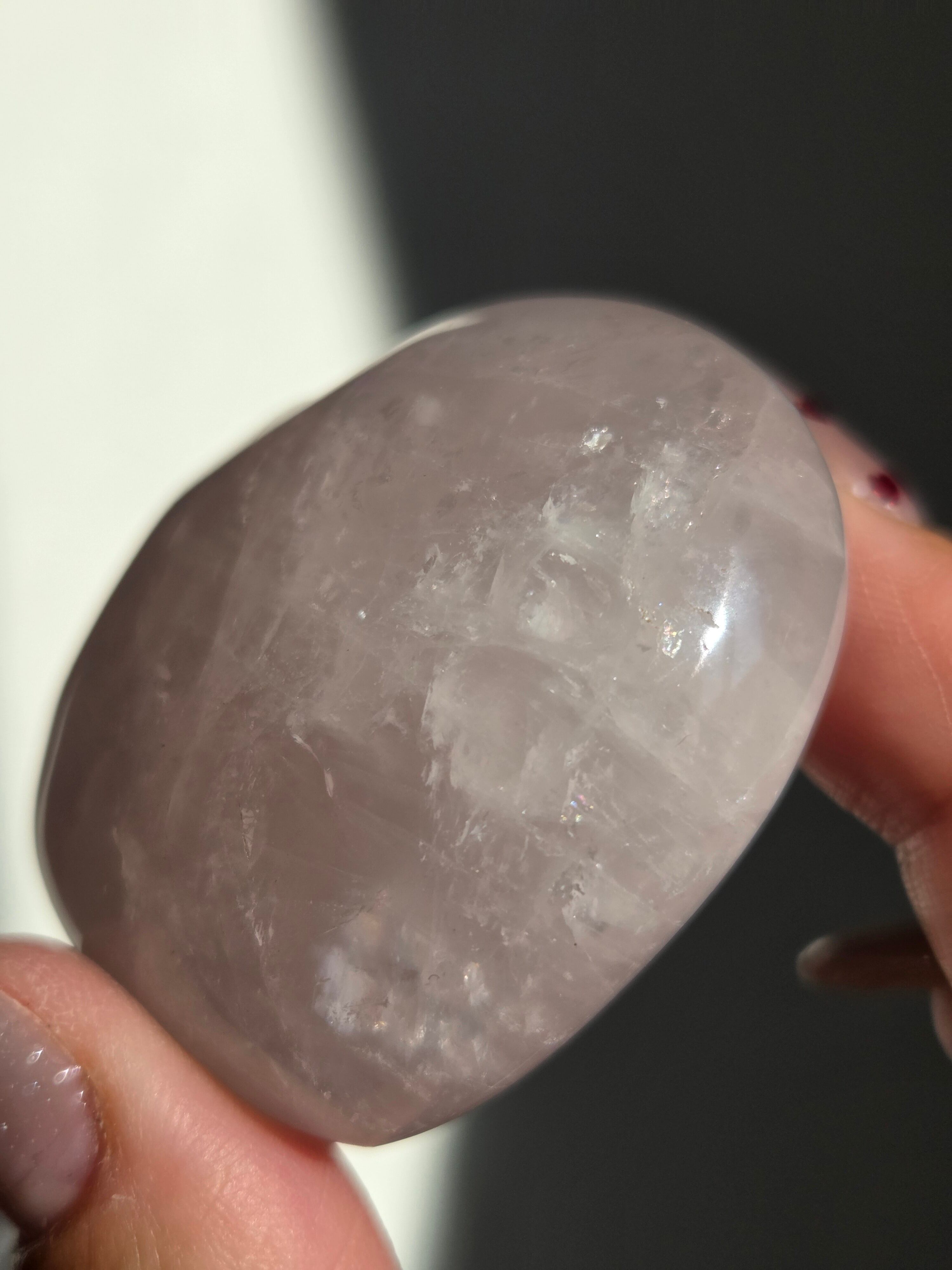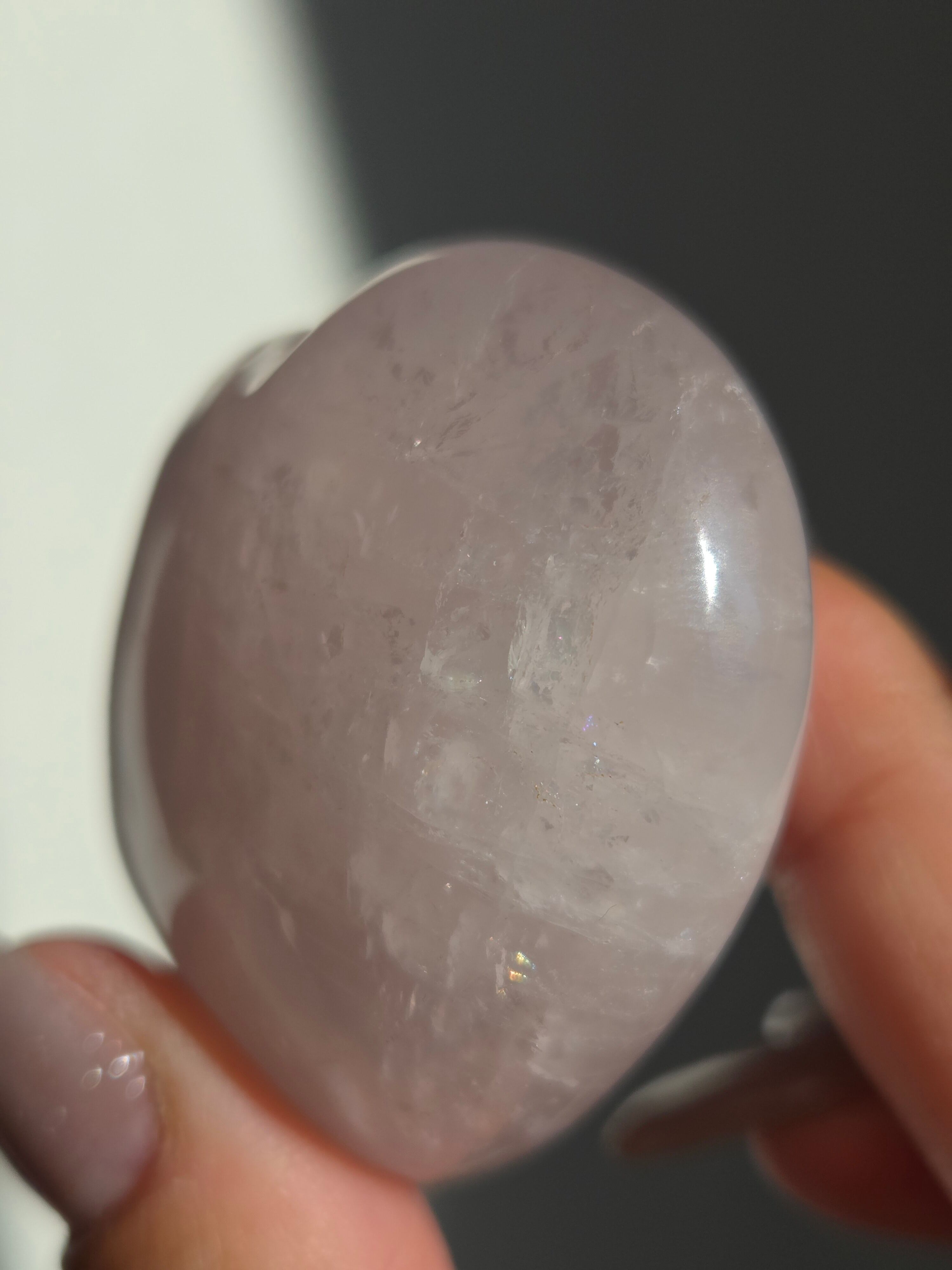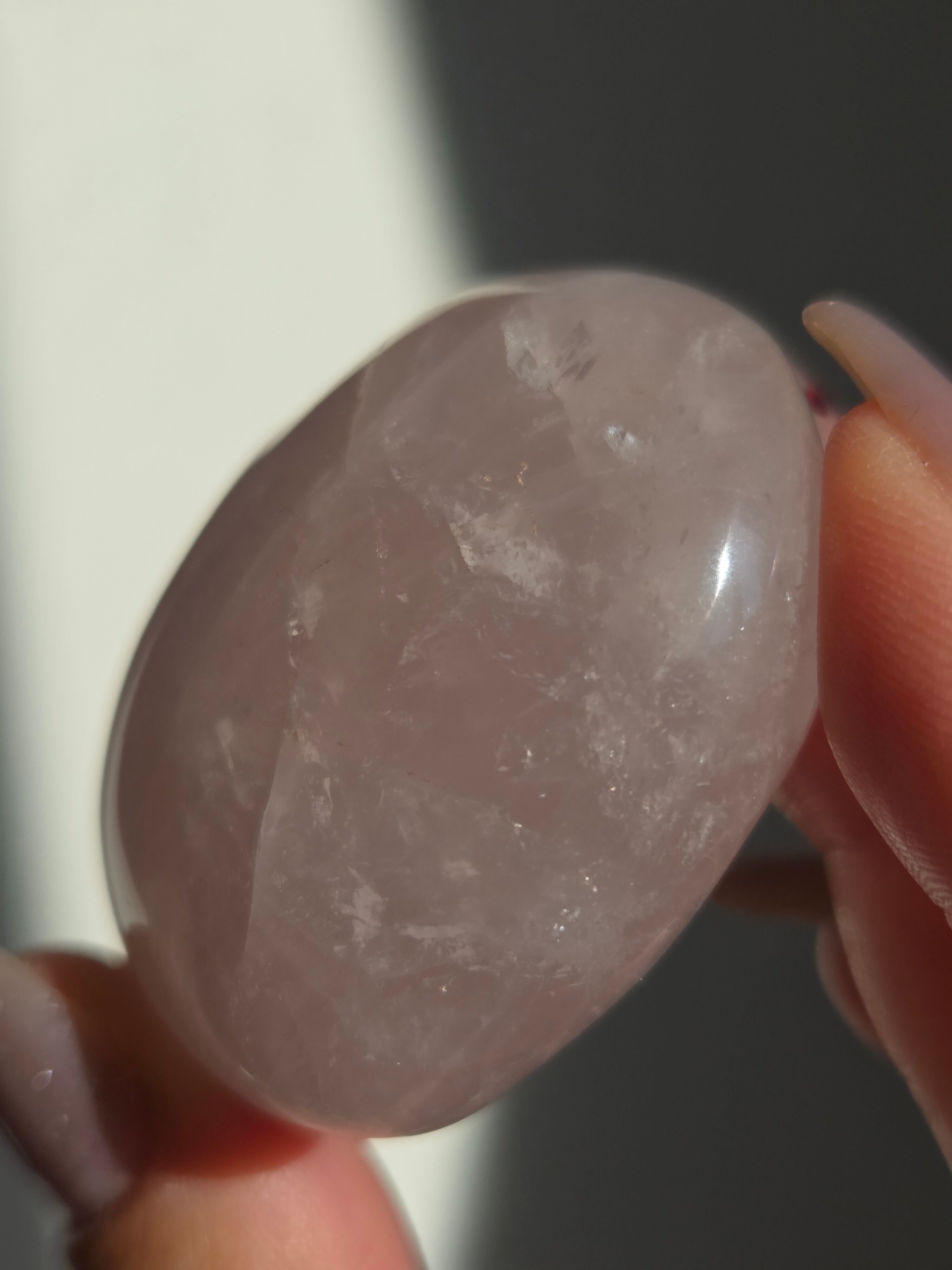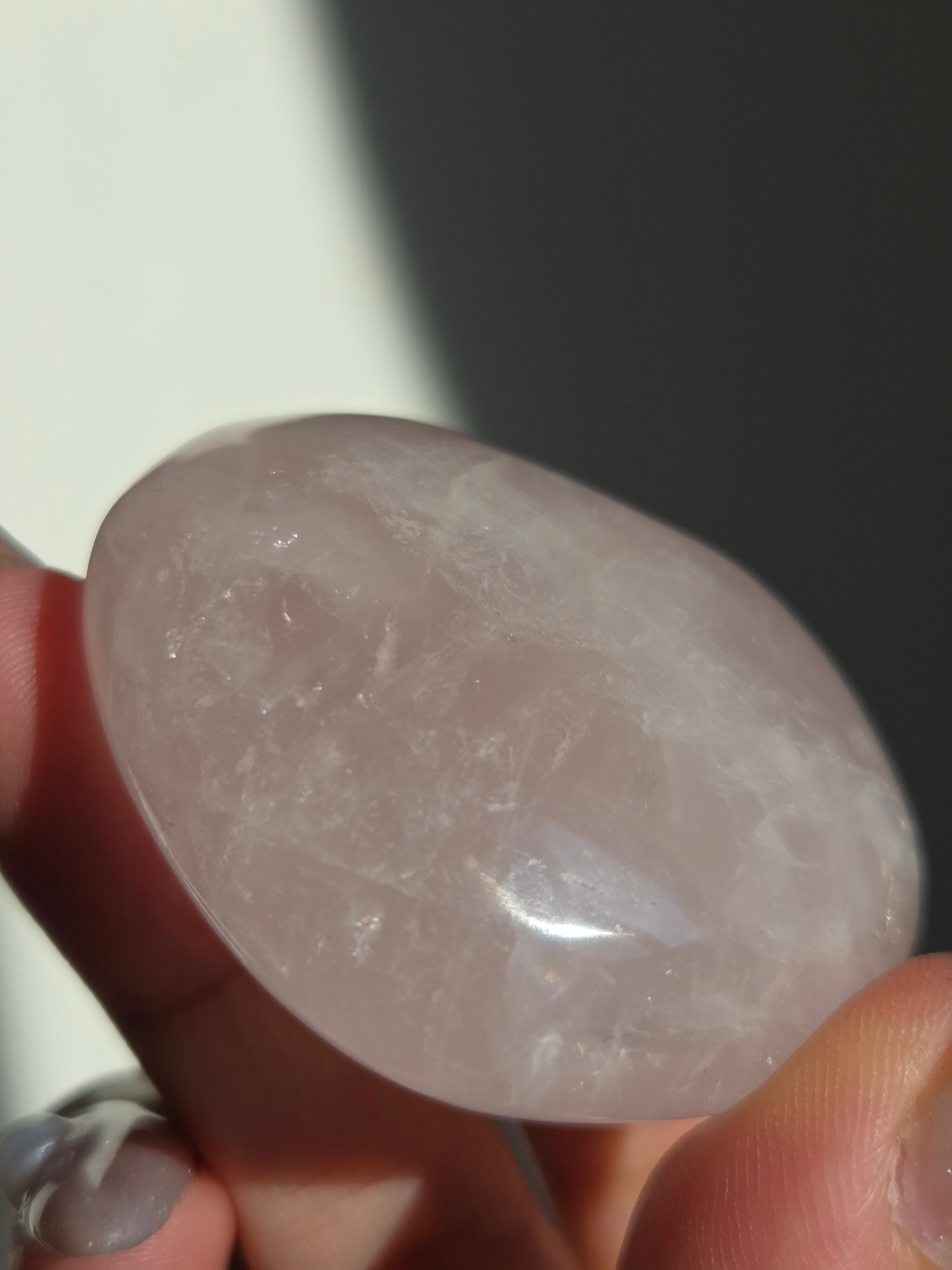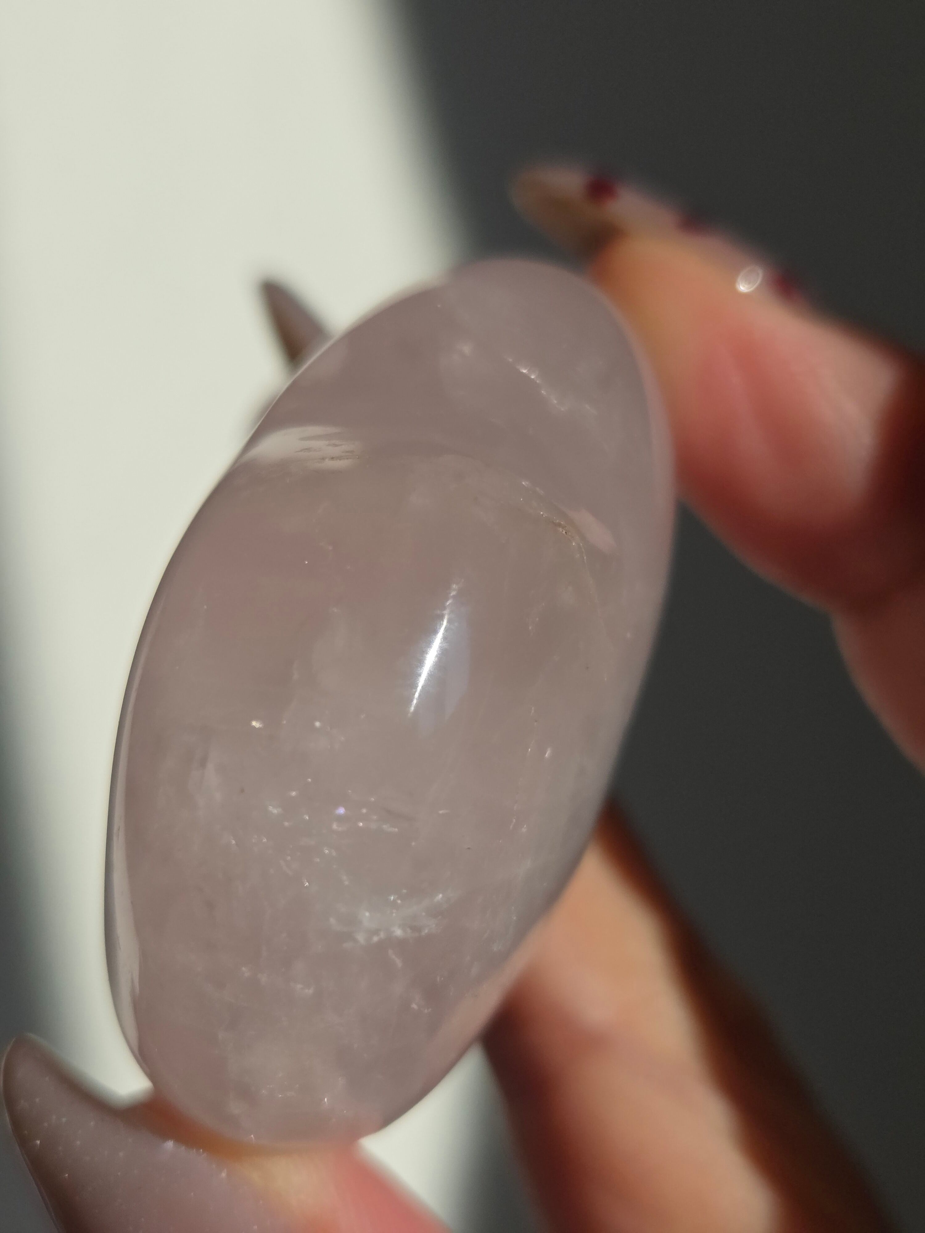 マダガスカル産ローズクォーツハートパームです。