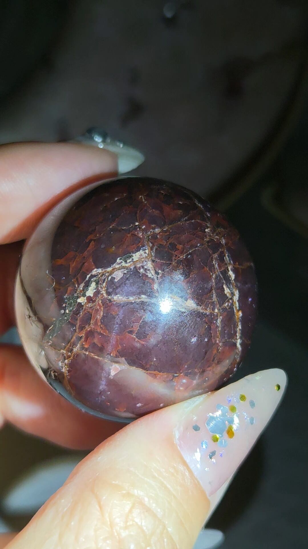 艶のある濃い赤紫色のガーネットに浮かび上がるスターが神秘的で素敵です。