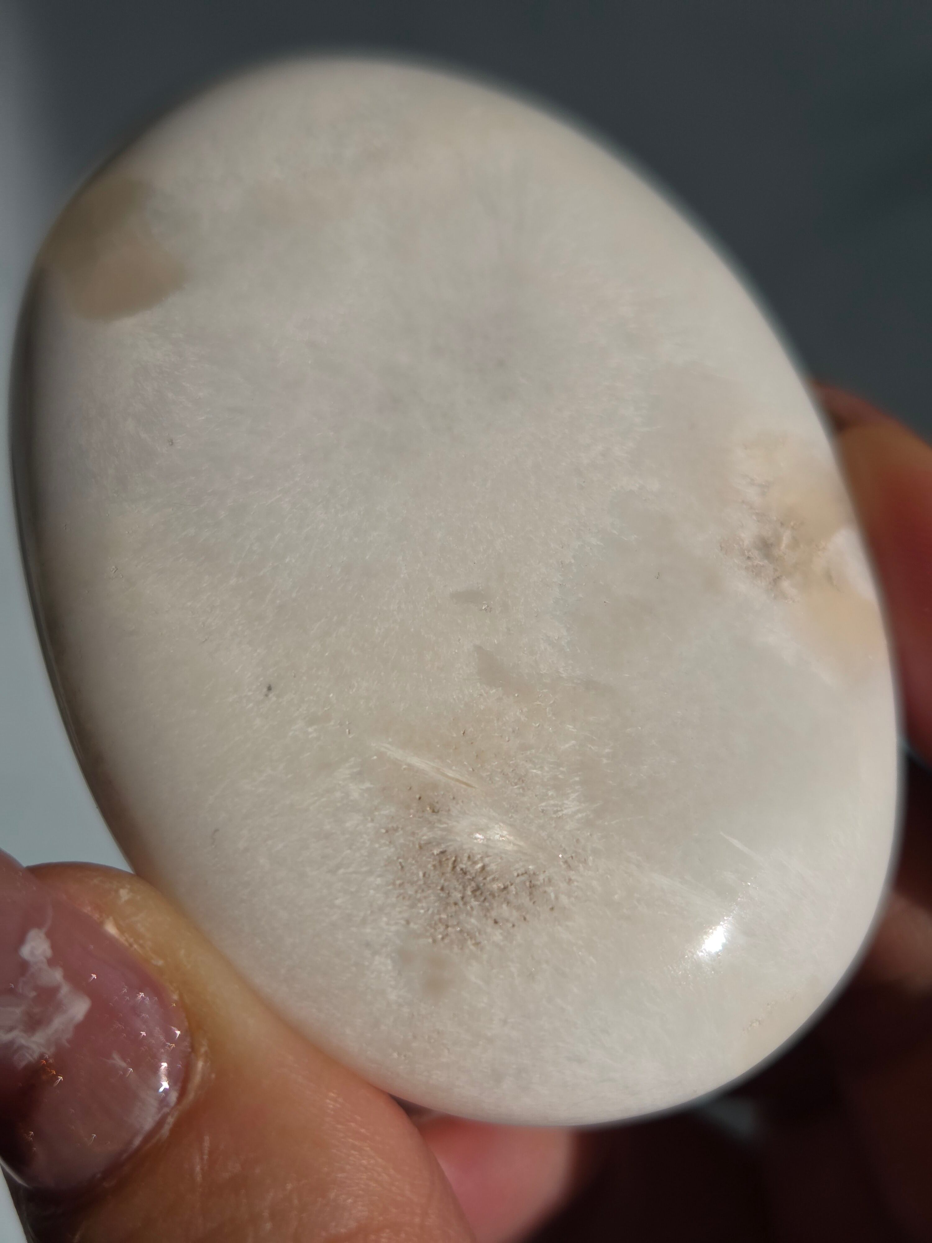 スコレサイト(スコレス沸石)は、白く繊細な針状結晶が特徴のゼオライト(沸石)グループの鉱物です。非常に高い浄化作用を持つ「癒しの石」として知られ、心身のネガティブなエネルギーを吸着・除去し、平和と安らぎをもたらすと信じられています