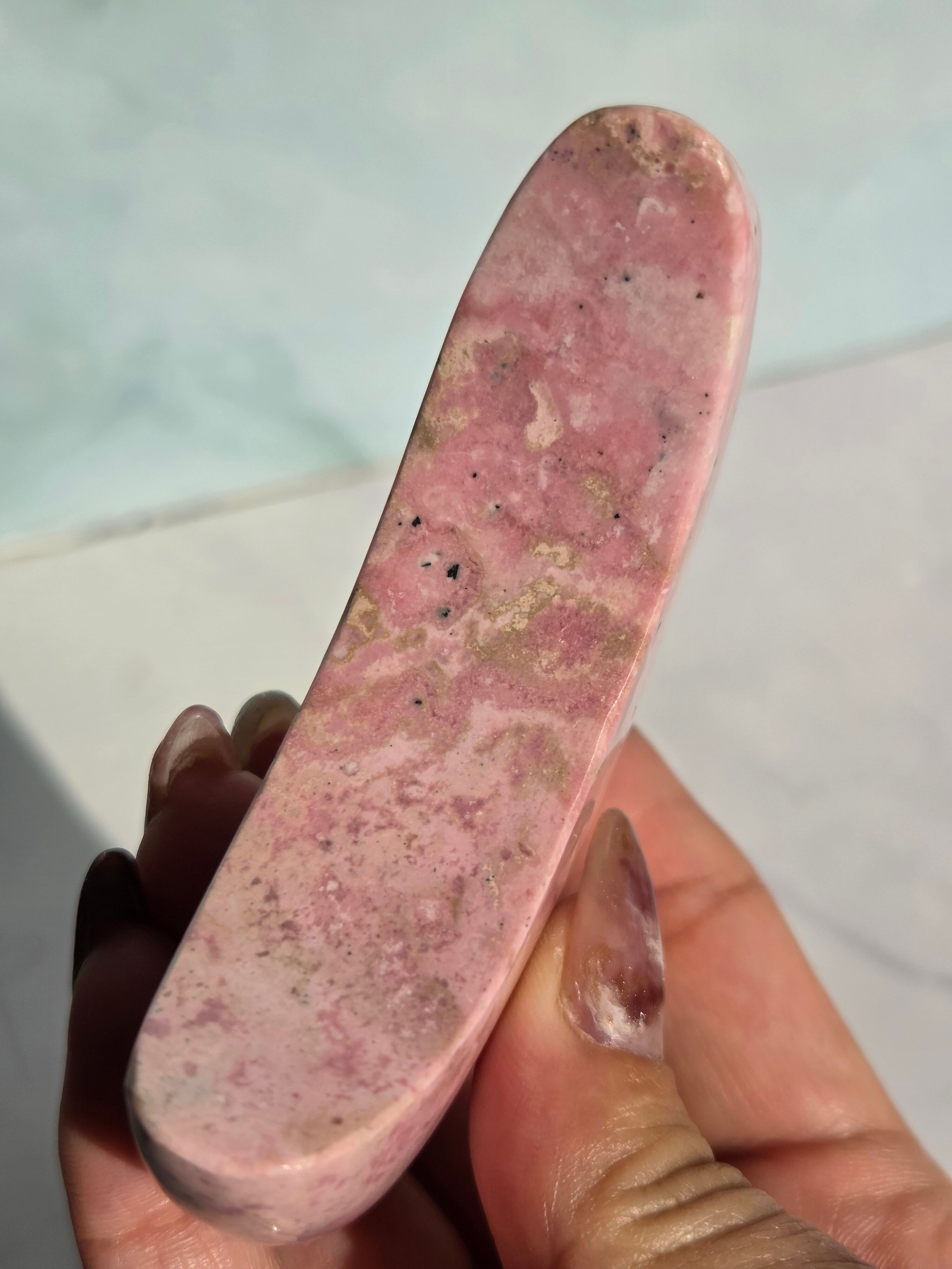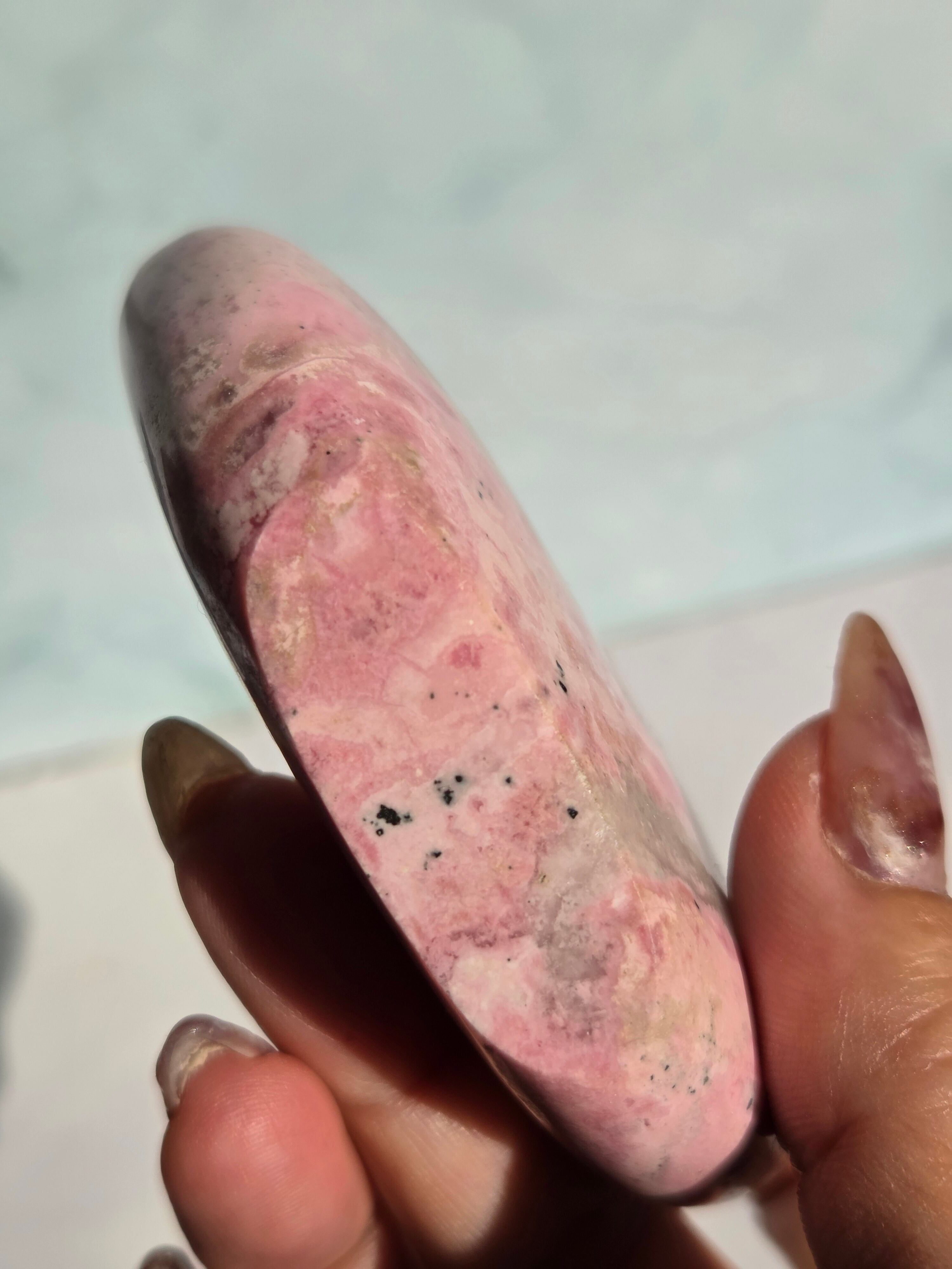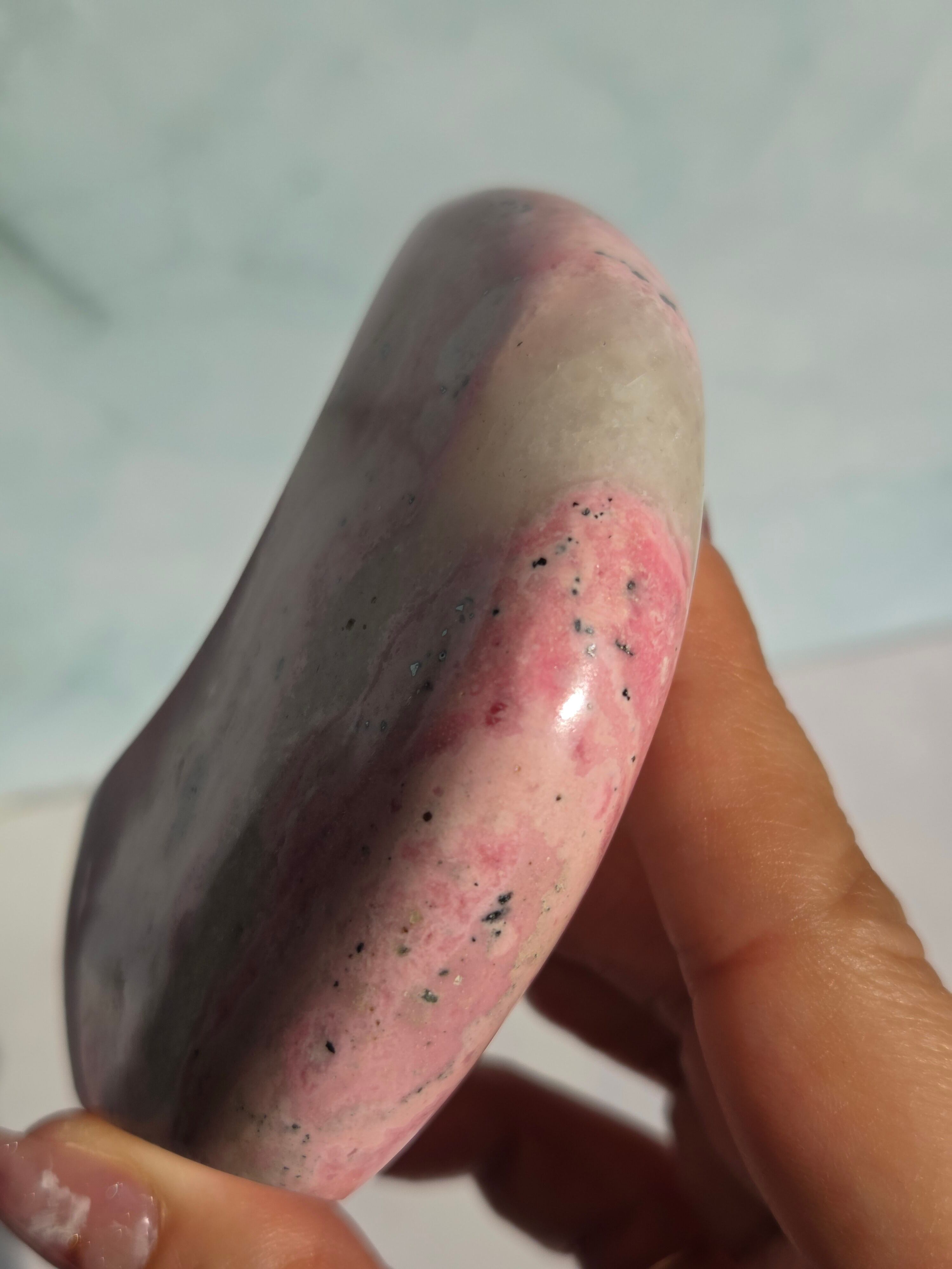 ロードナイト(和名:バラ輝石)は、ギリシャ語の「バラ(rhodon)」に由来する、ピンク〜赤色に黒い模様が入るマンガン系のケイ酸塩鉱物です。愛情や友情、癒やしを象徴するパワーストーンとして親しまれ、心身のバランスを整え、対人関係を円滑にする効果があると言われています。またその優しい色合いから「持ち主に自信を与え、愛に対して心を開く」効果があるとされ、日常的なお守りとして非常に人気があります。