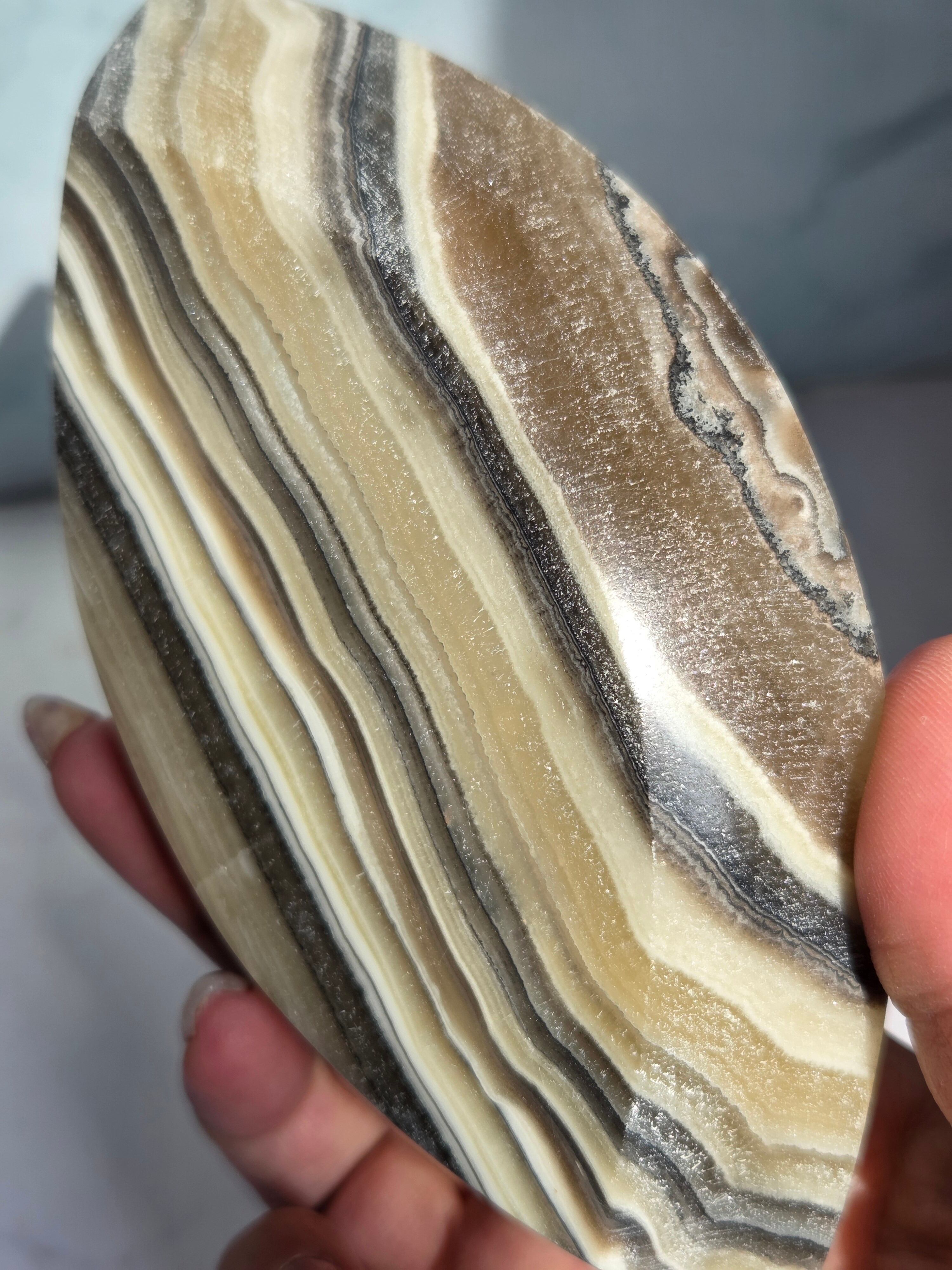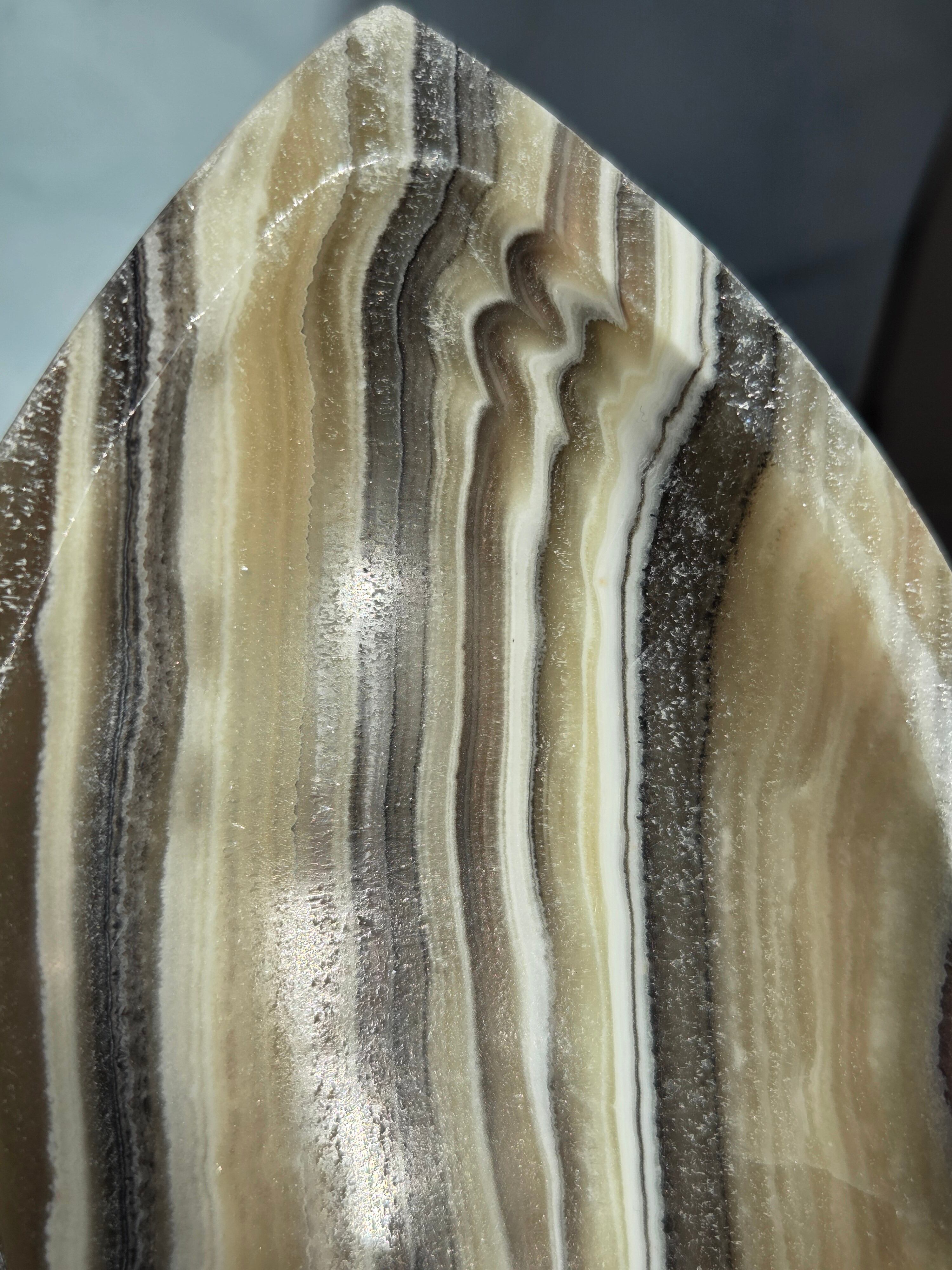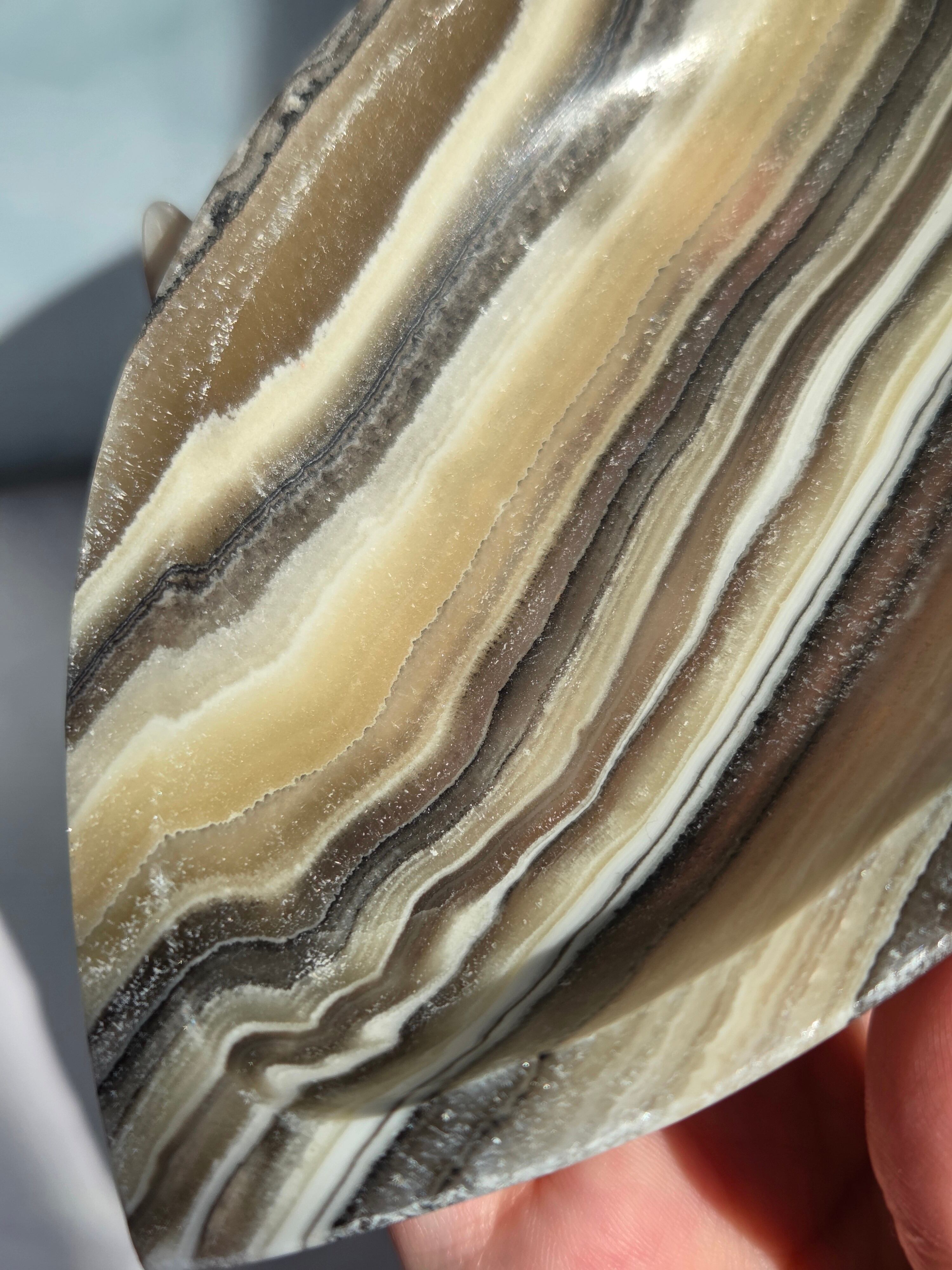 ゼブラカルサイトは、白(カルサイト)と黒(不純物)が縞模様を描く、個性的でモノトーンな表情が魅力の天然石です。