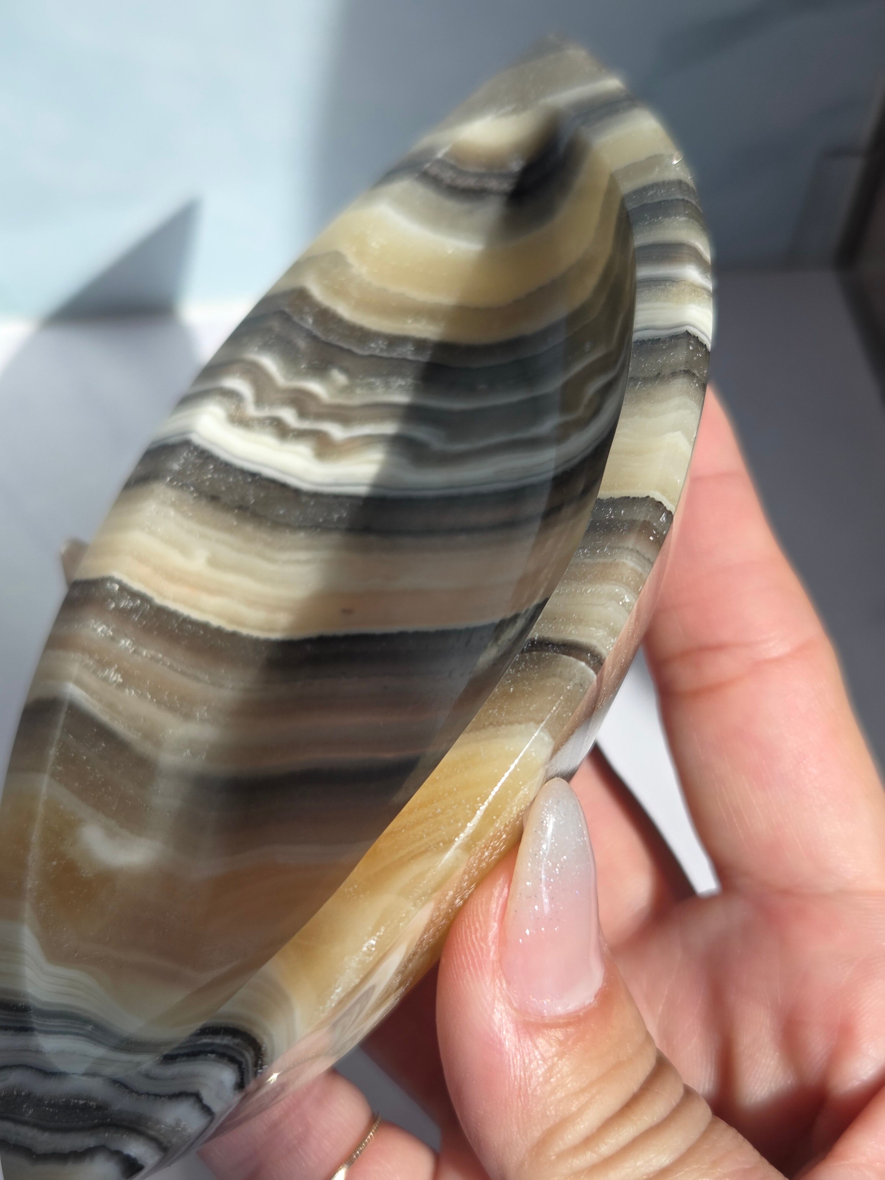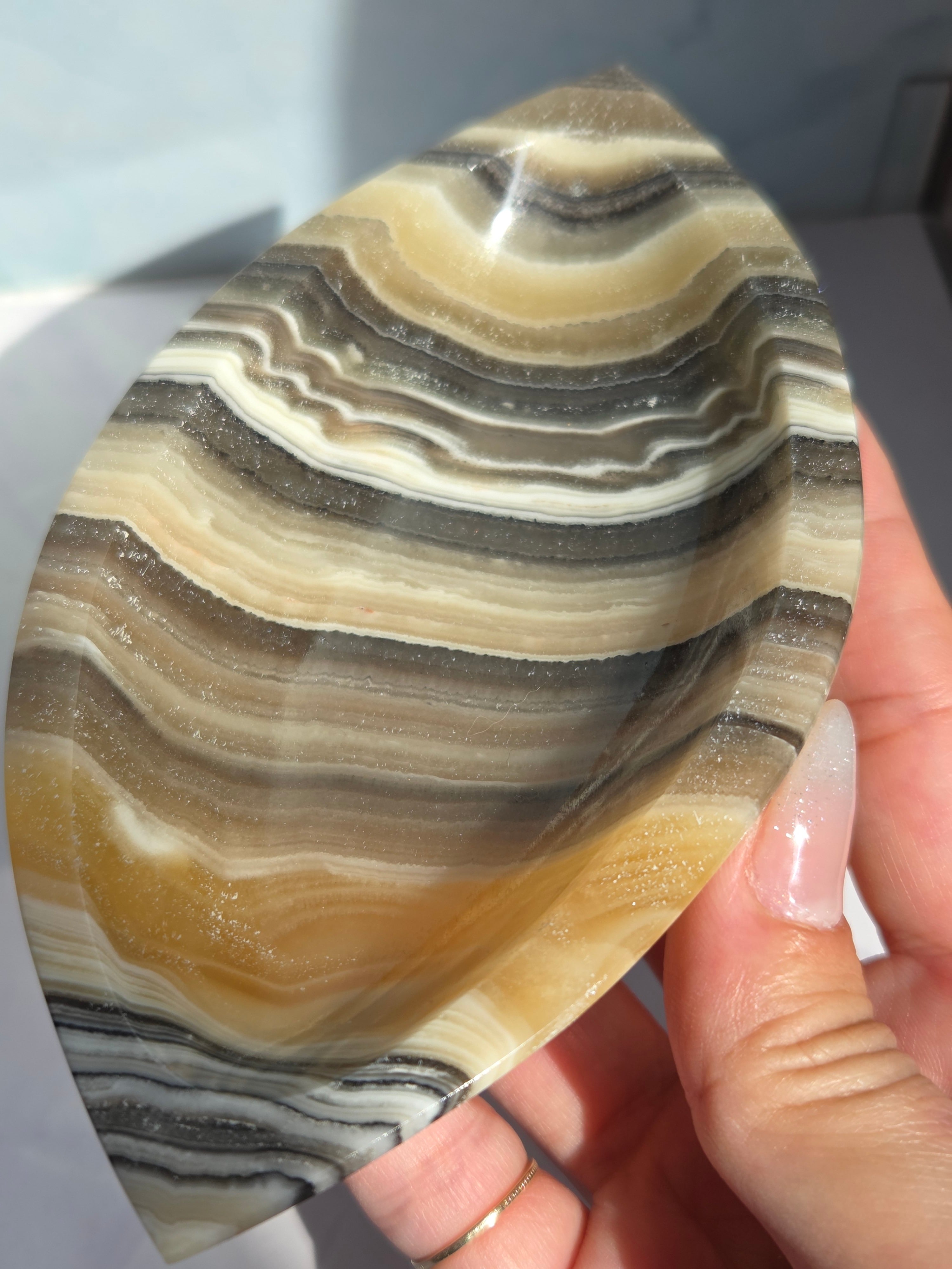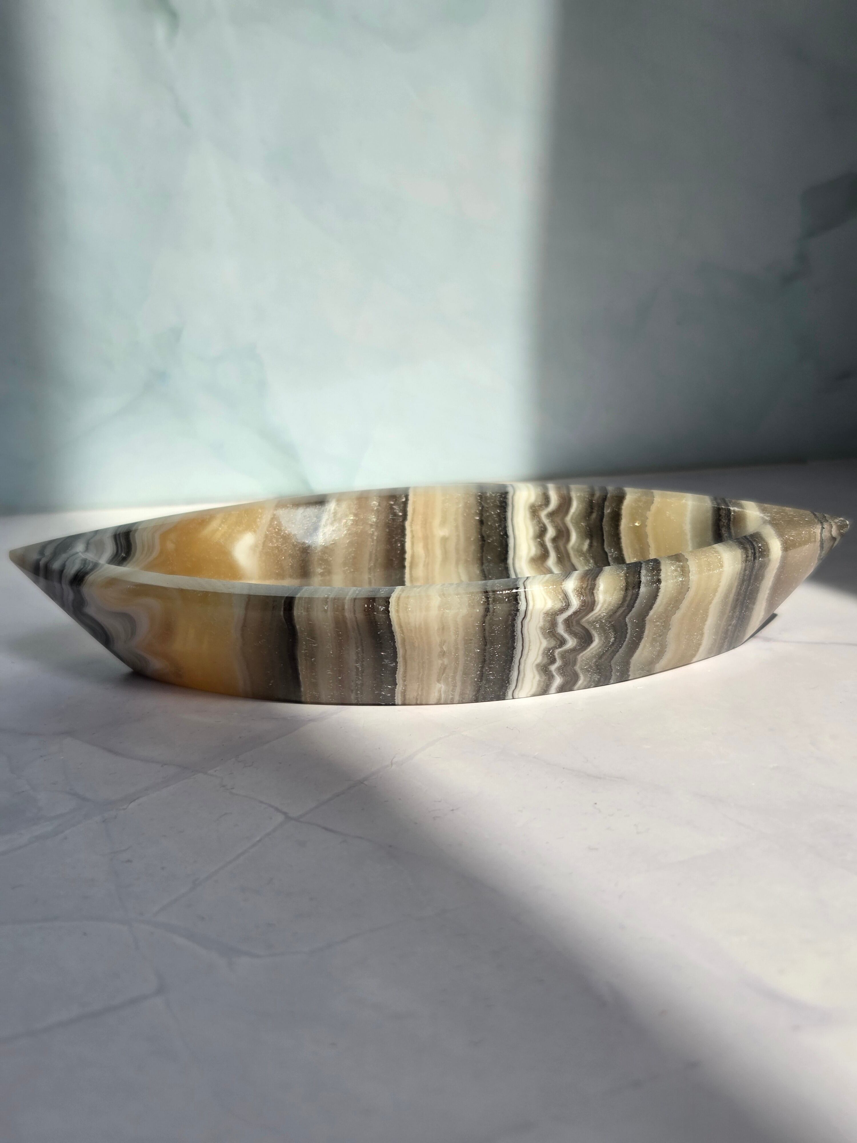 アートスティックな模様がかっこいいゼブラカルサイトをスタイリッシュな形に仕上げたアクセサリートレイです。