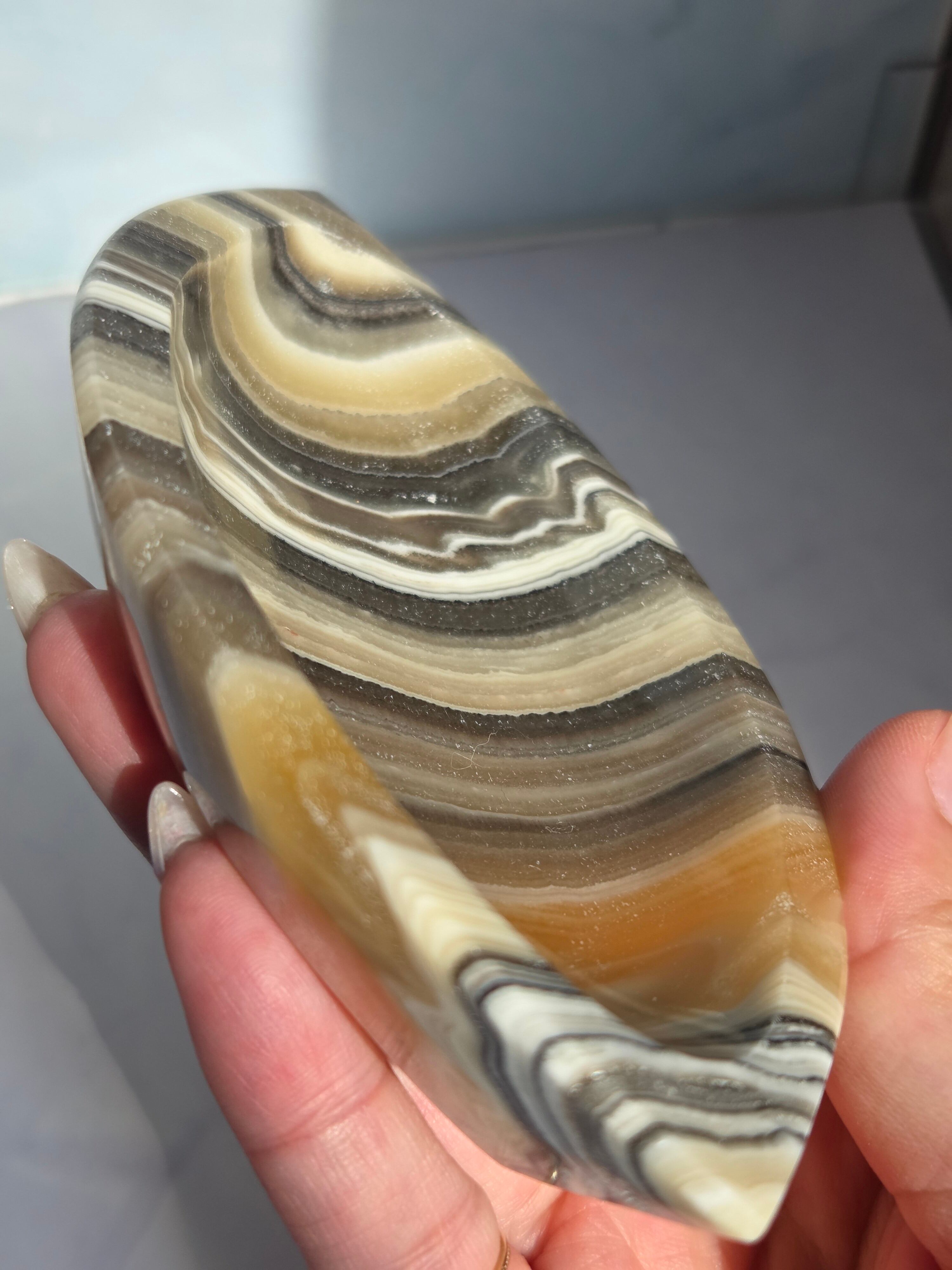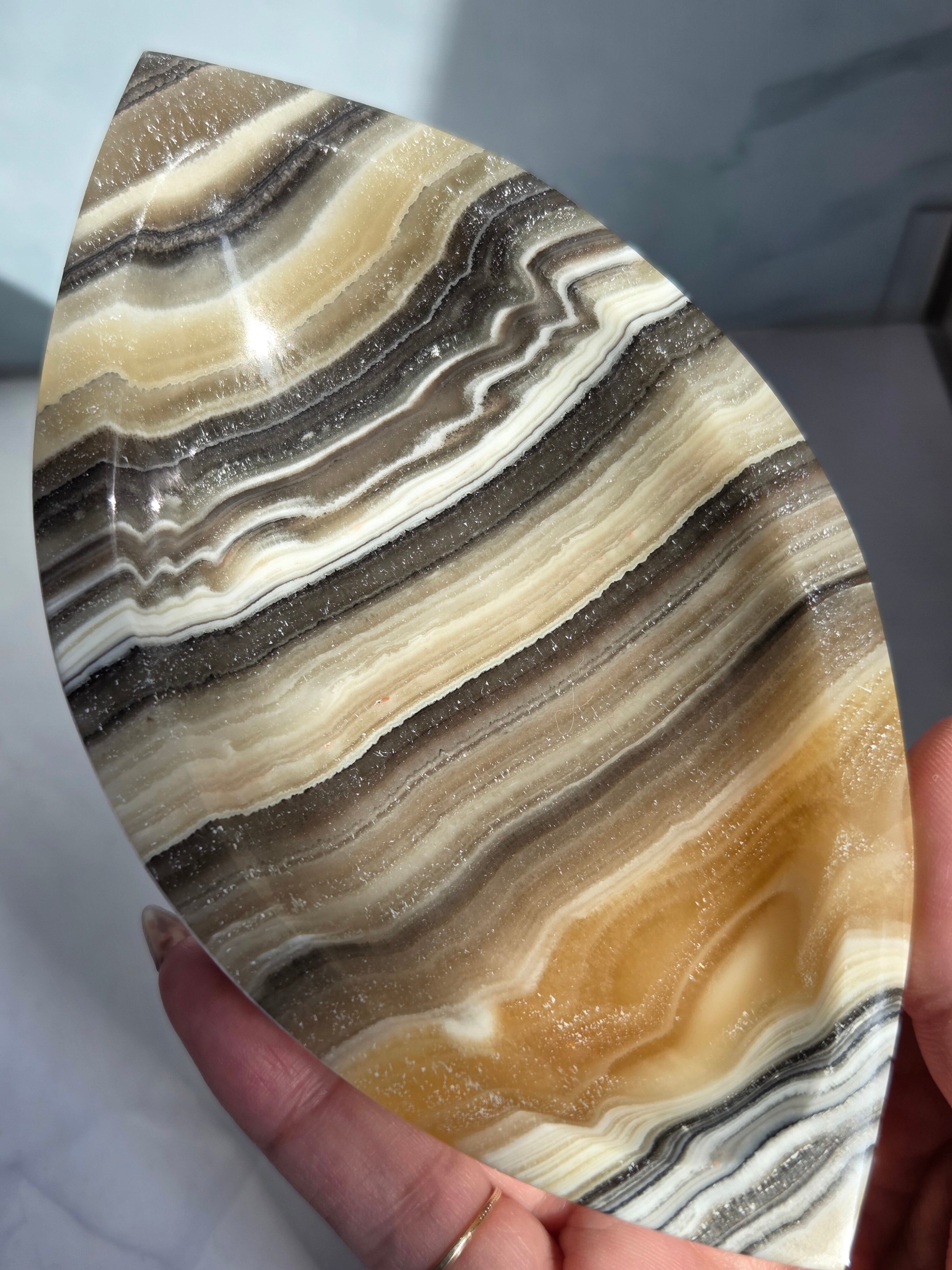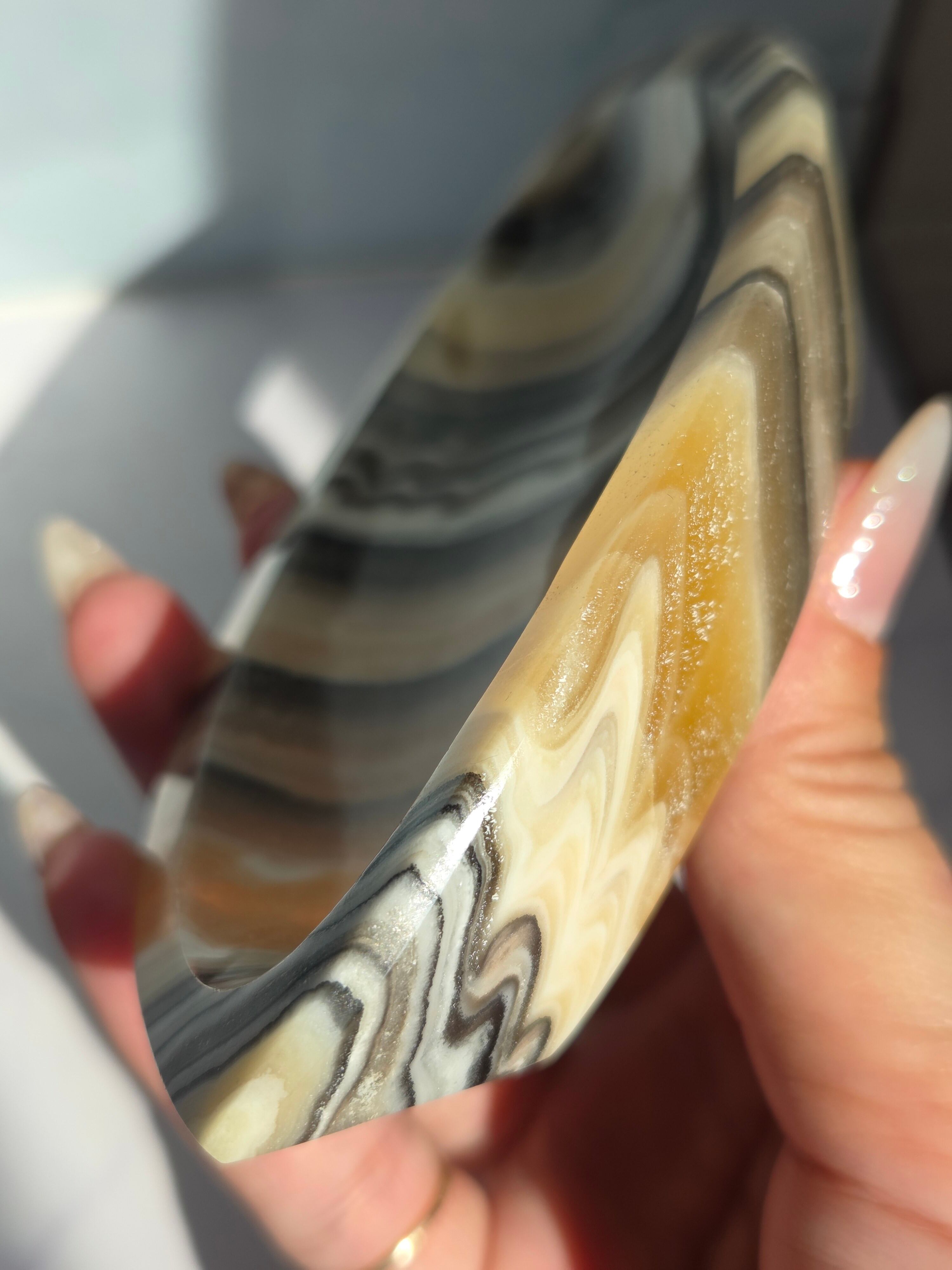 アートスティックな模様がかっこいいゼブラカルサイトをスタイリッシュな形に仕上げたアクセサリートレイです。