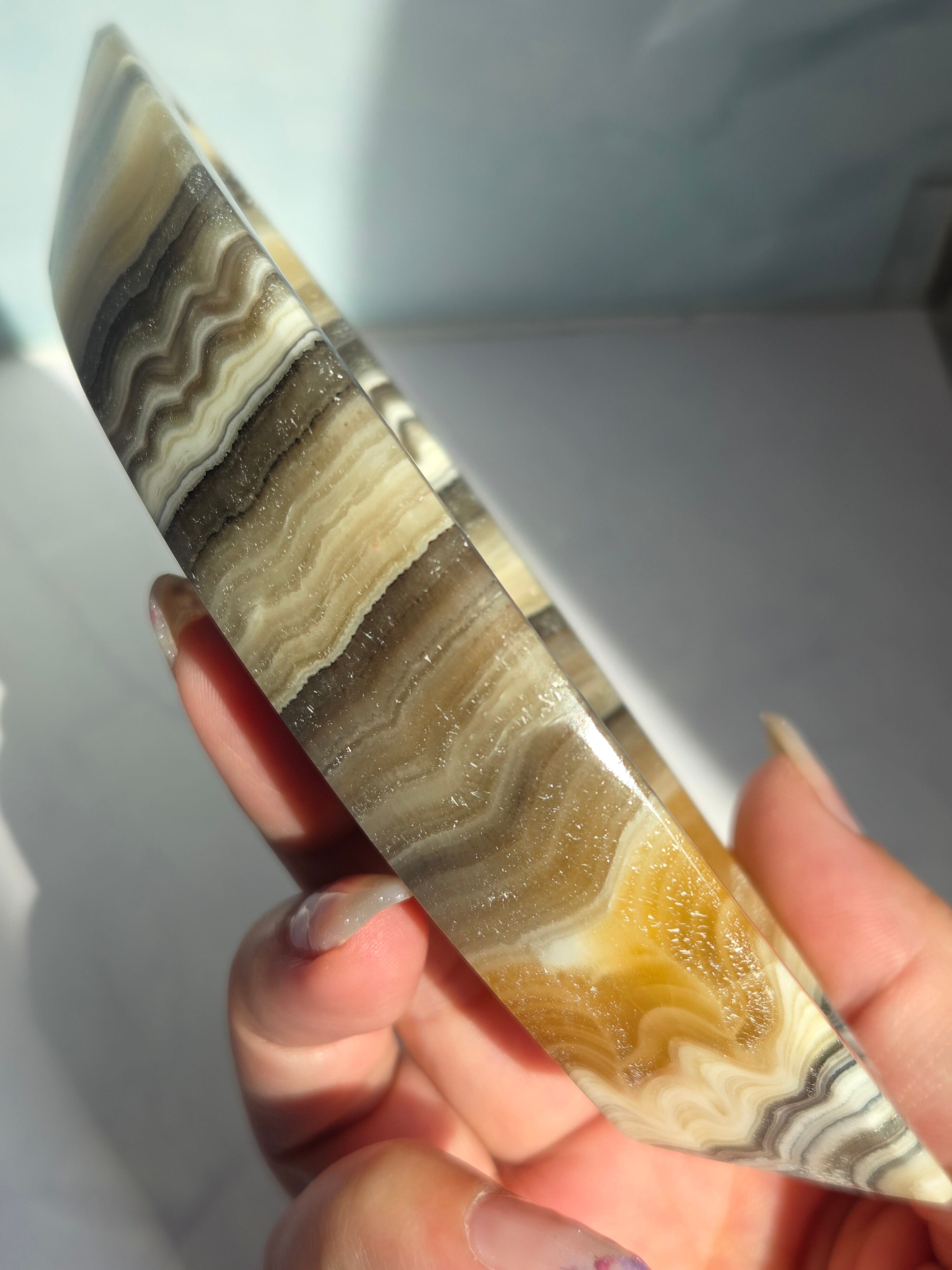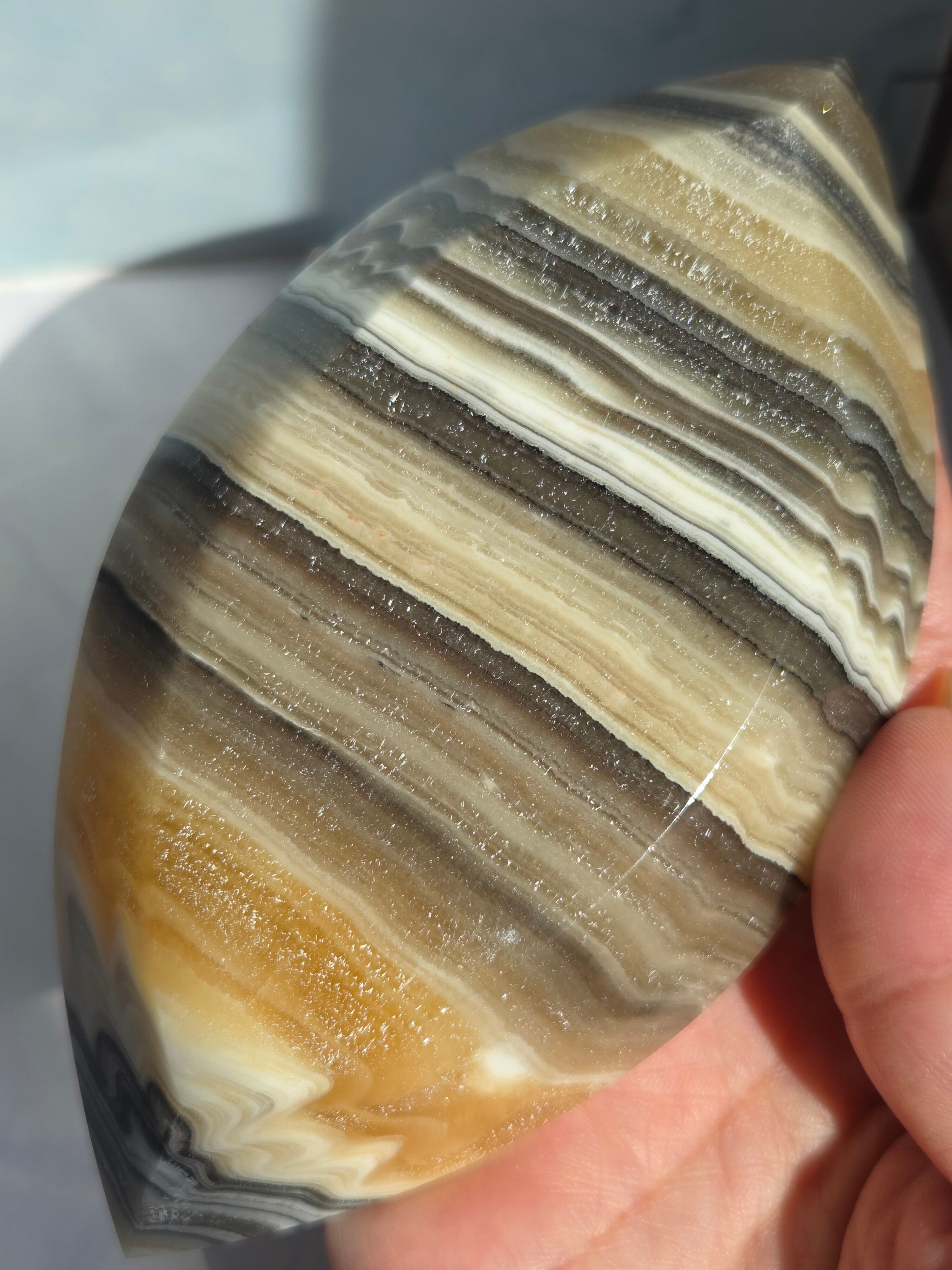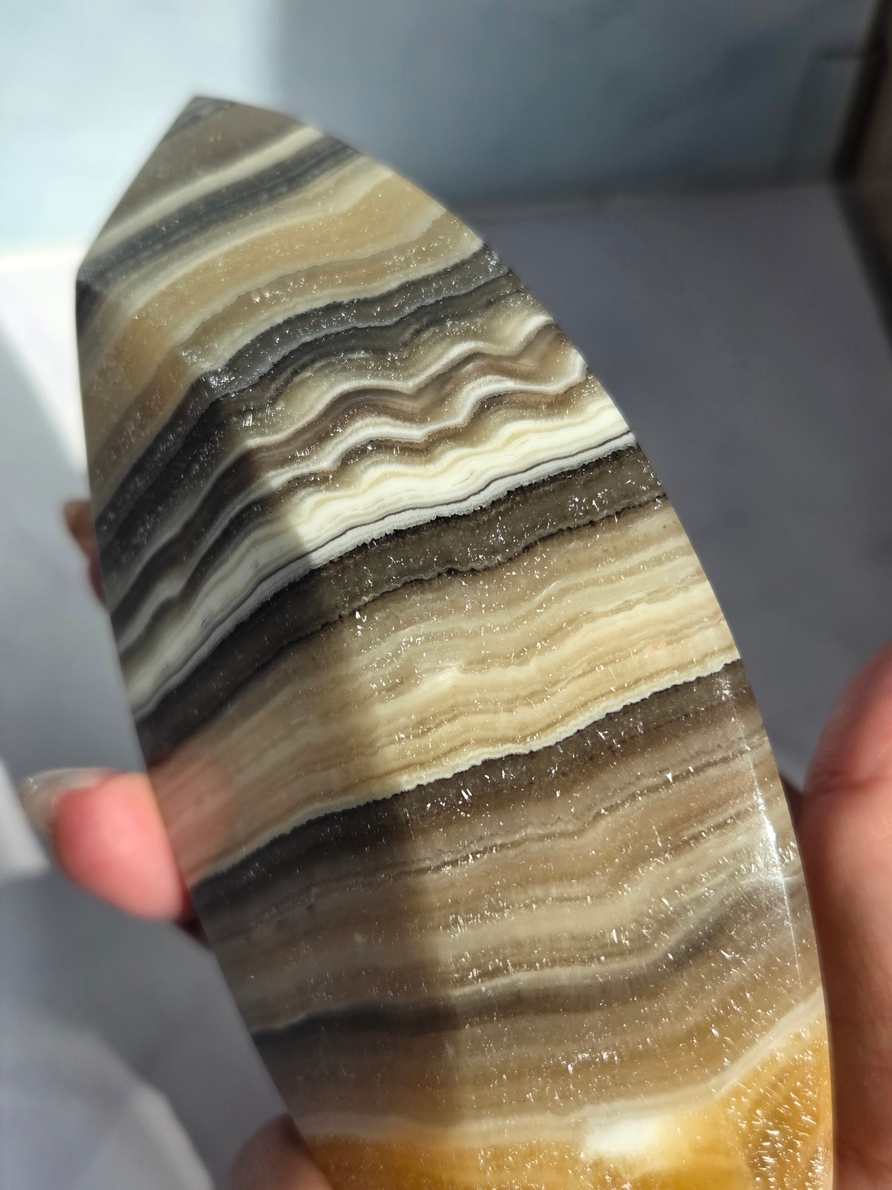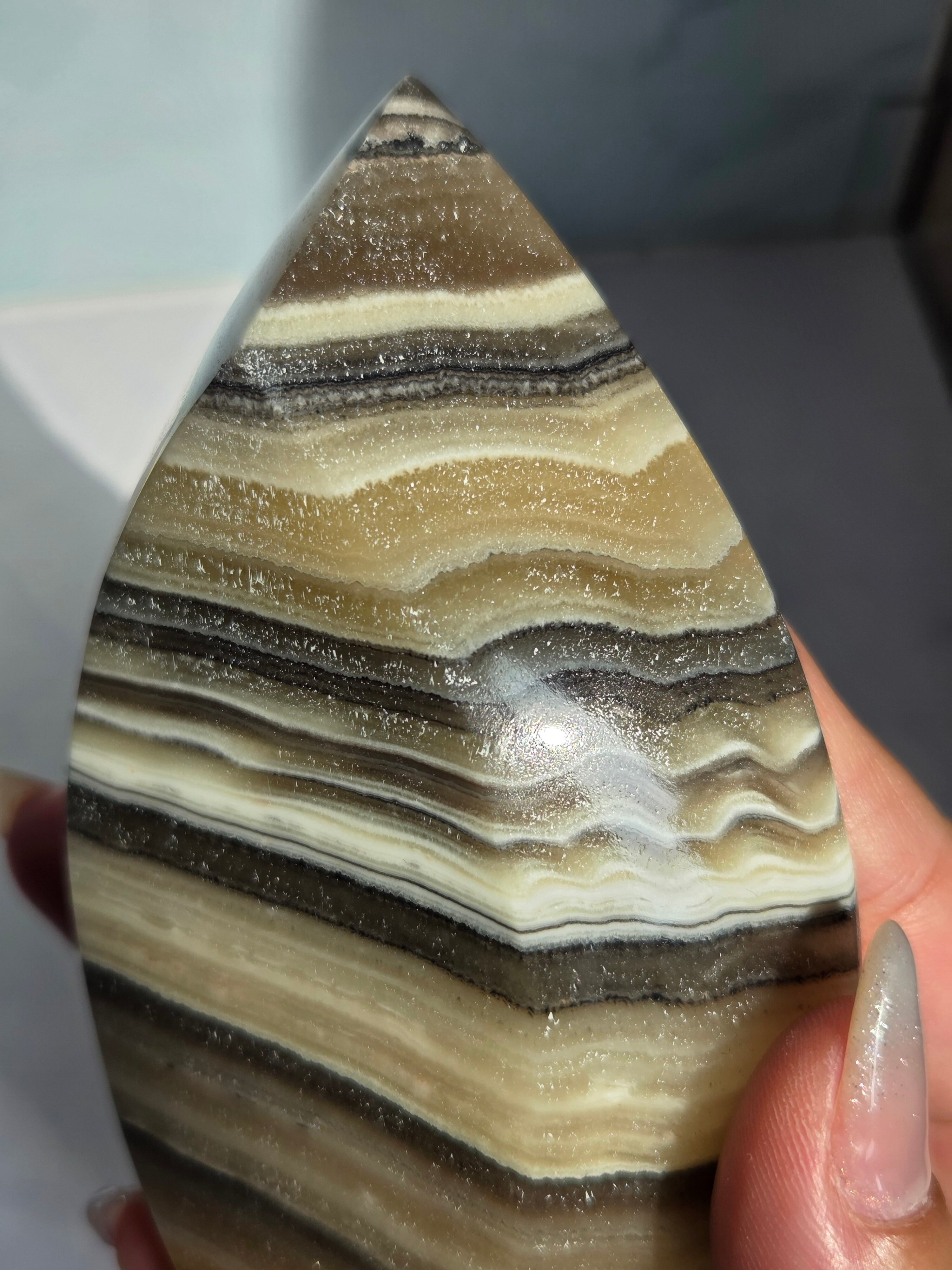 ゼブラカルサイトは、白(カルサイト)と黒(不純物)が縞模様を描く、個性的でモノトーンな表情が魅力の天然石です。
