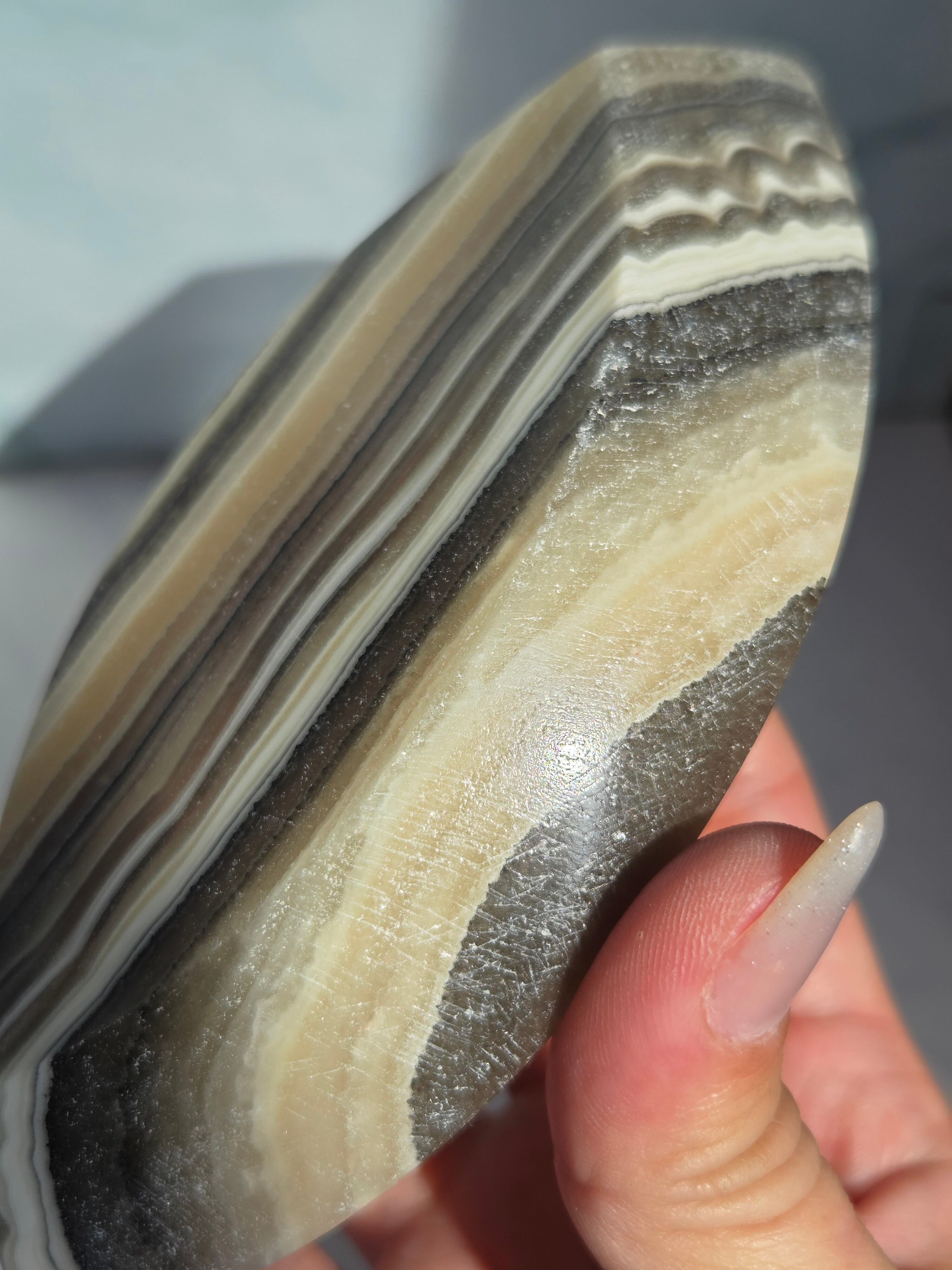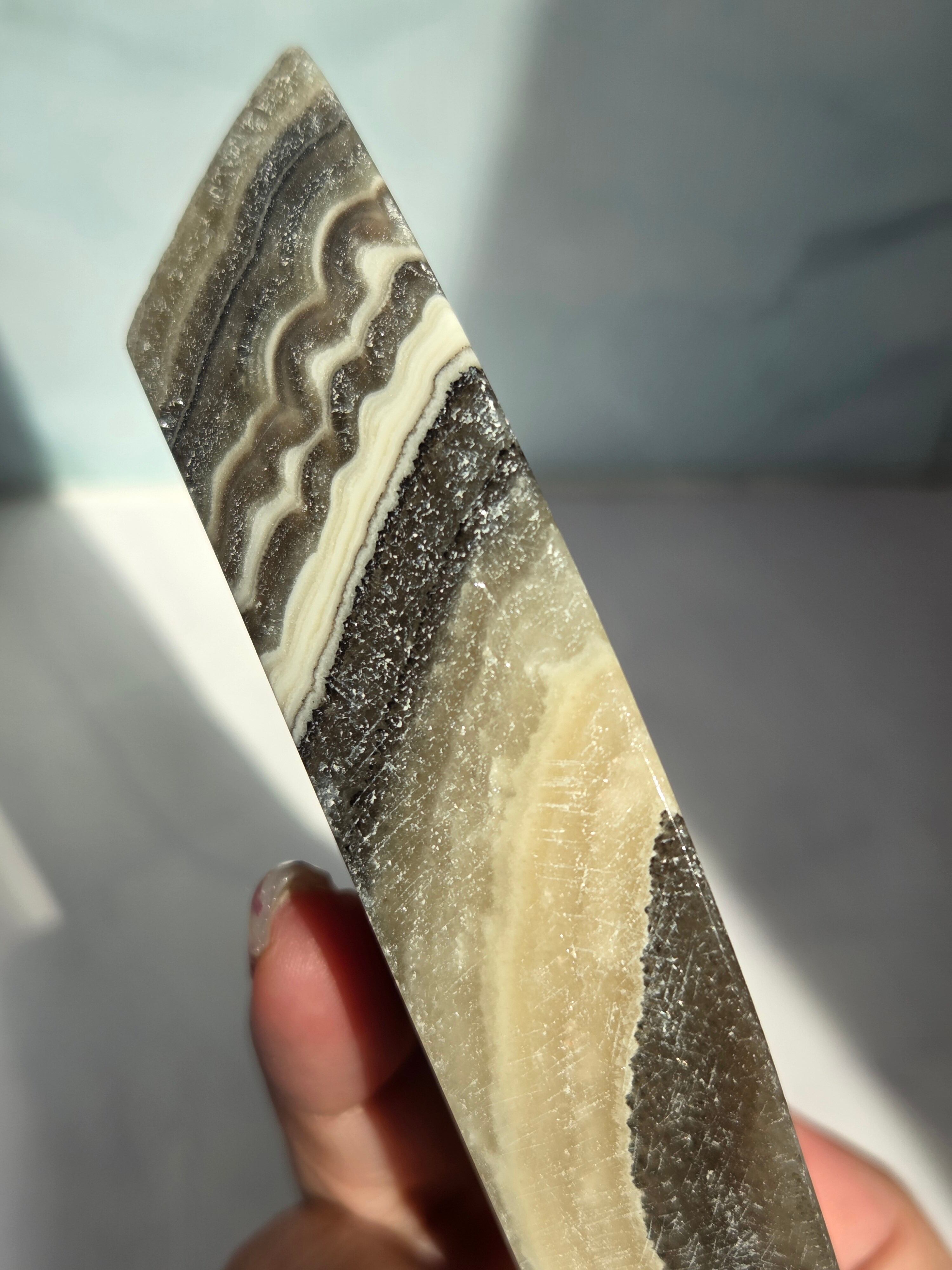ゼブラカルサイトは、白(カルサイト)と黒(不純物)が縞模様を描く、個性的でモノトーンな表情が魅力の天然石です。