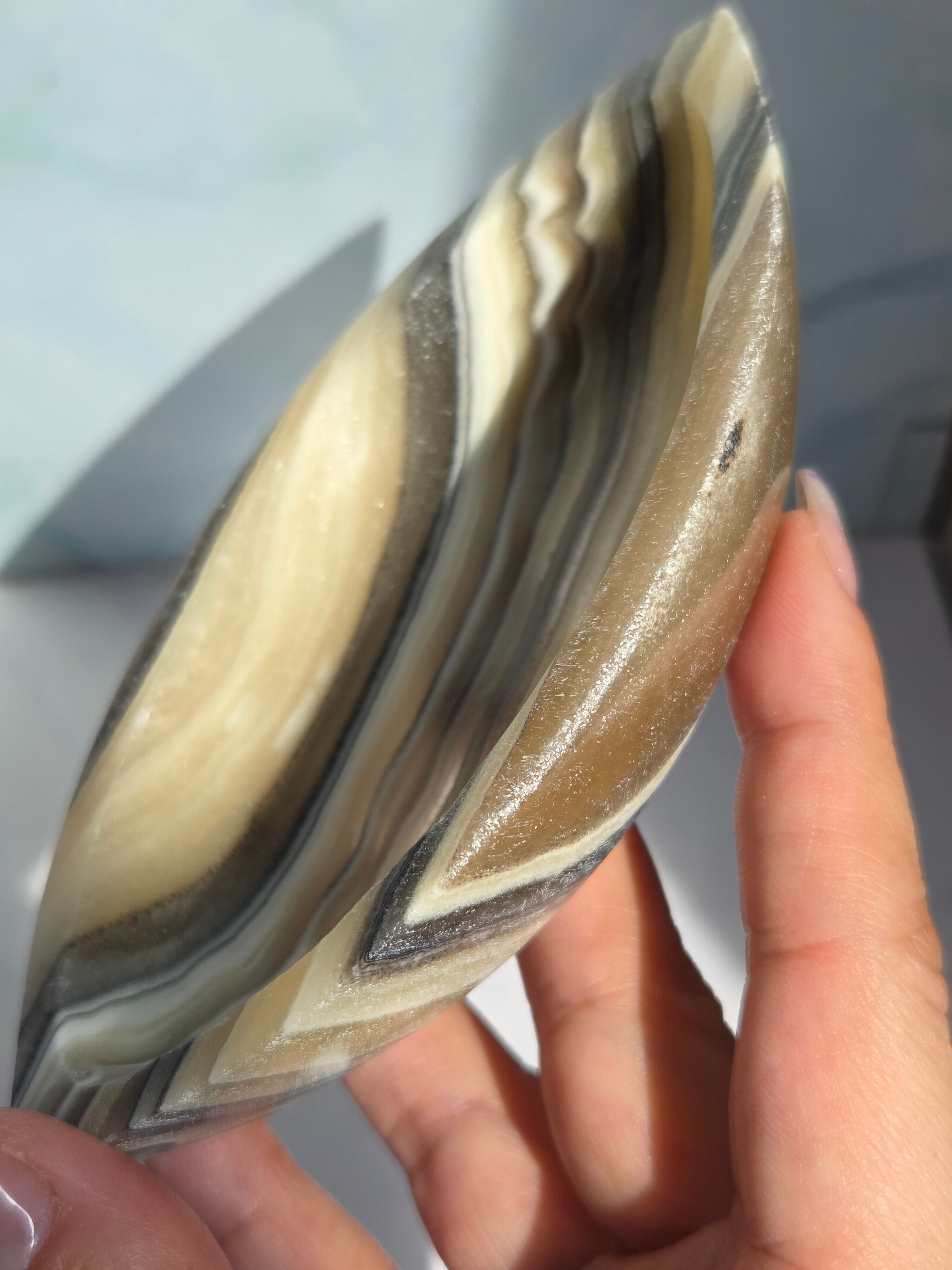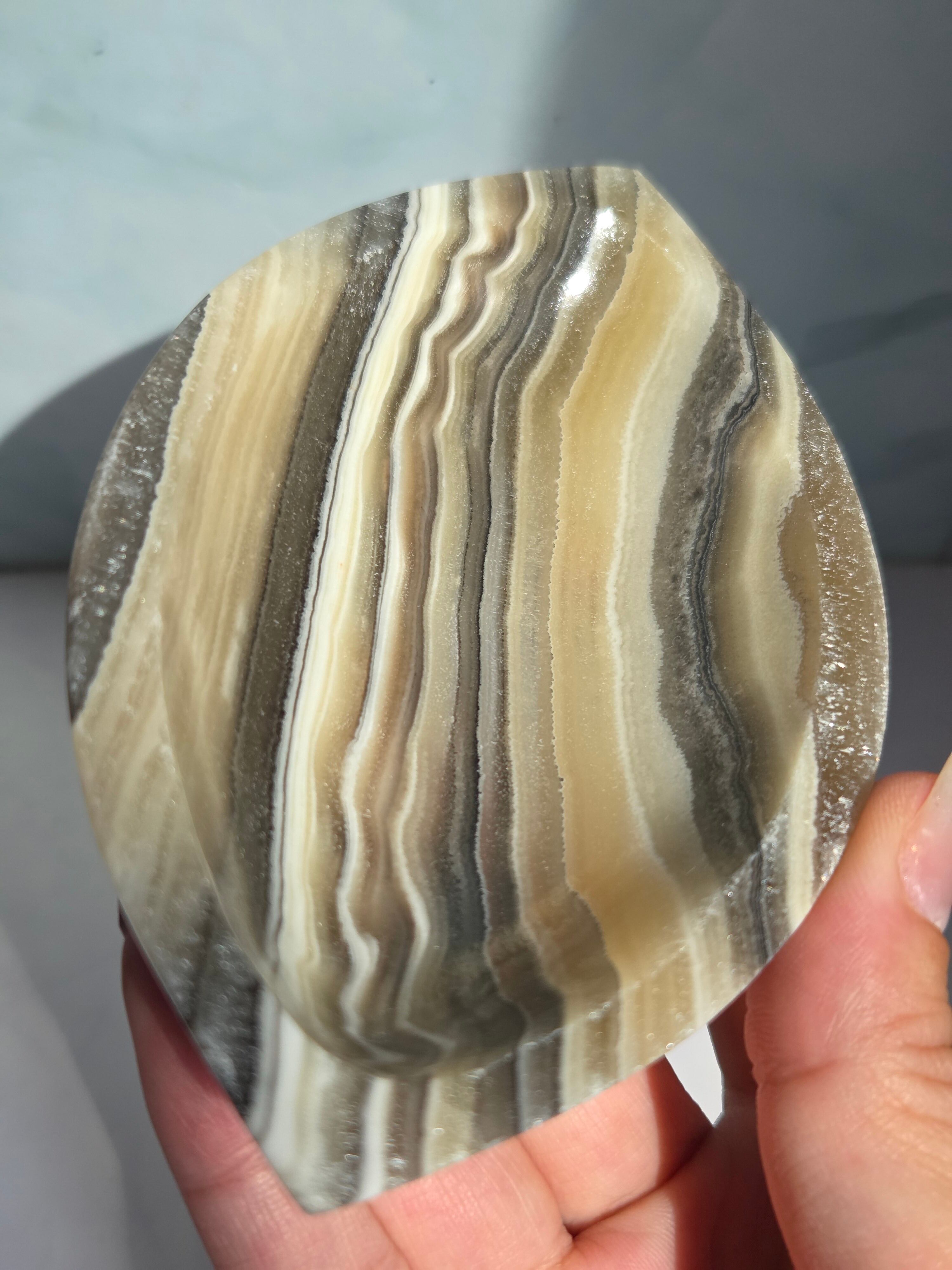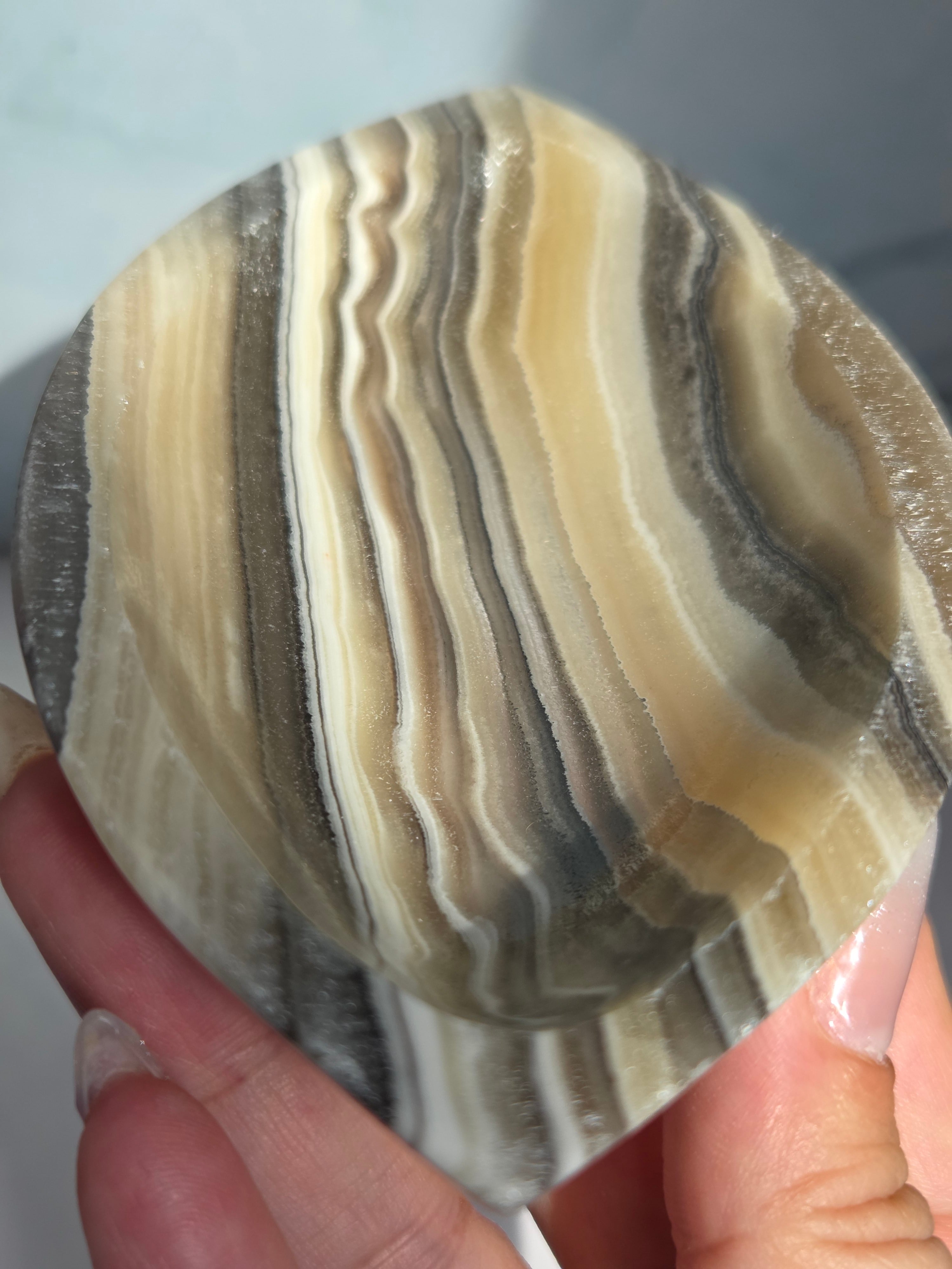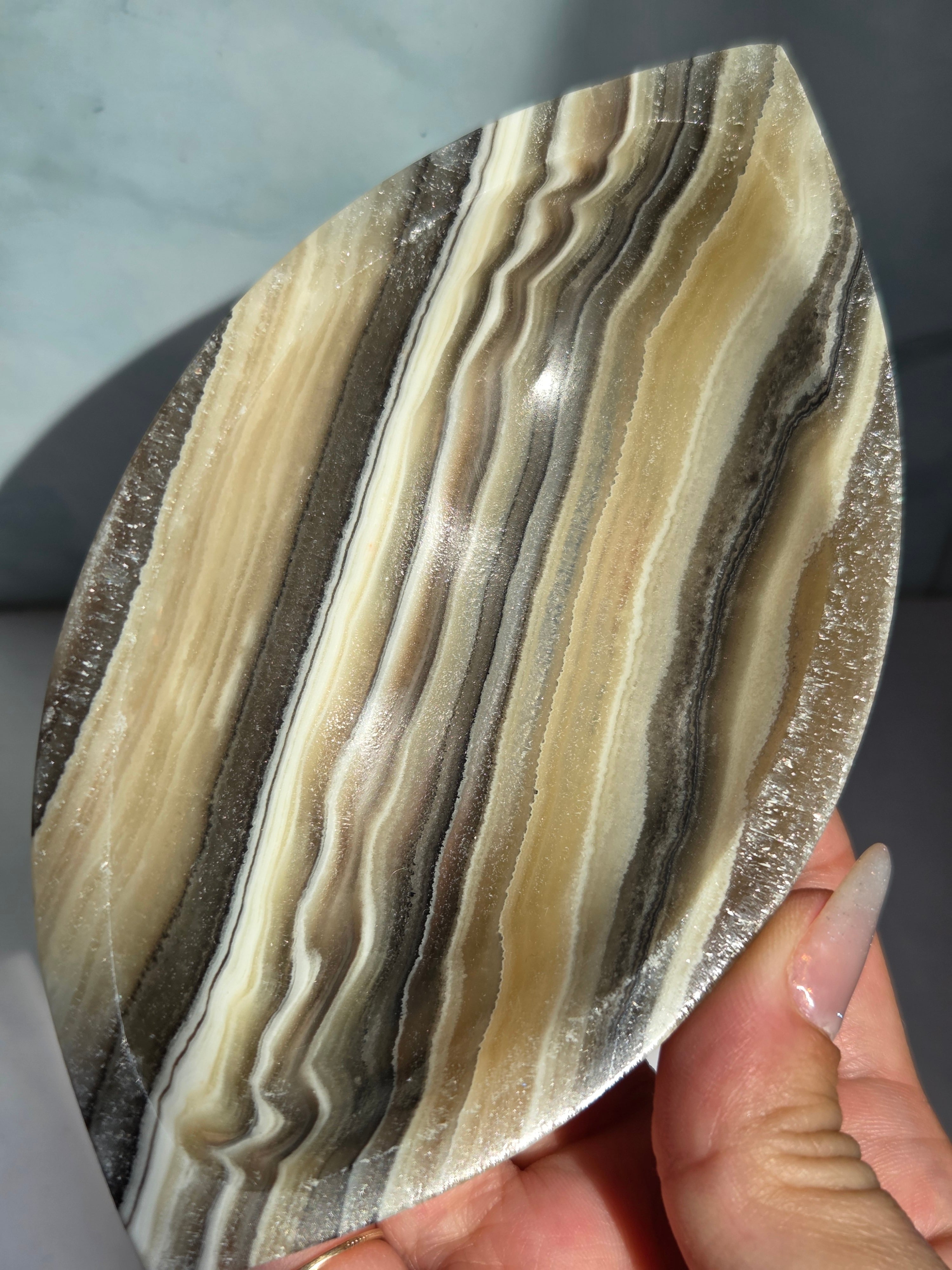 アートスティックな模様がかっこいいゼブラカルサイトをスタイリッシュな形に仕上げたアクセサリートレイです。