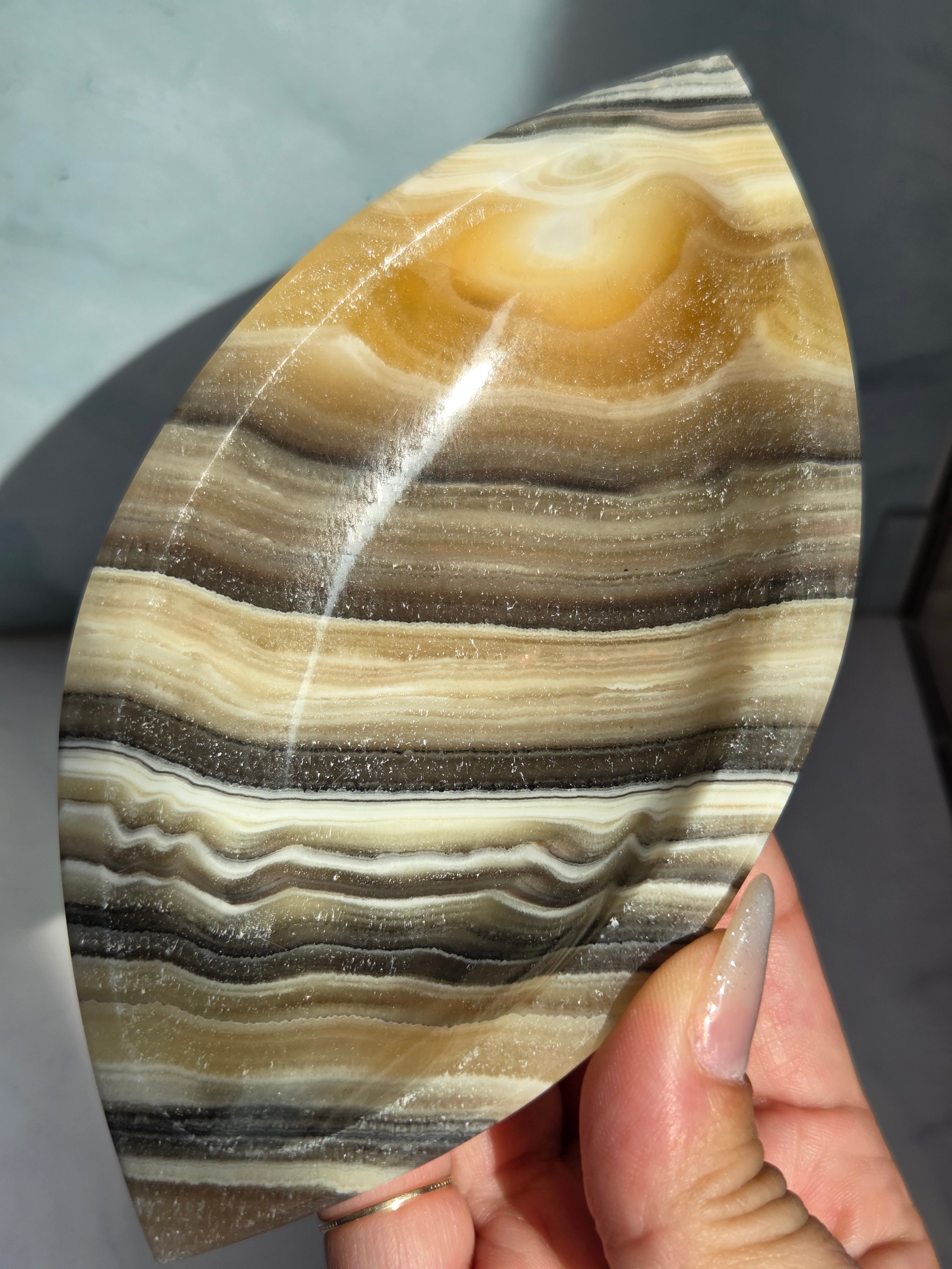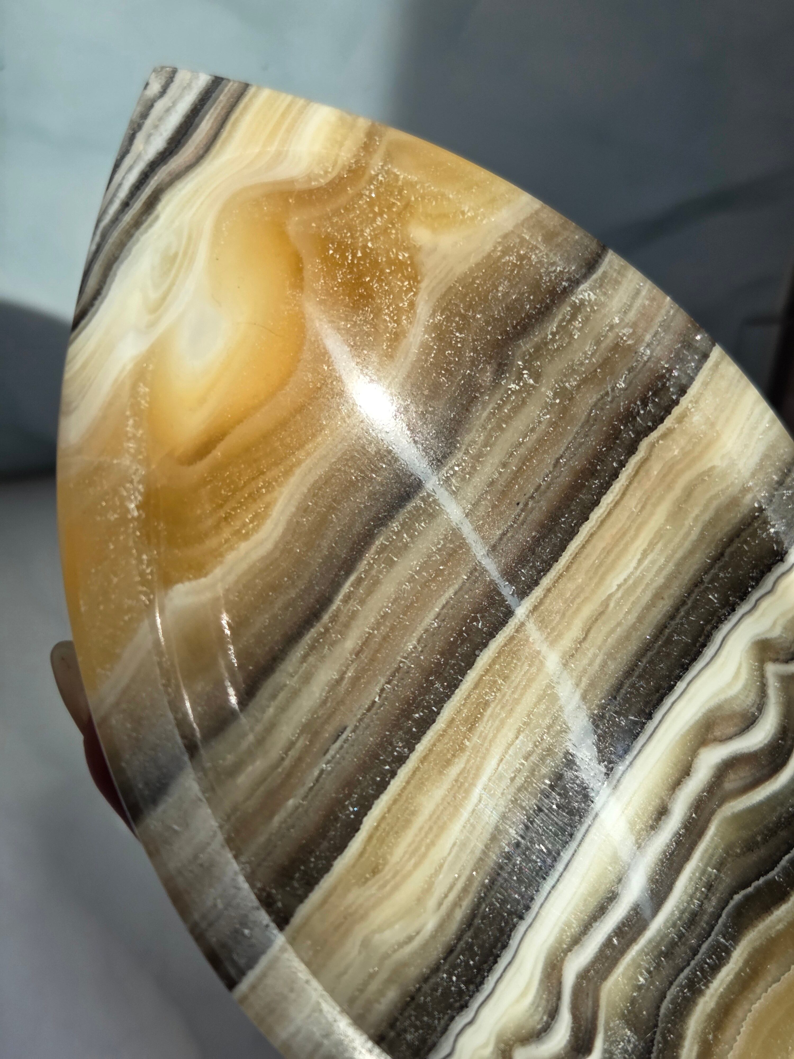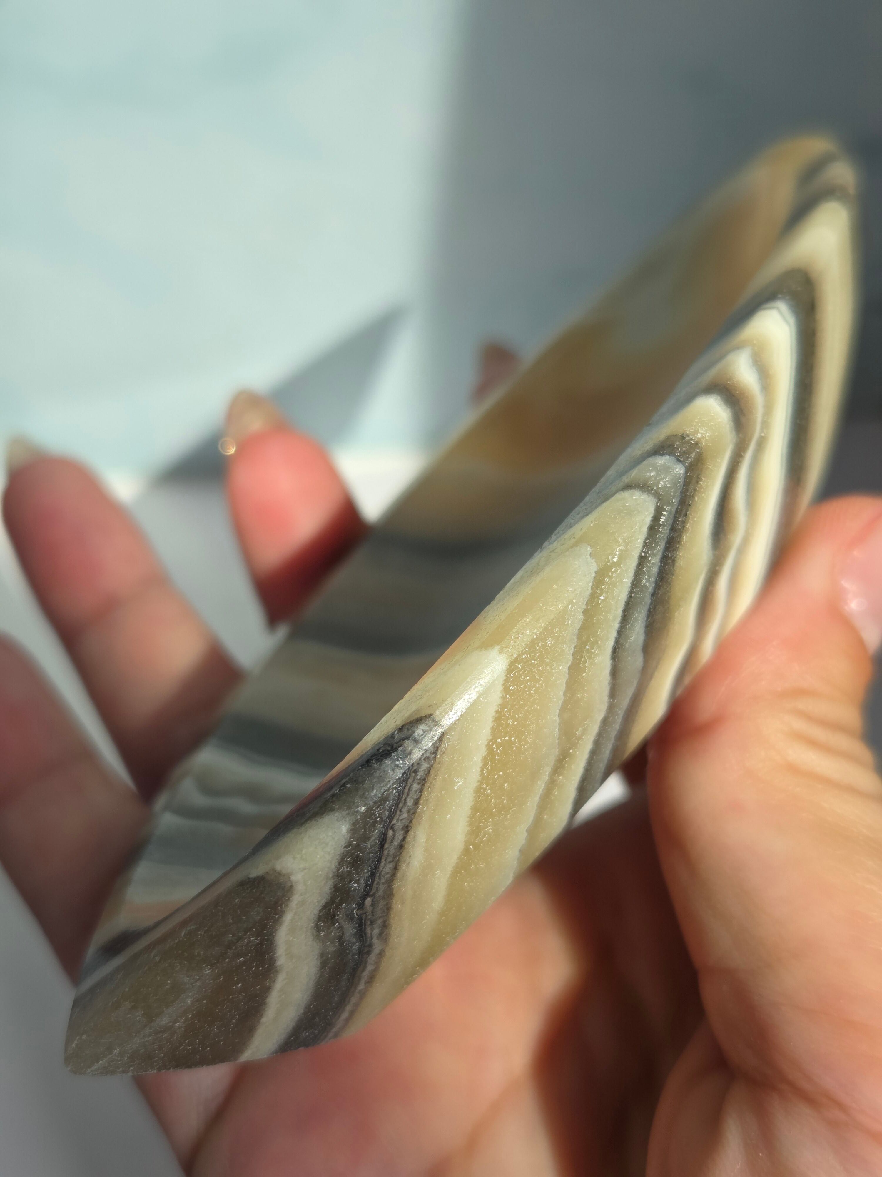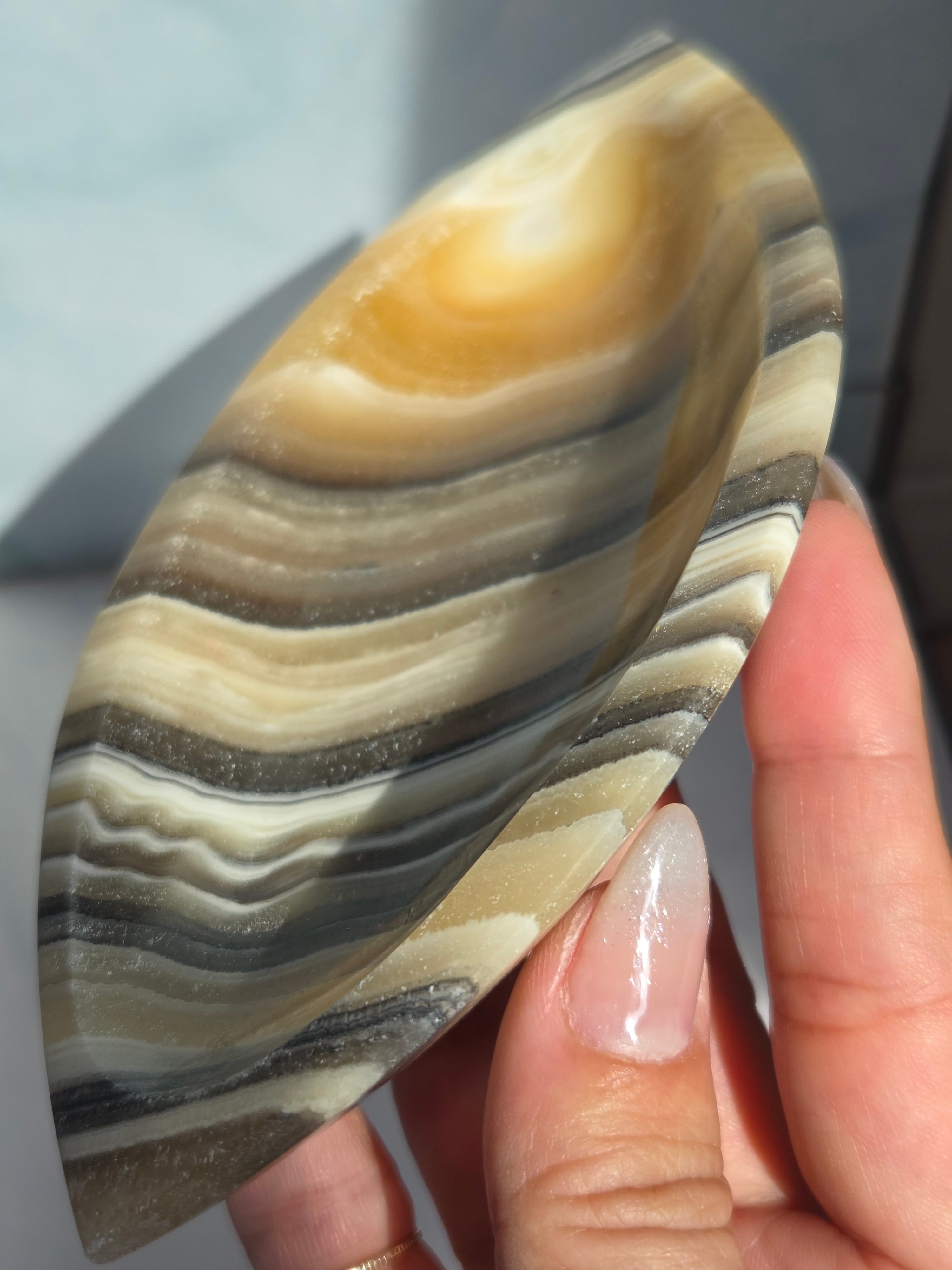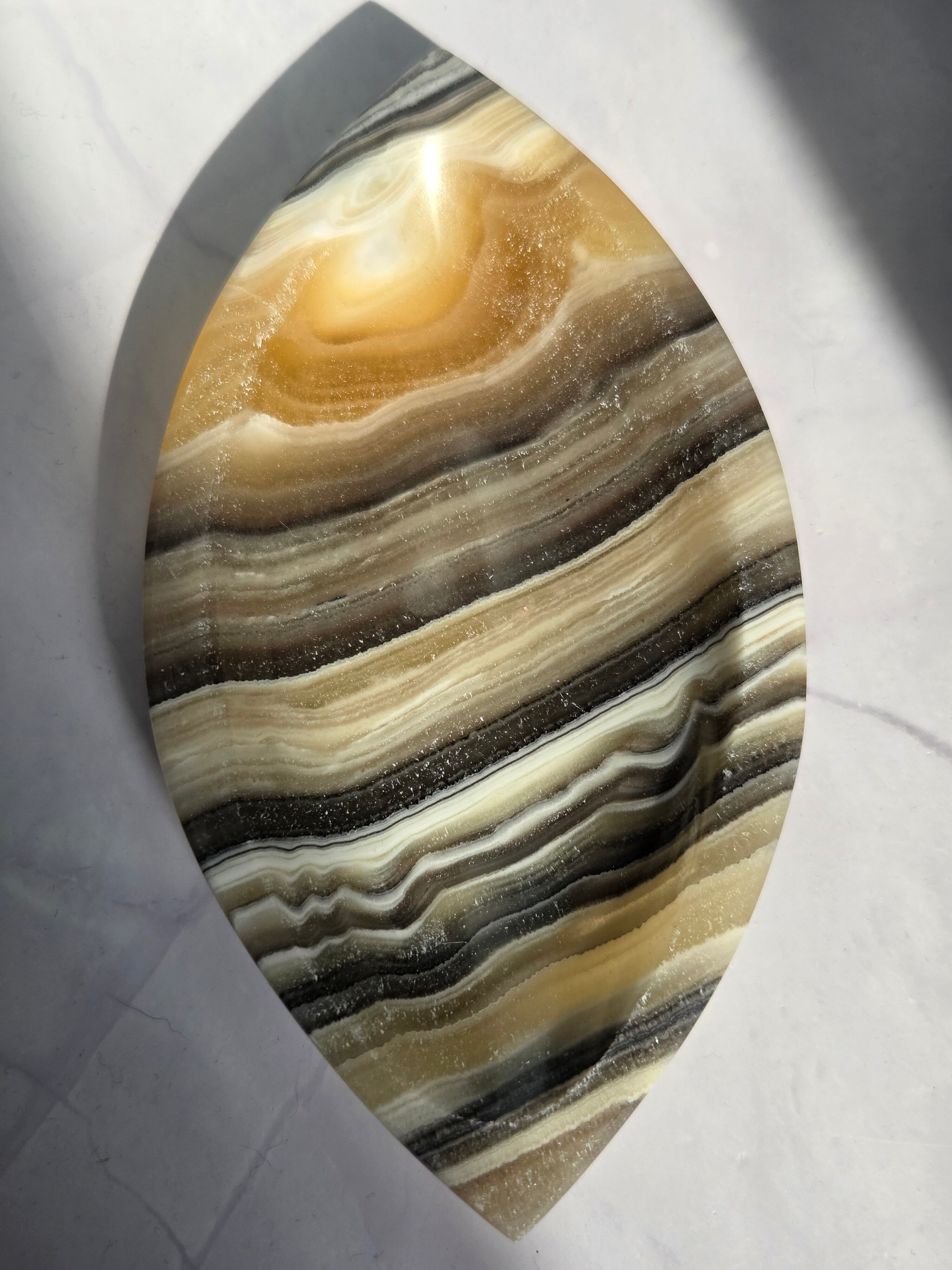 アートスティックな模様がかっこいいゼブラカルサイトをスタイリッシュな形に仕上げたアクセサリートレイです。