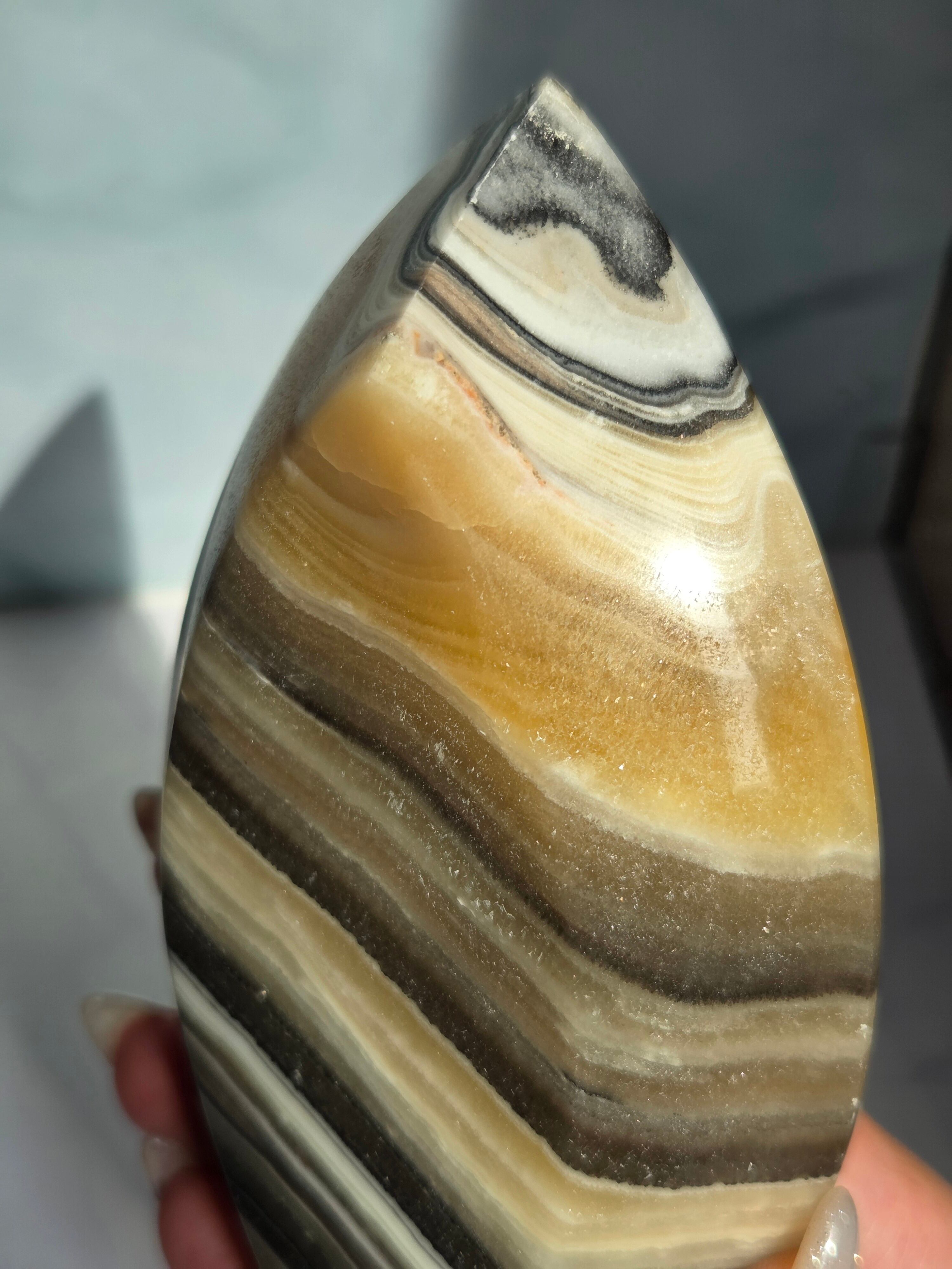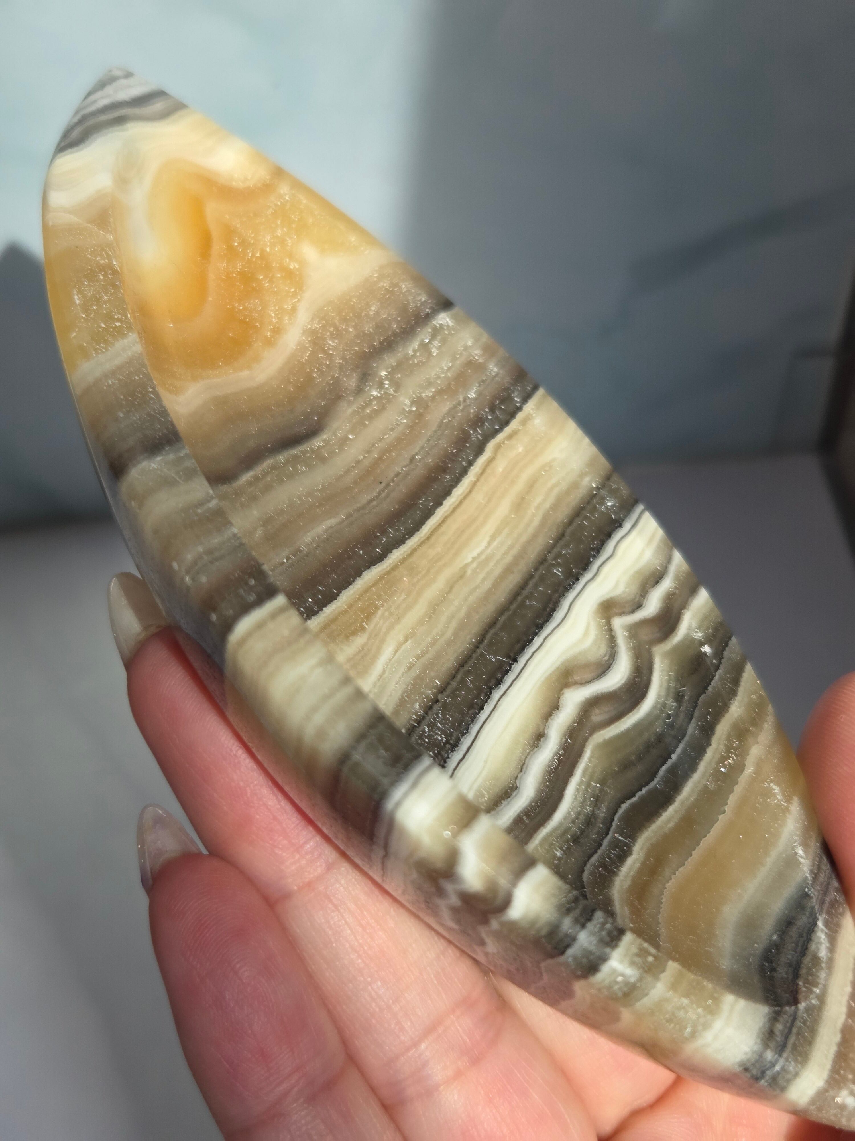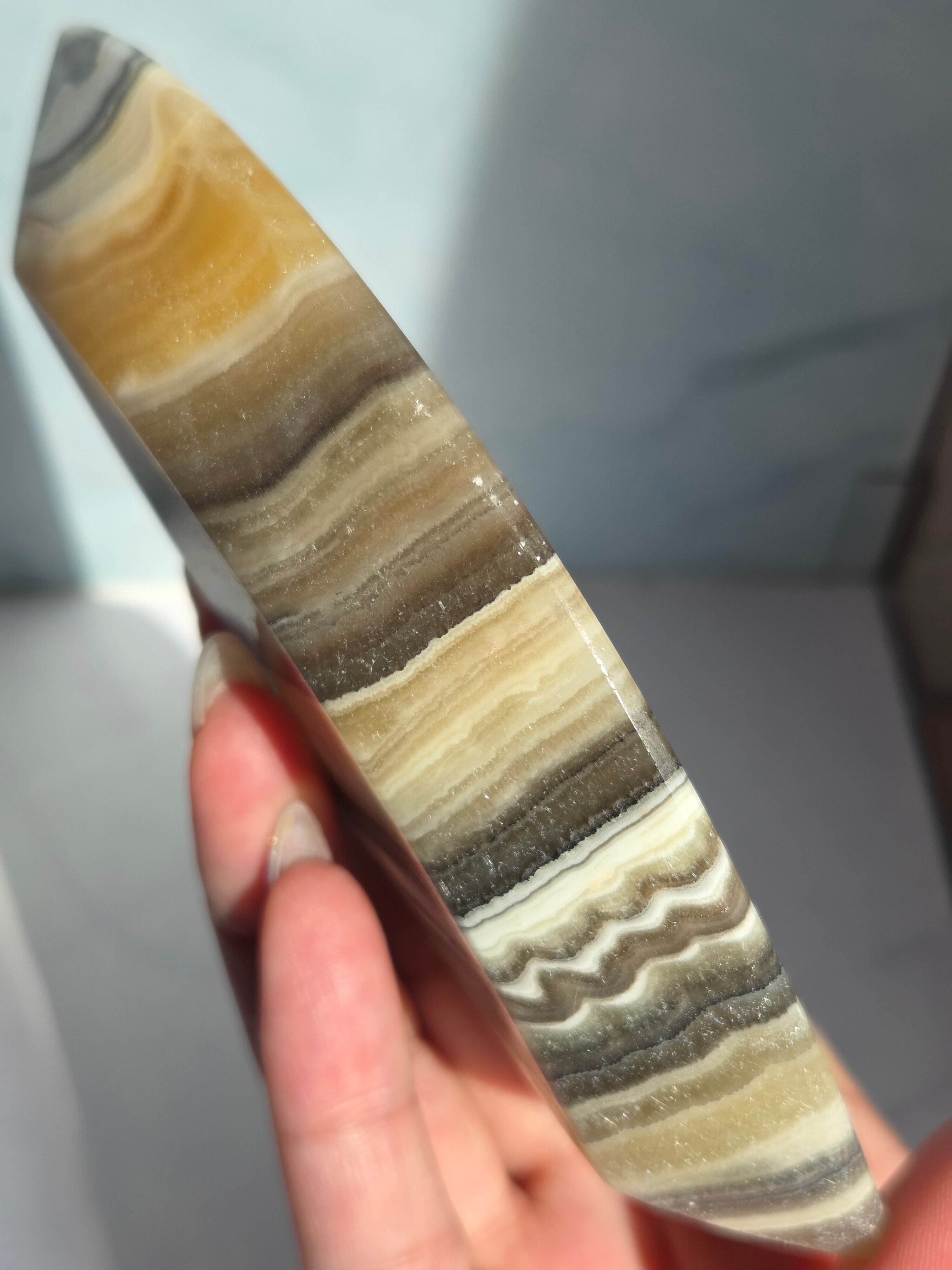ゼブラカルサイトは、白(カルサイト)と黒(不純物)が縞模様を描く、個性的でモノトーンな表情が魅力の天然石です。