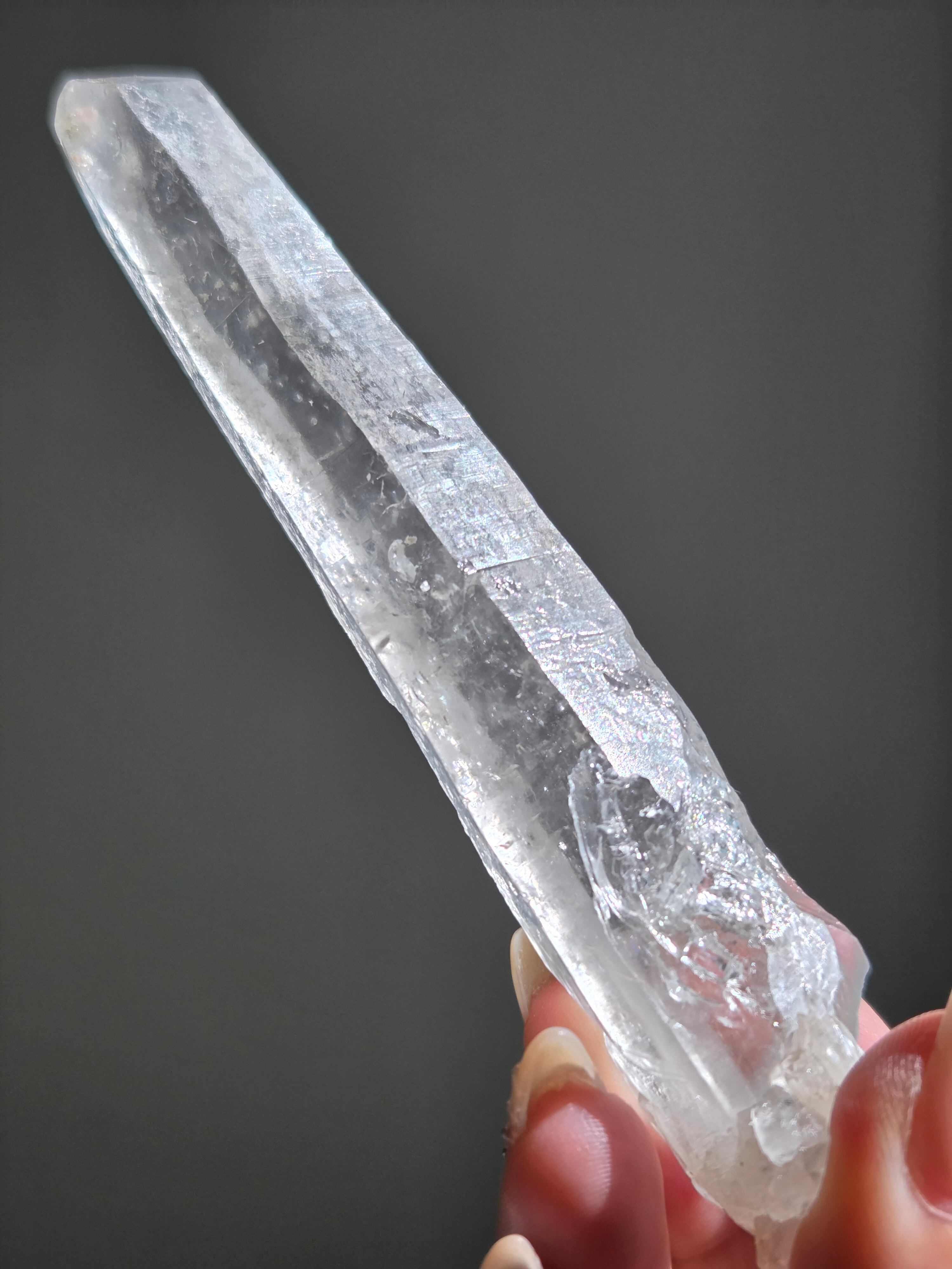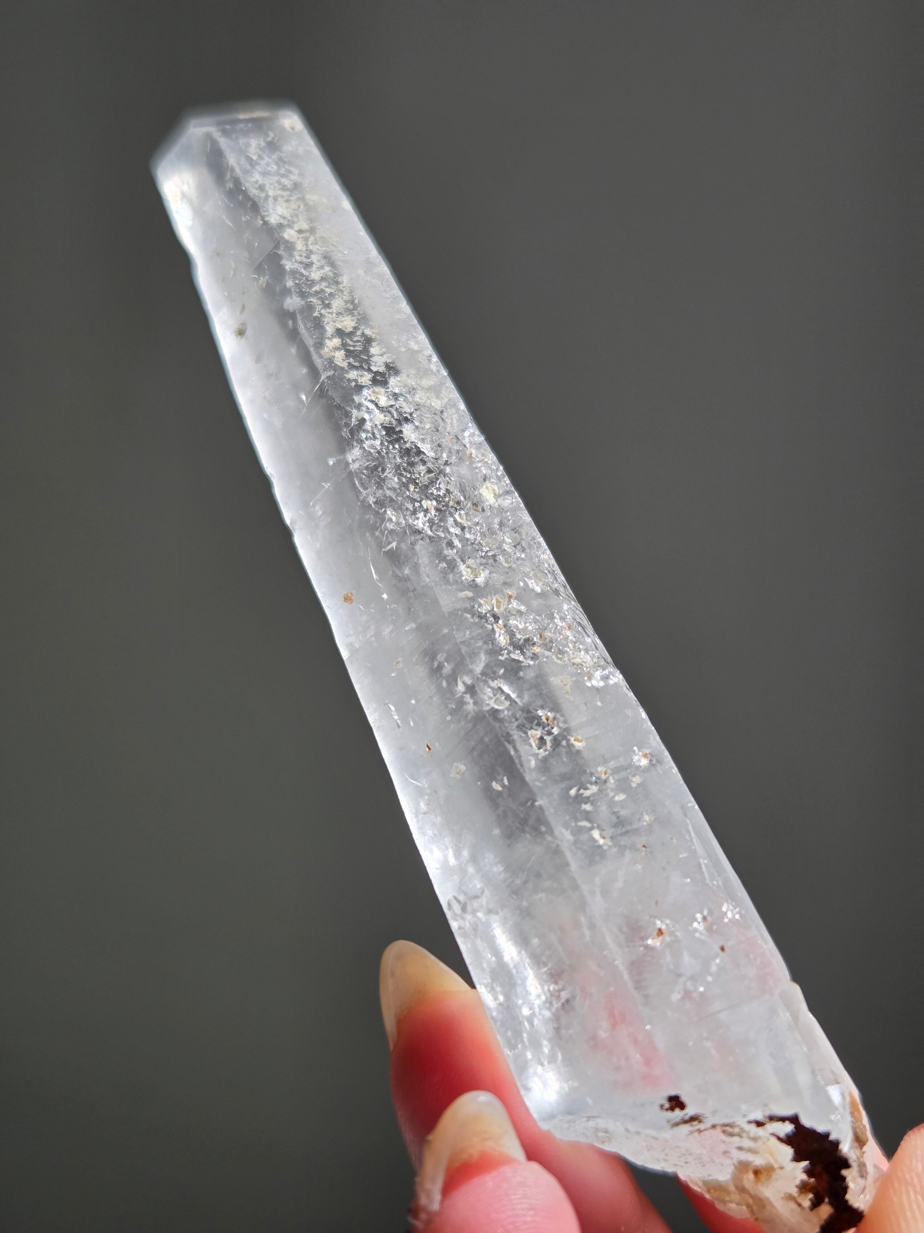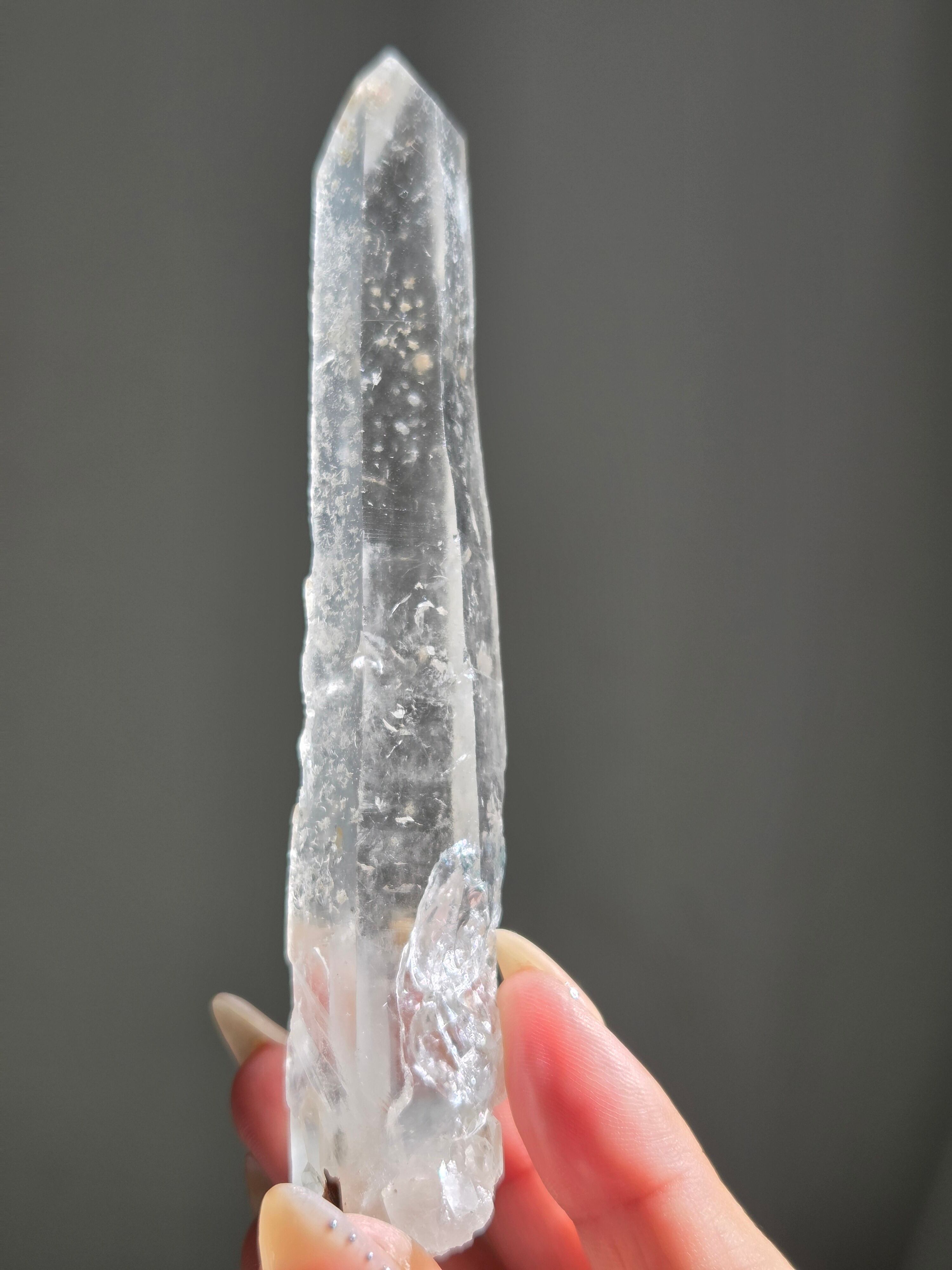 レーザー光線のように細長い結晶で、エネルギーを一点に集中させ、強力に放射するワンドとして。また、ヒーリング(結界、ネガティブエネルギーの切り裂き)、集中力向上、瞑想に用いられます