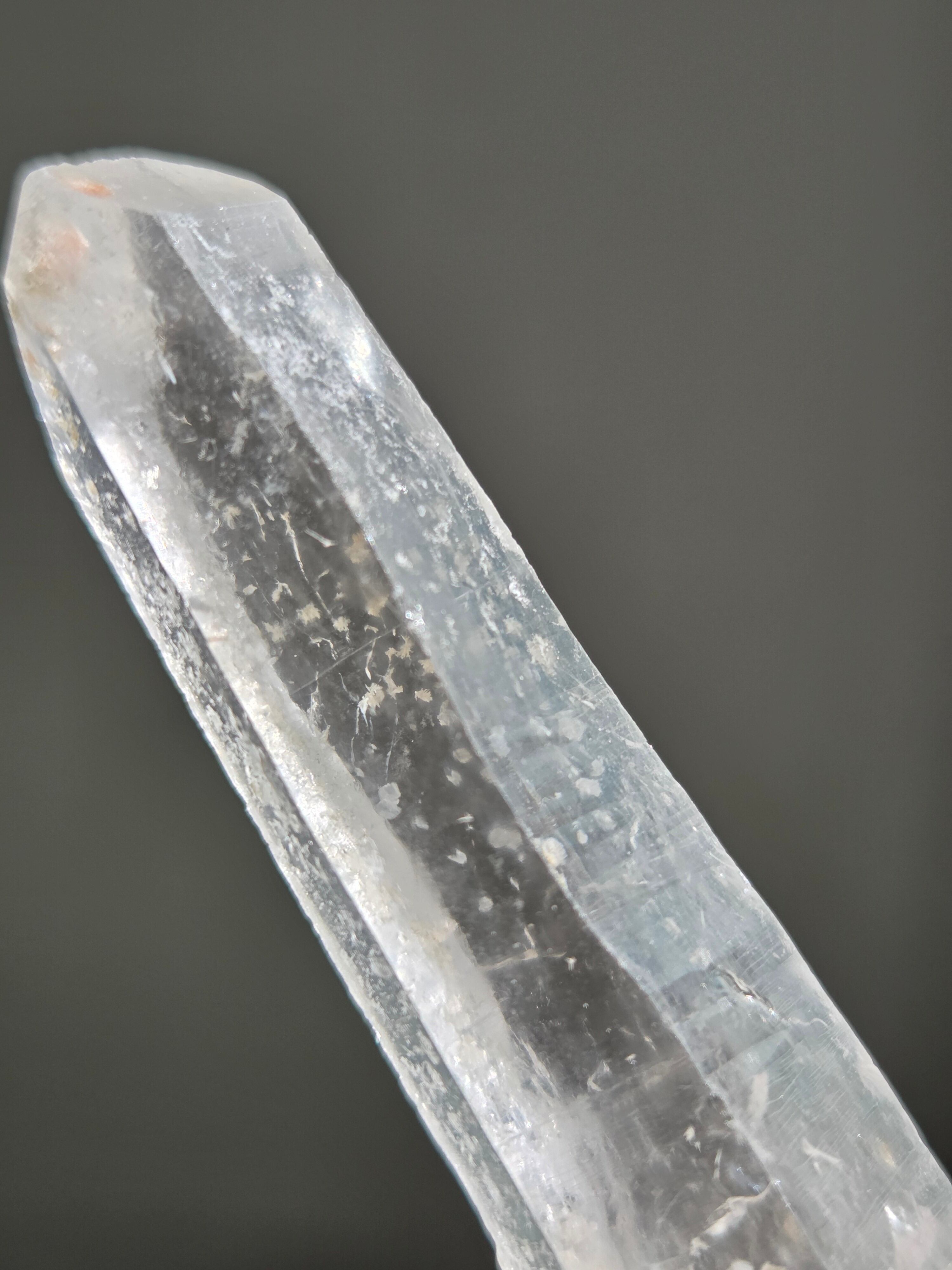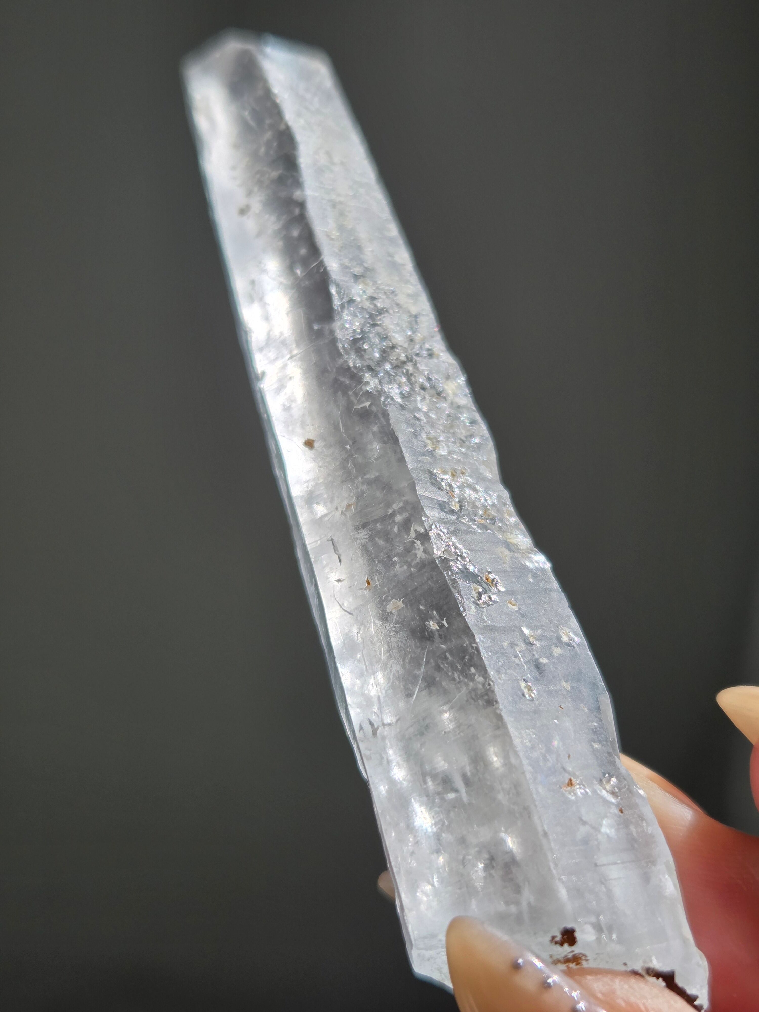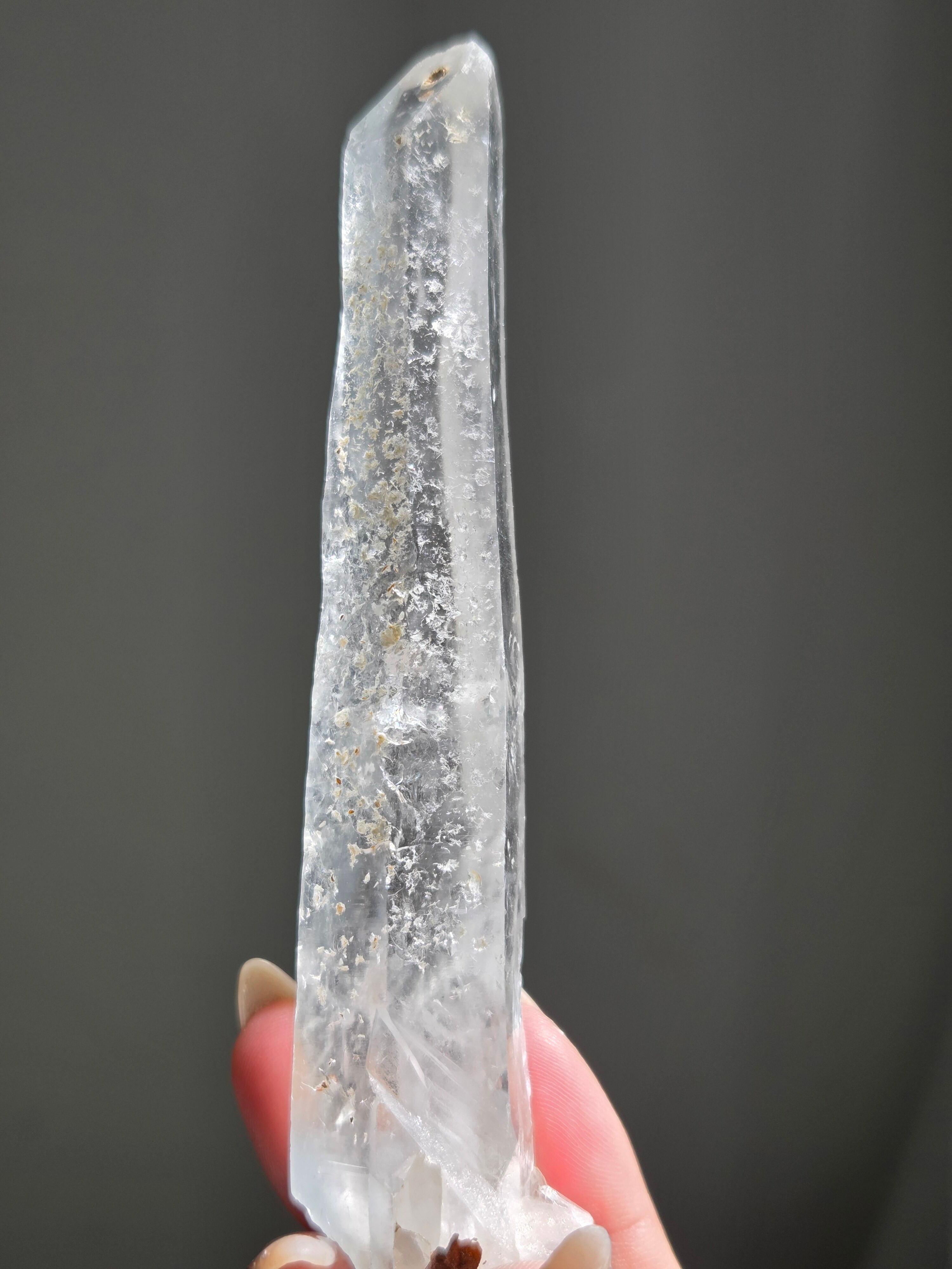 レーザー光線のように細長い結晶で、エネルギーを一点に集中させ、強力に放射するワンドとして。また、ヒーリング(結界、ネガティブエネルギーの切り裂き)、集中力向上、瞑想に用いられます