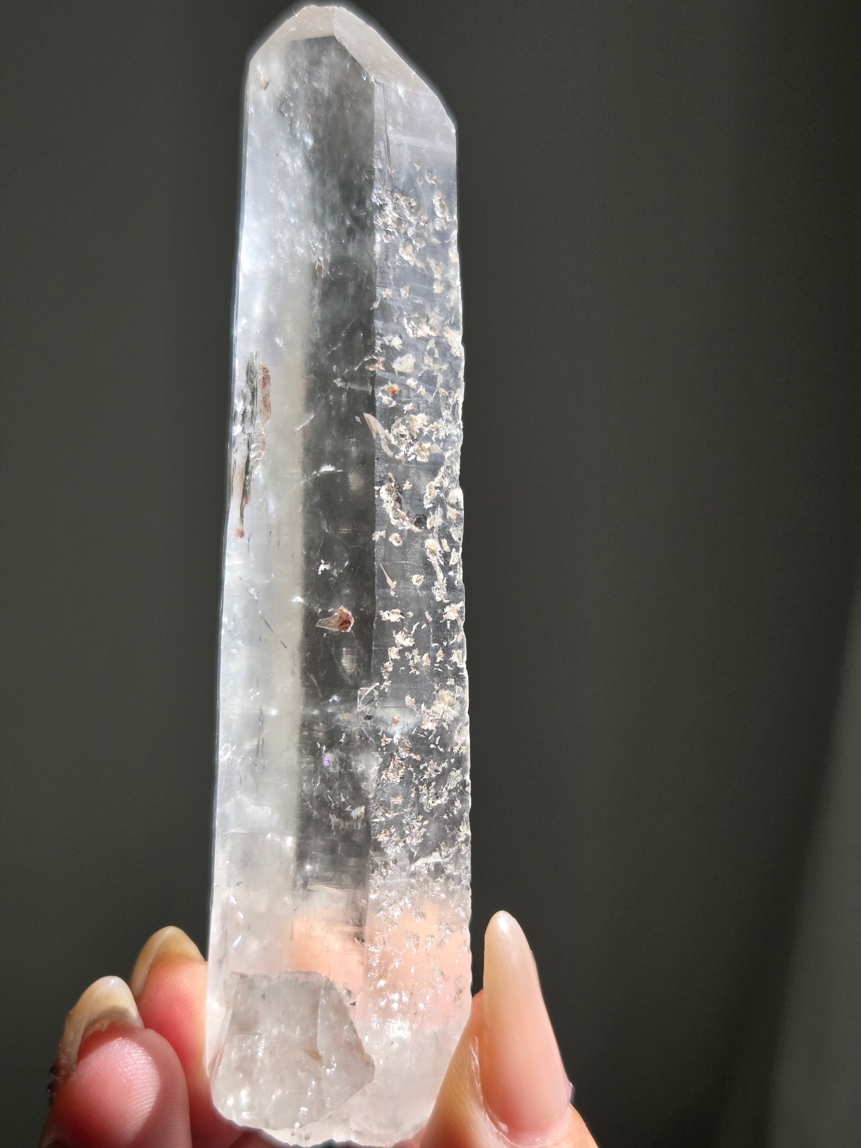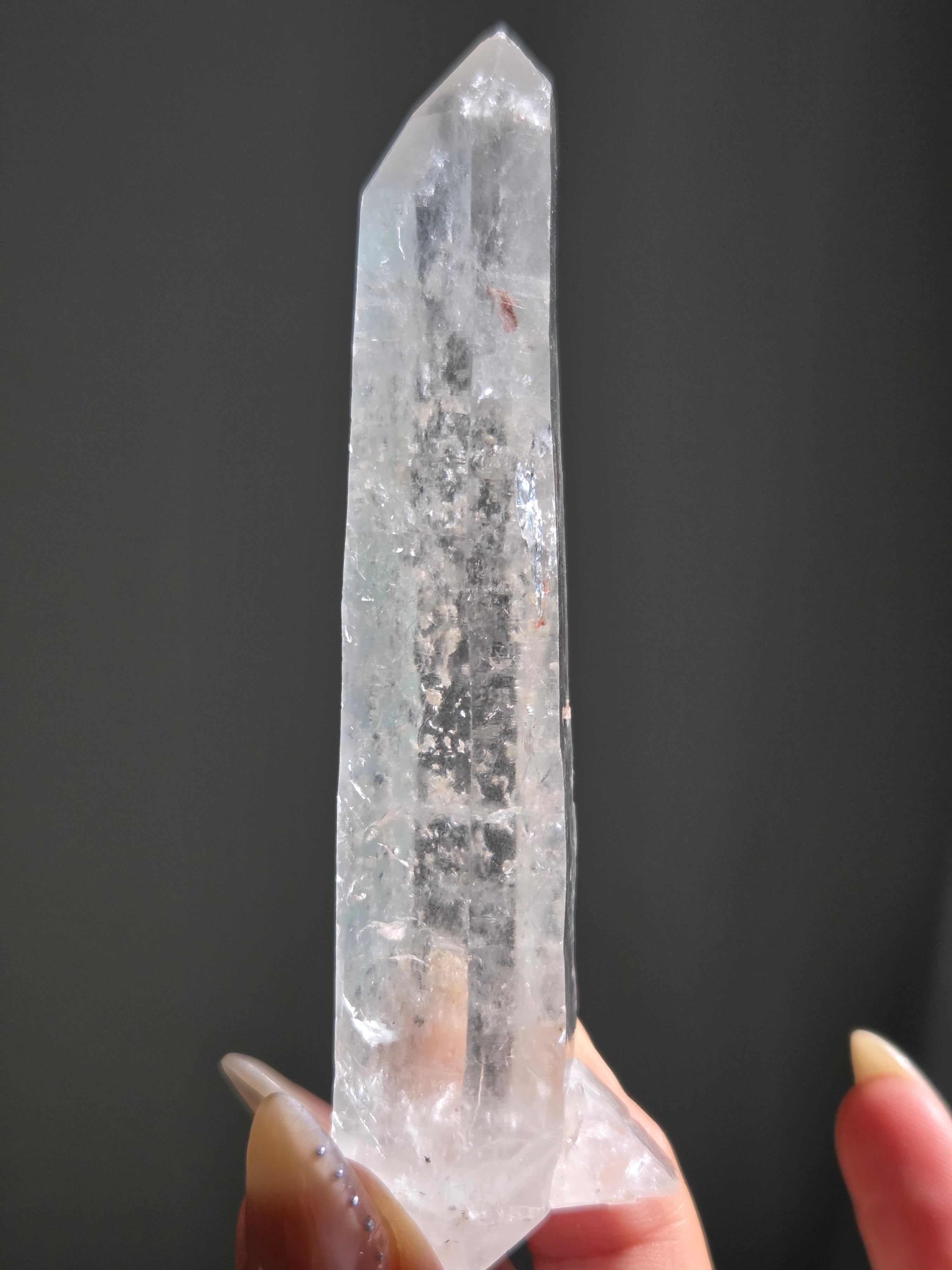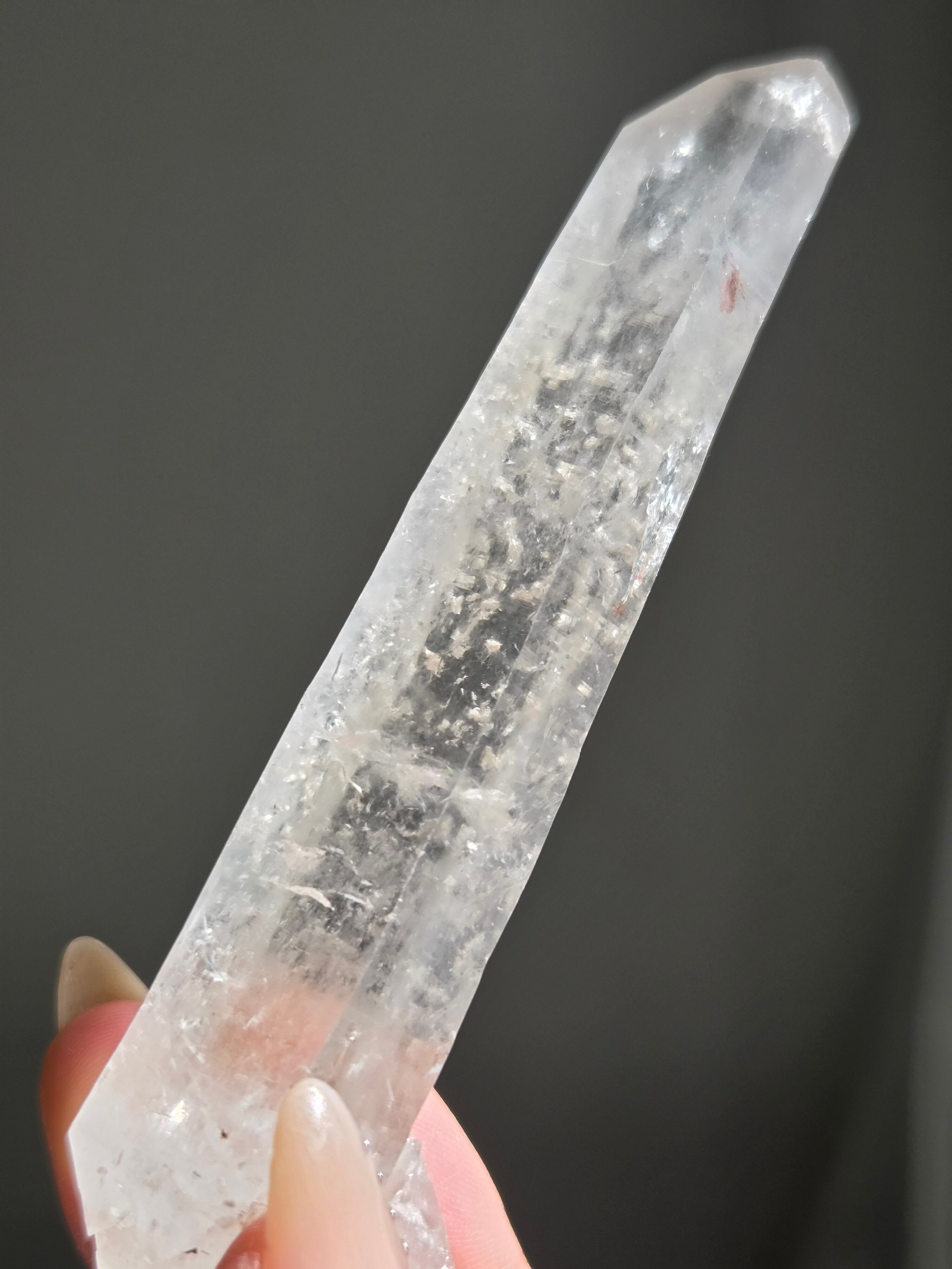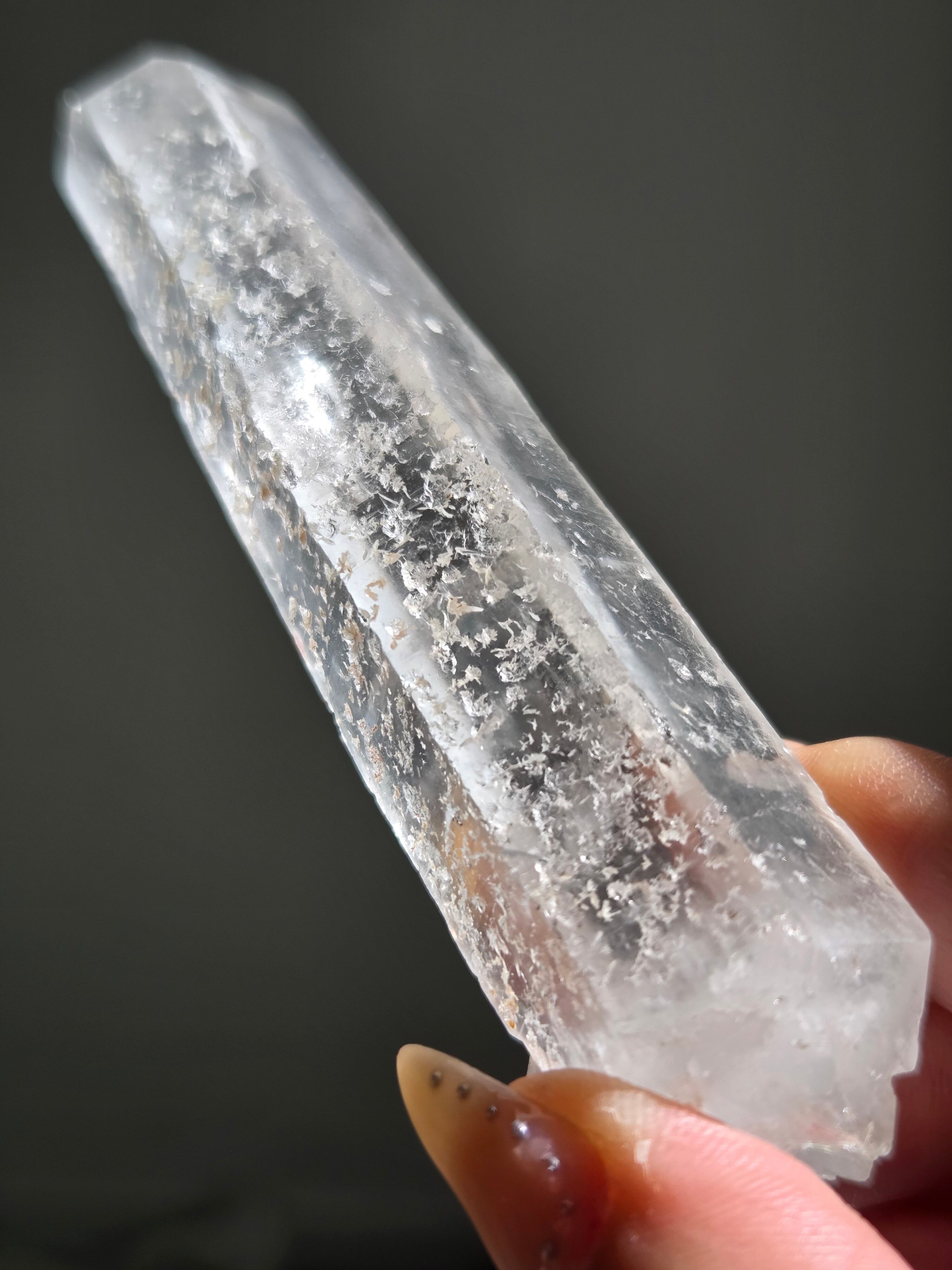 レーザー光線のように細長い結晶で、エネルギーを一点に集中させ、強力に放射するワンドとして。また、ヒーリング(結界、ネガティブエネルギーの切り裂き)、集中力向上、瞑想に用いられます
