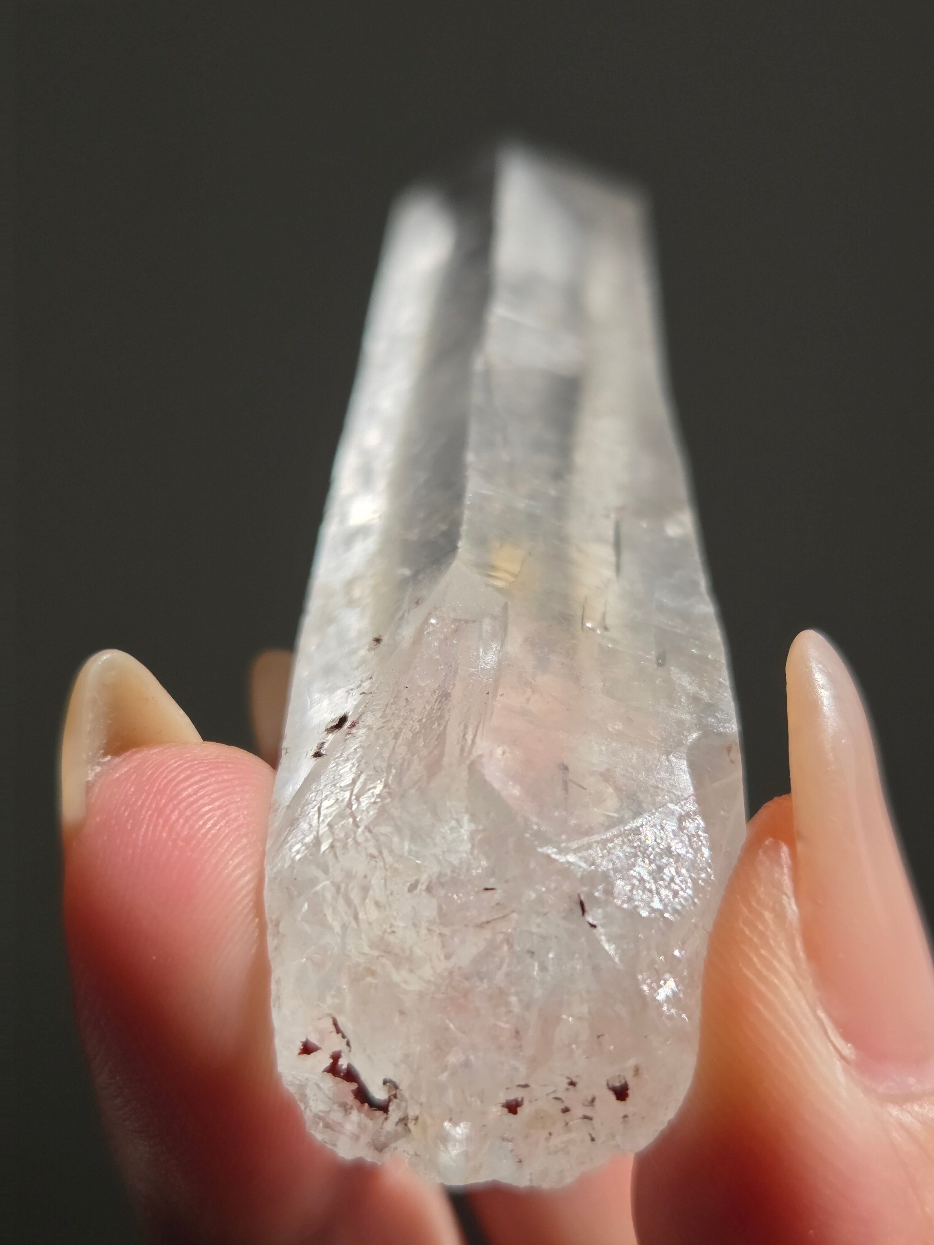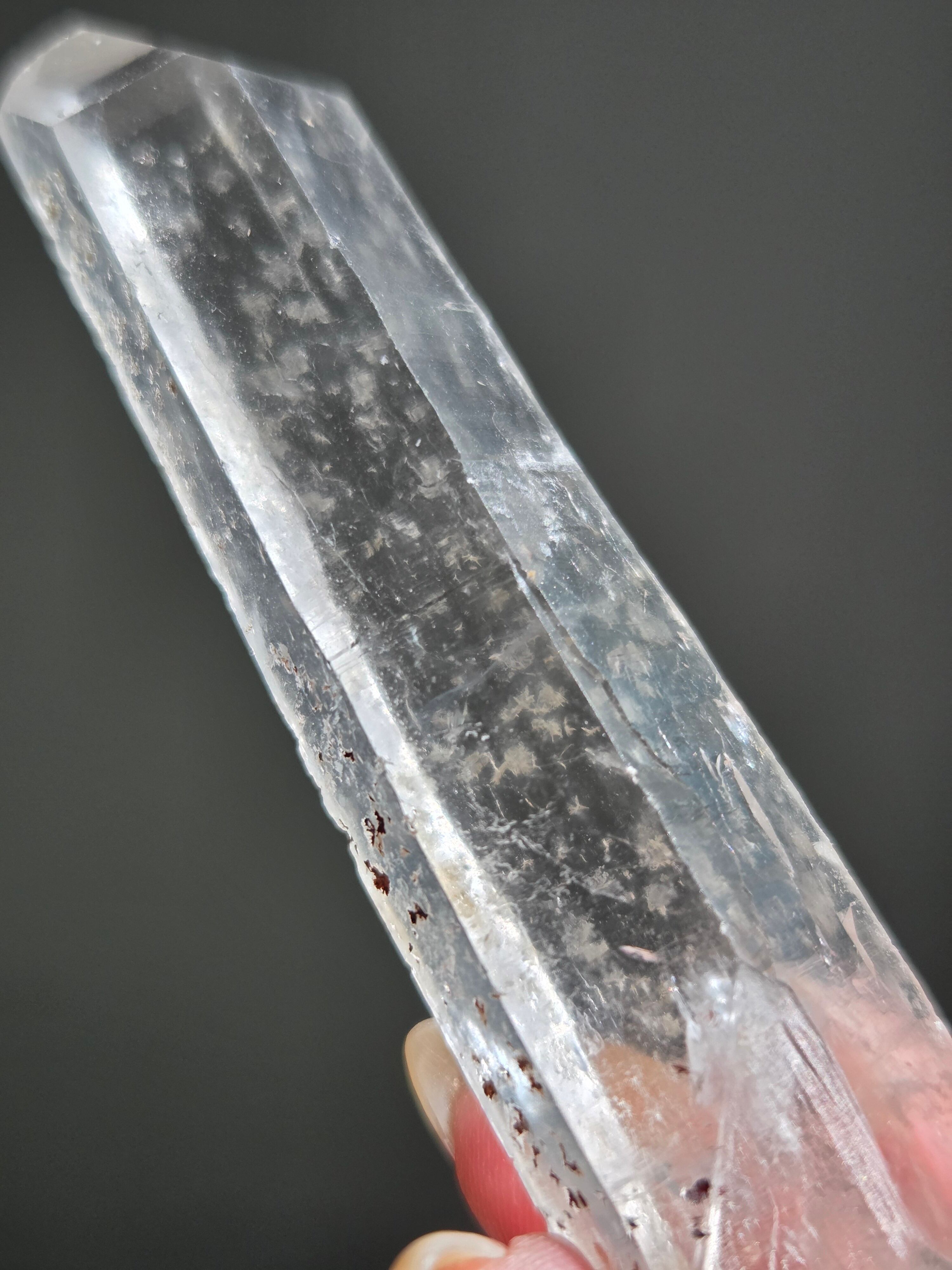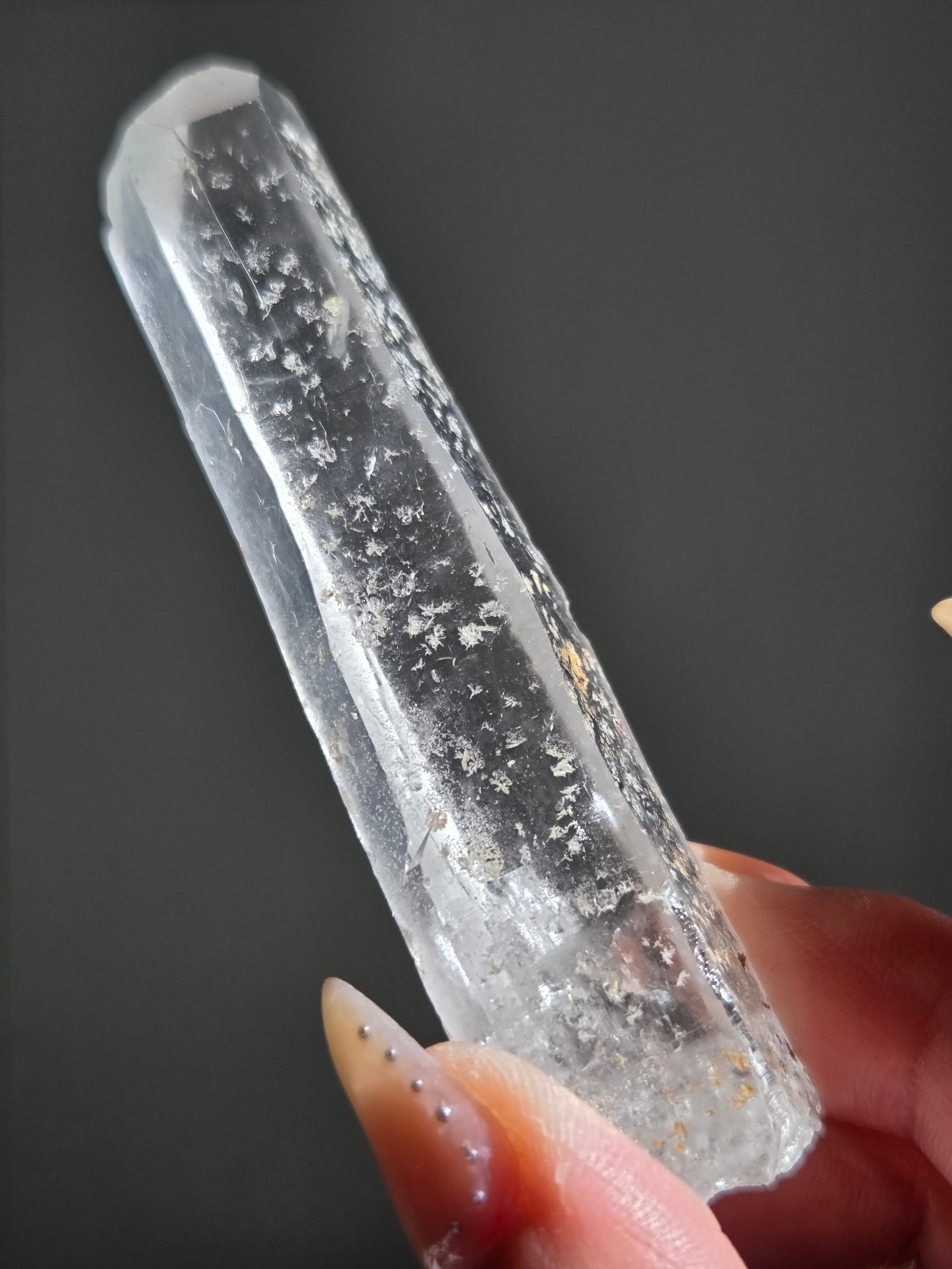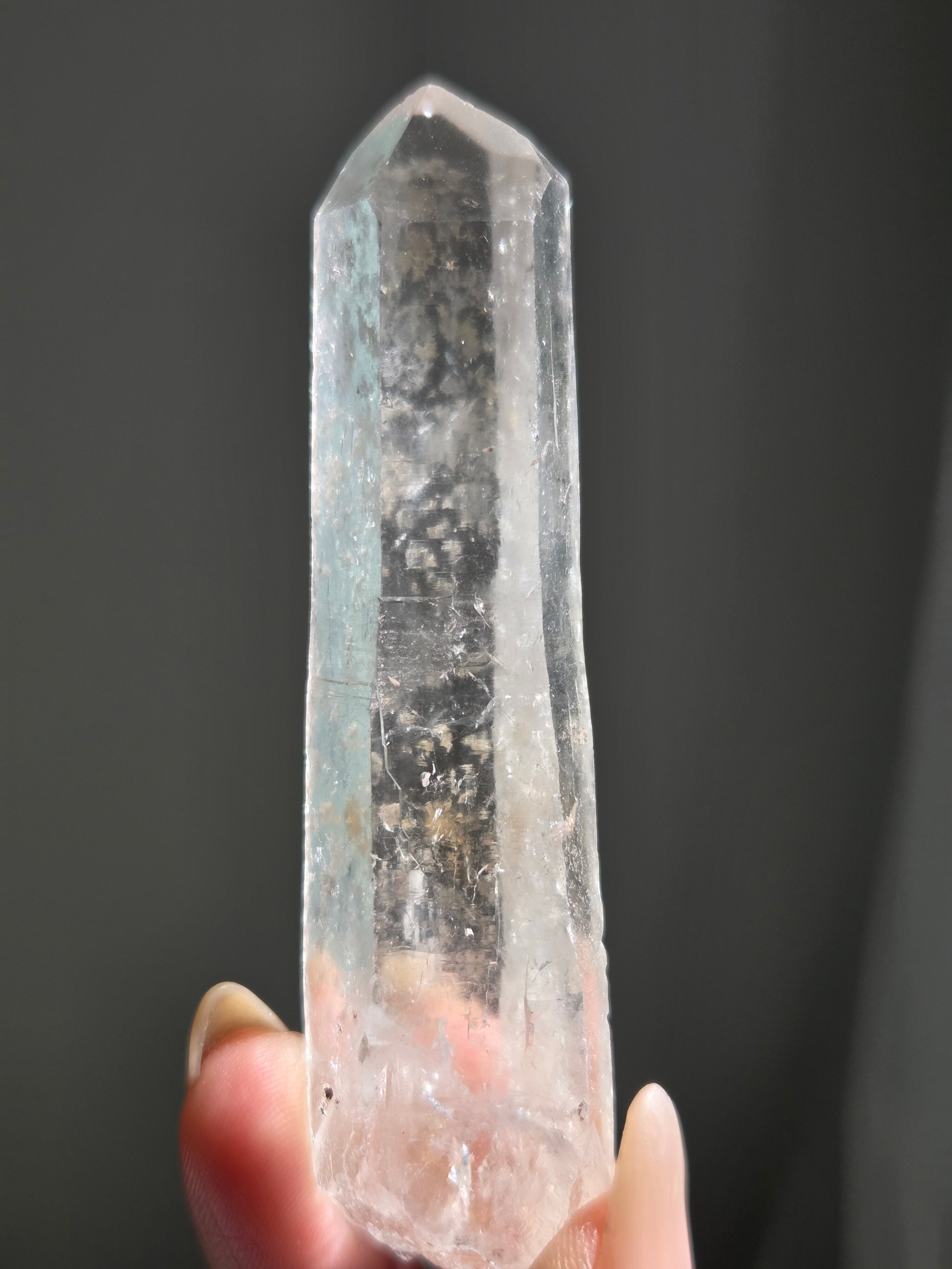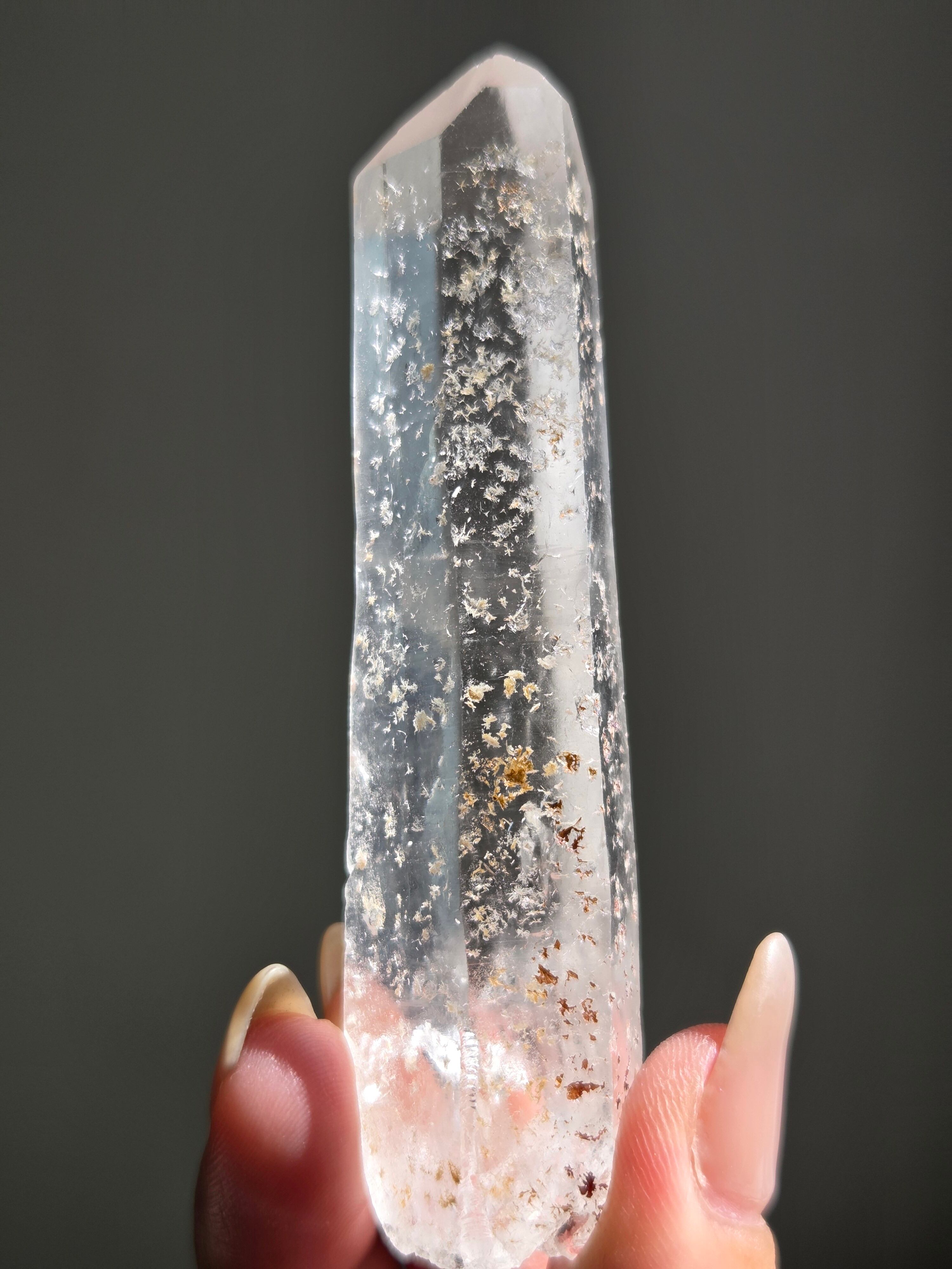 レーザー光線のように細長い結晶で、エネルギーを一点に集中させ、強力に放射するワンドとして。また、ヒーリング(結界、ネガティブエネルギーの切り裂き)、集中力向上、瞑想に用いられます