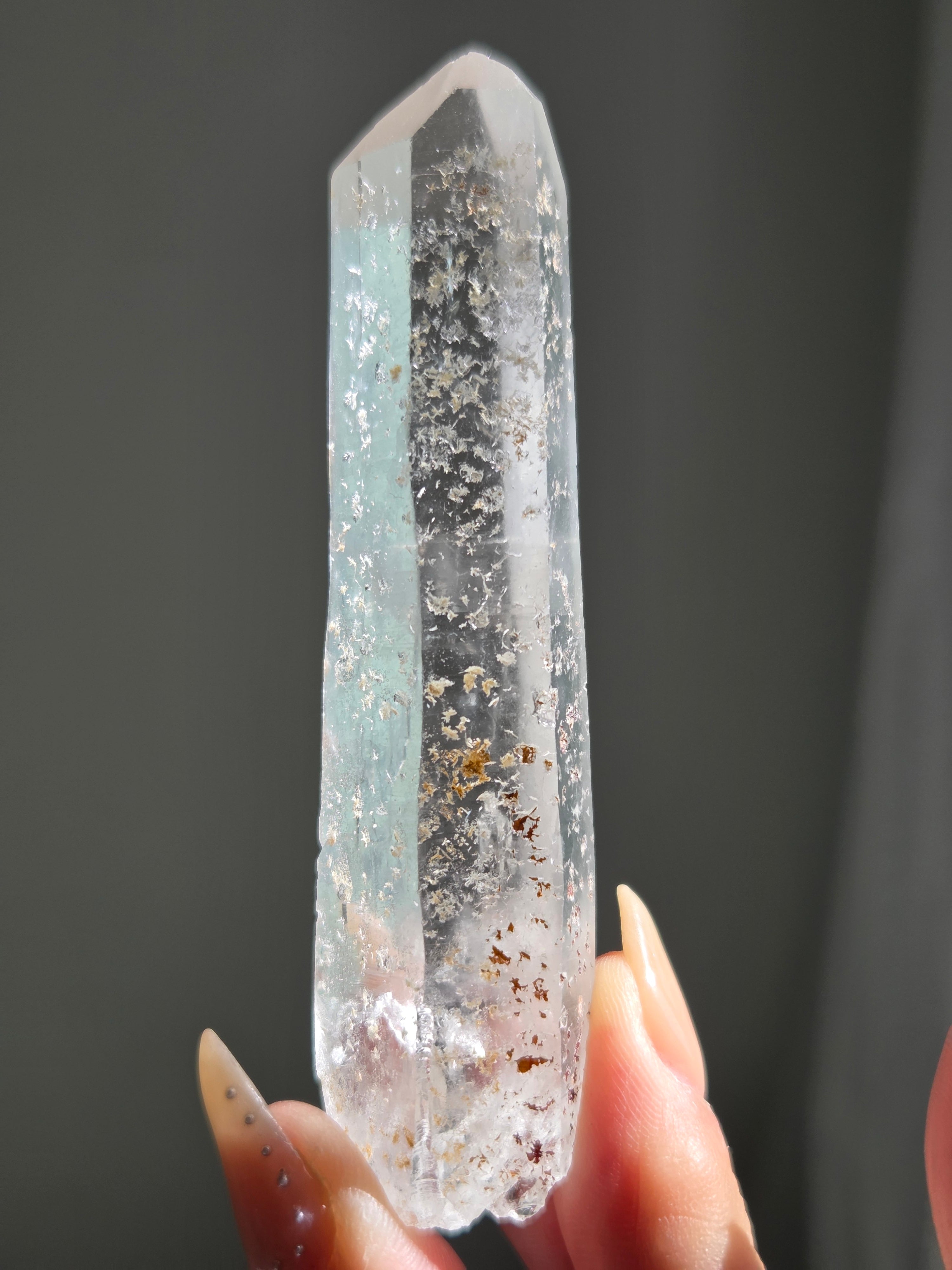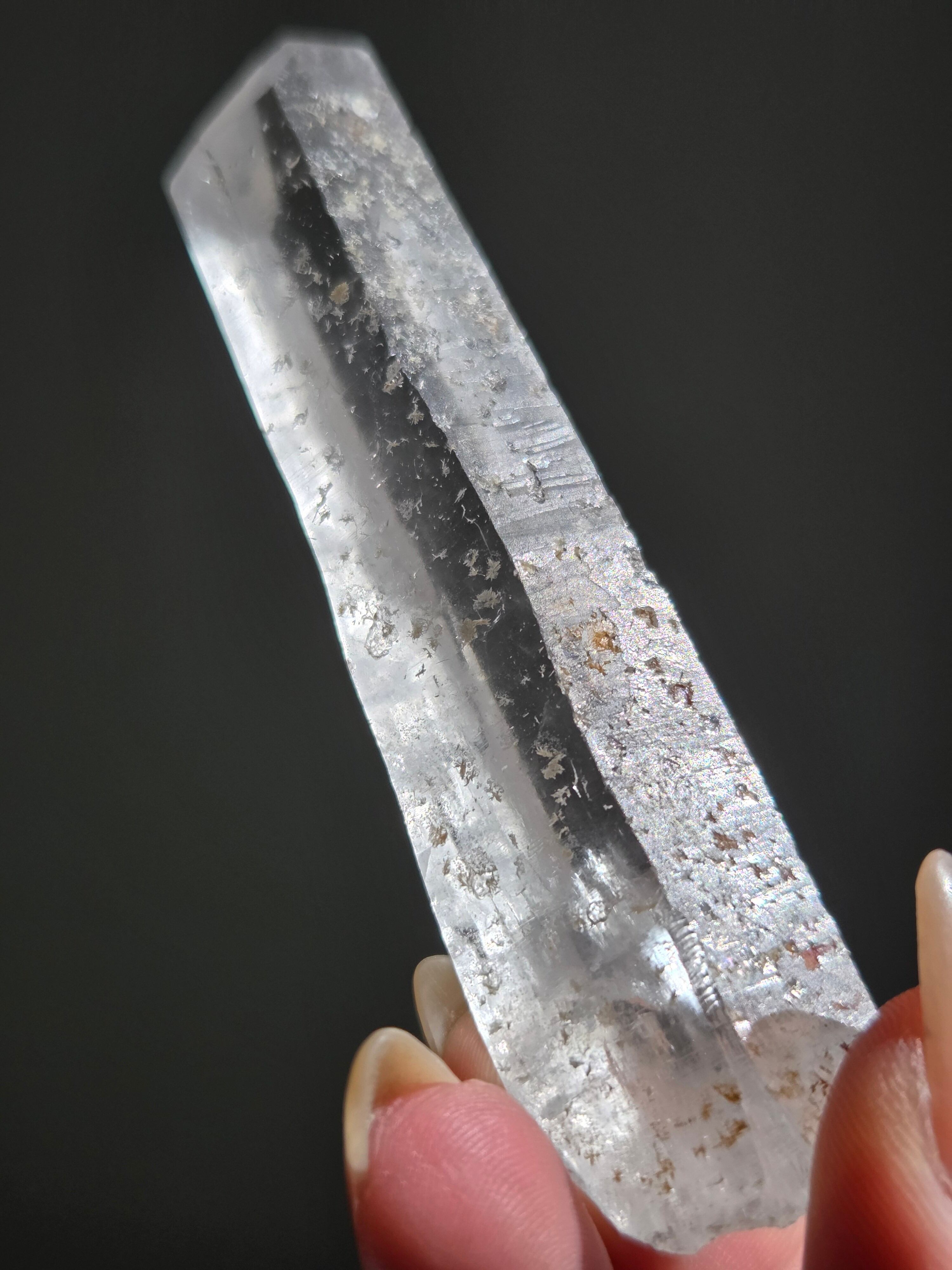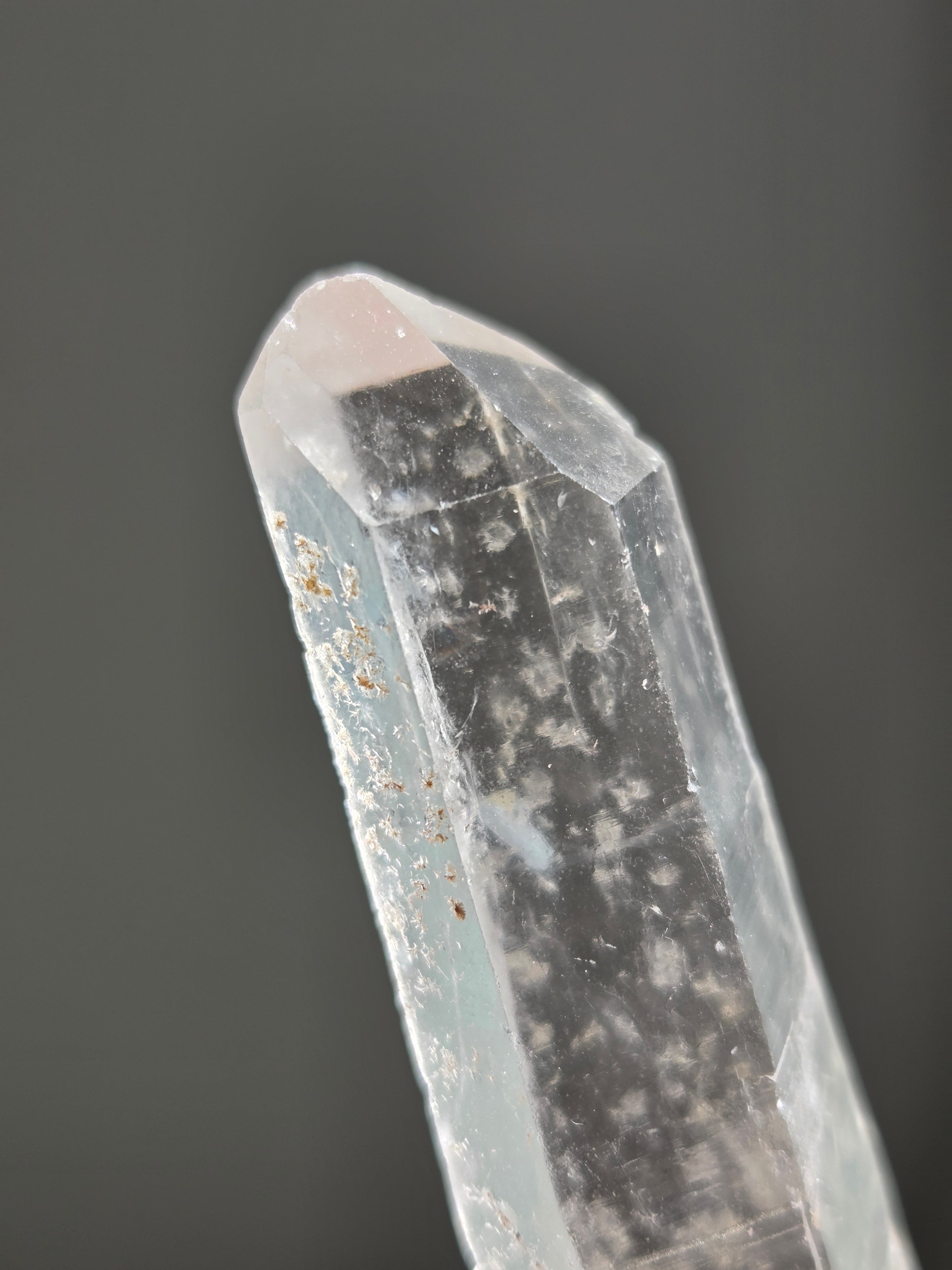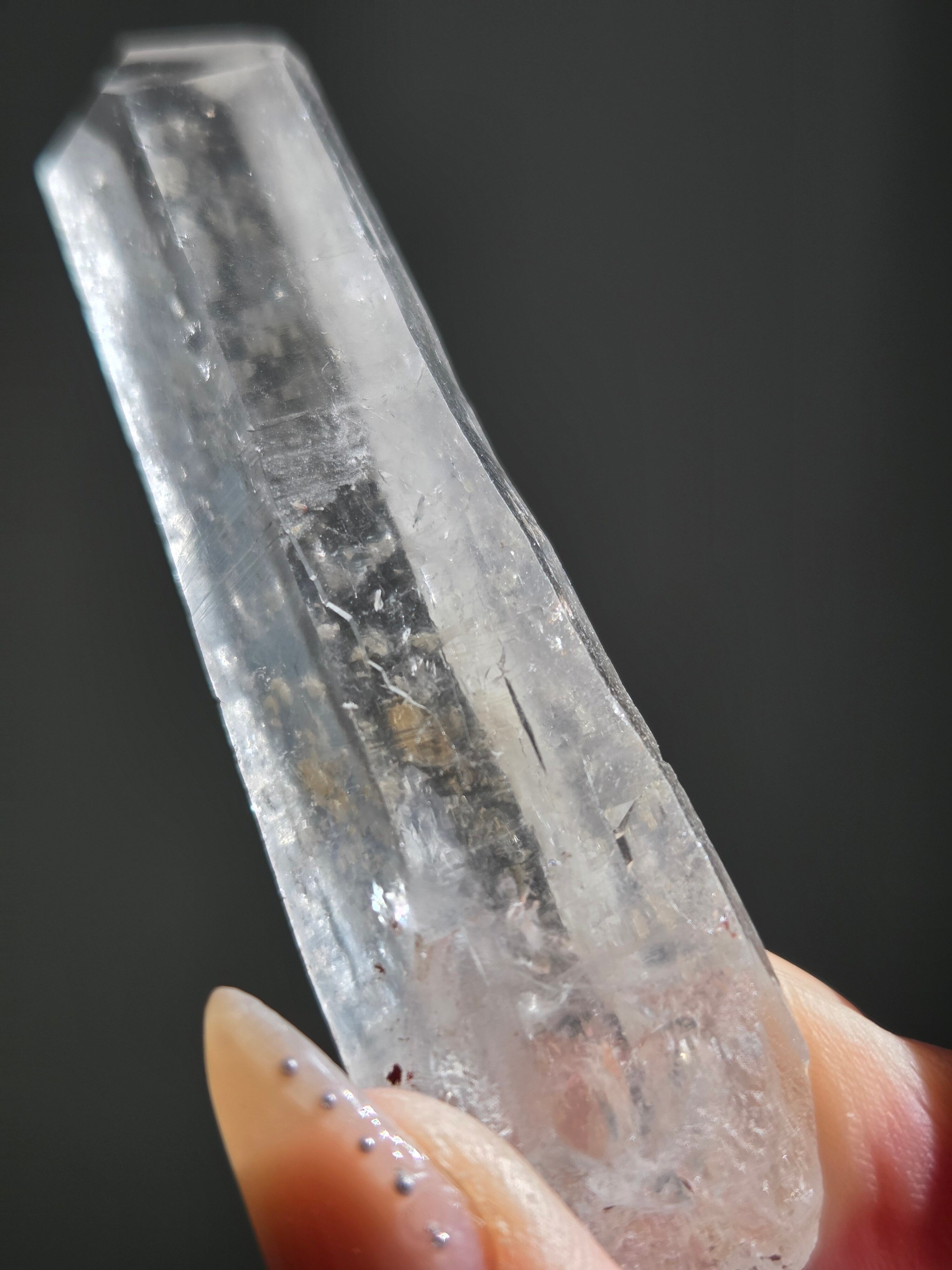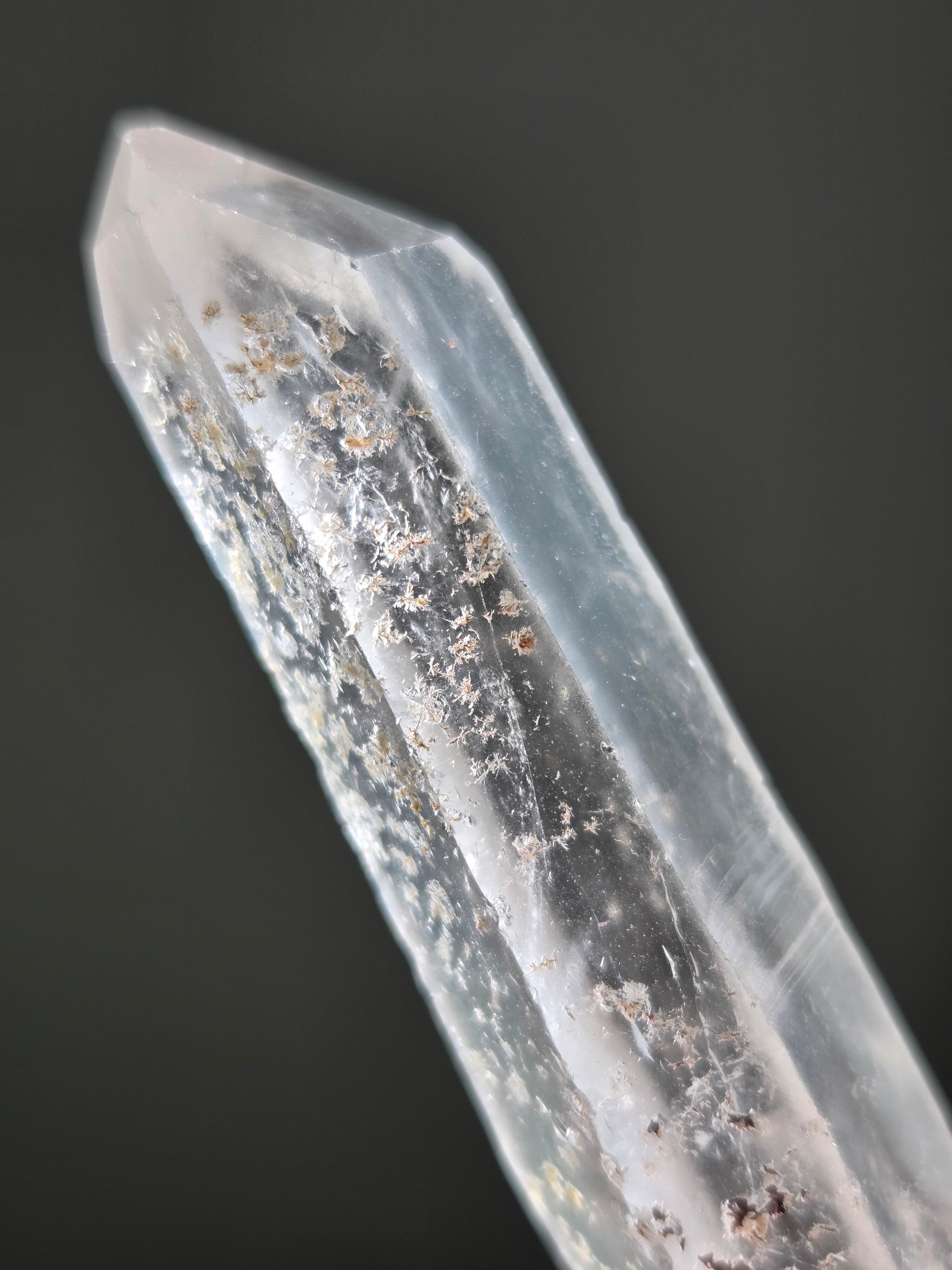 レーザー光線のように細長い結晶で、エネルギーを一点に集中させ、強力に放射するワンドとして。また、ヒーリング(結界、ネガティブエネルギーの切り裂き)、集中力向上、瞑想に用いられます