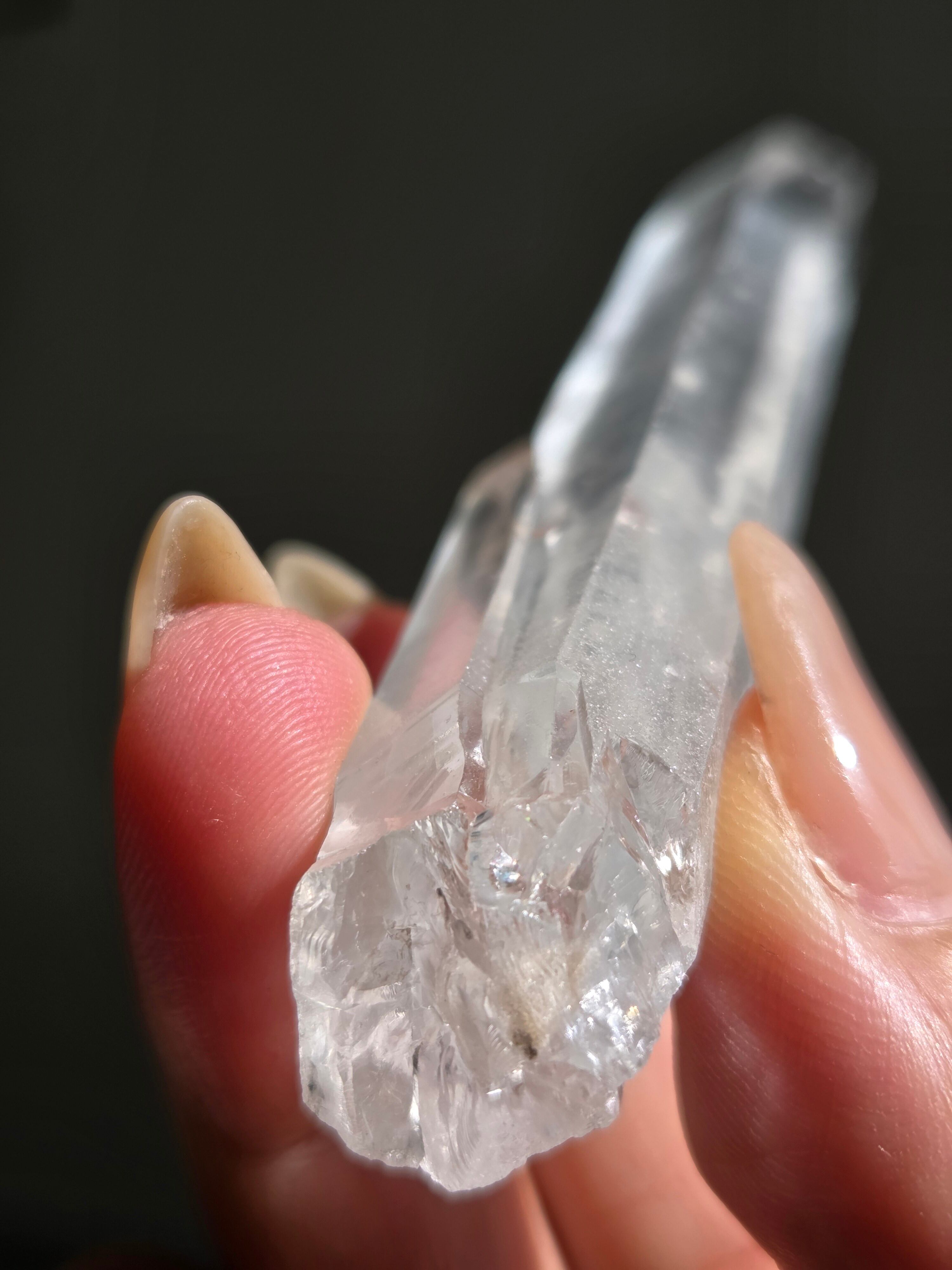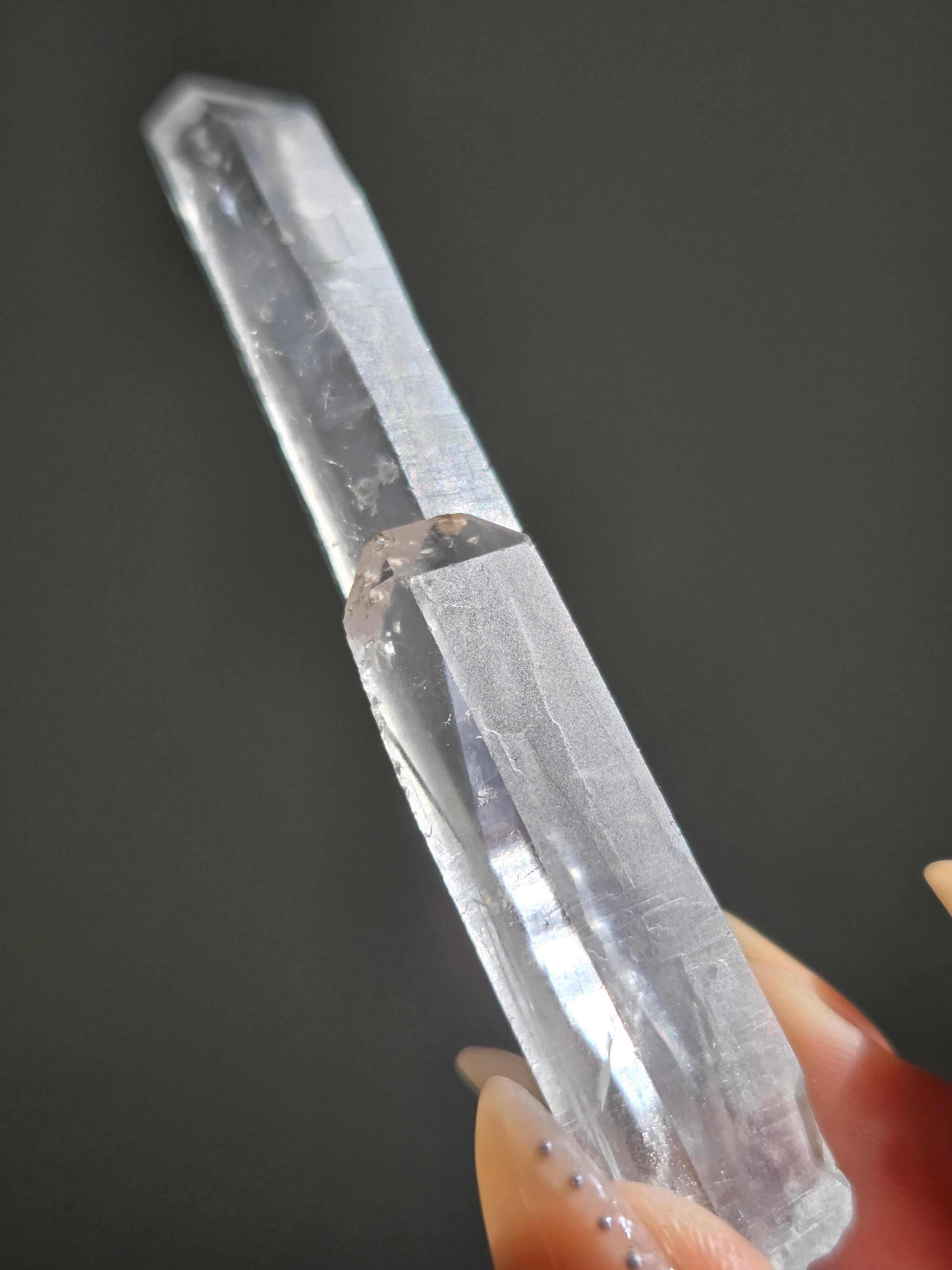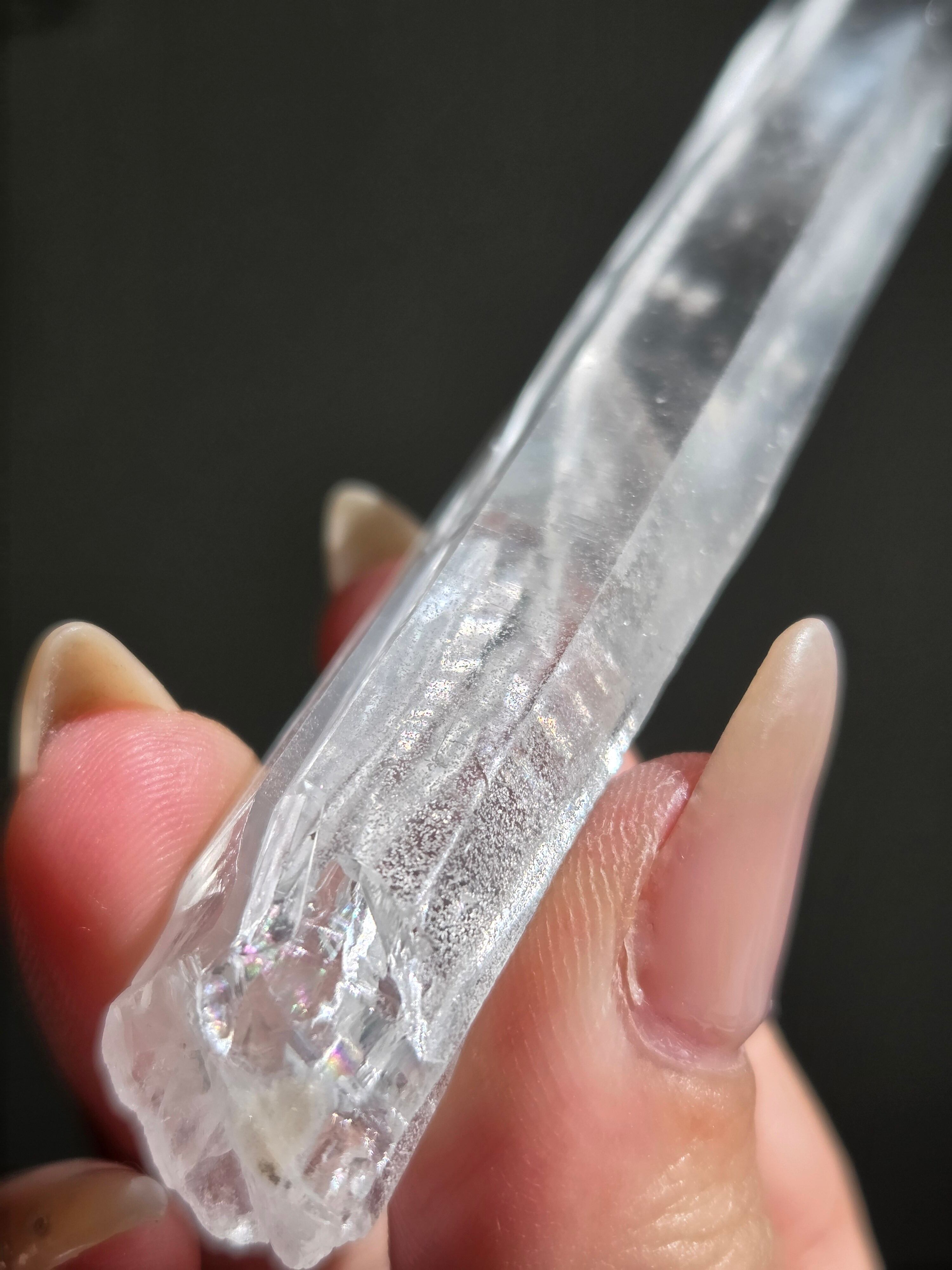 レーザー光線のように細長い結晶で、エネルギーを一点に集中させ、強力に放射するワンドとして。また、ヒーリング(結界、ネガティブエネルギーの切り裂き)、集中力向上、瞑想に用いられます