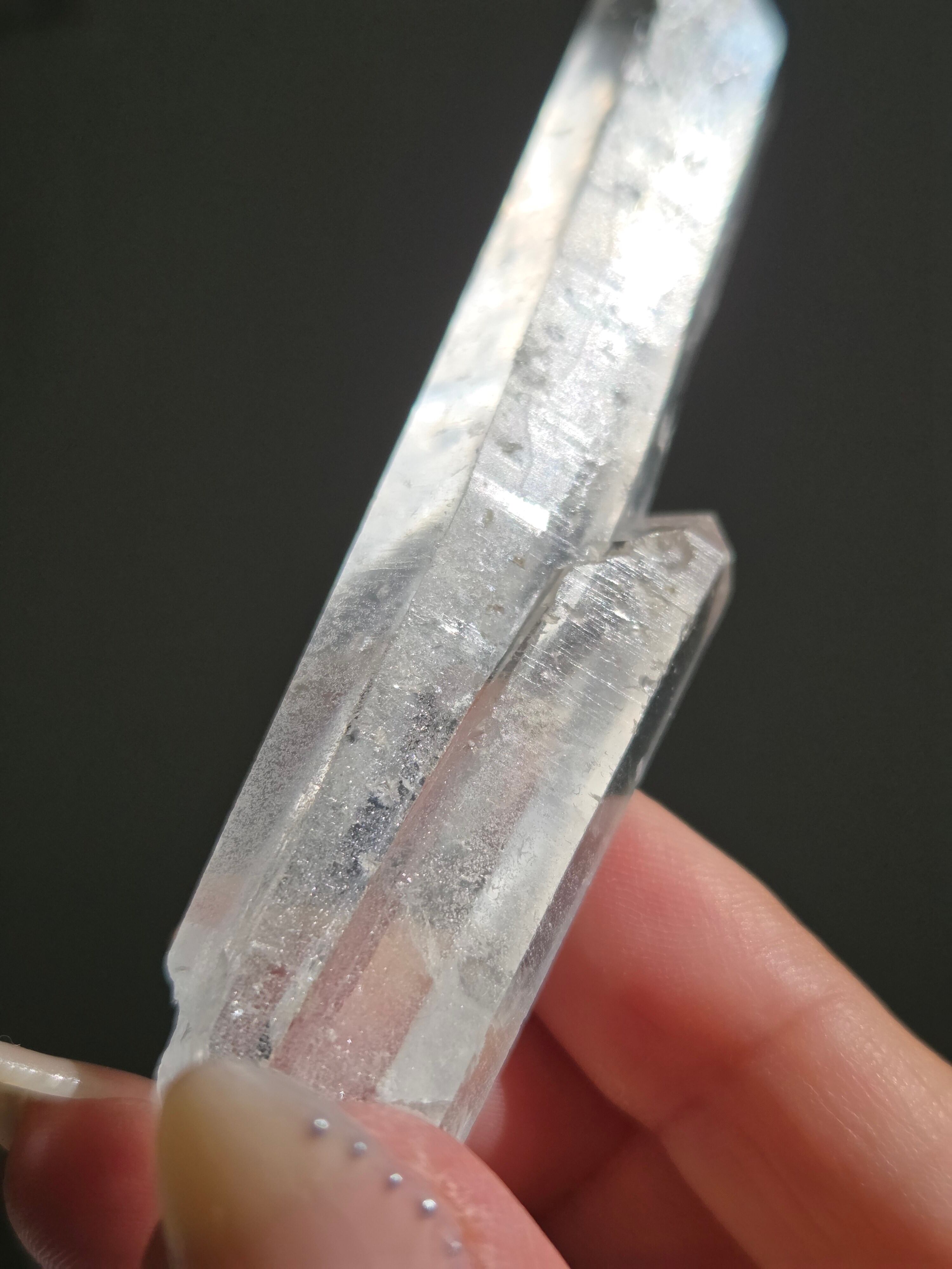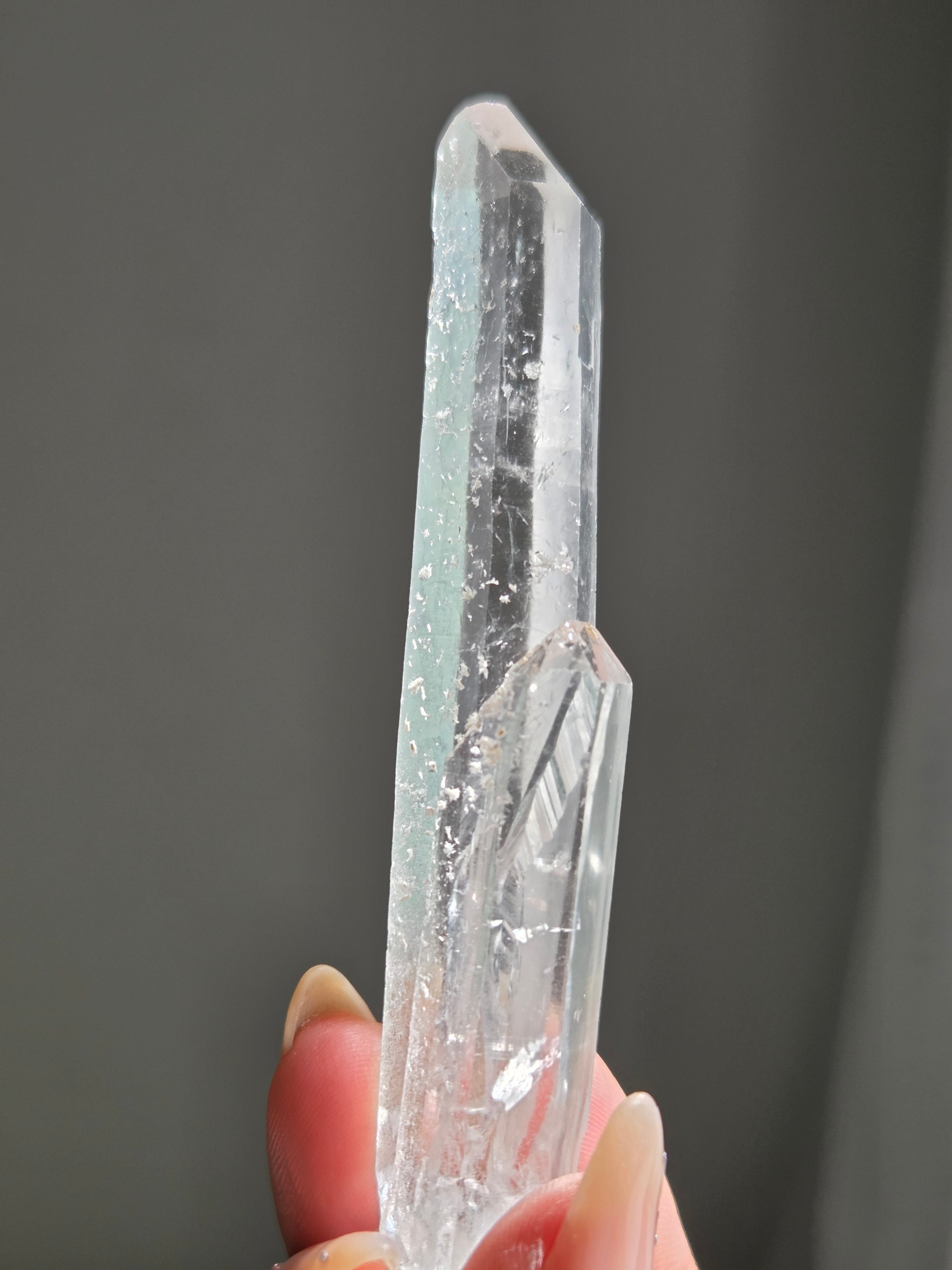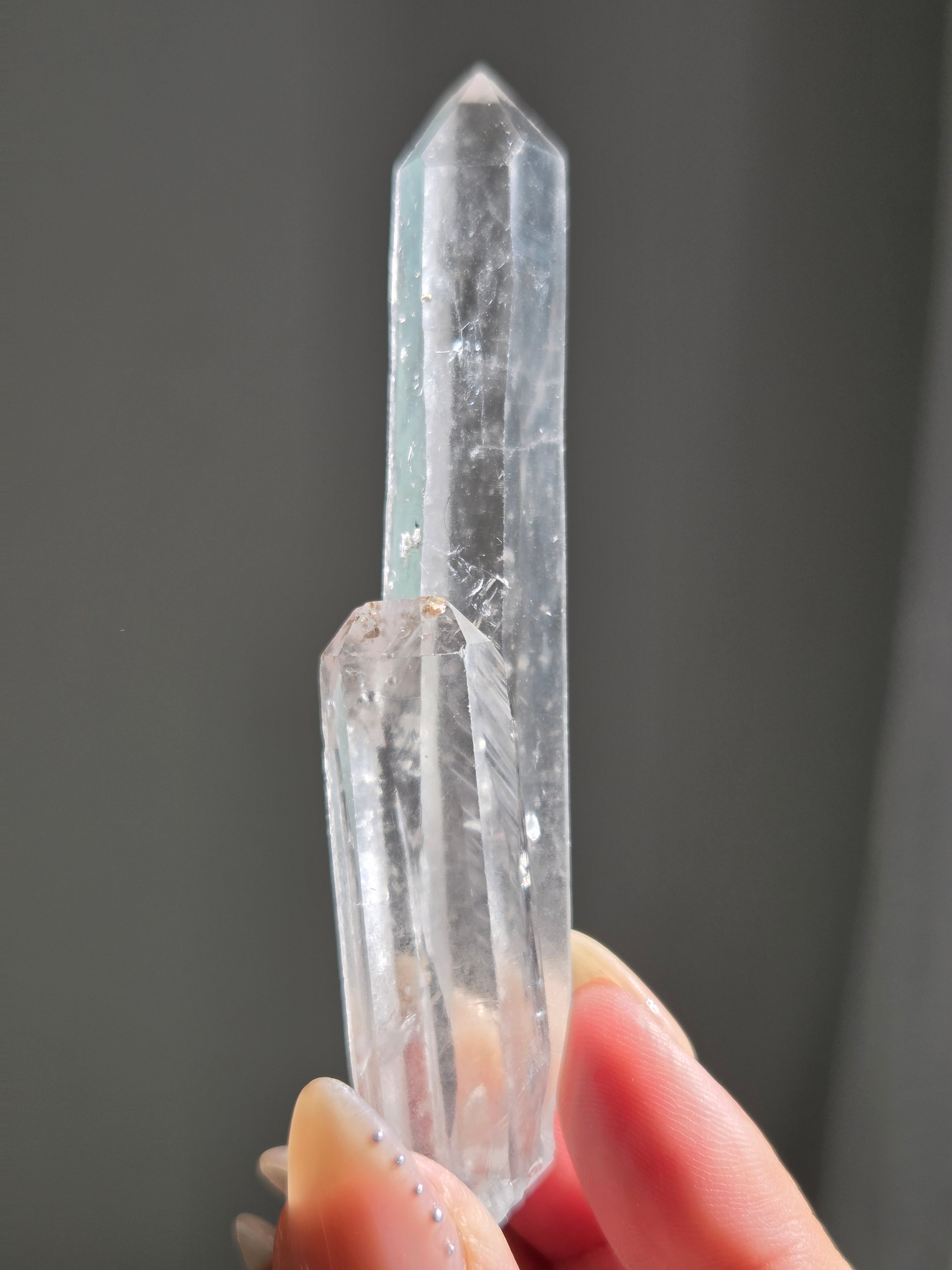 レーザー光線のように細長い結晶で、エネルギーを一点に集中させ、強力に放射するワンドとして。また、ヒーリング(結界、ネガティブエネルギーの切り裂き)、集中力向上、瞑想に用いられます