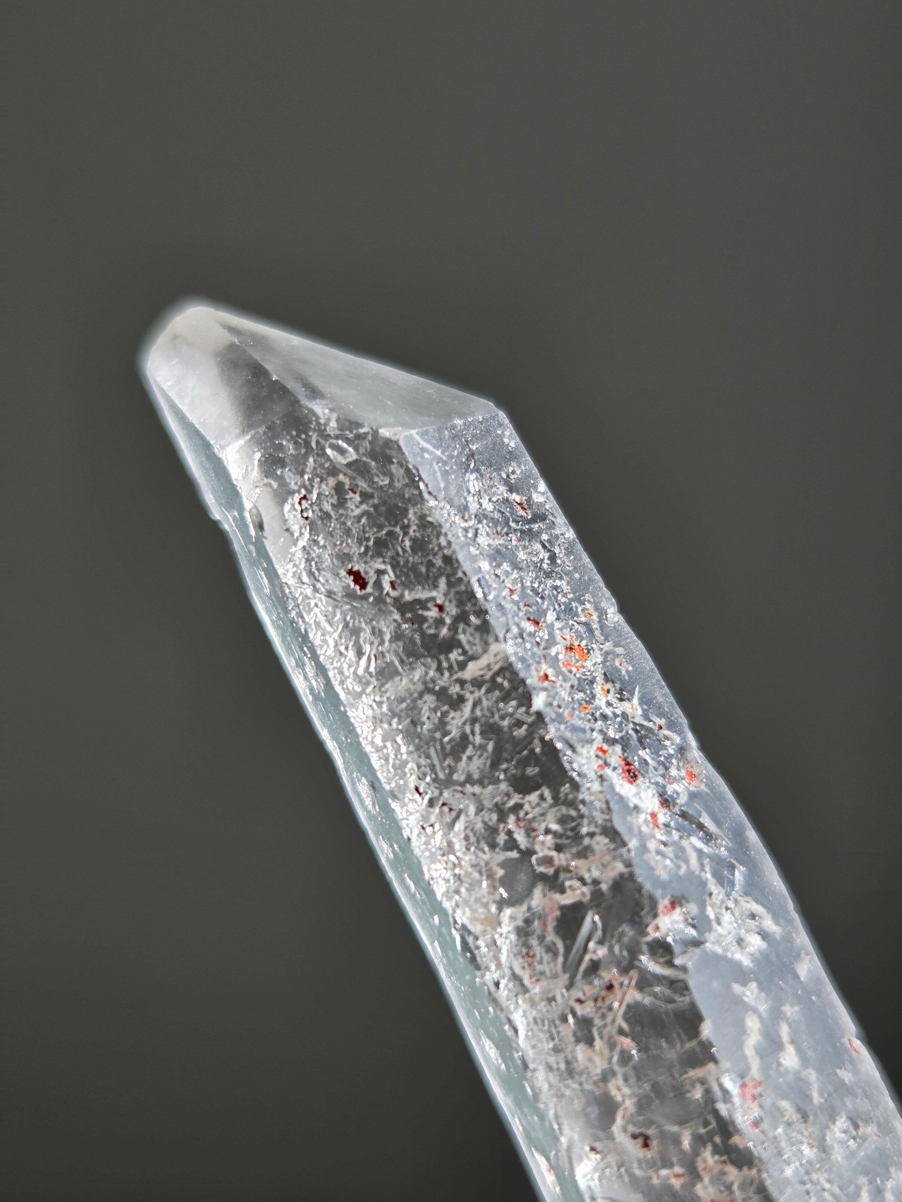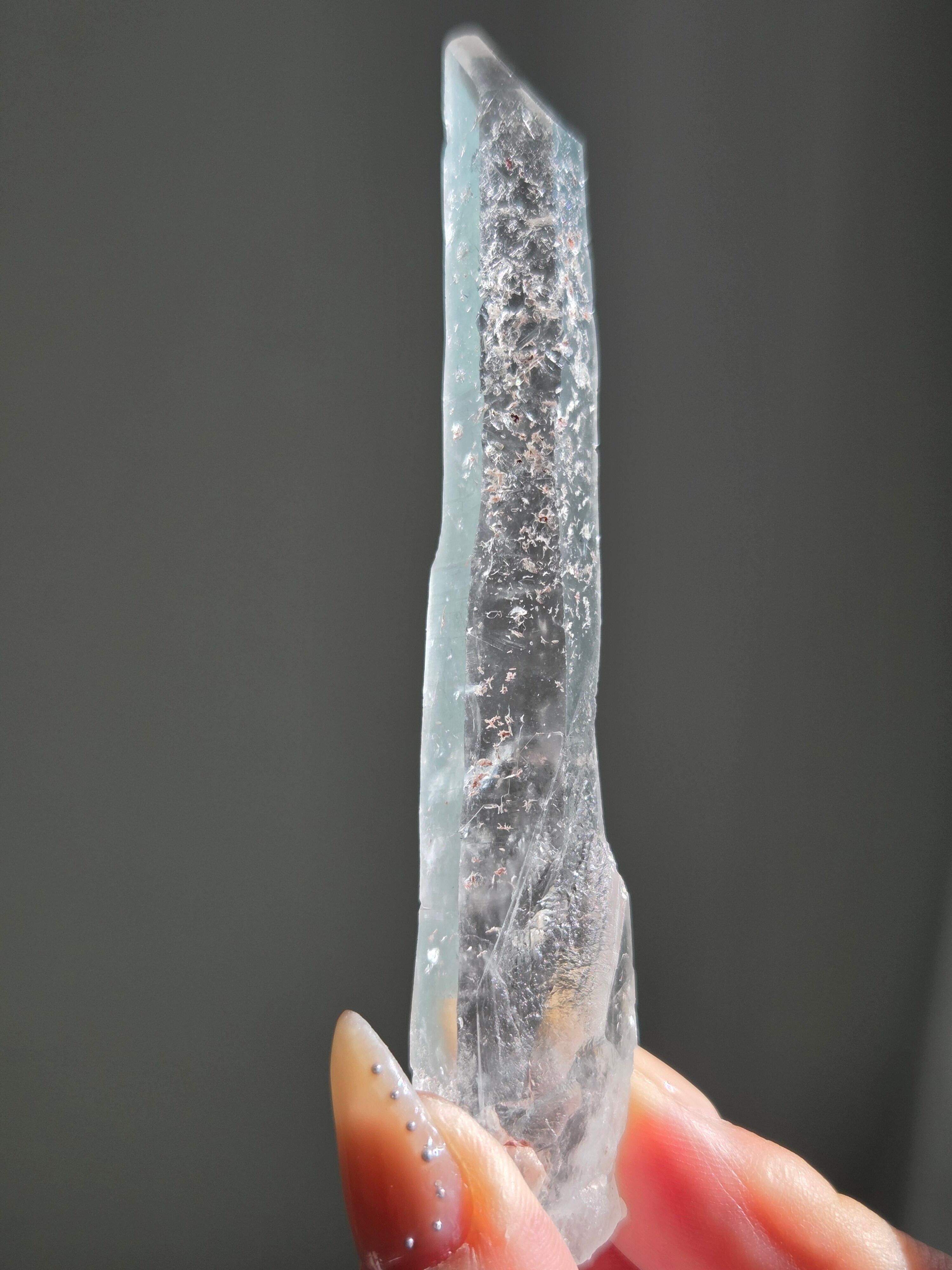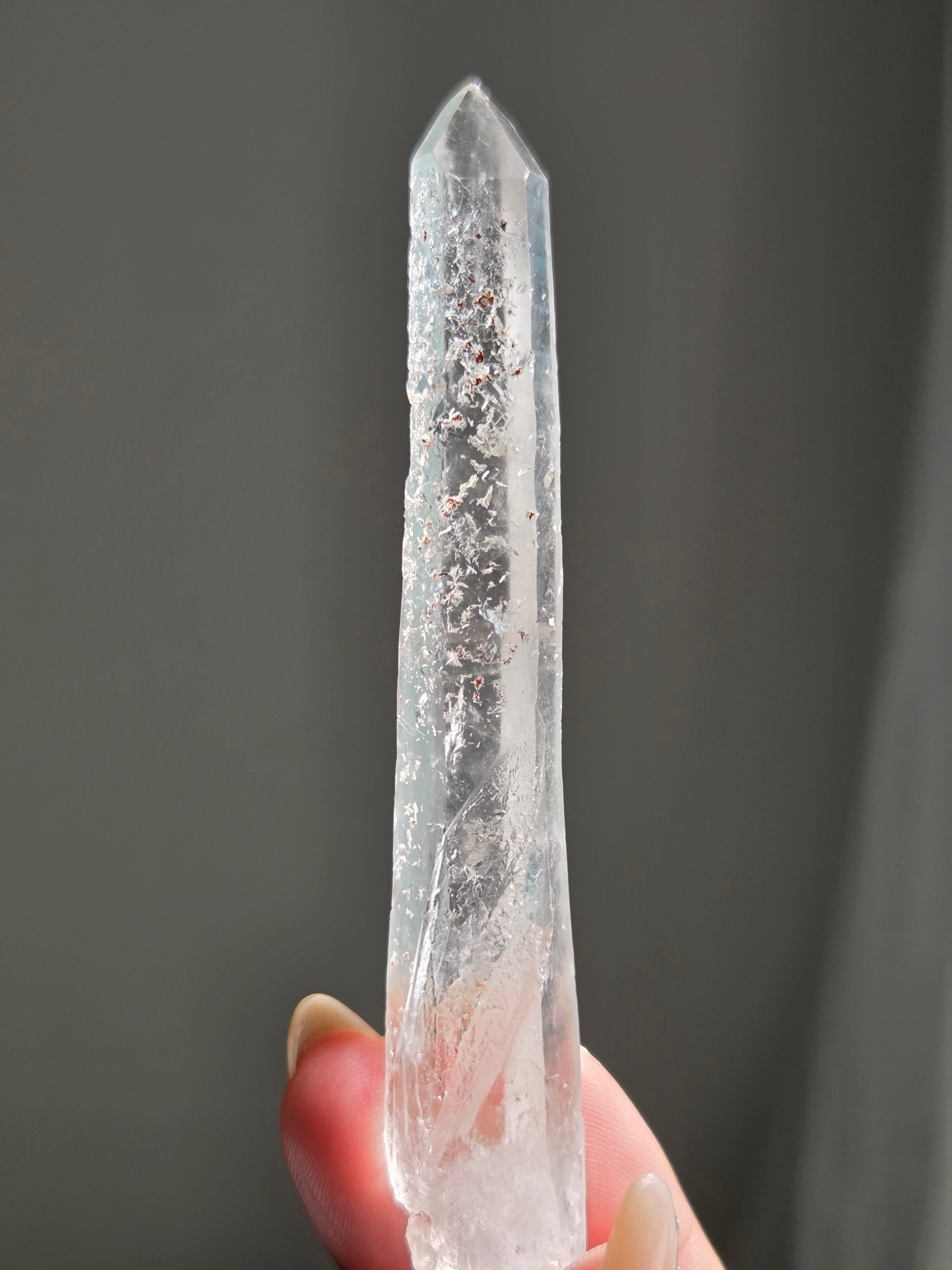 レーザー光線のように細長い結晶で、エネルギーを一点に集中させ、強力に放射するワンドとして。また、ヒーリング(結界、ネガティブエネルギーの切り裂き)、集中力向上、瞑想に用いられます