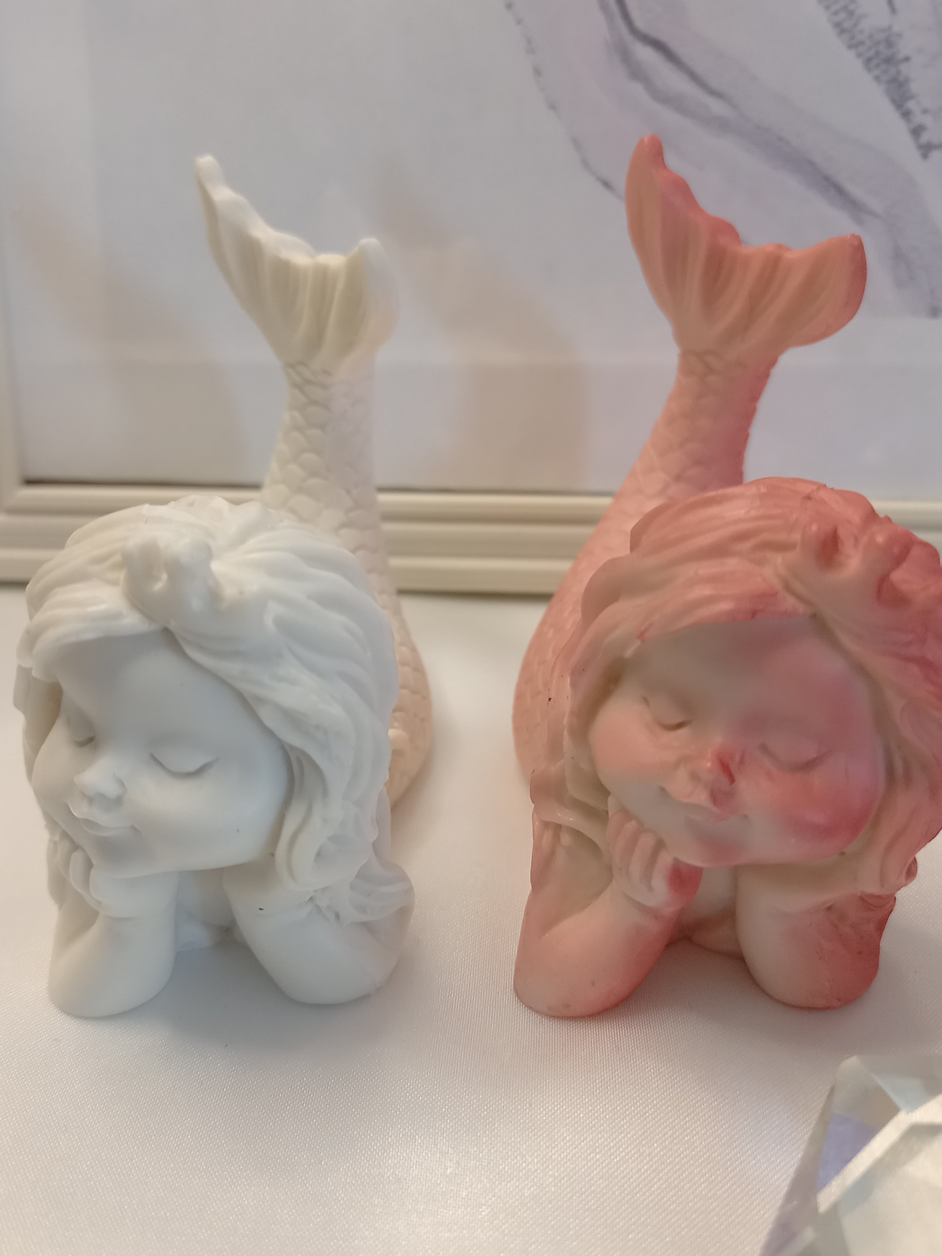 頬杖をついて、尾びれあげている姿がキュートなスフィア台座です。