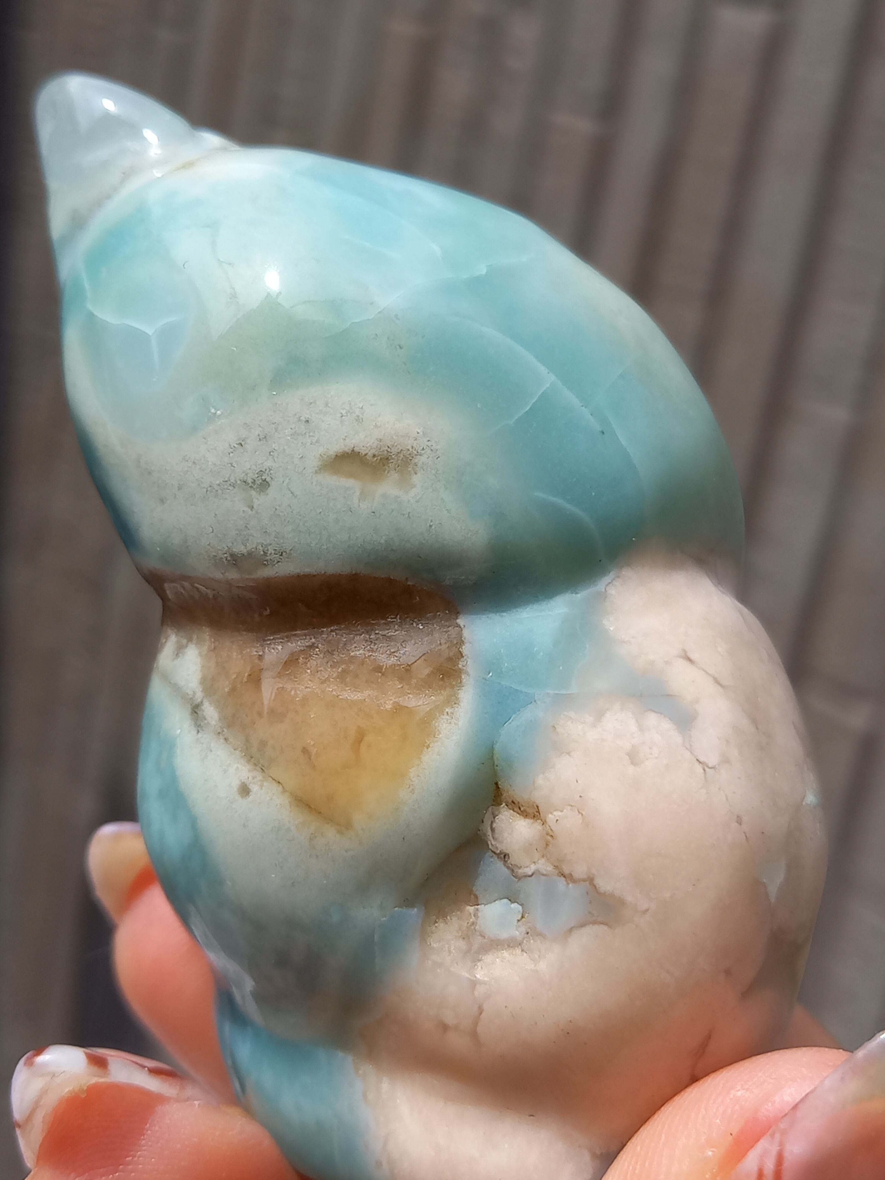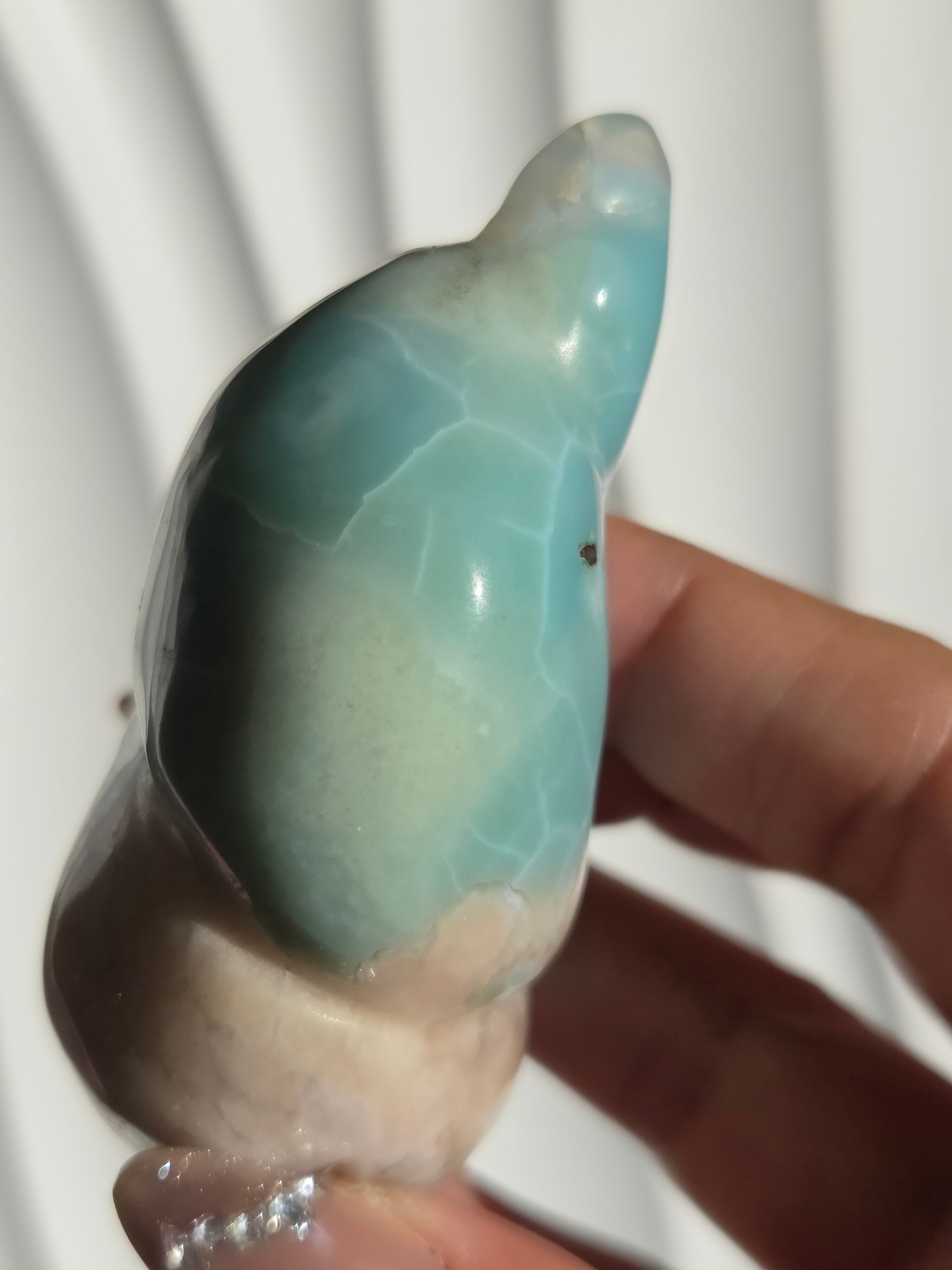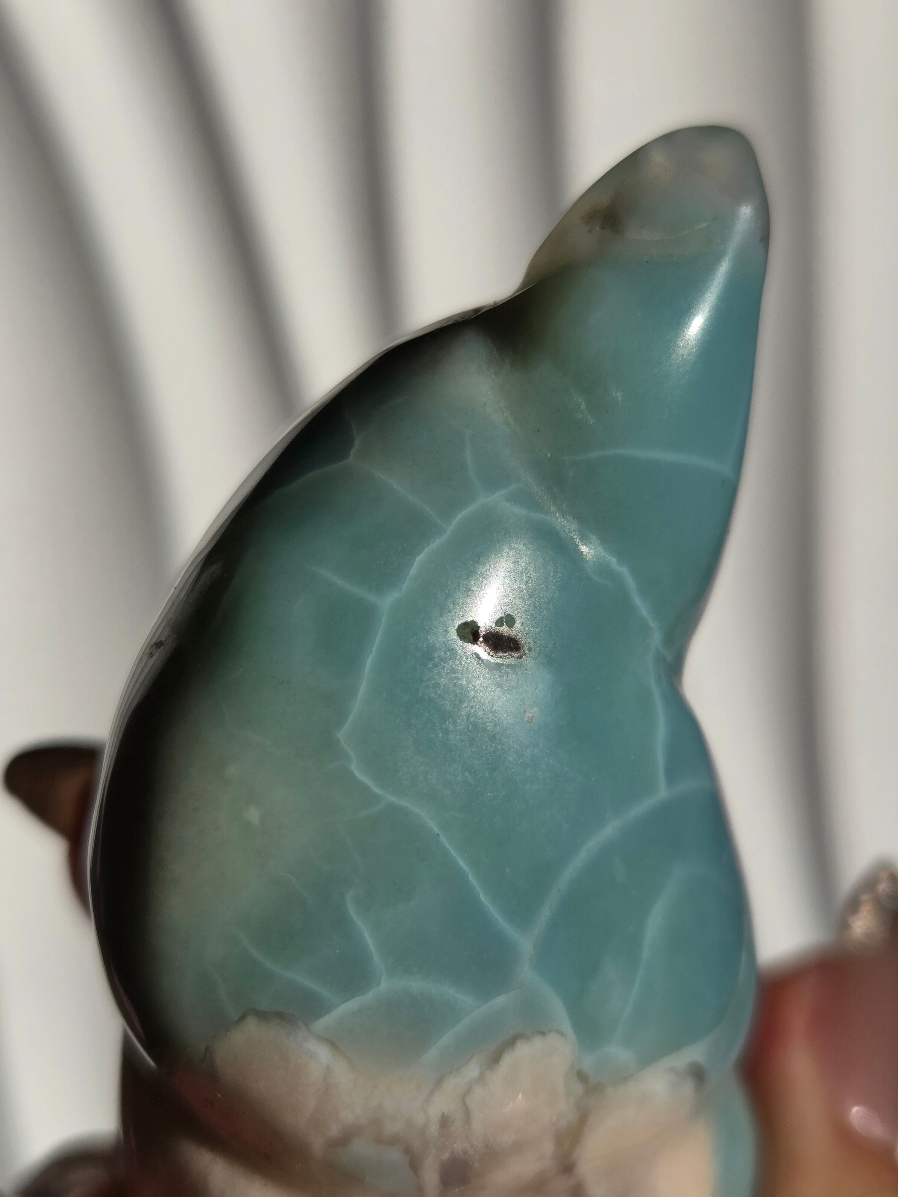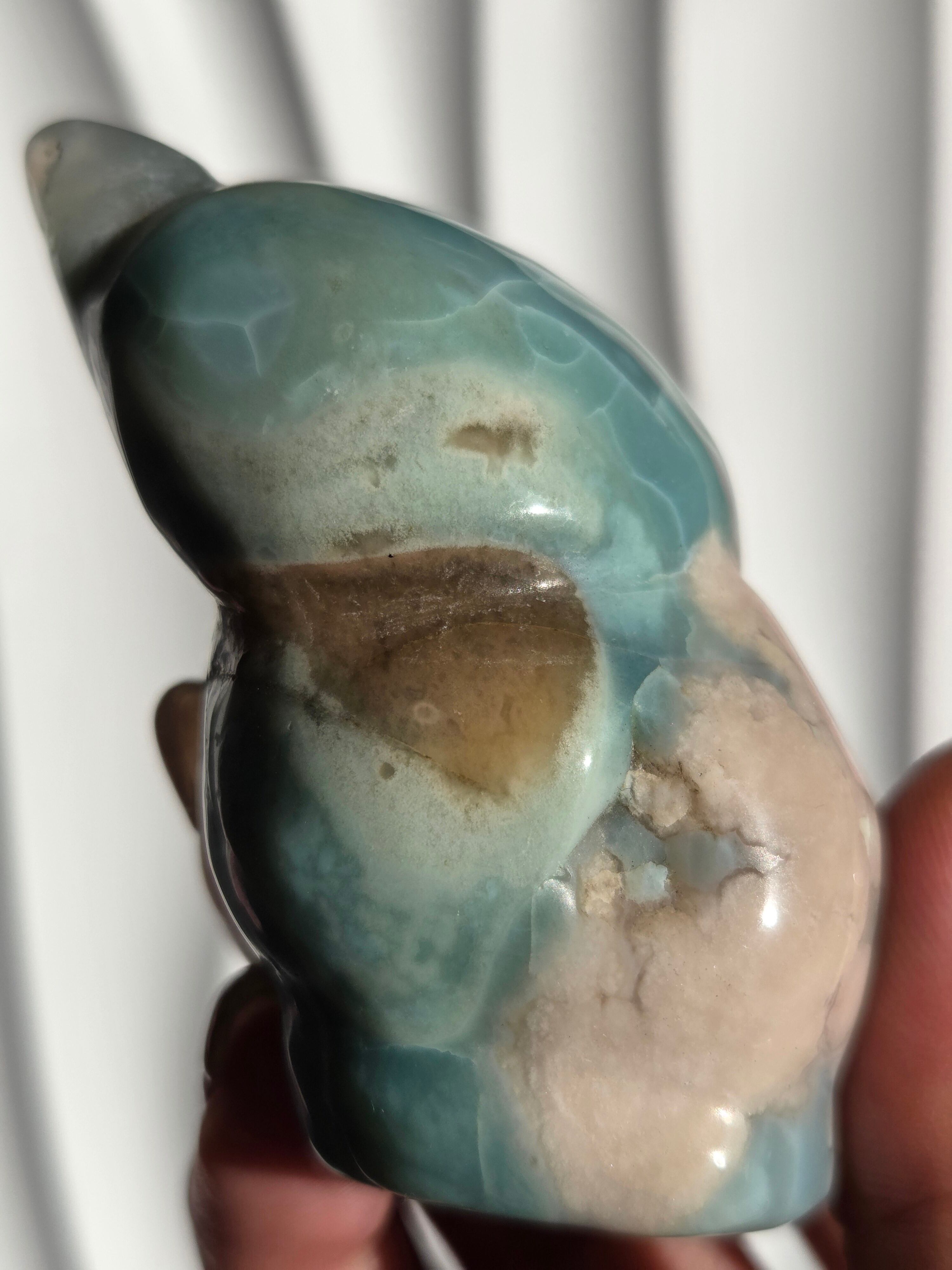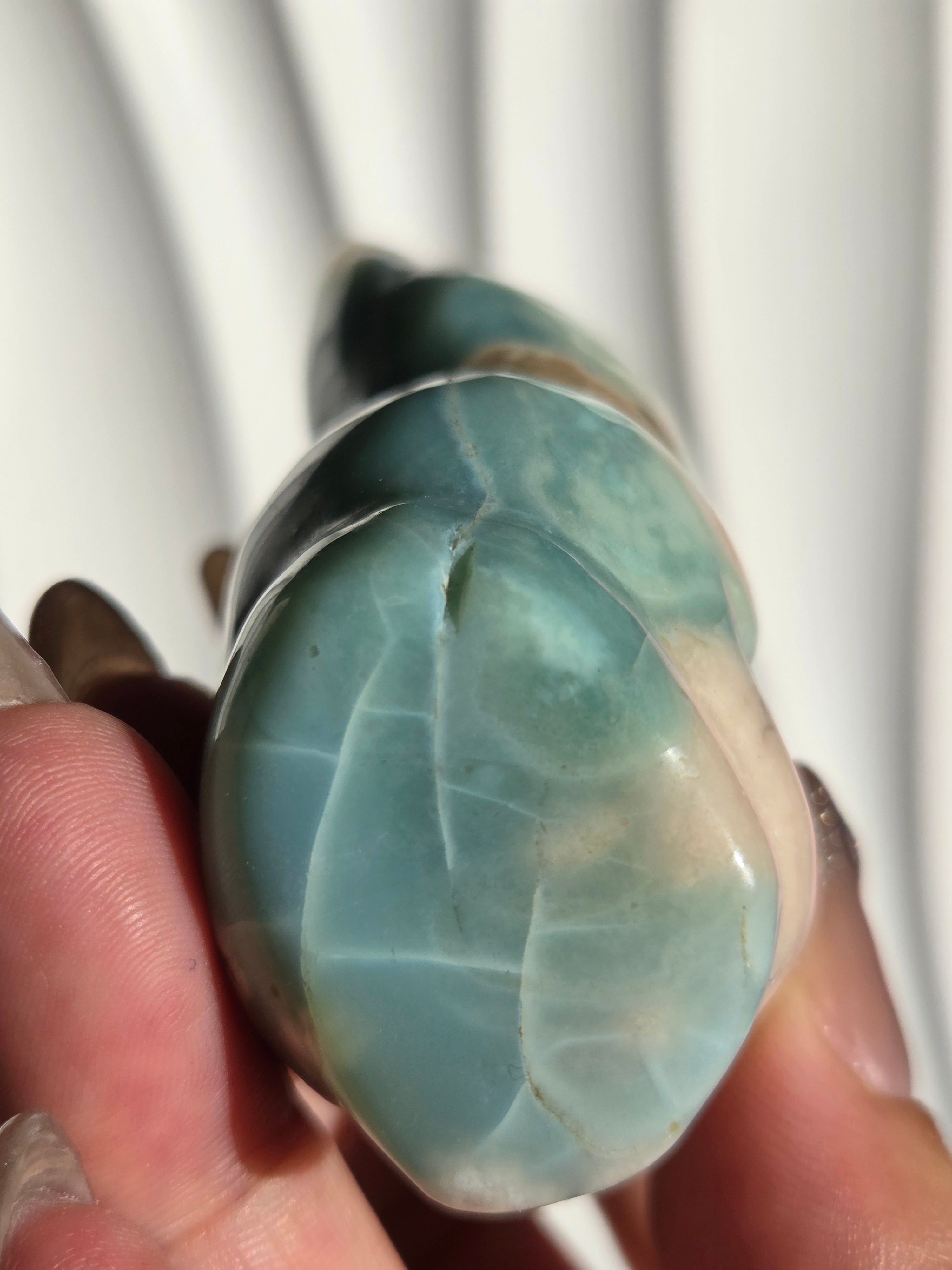 フラワーアゲートでは珍しいカラーの子です。濃い海色カラーに、ピンクベージュのお花がチャームポイントの子です。