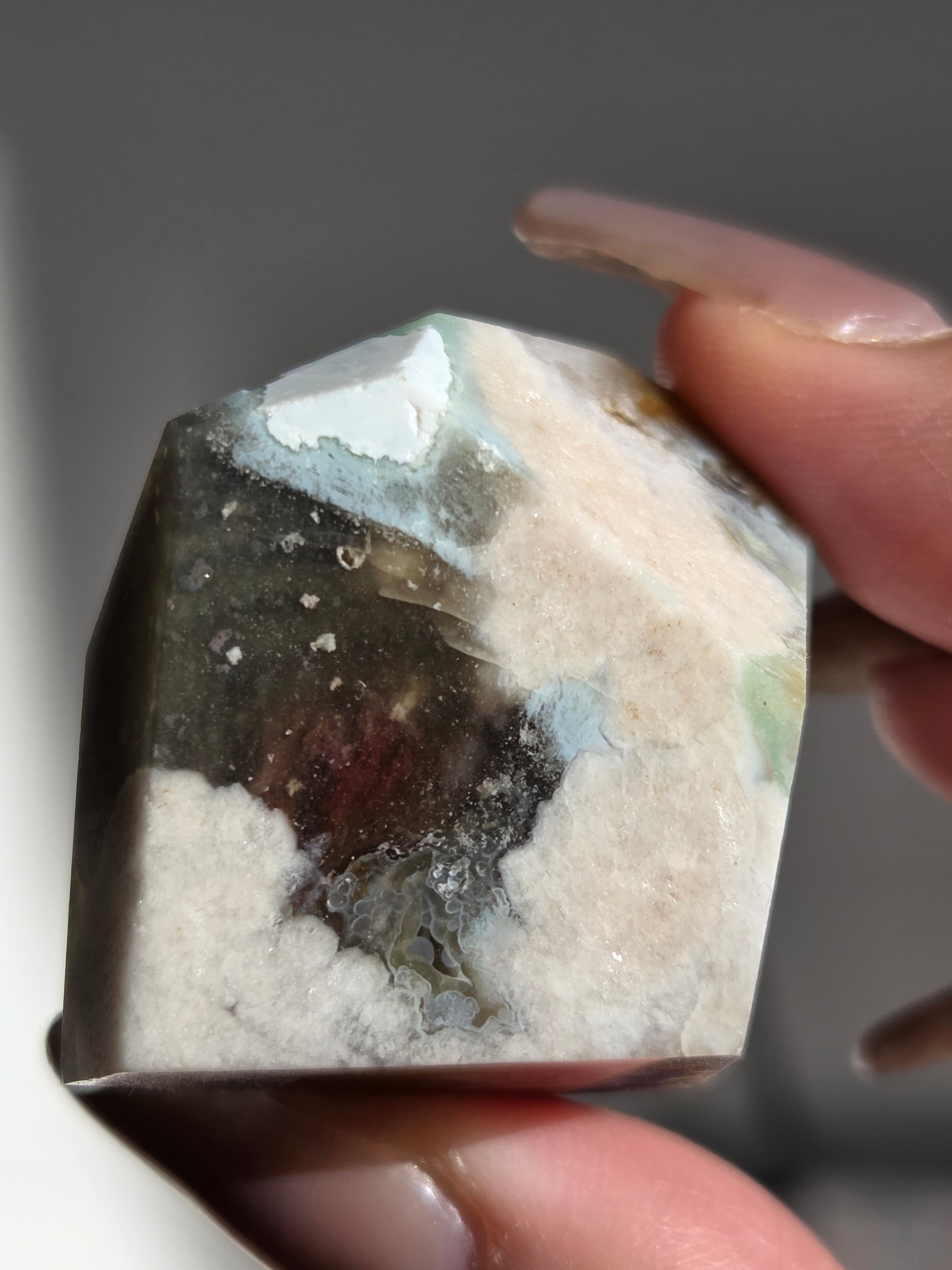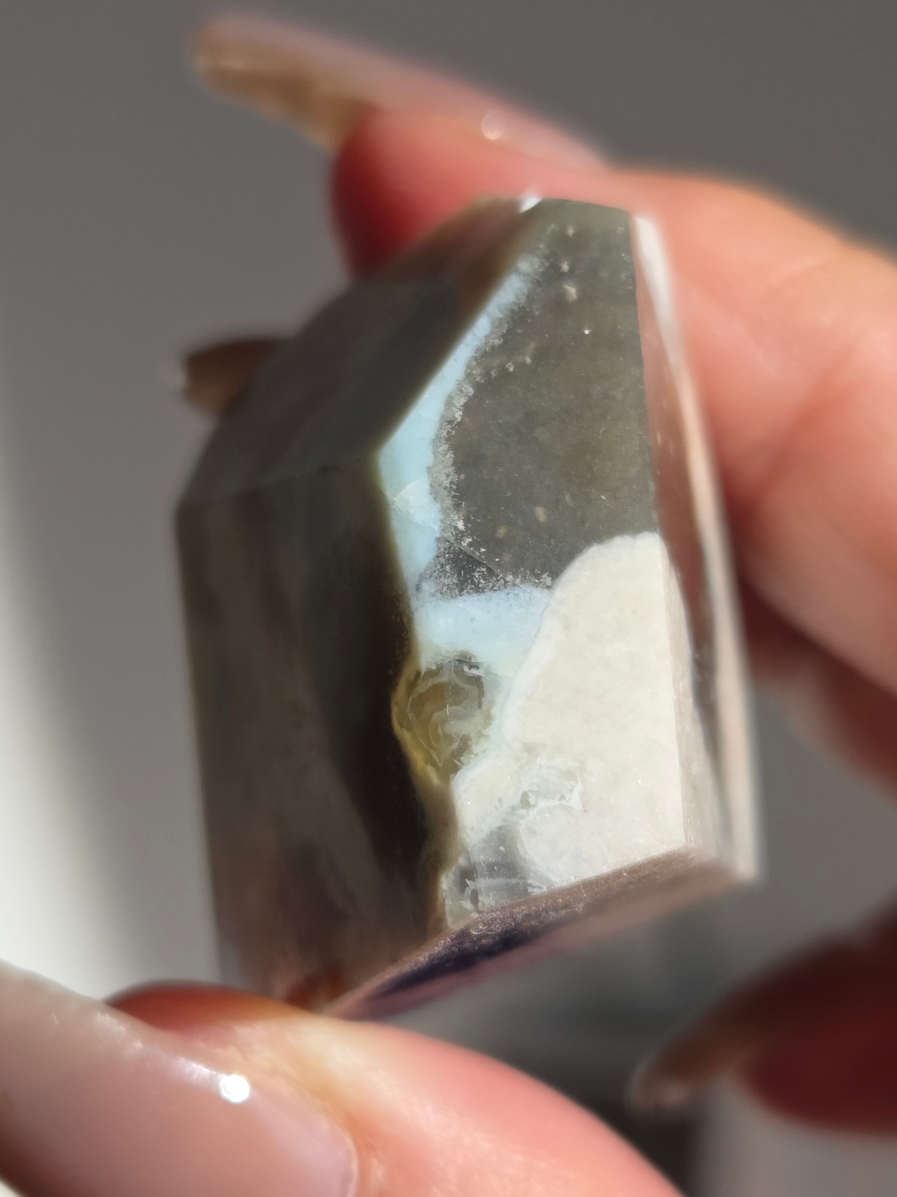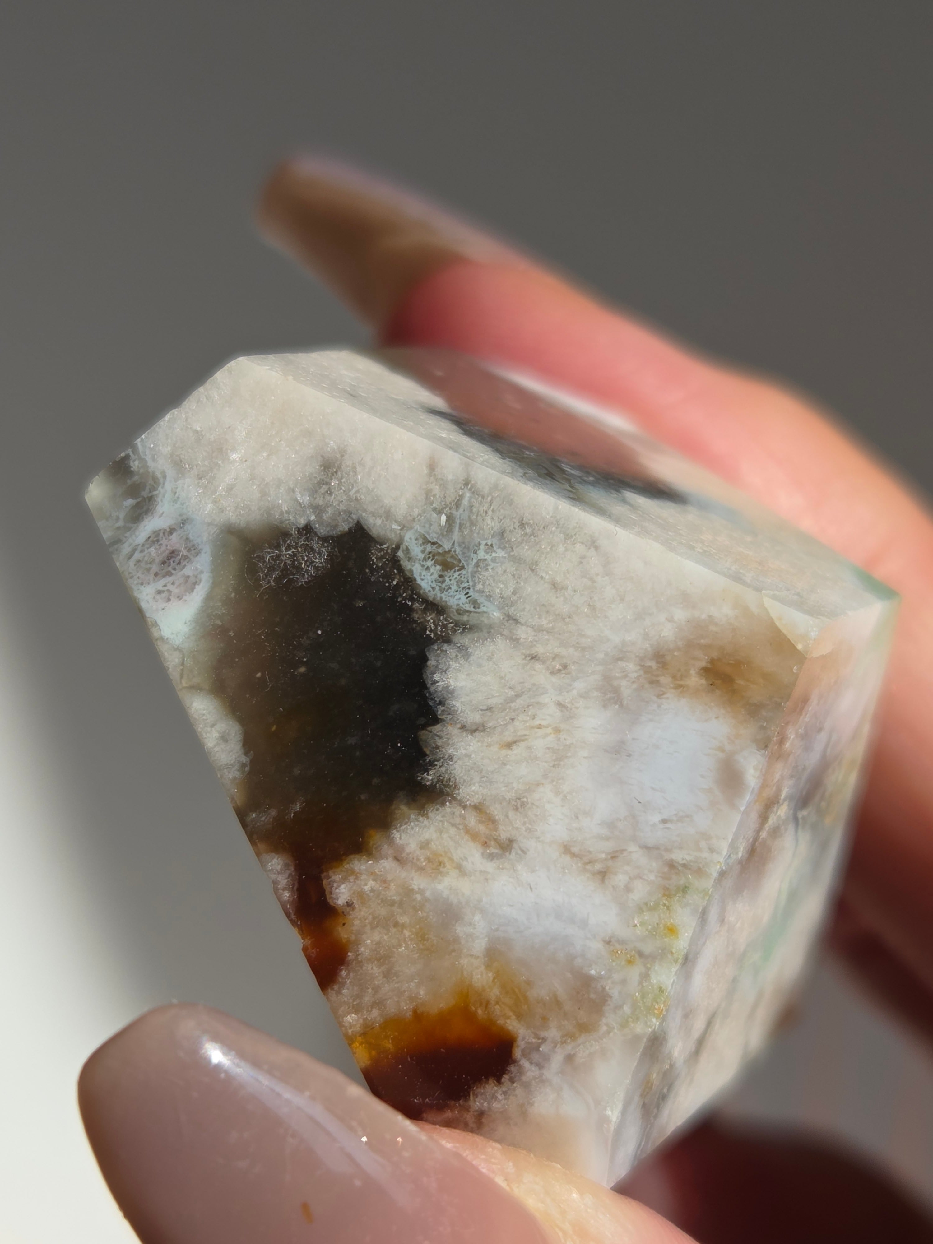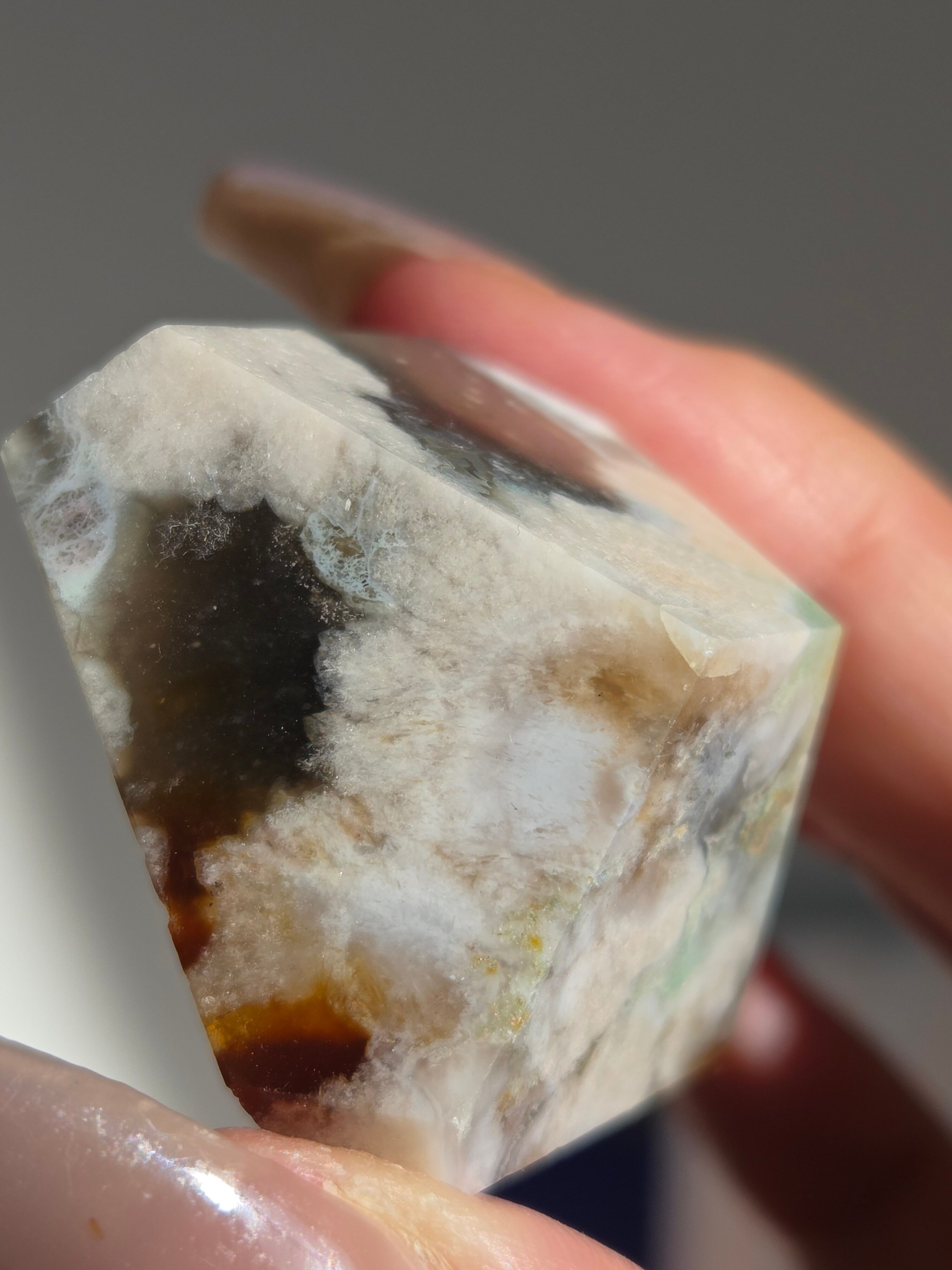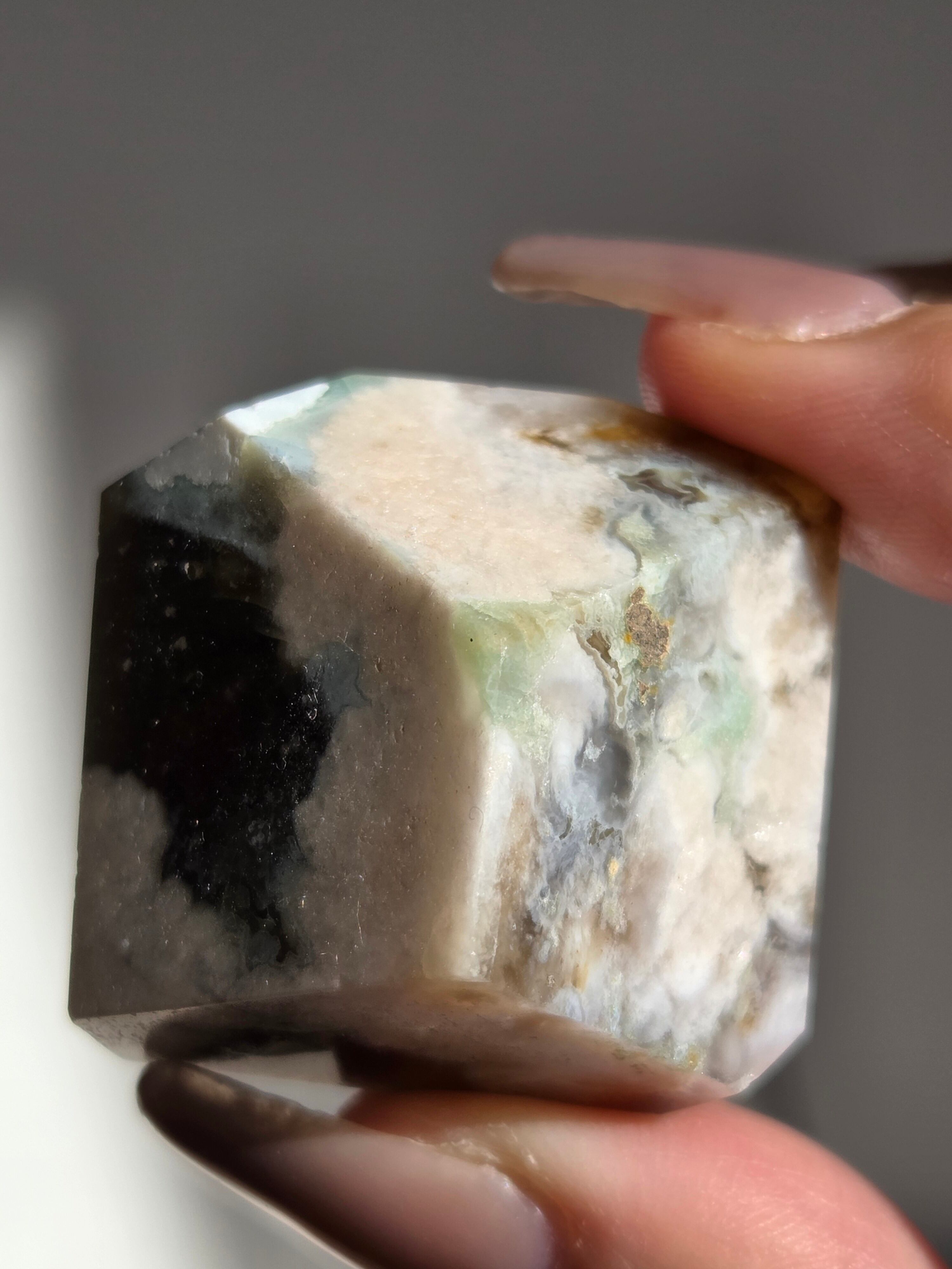 どの面も違う顔をしていて、ブラックフラワーアゲートならではの、大人っぽさのあるお石だと思います。