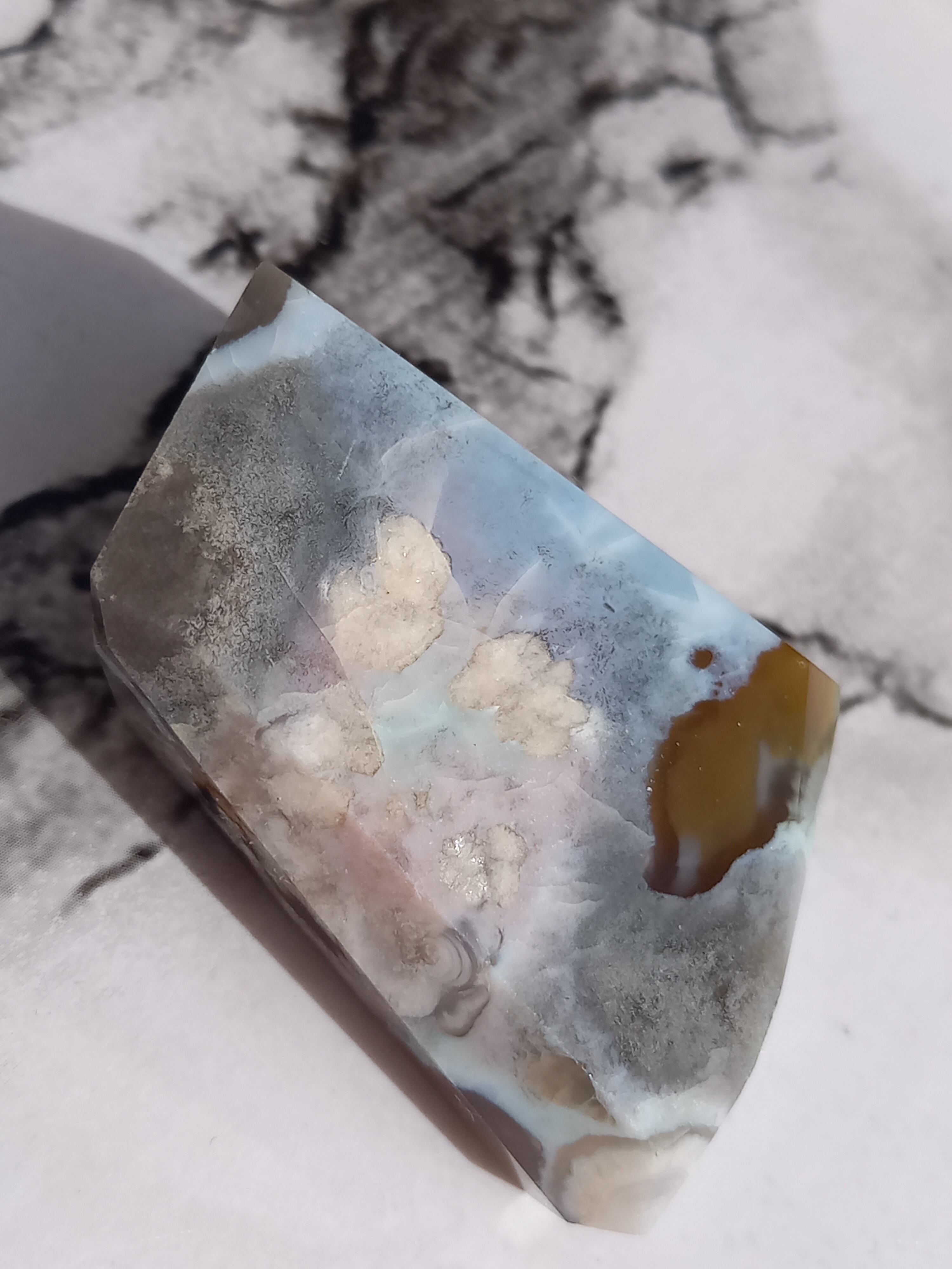 どの面も違う顔をしていて、ブラックフラワーアゲートならではの、大人っぽさのあるお石だと思います。