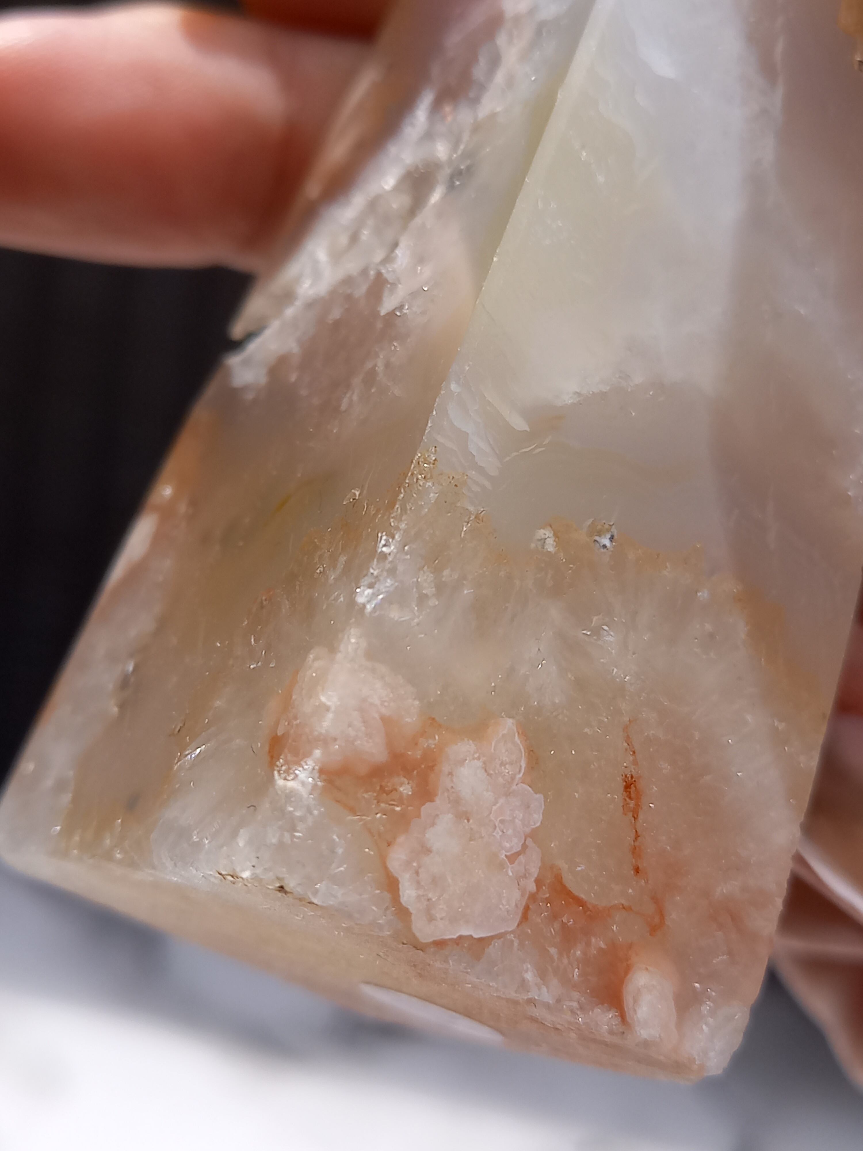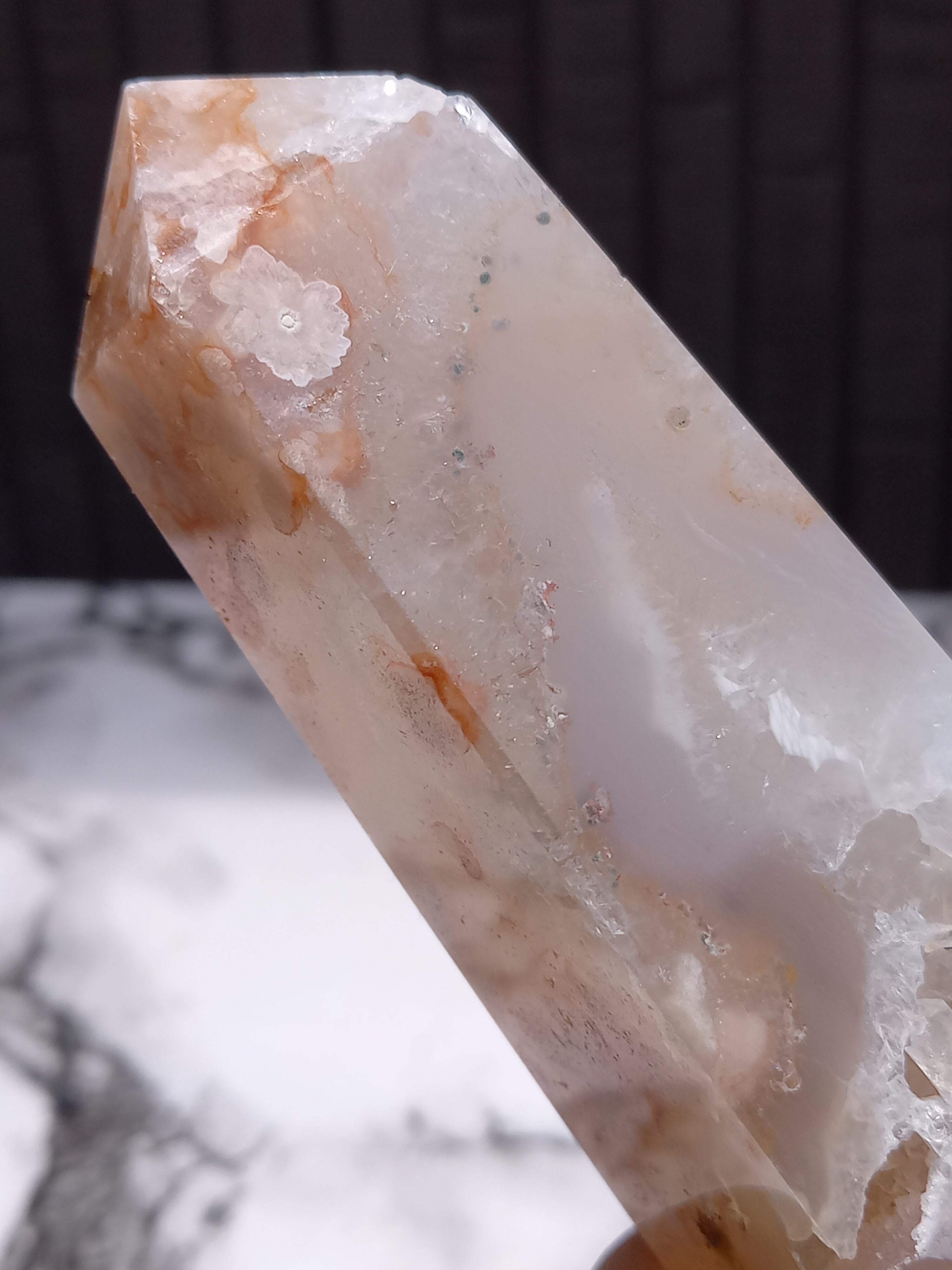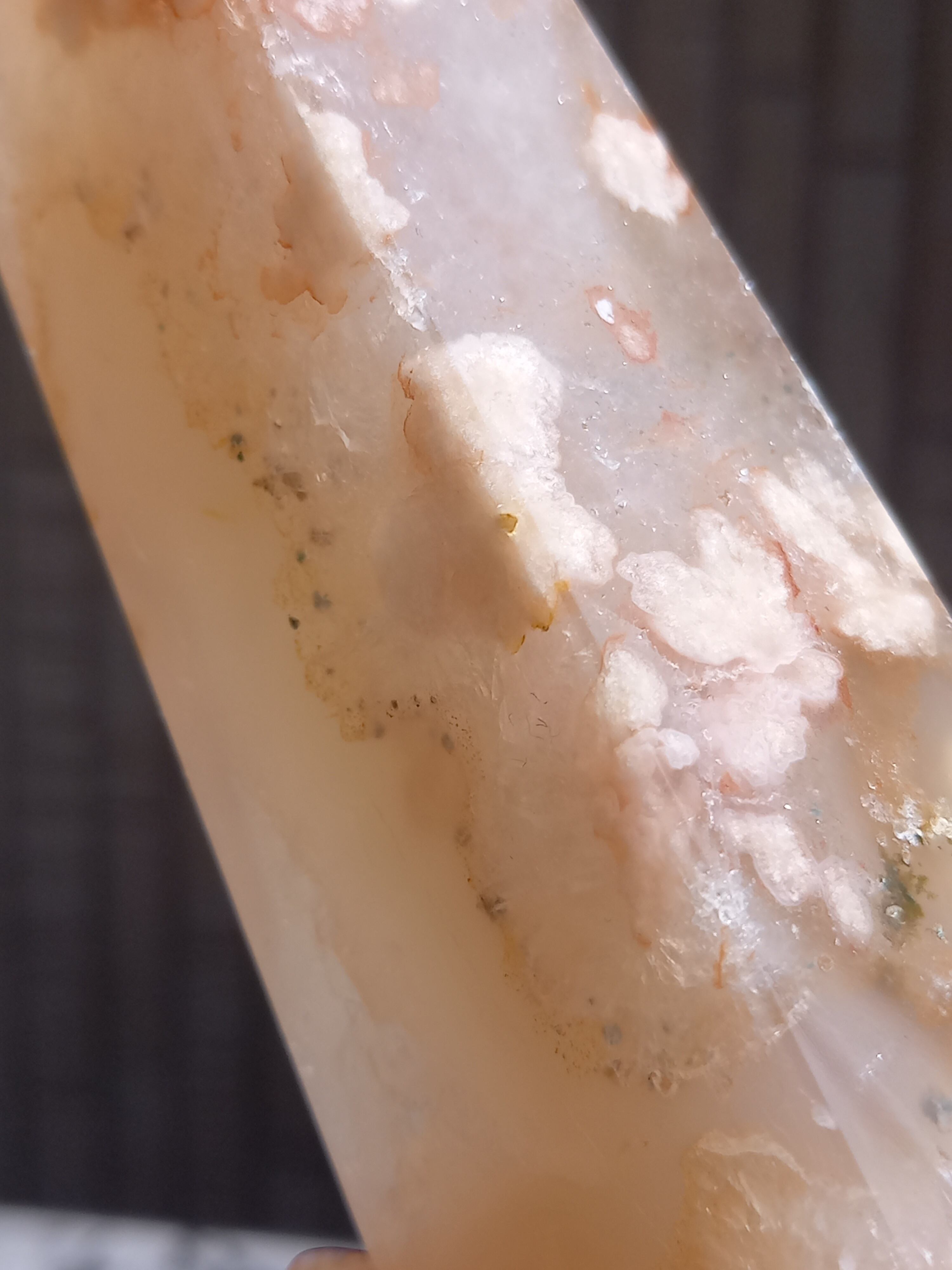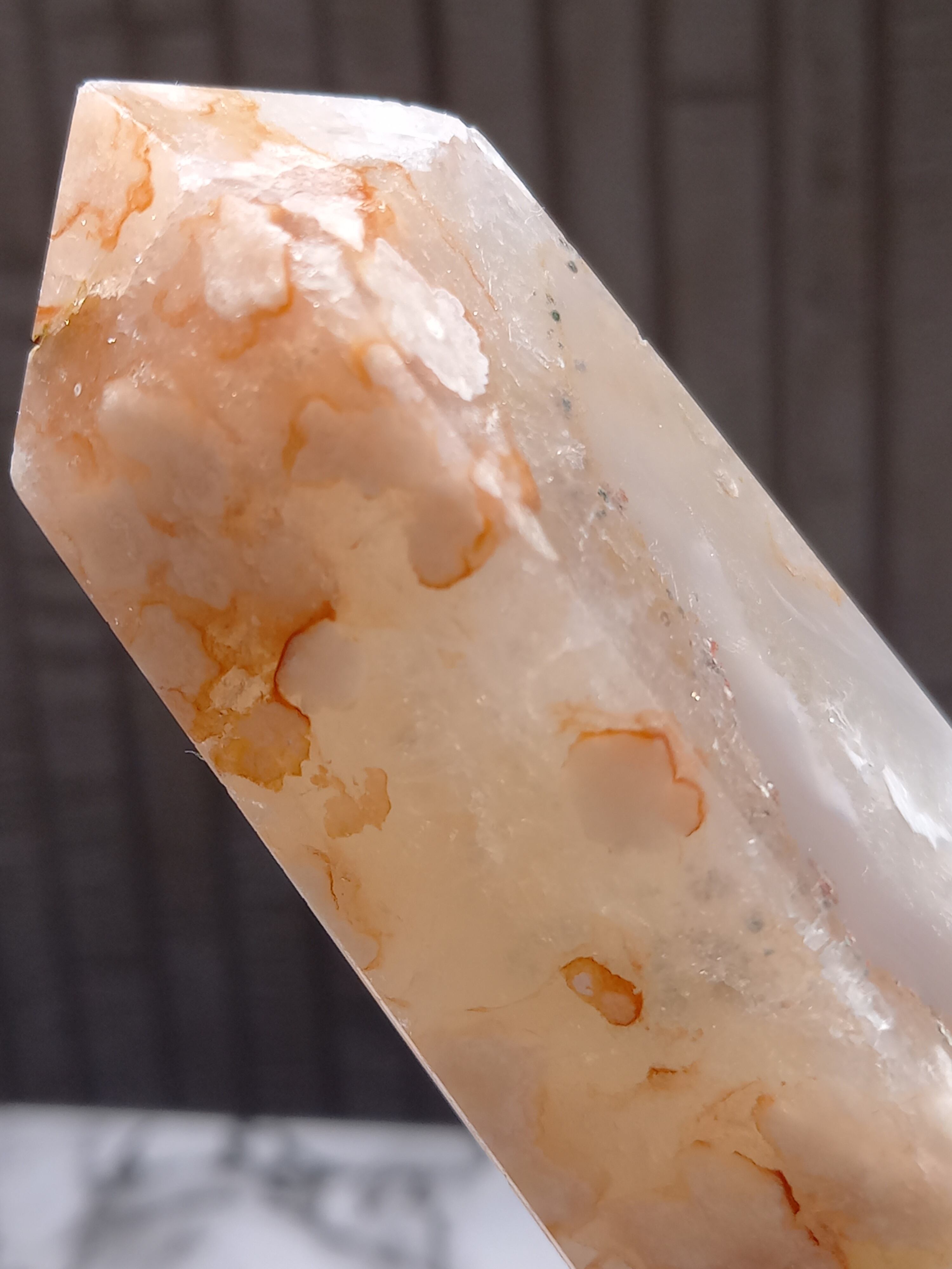 ピンクアメジストに、フラワーアゲートが共生したポイントタワーになります。