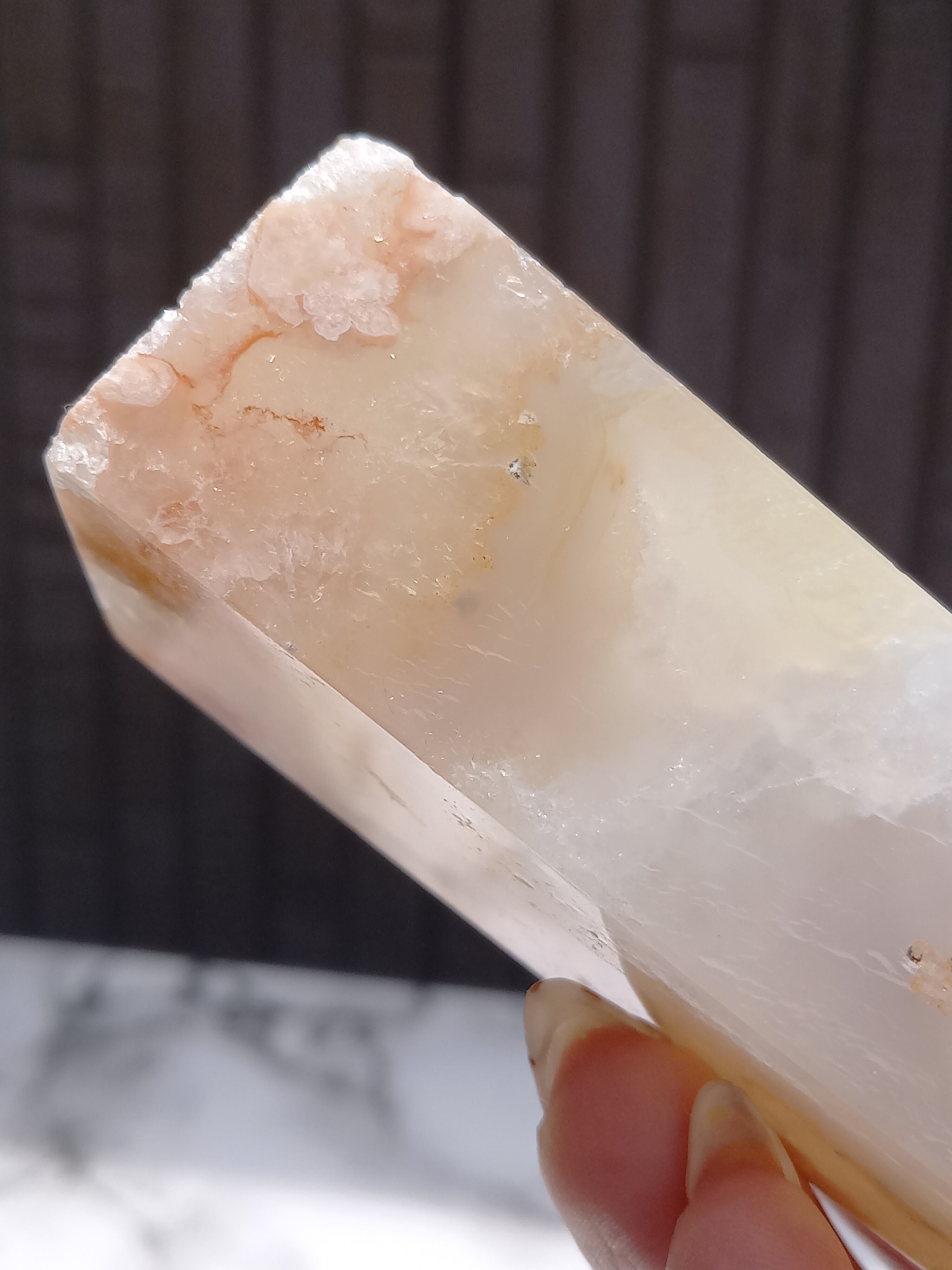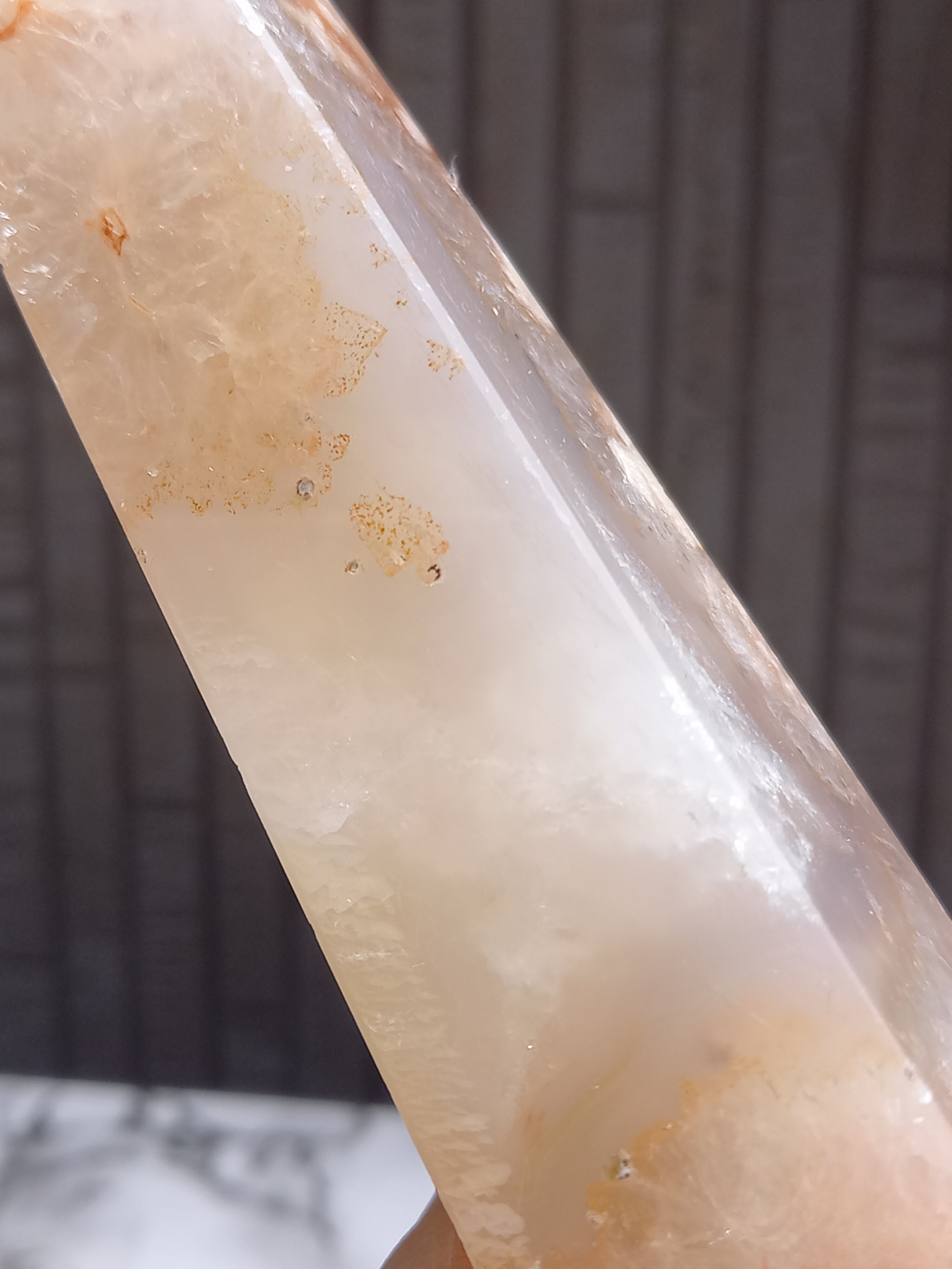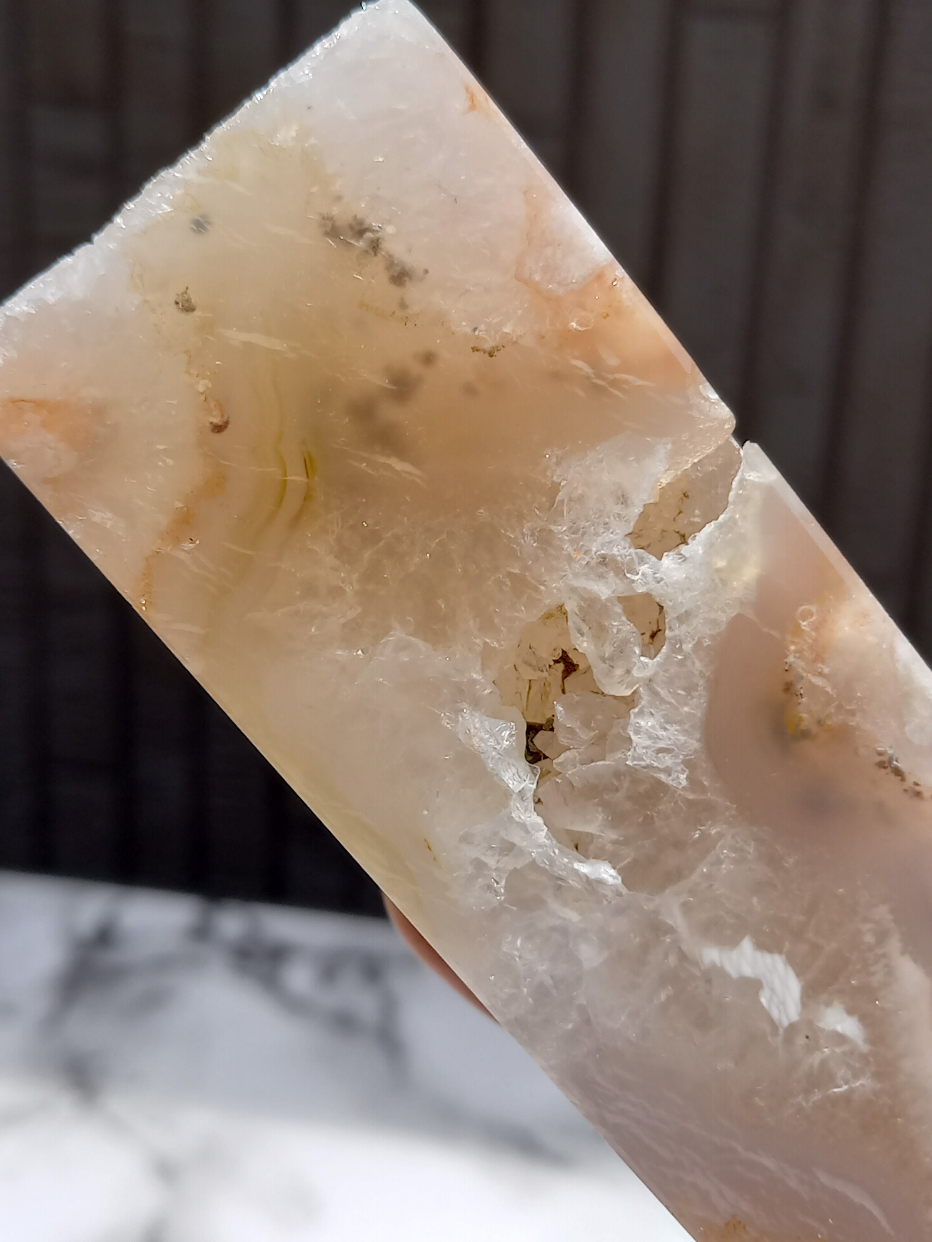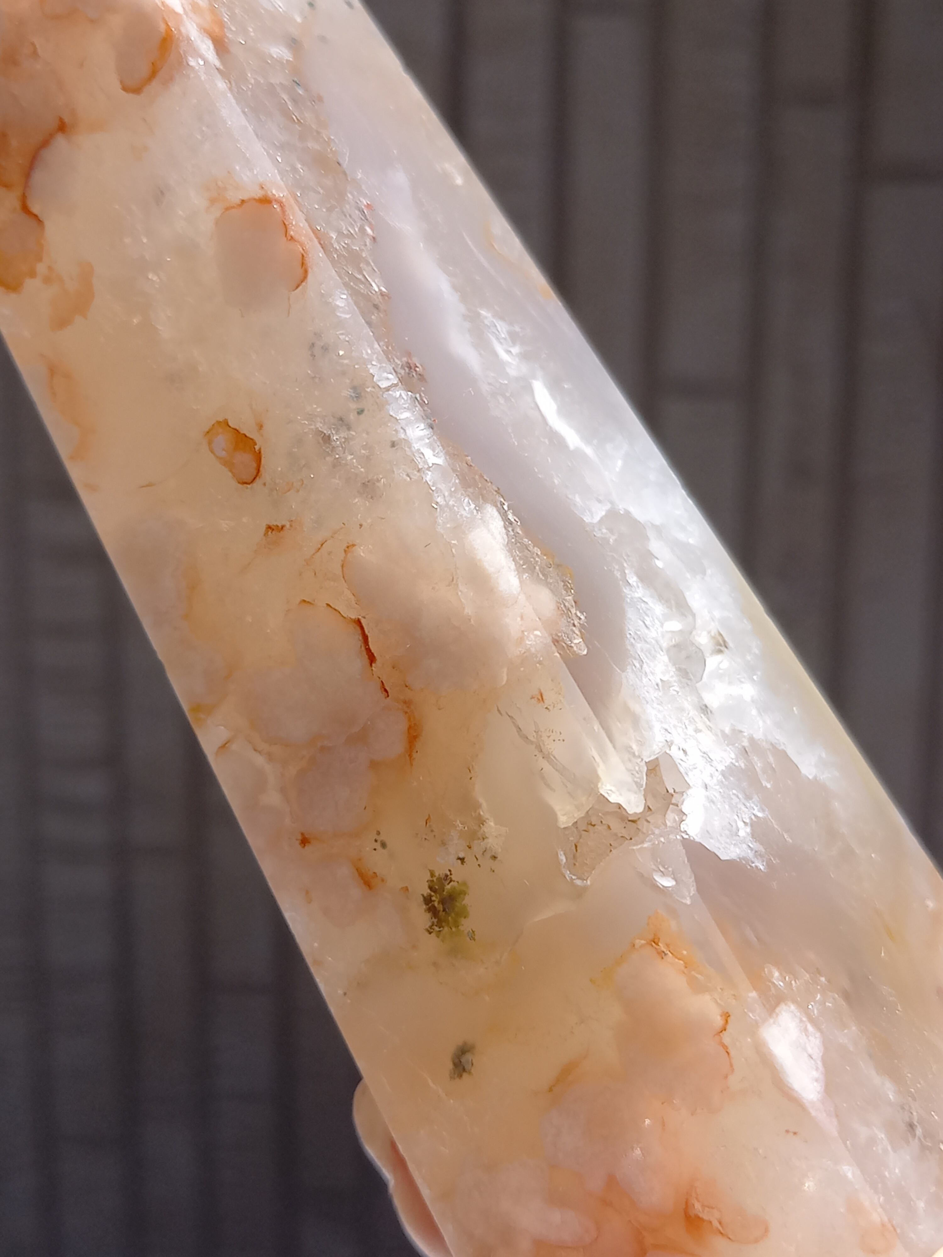 ピンクアメジストに、フラワーアゲートが共生したポイントタワーになります。