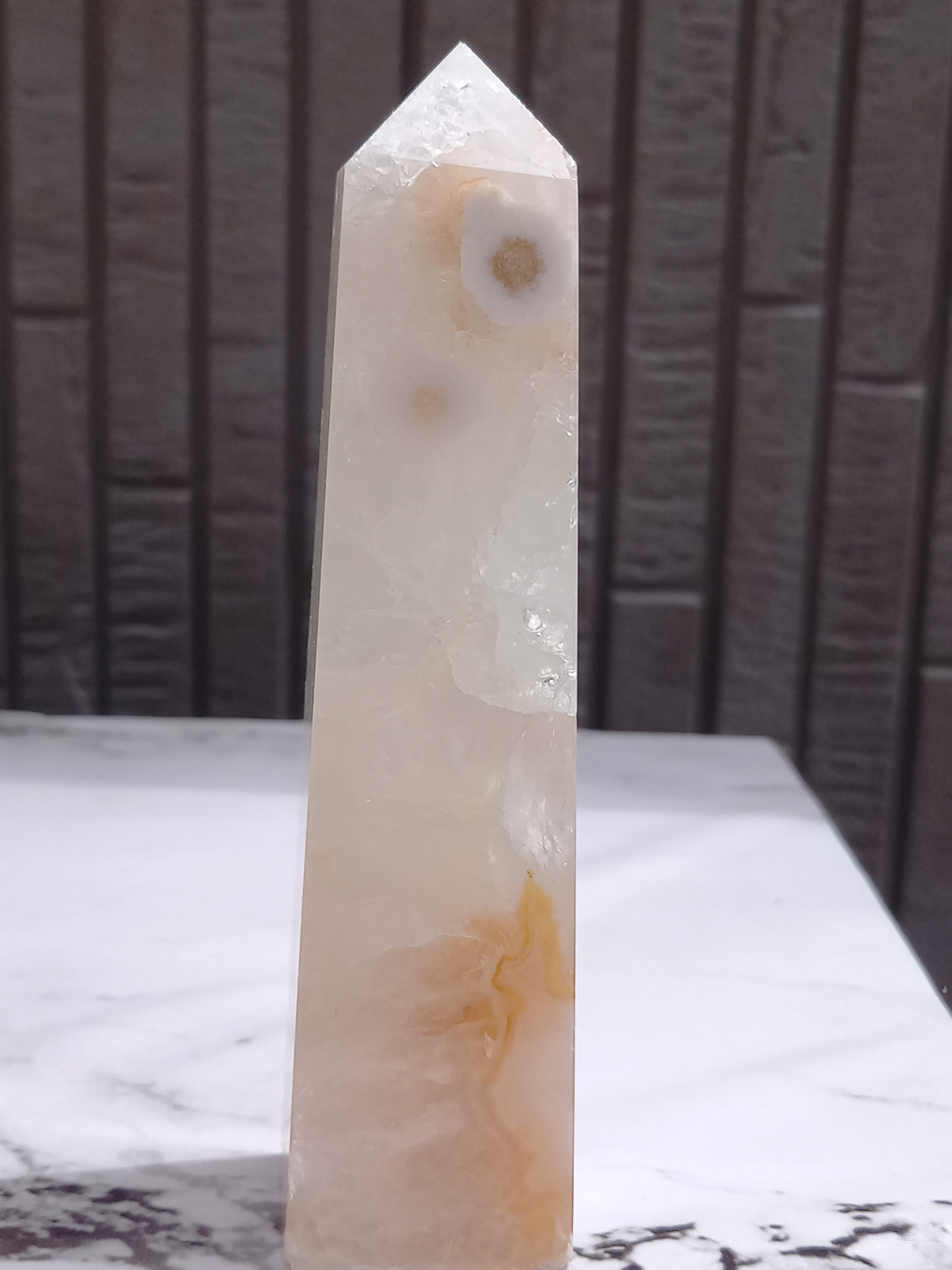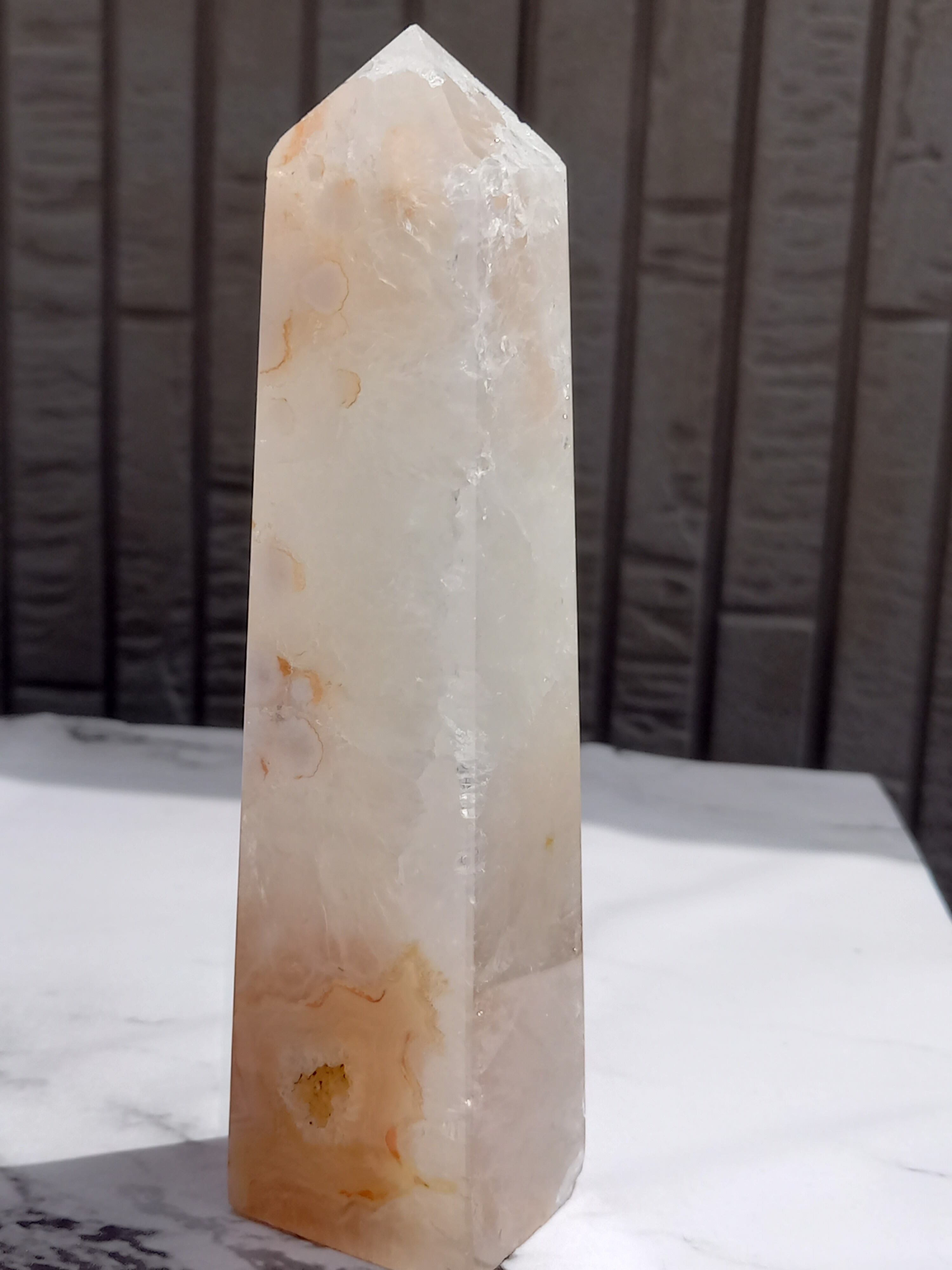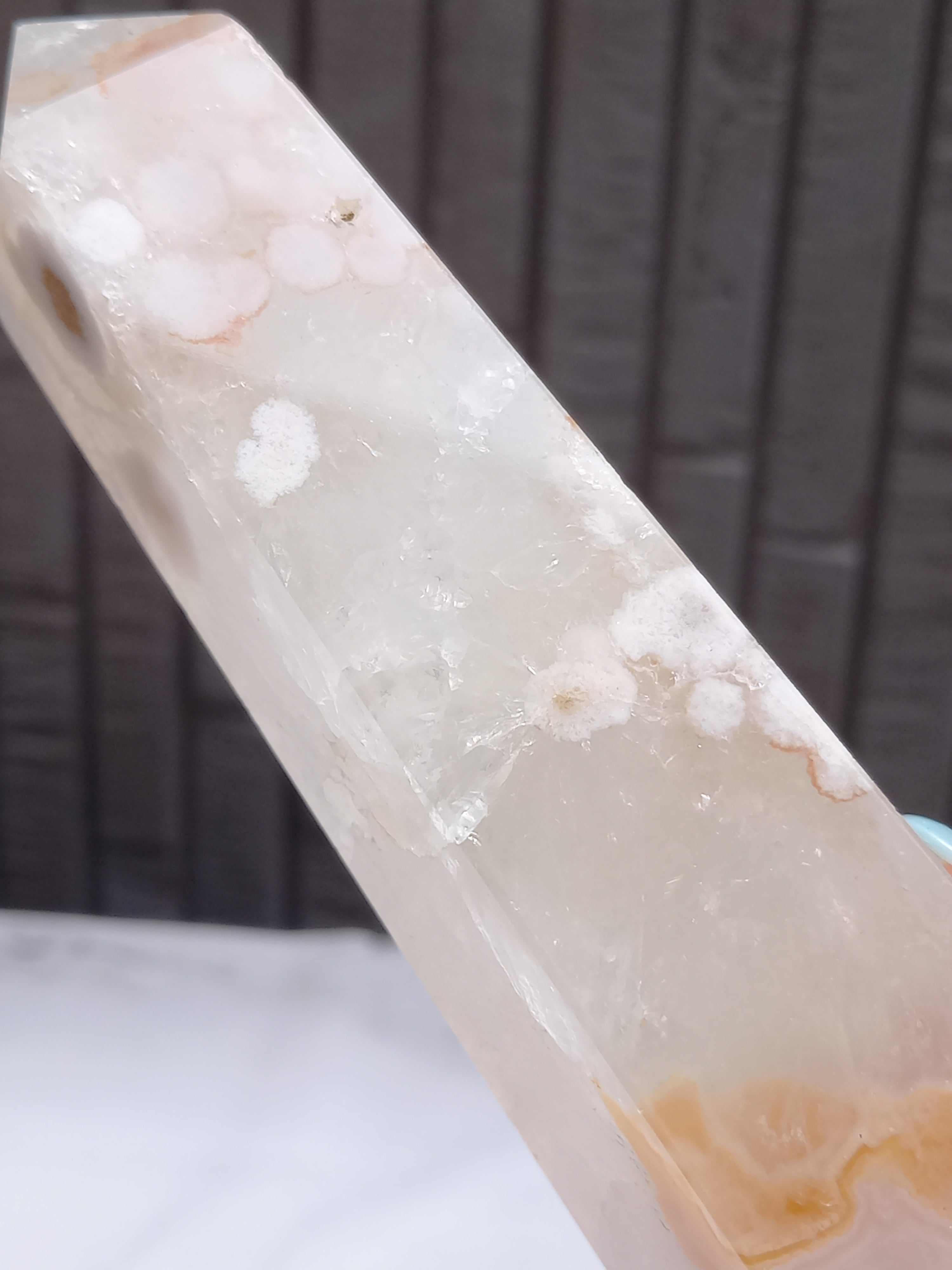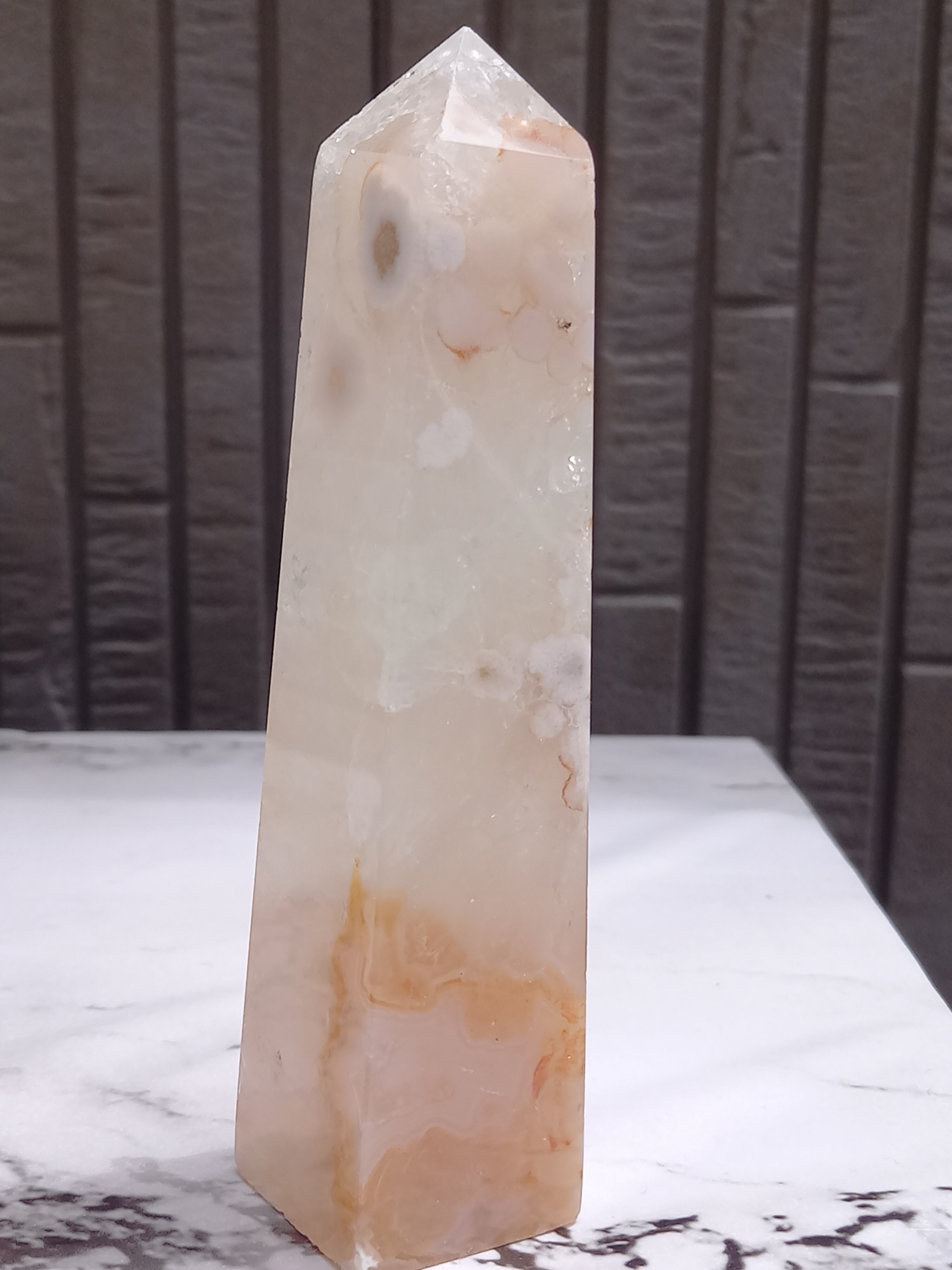 ピンクアメジストに、フラワーアゲートが共生したポイントタワーになります。