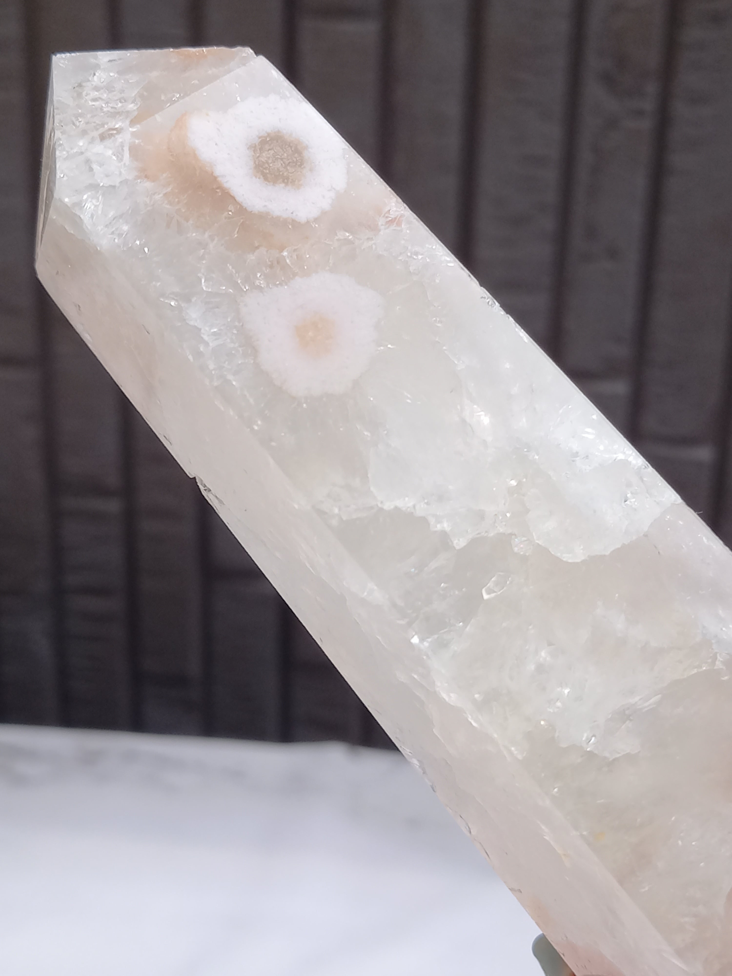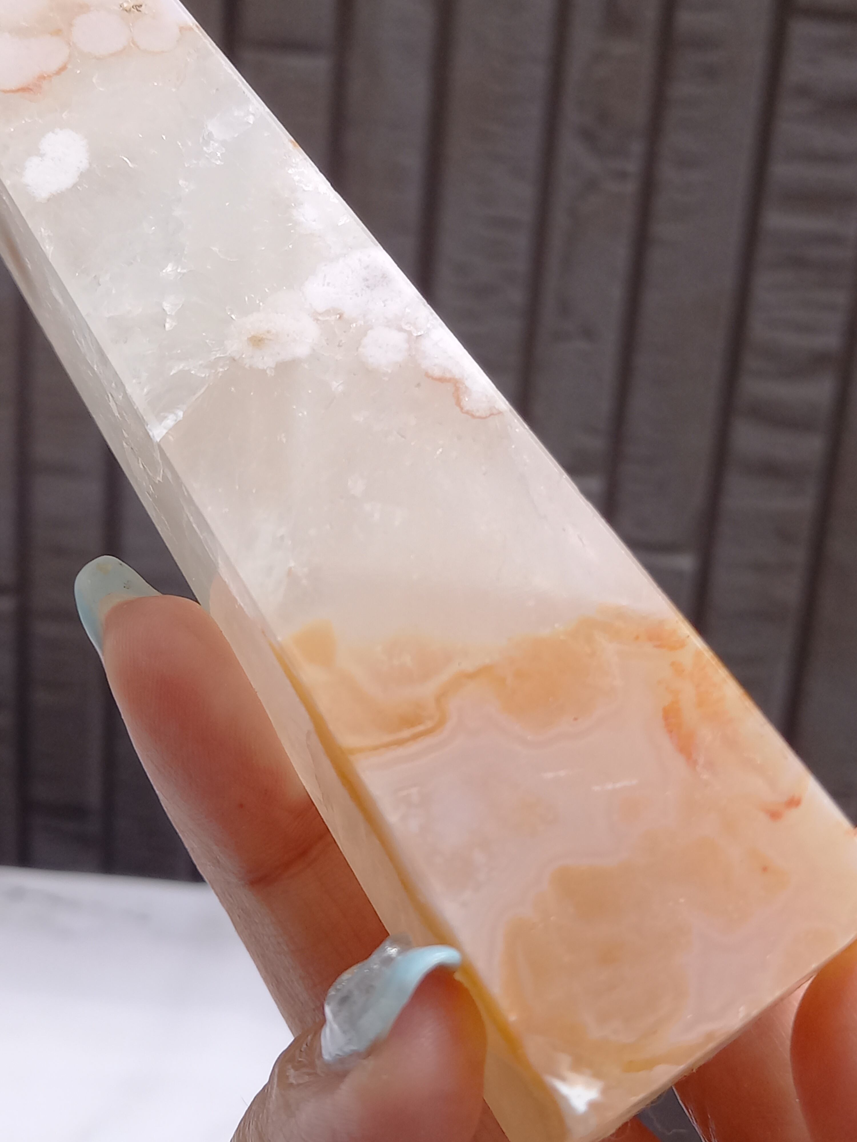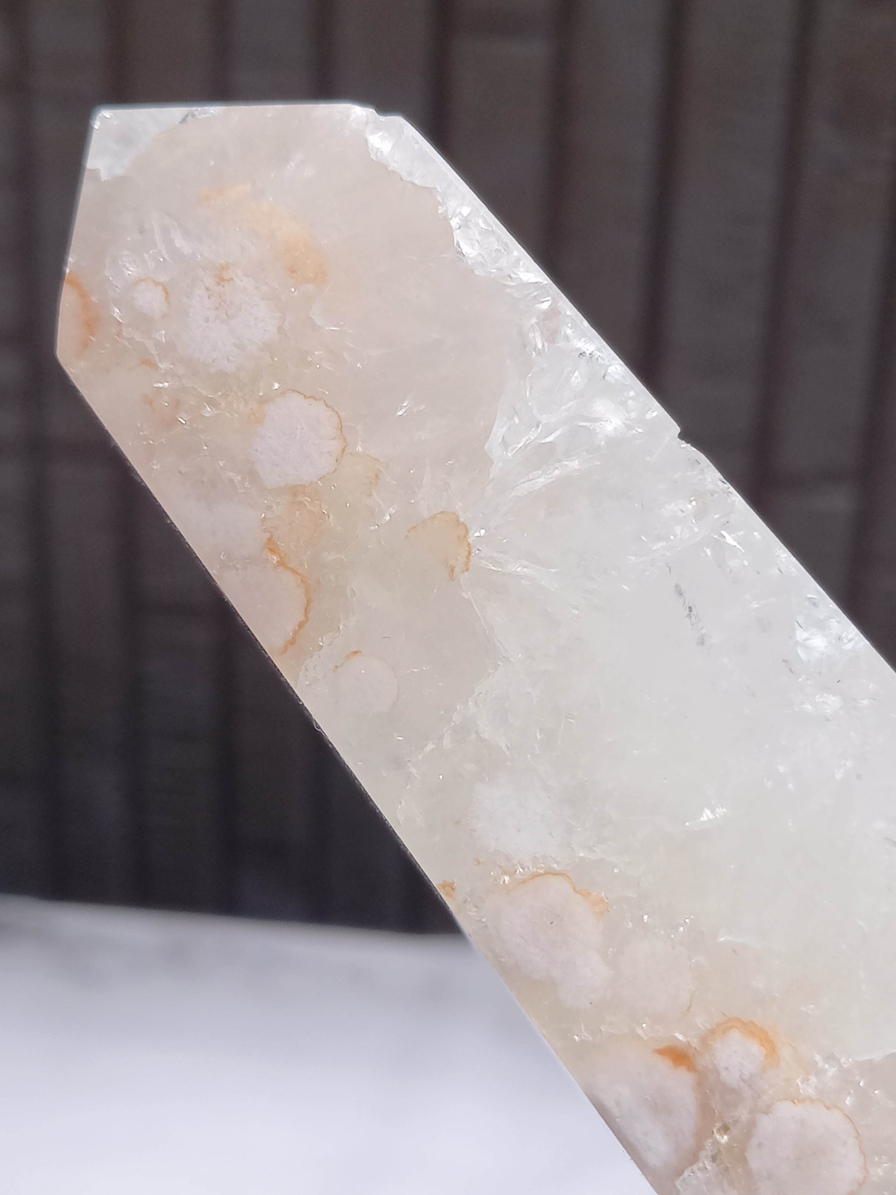 ピンクアメジストに、フラワーアゲートが共生したポイントタワーになります。
