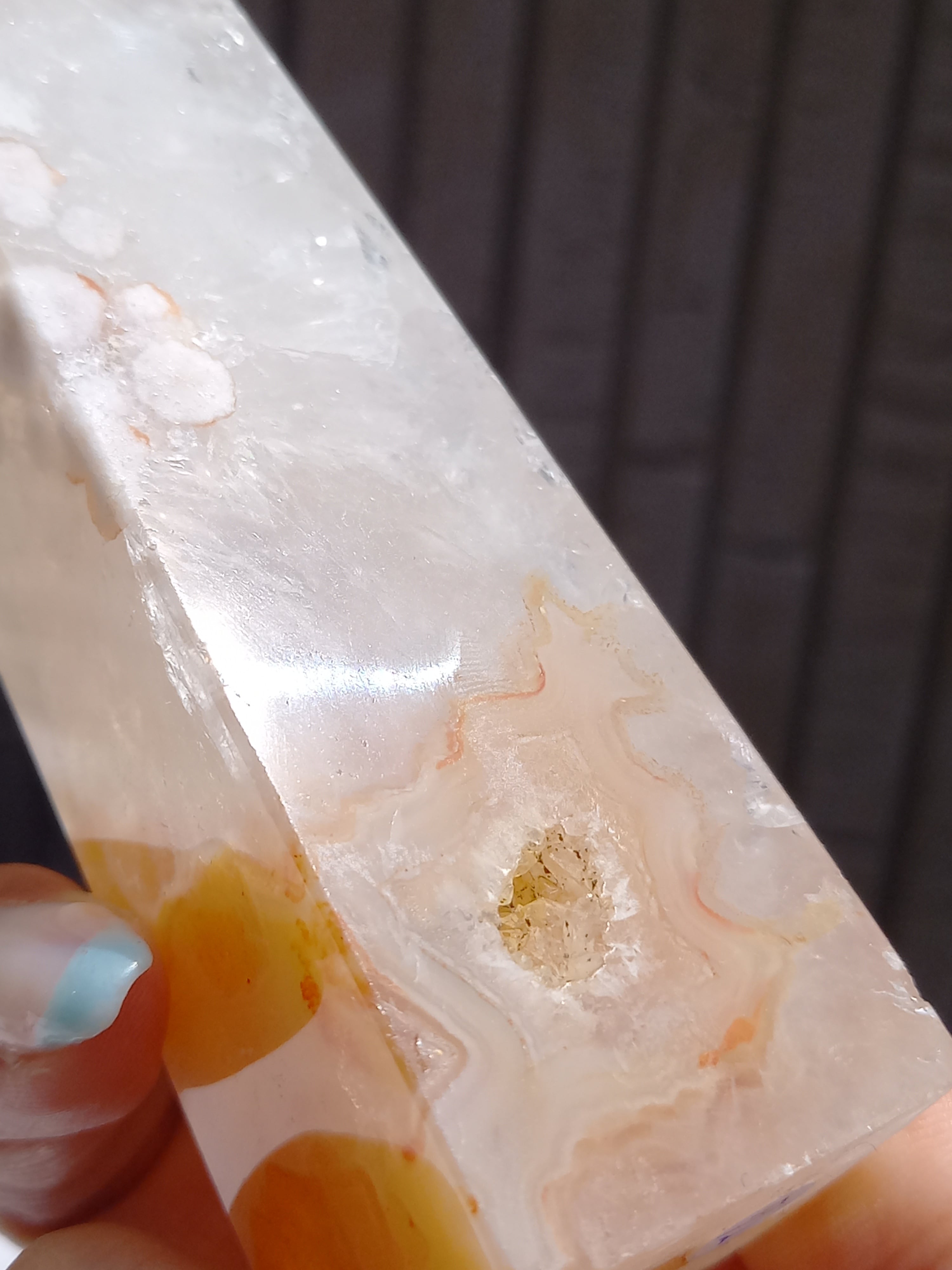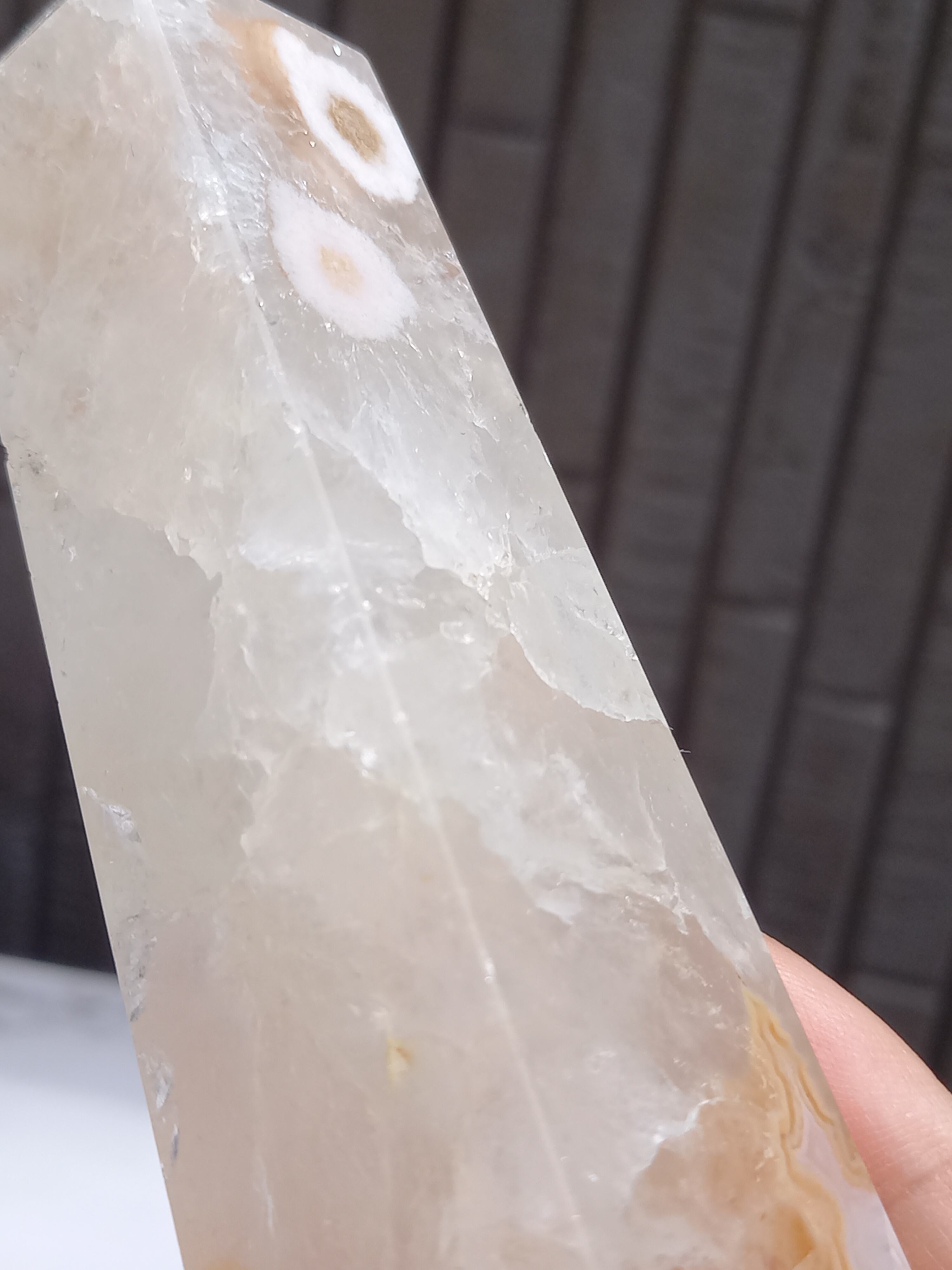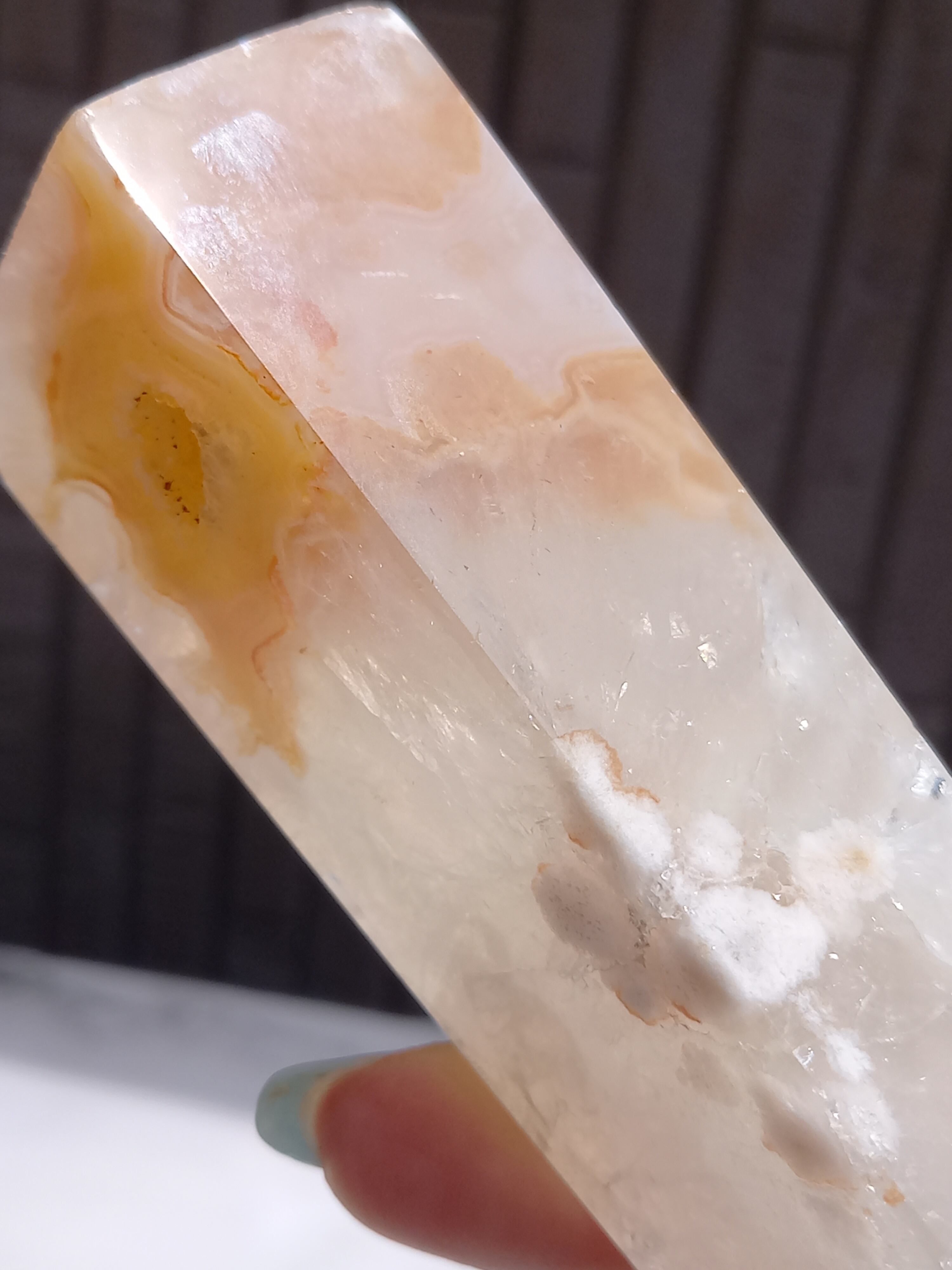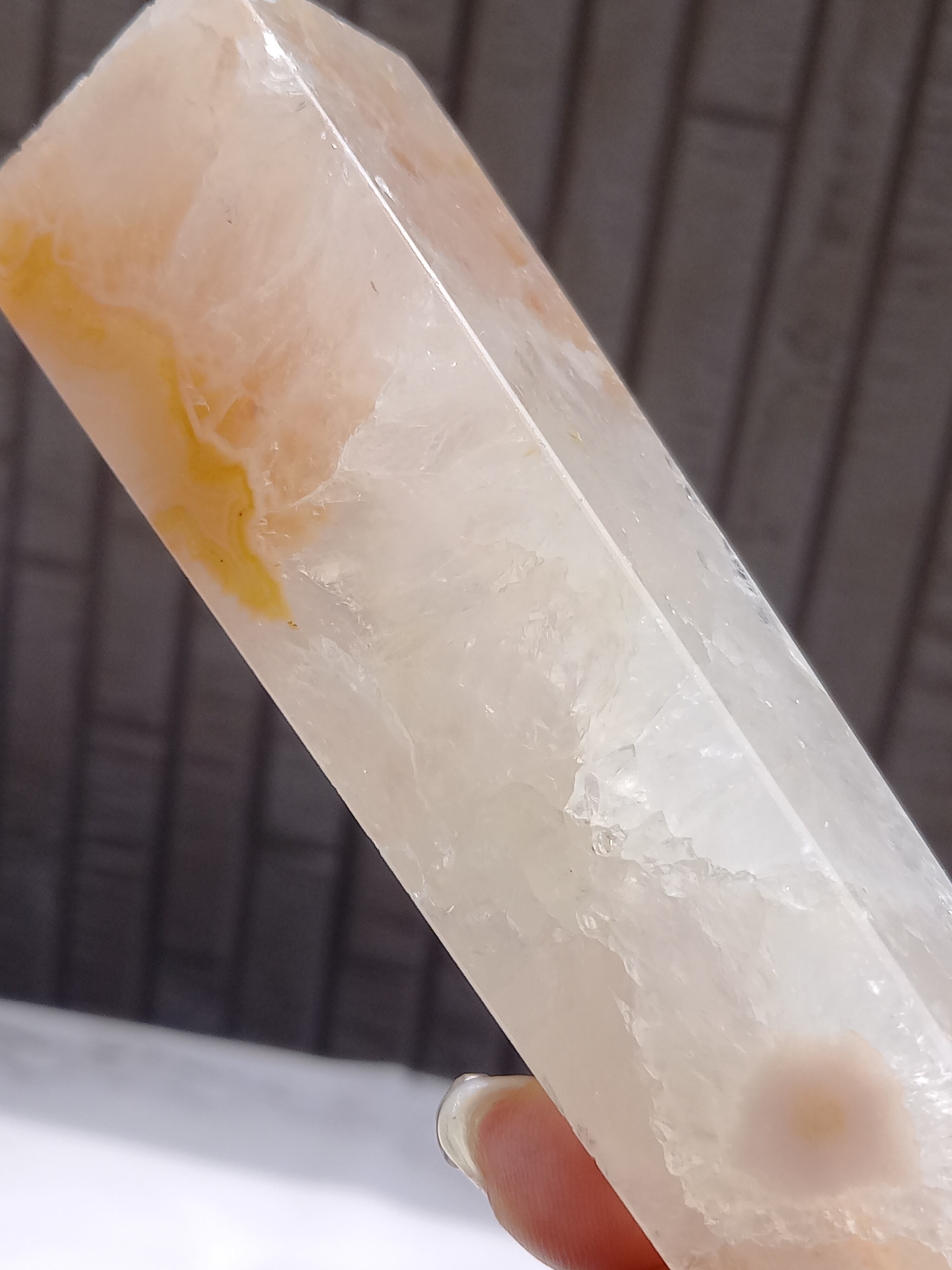 ピンクアメジストに、フラワーアゲートが共生したポイントタワーになります。