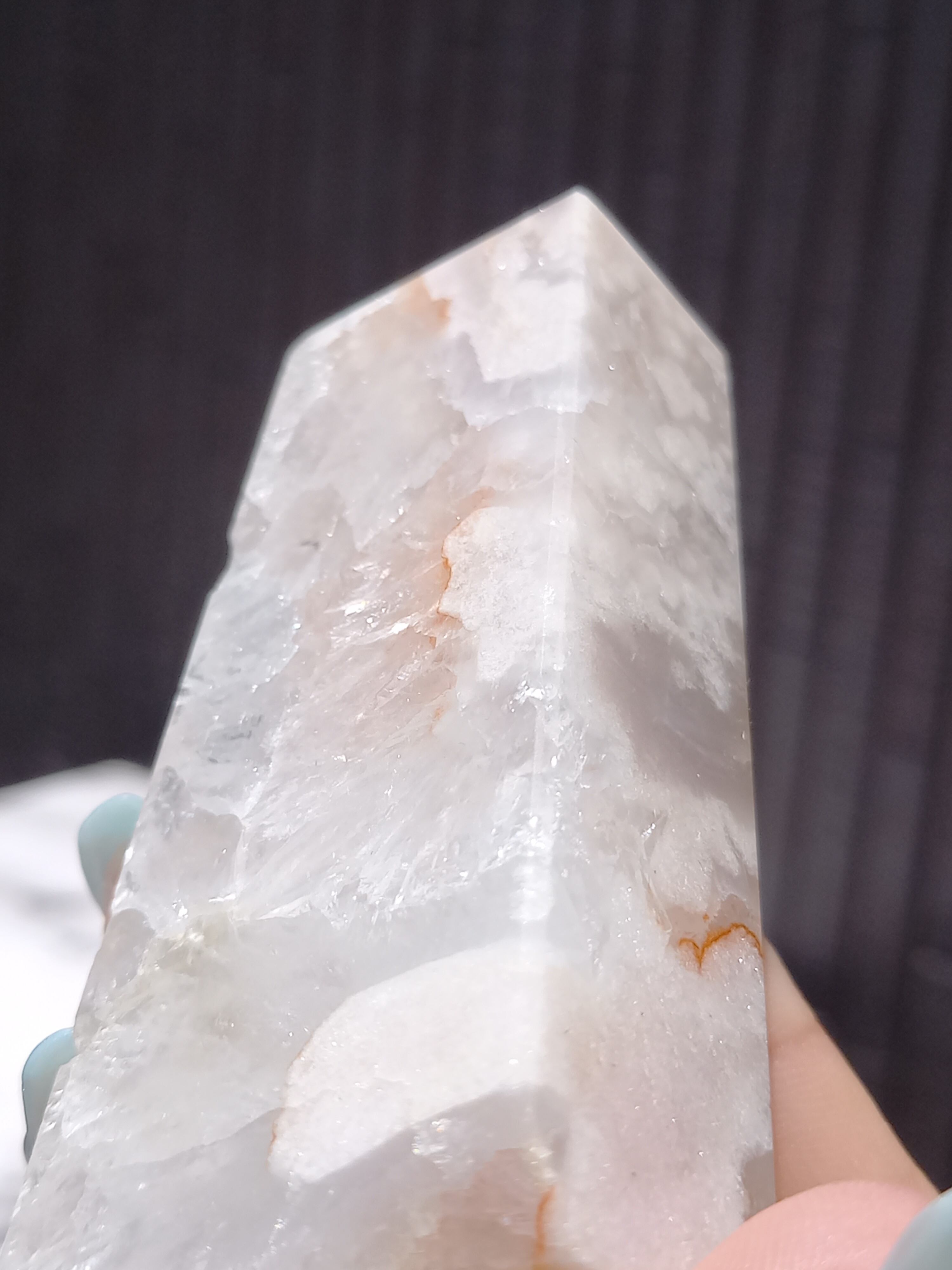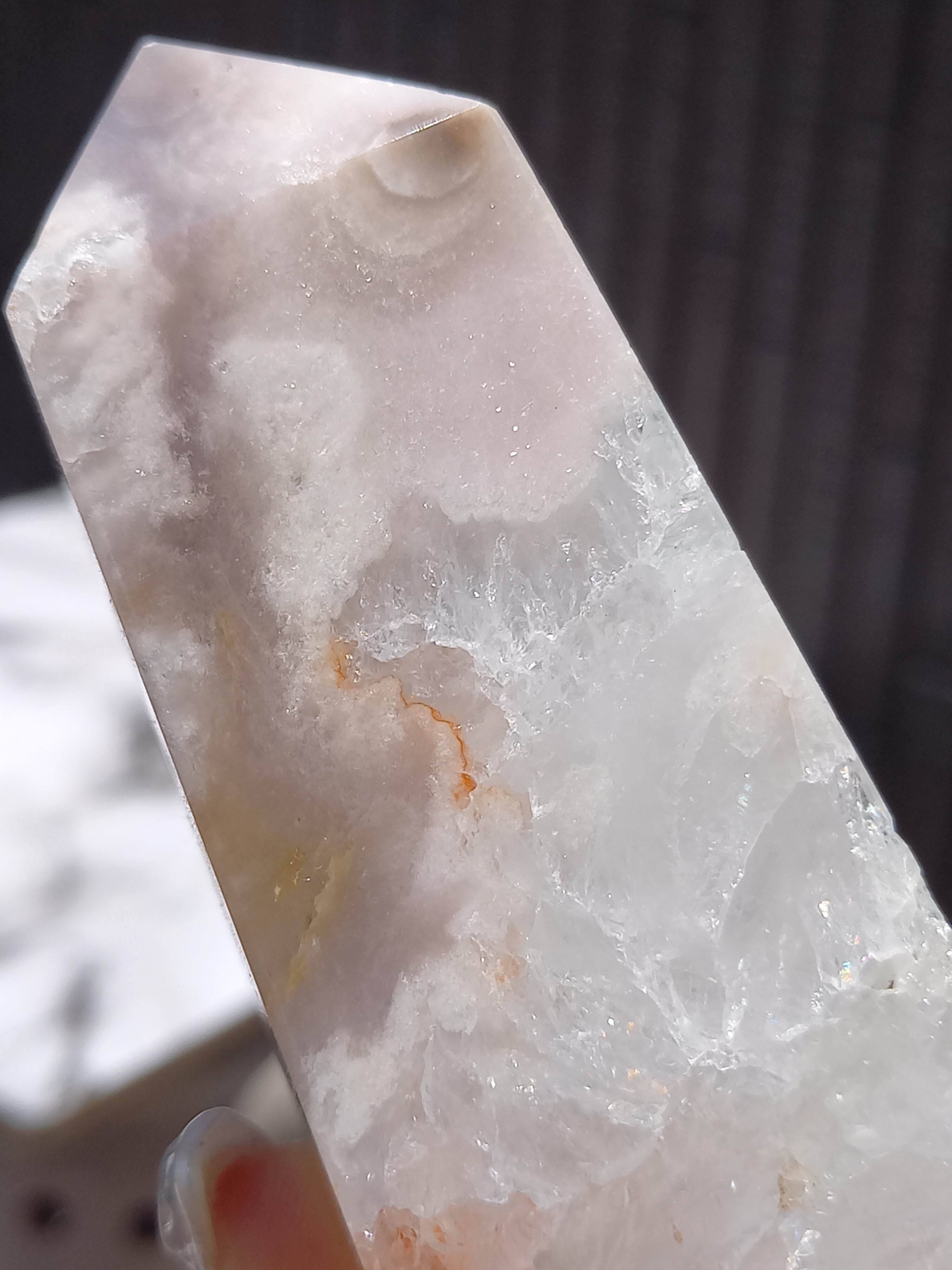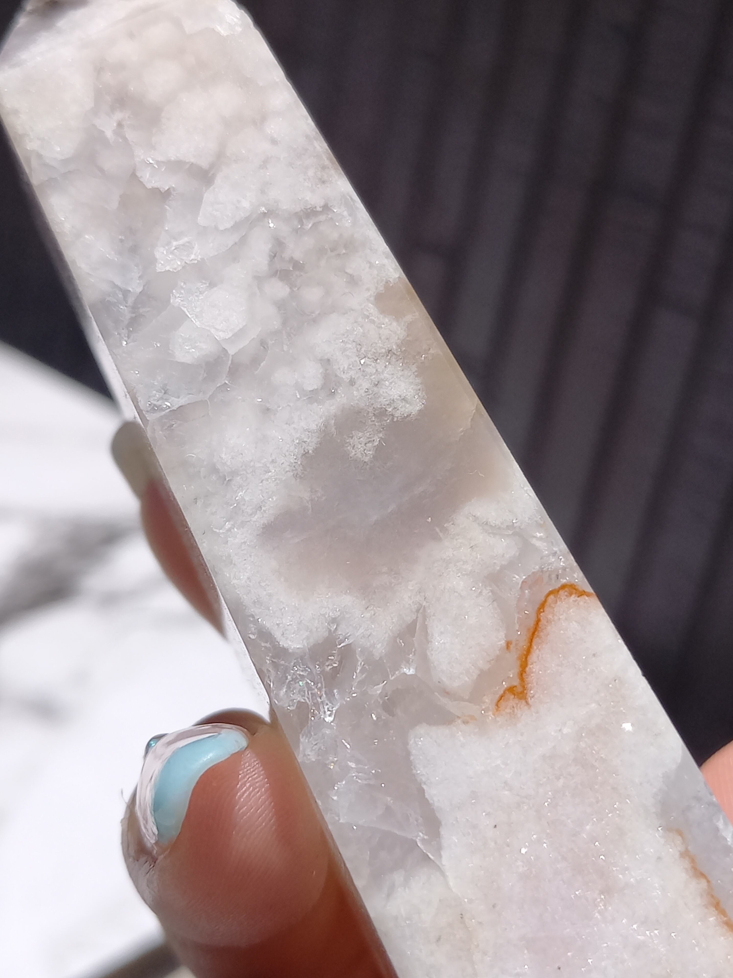 この子は、ザクザクな結晶がとても美しい子で、先端部分にパープルグレーカラーがスッと入った美しい子です。