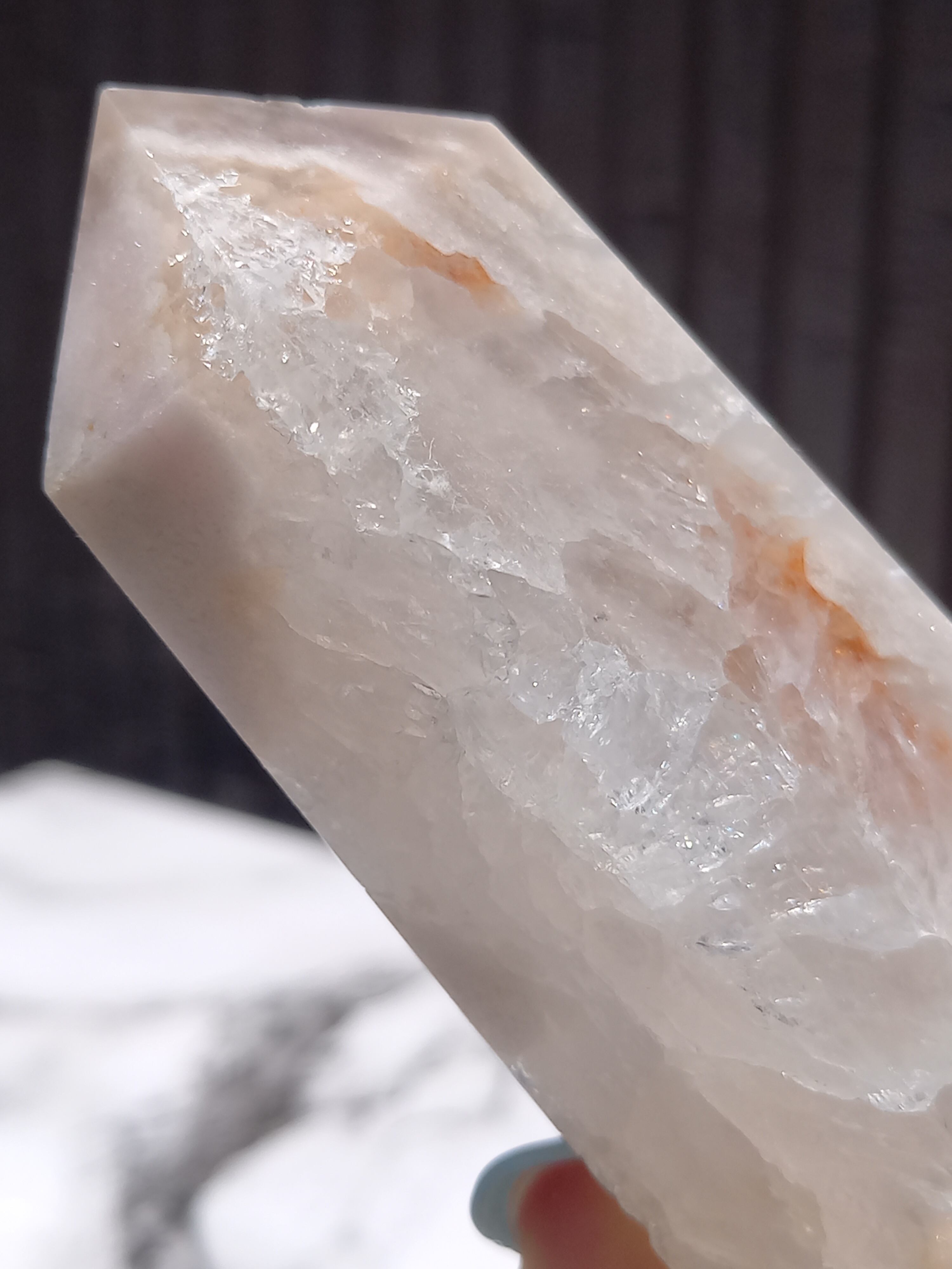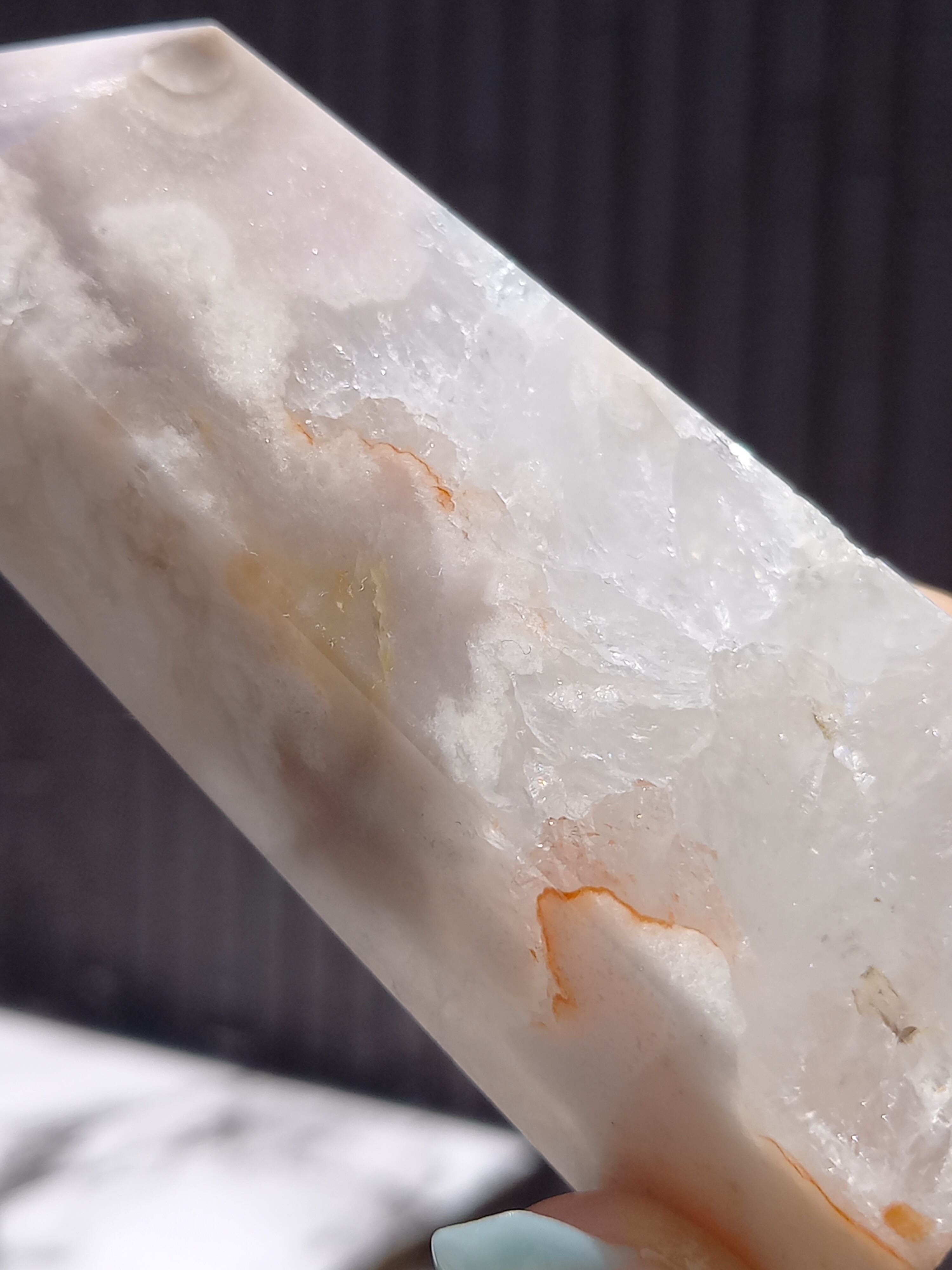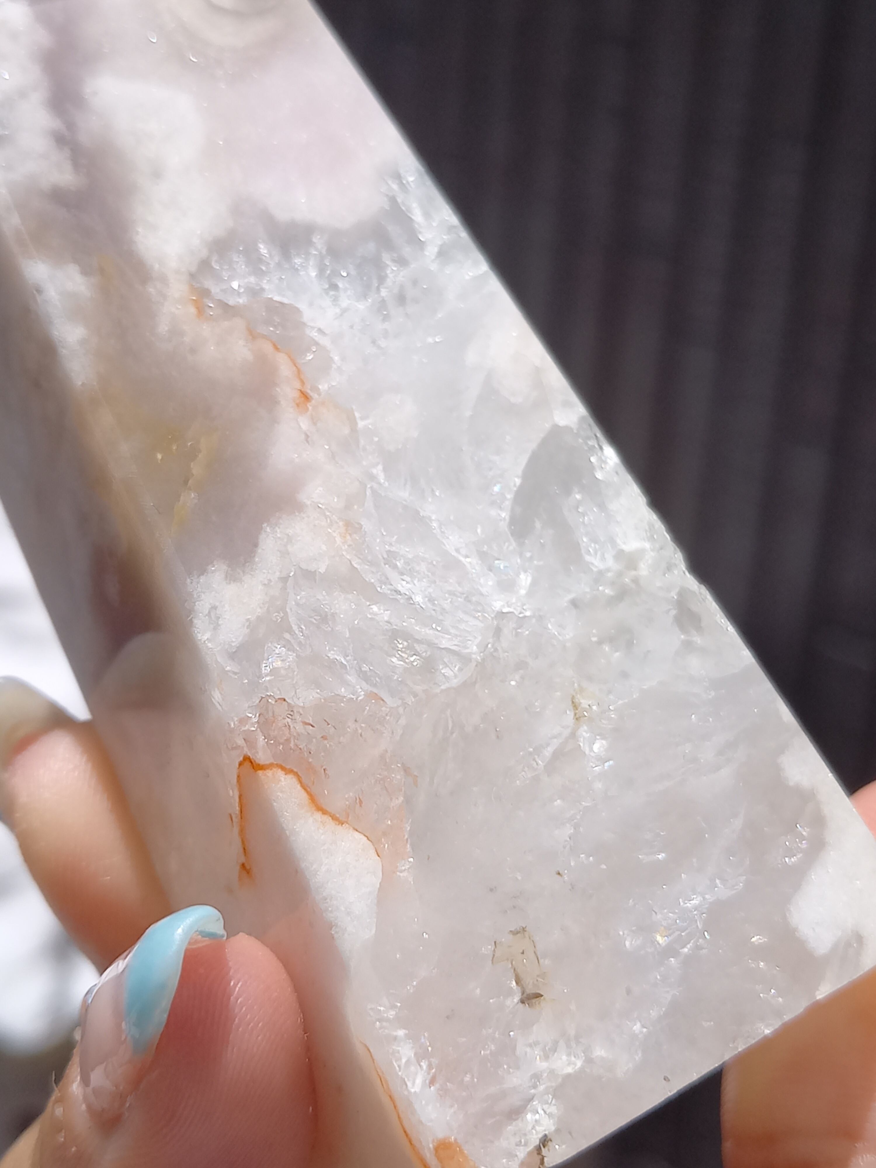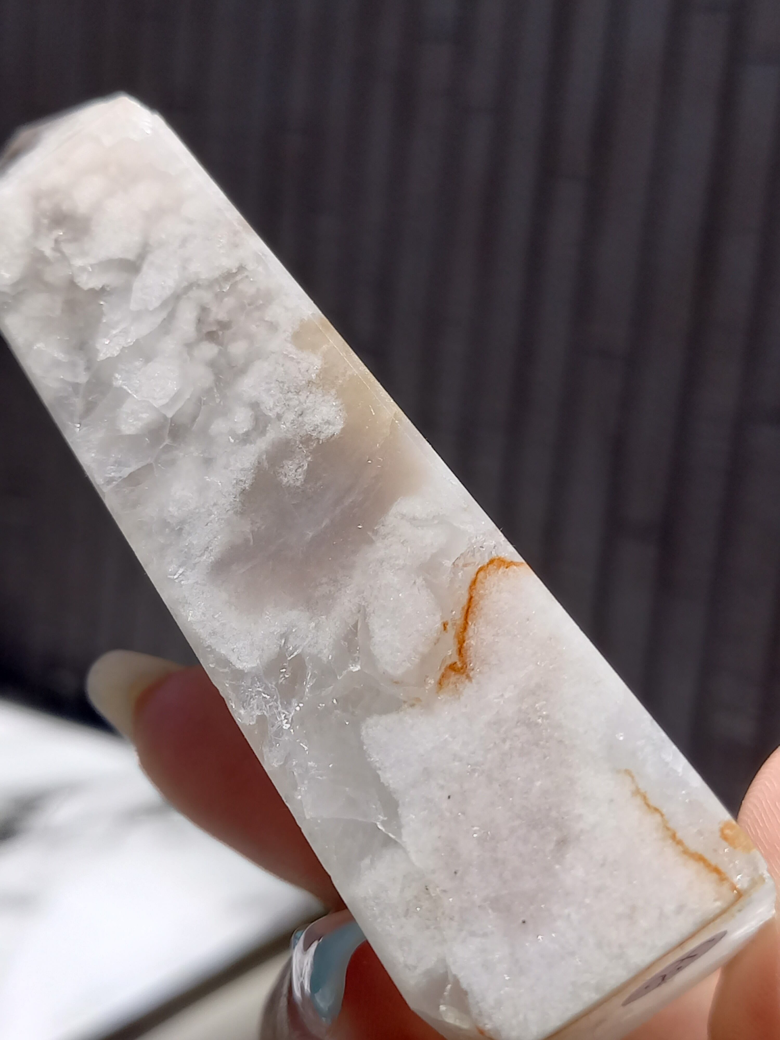 この子は、ザクザクな結晶がとても美しい子で、先端部分にパープルグレーカラーがスッと入った美しい子です。