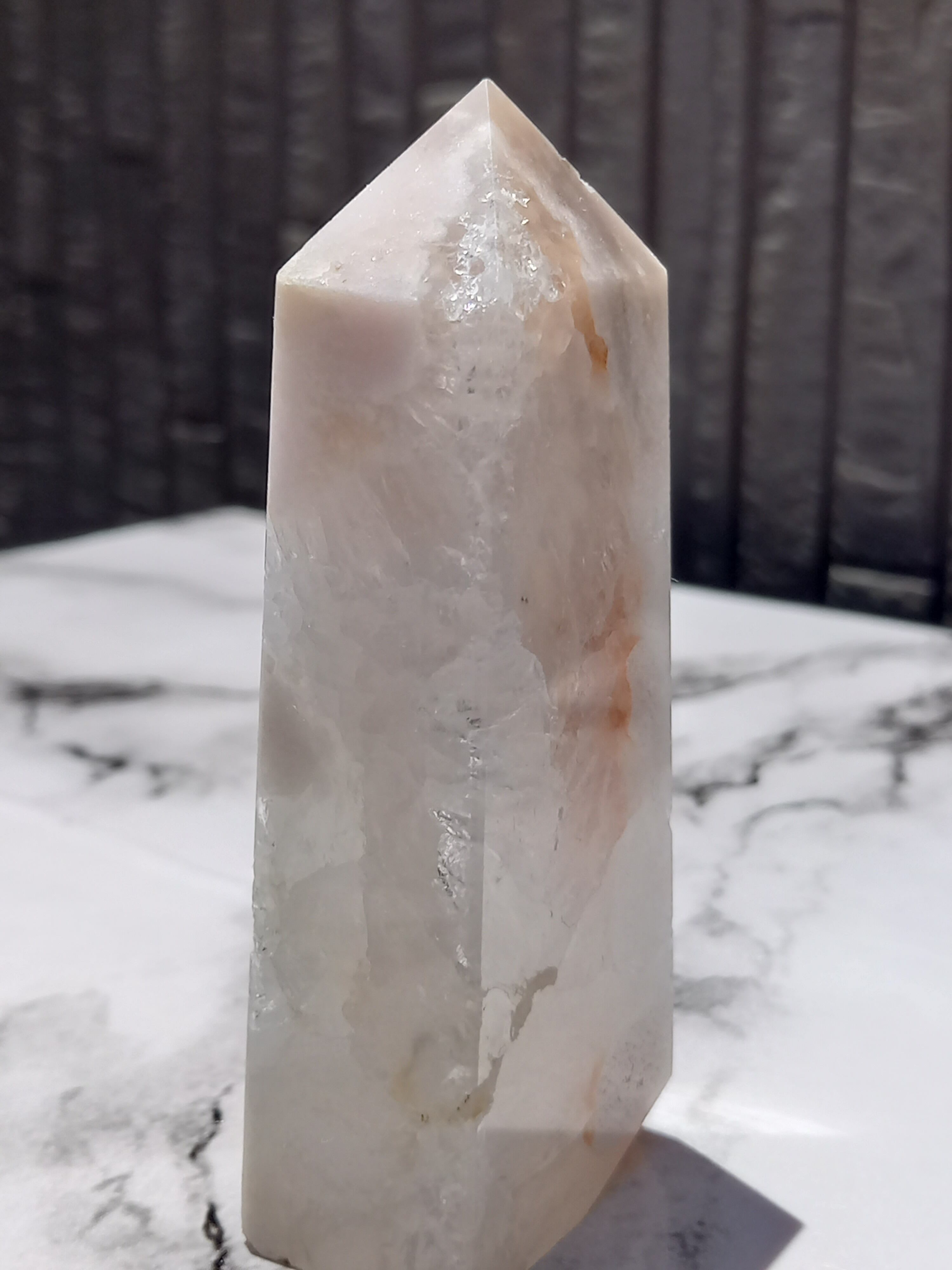 ピンクアメジストに、フラワーアゲートが共生したポイントタワーになります。