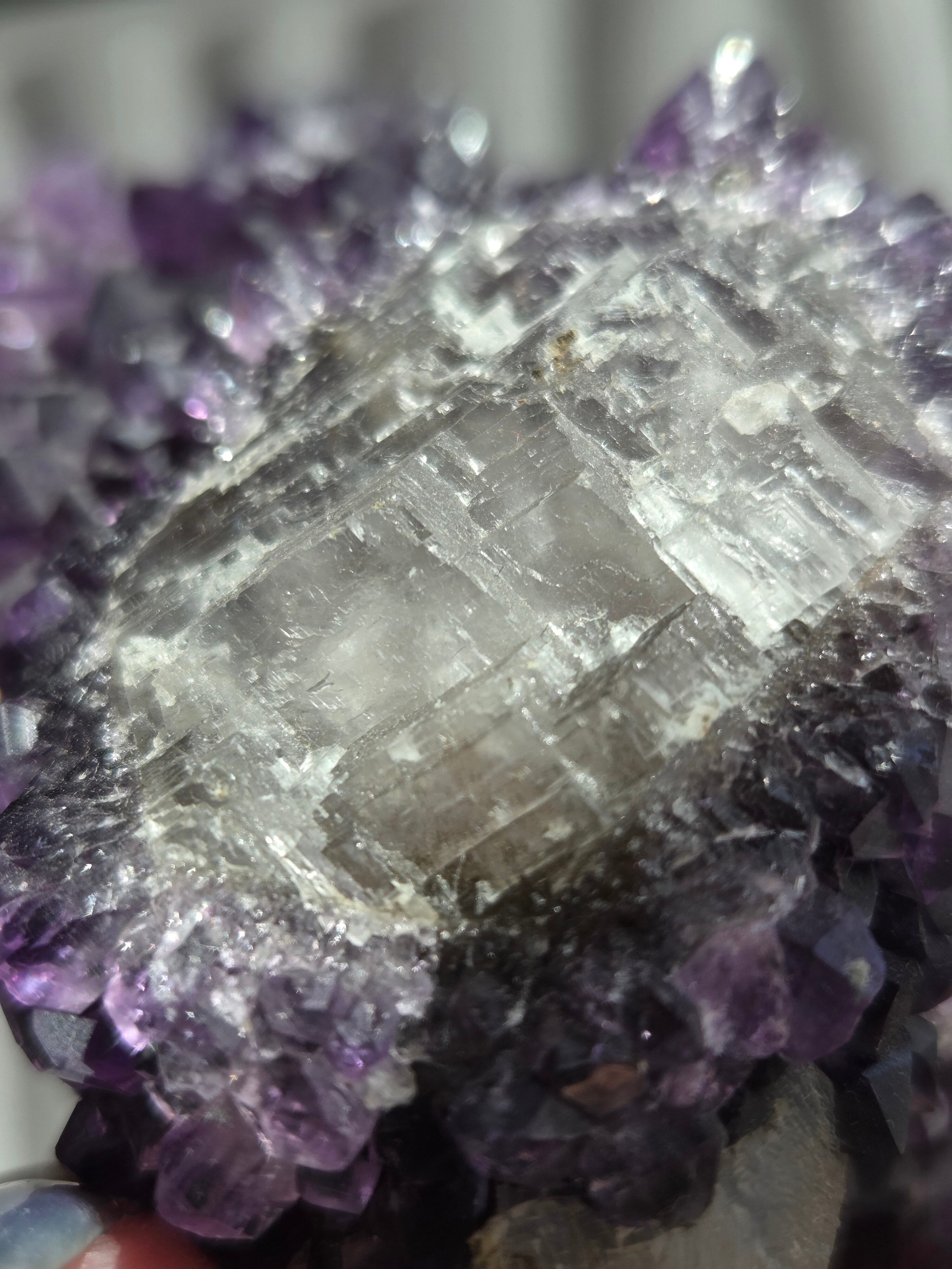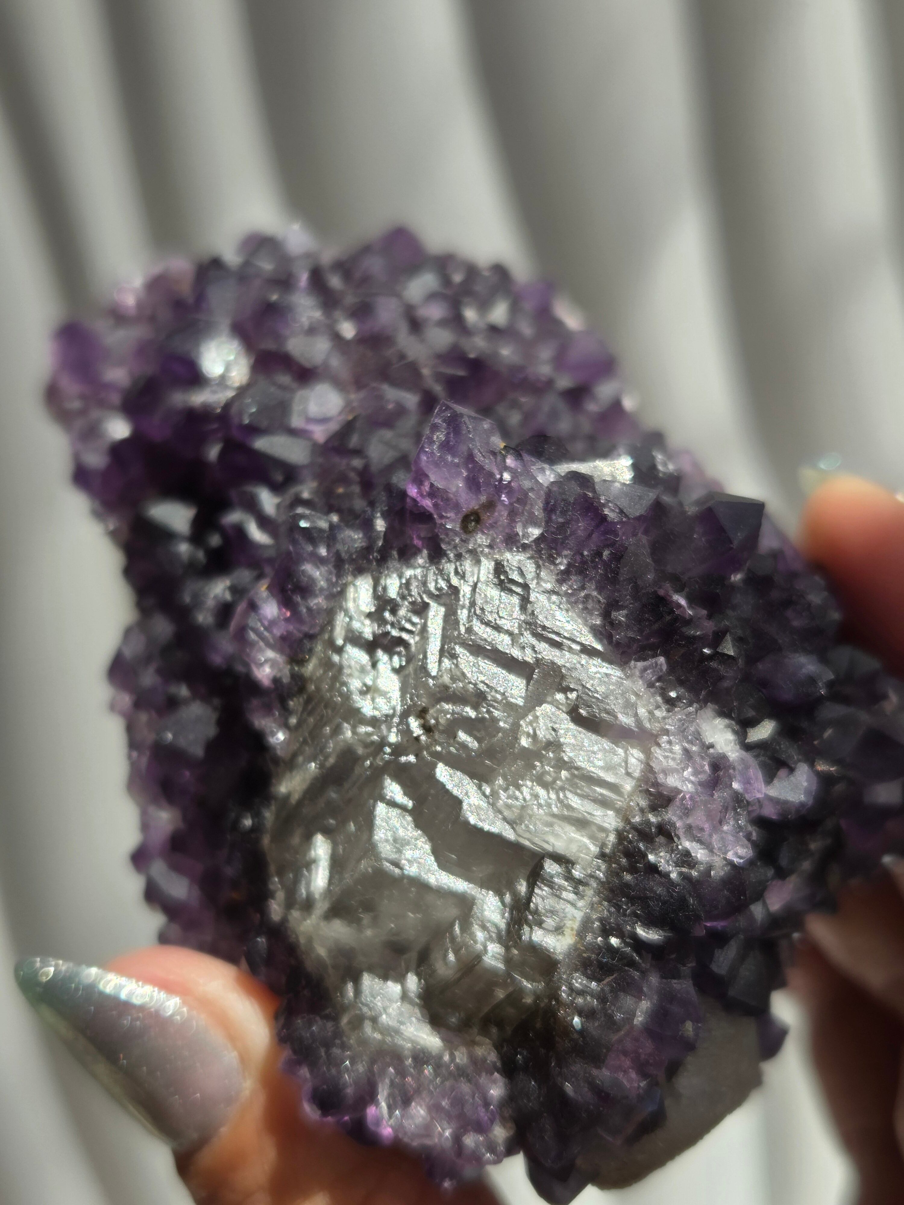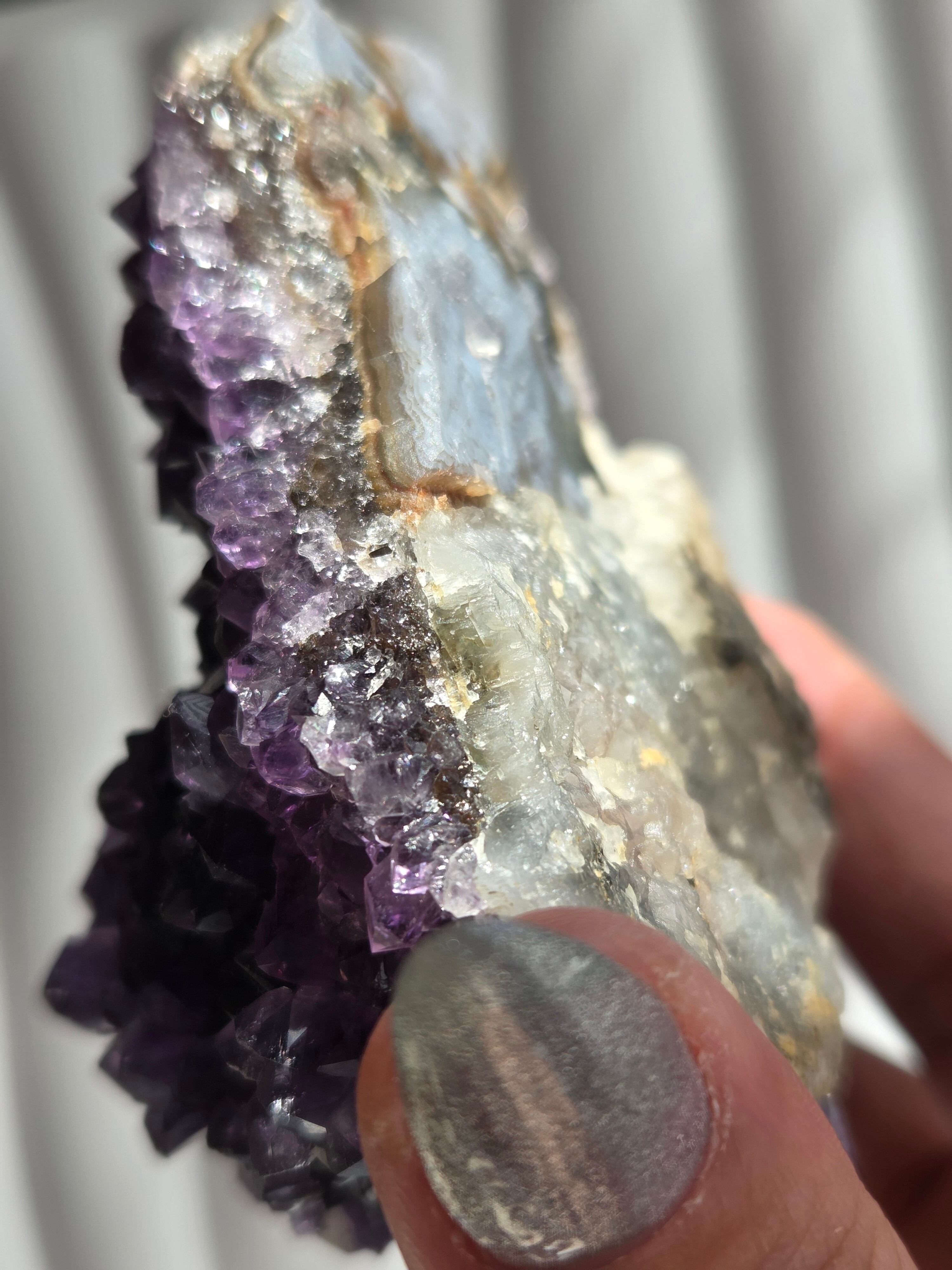 アメジストの色も濃いく、中に虹も見られます。