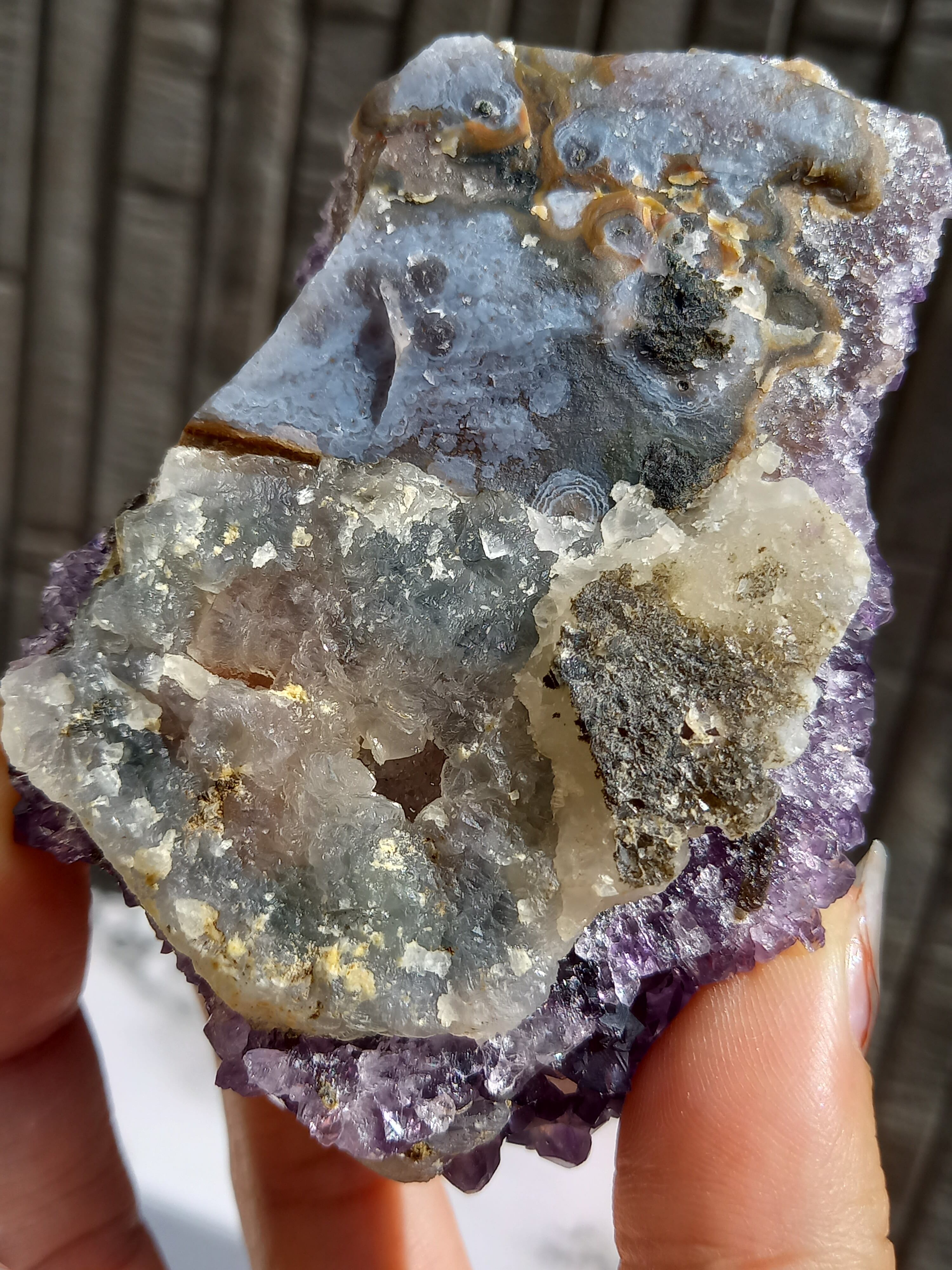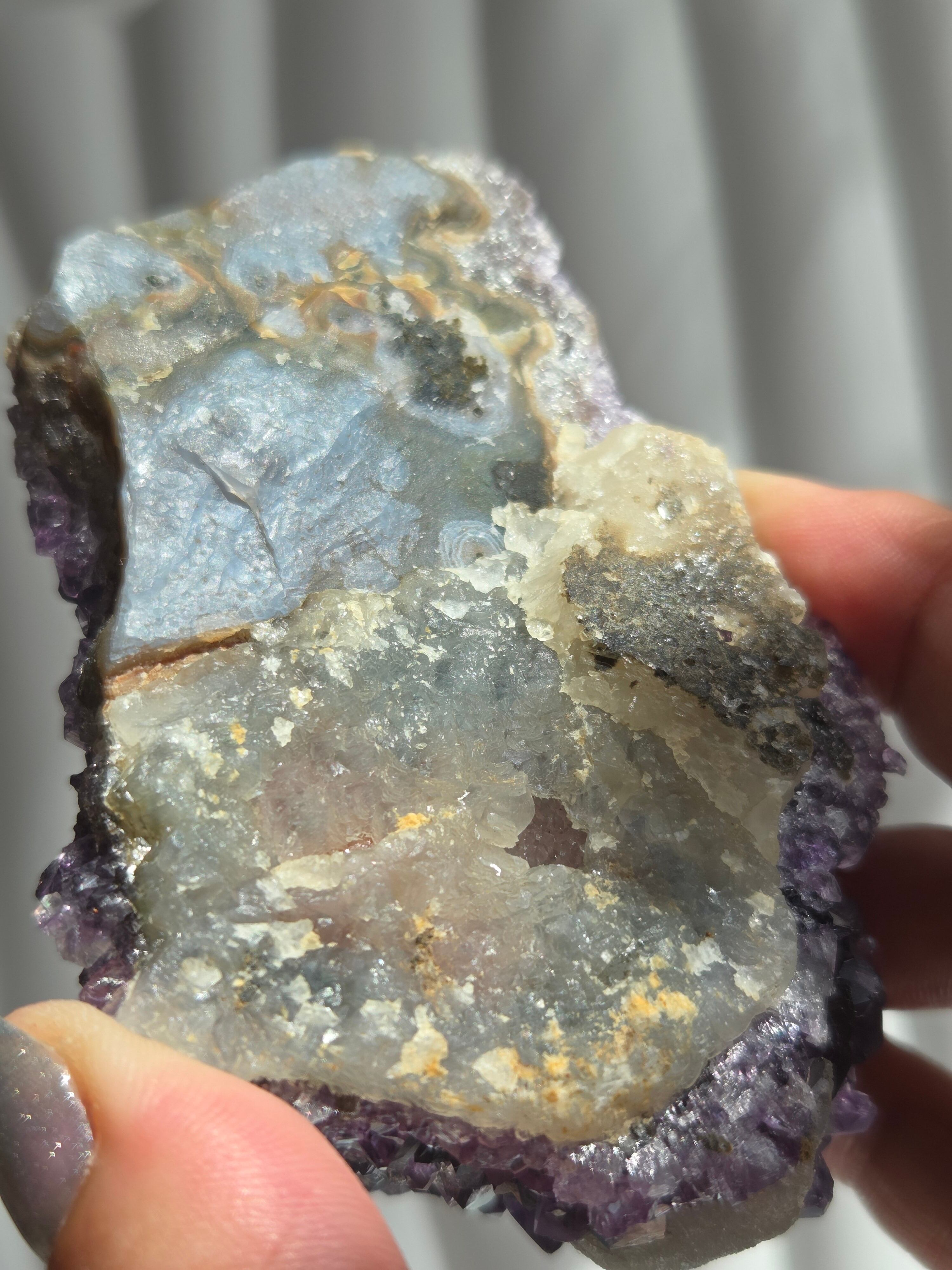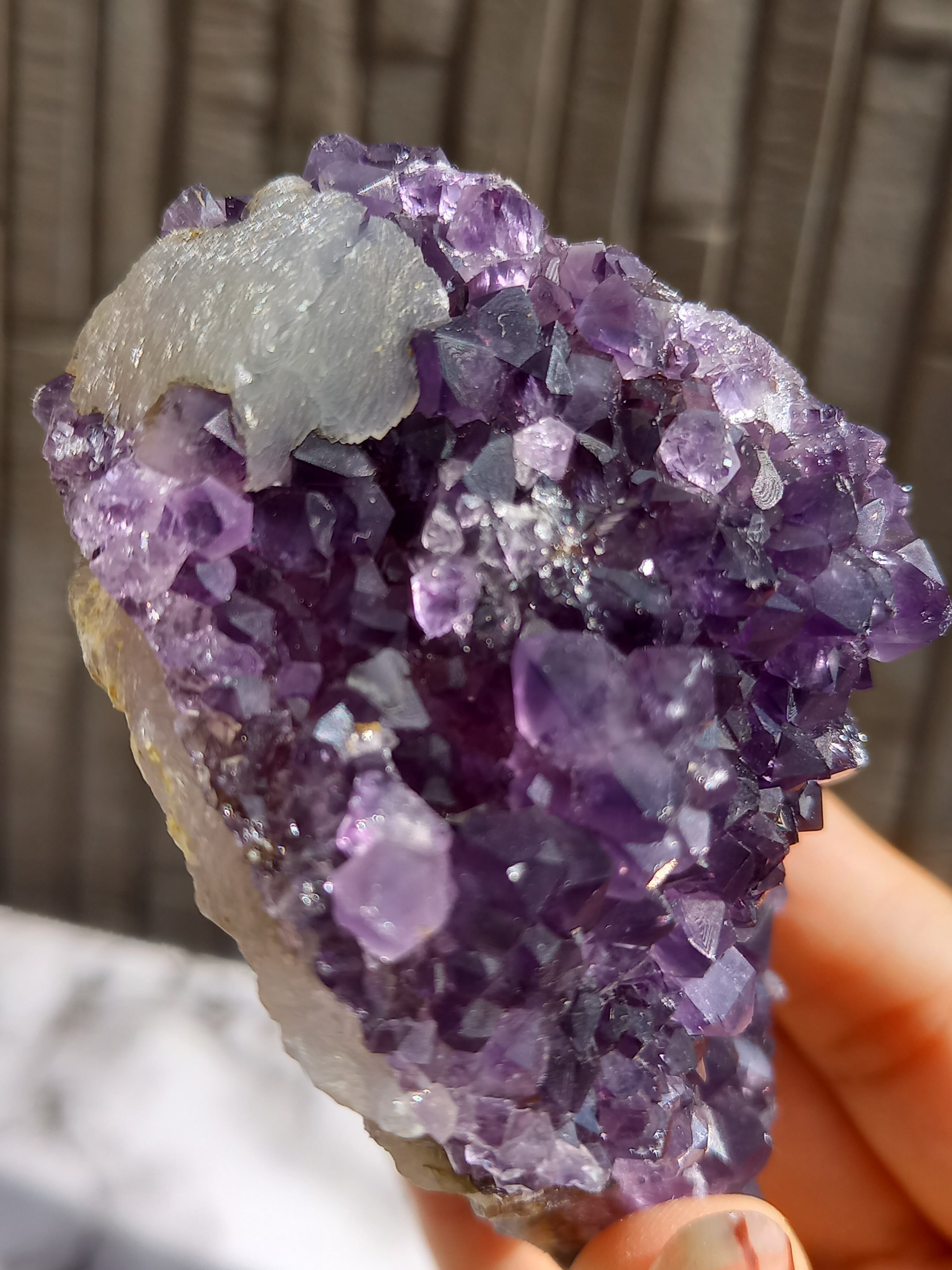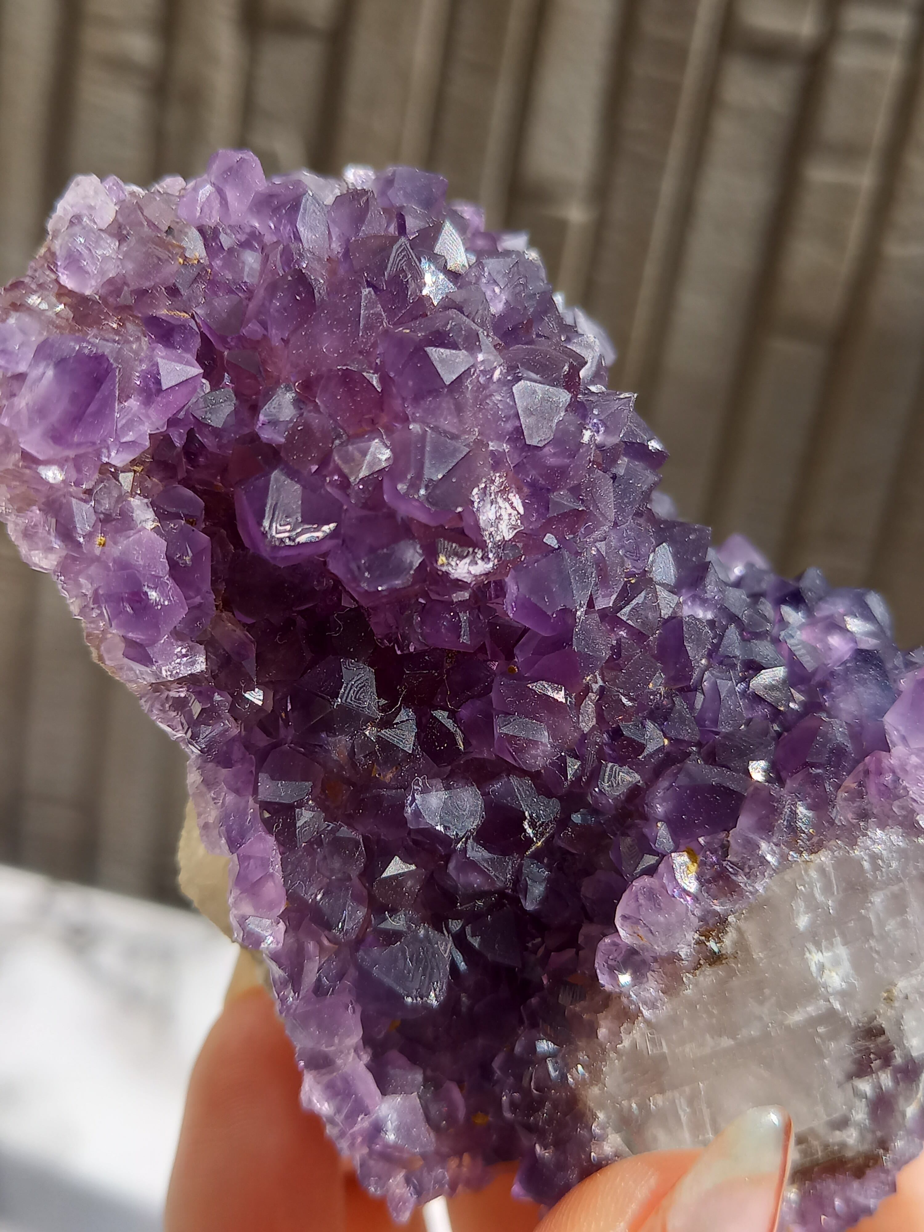 アメジストの色も濃いく、中に虹も見られます。