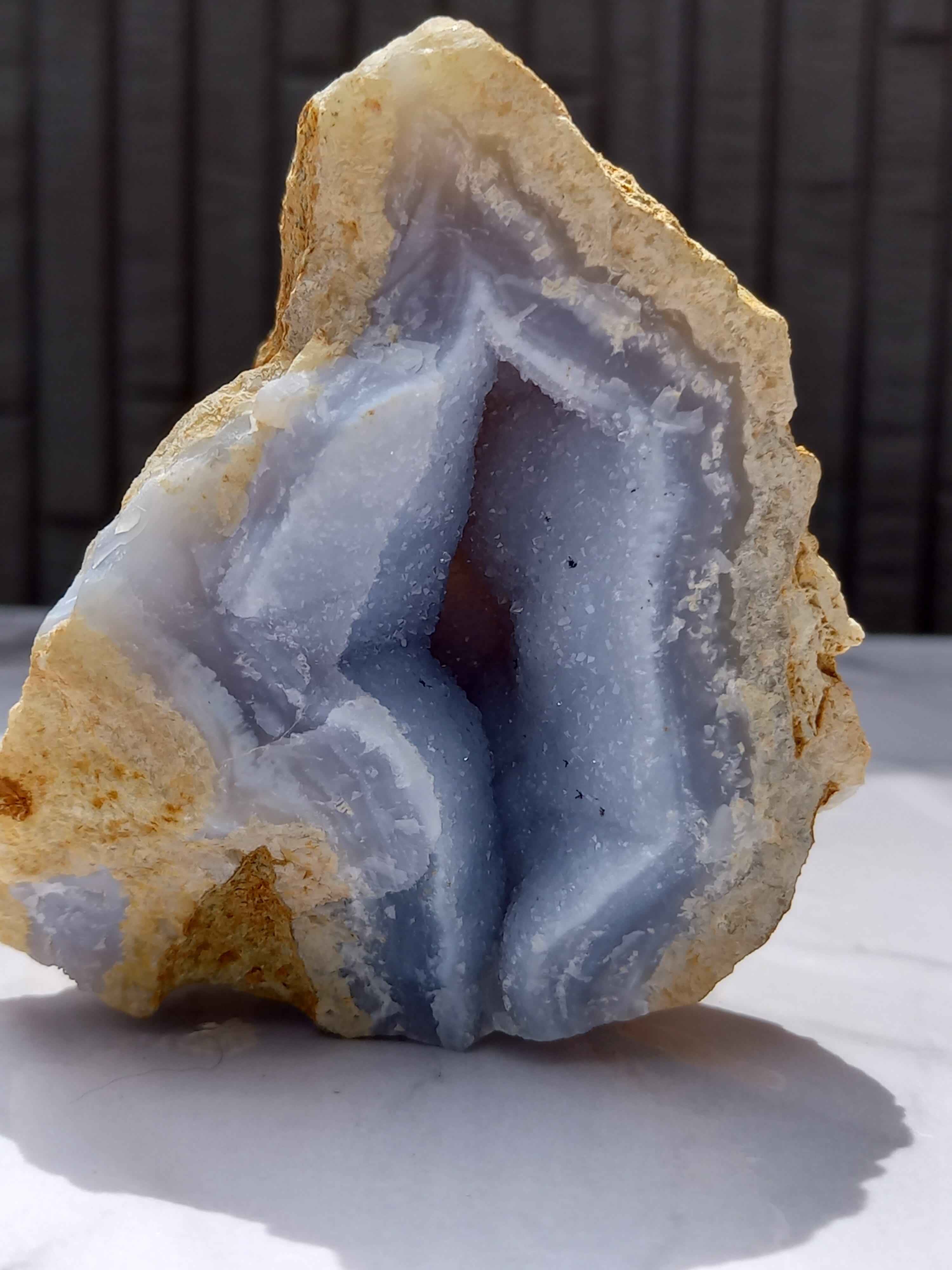 ブルーアゲートは、気持ちを落ち着かせる石といわれています。 また、考察力や発想力を高めるため、集中力を発揮したい場面にもぴったりです。 さらに、古代チベットでは「神の石」としても扱われていた言い伝えがあり、あらゆる危険を回避するためのお守りとしても使われていました。