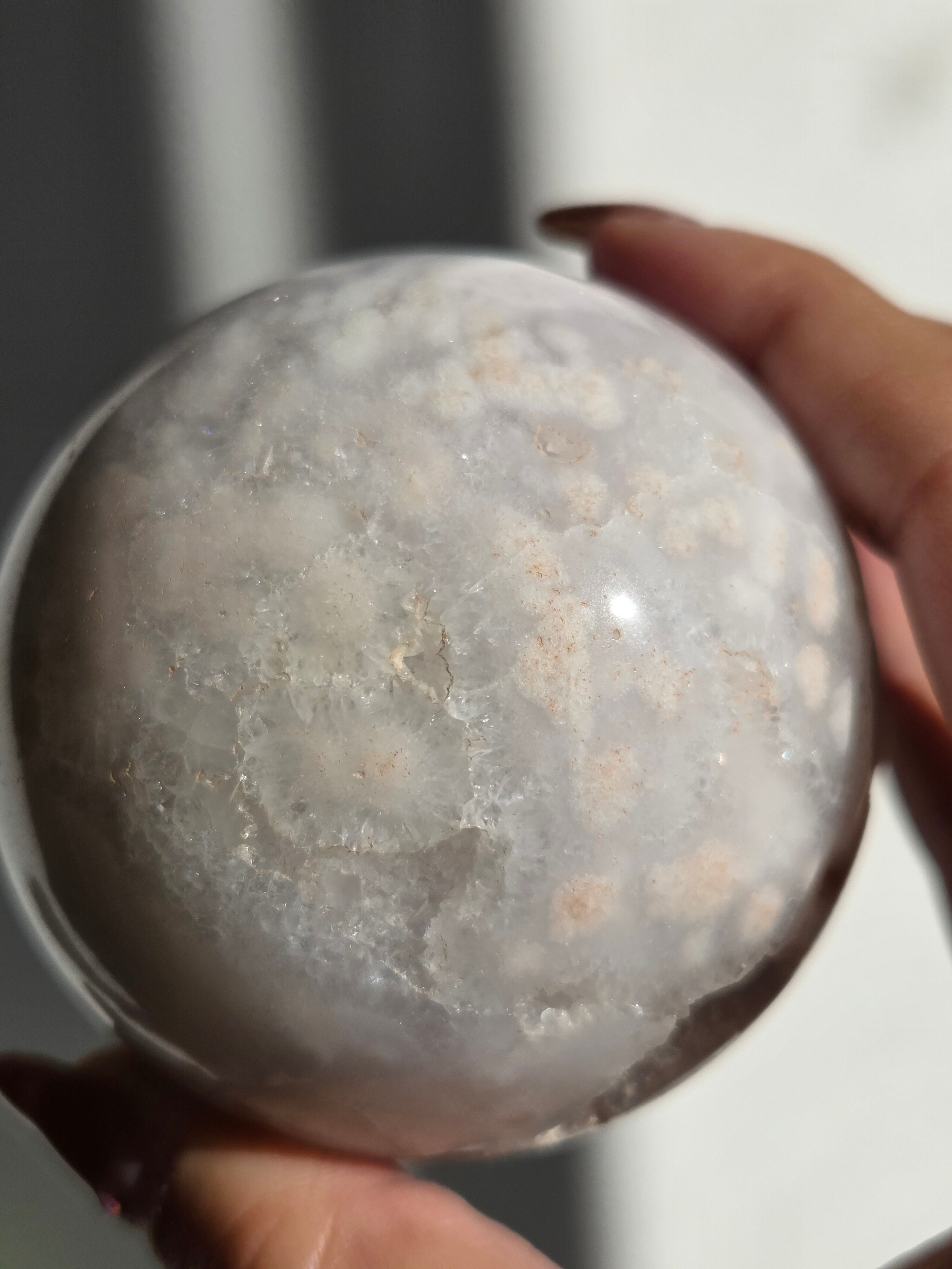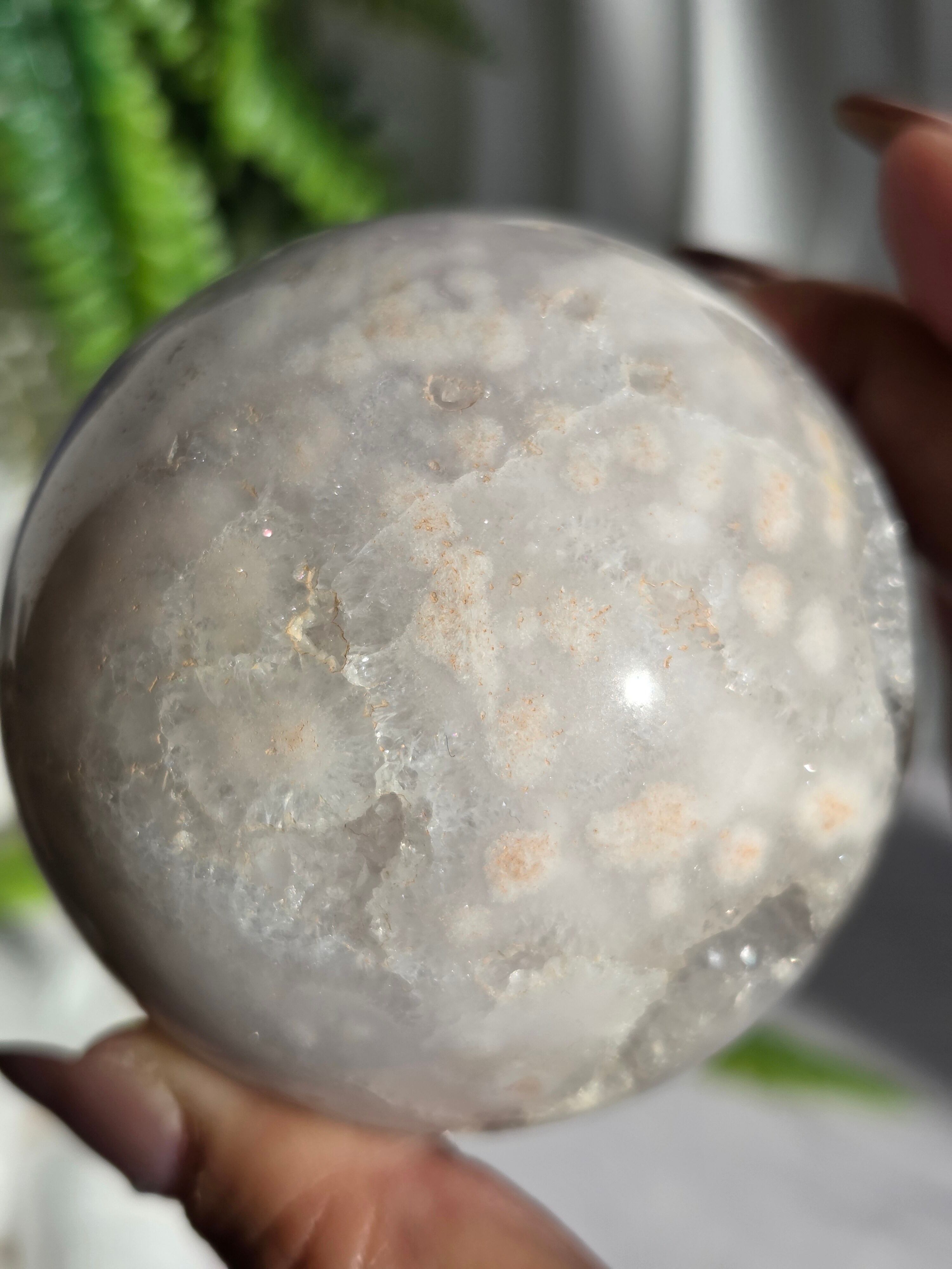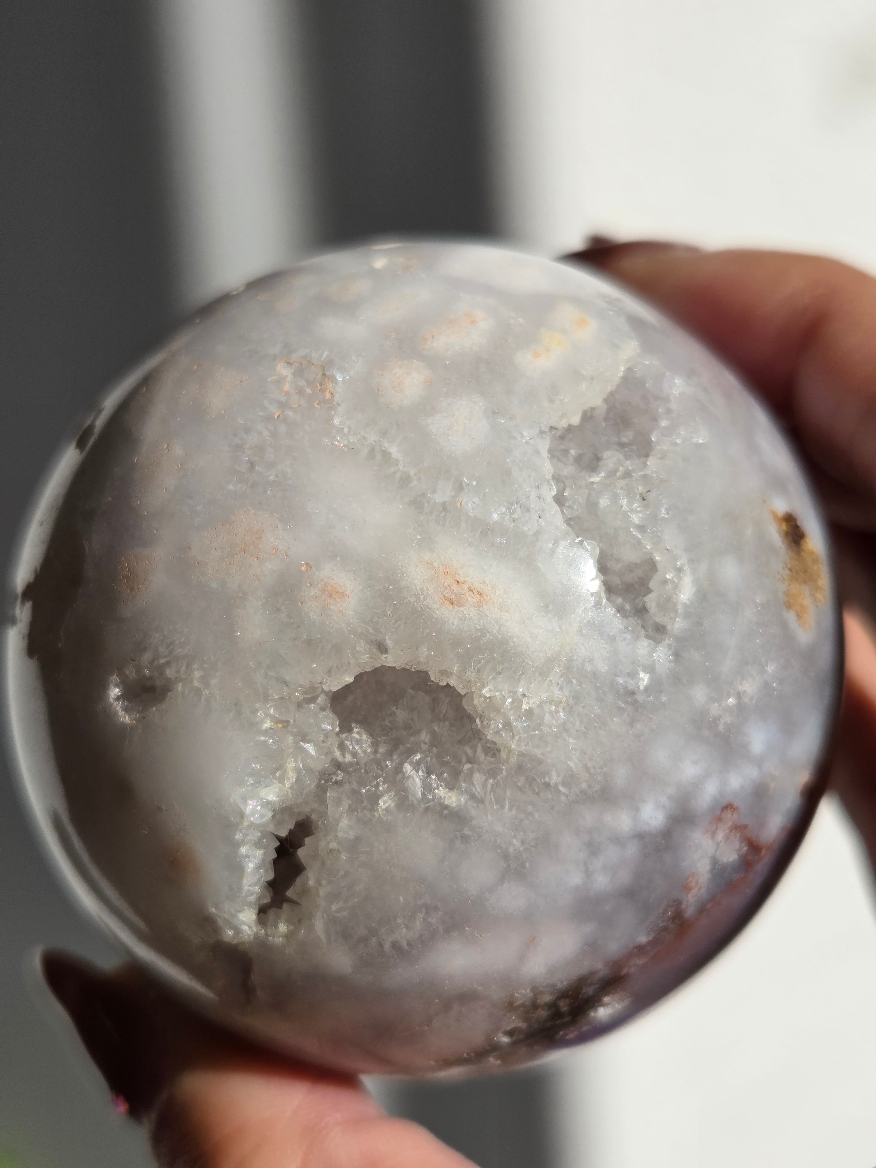 ピンクアメジスト共生フラワーアゲートスフィアです。