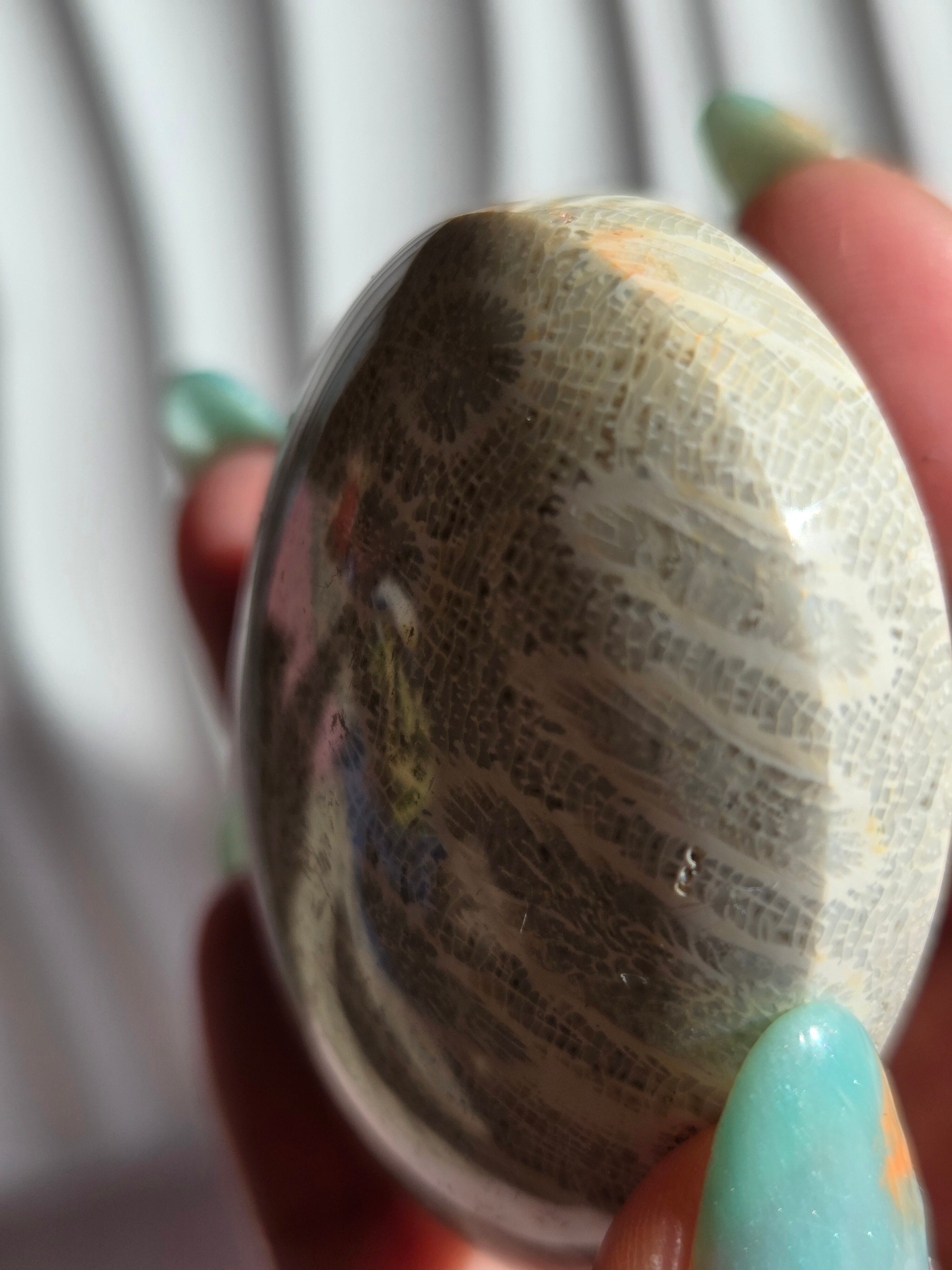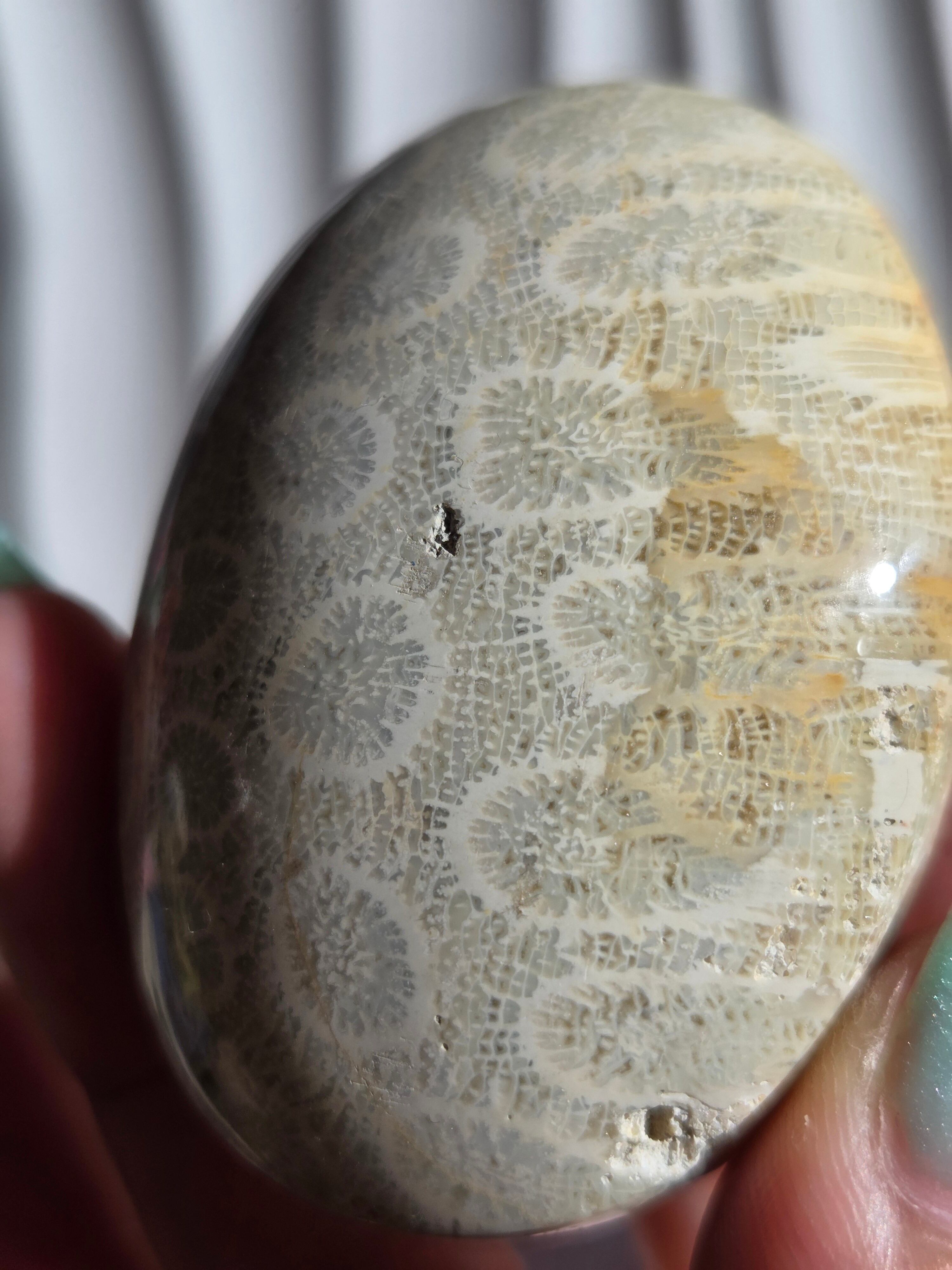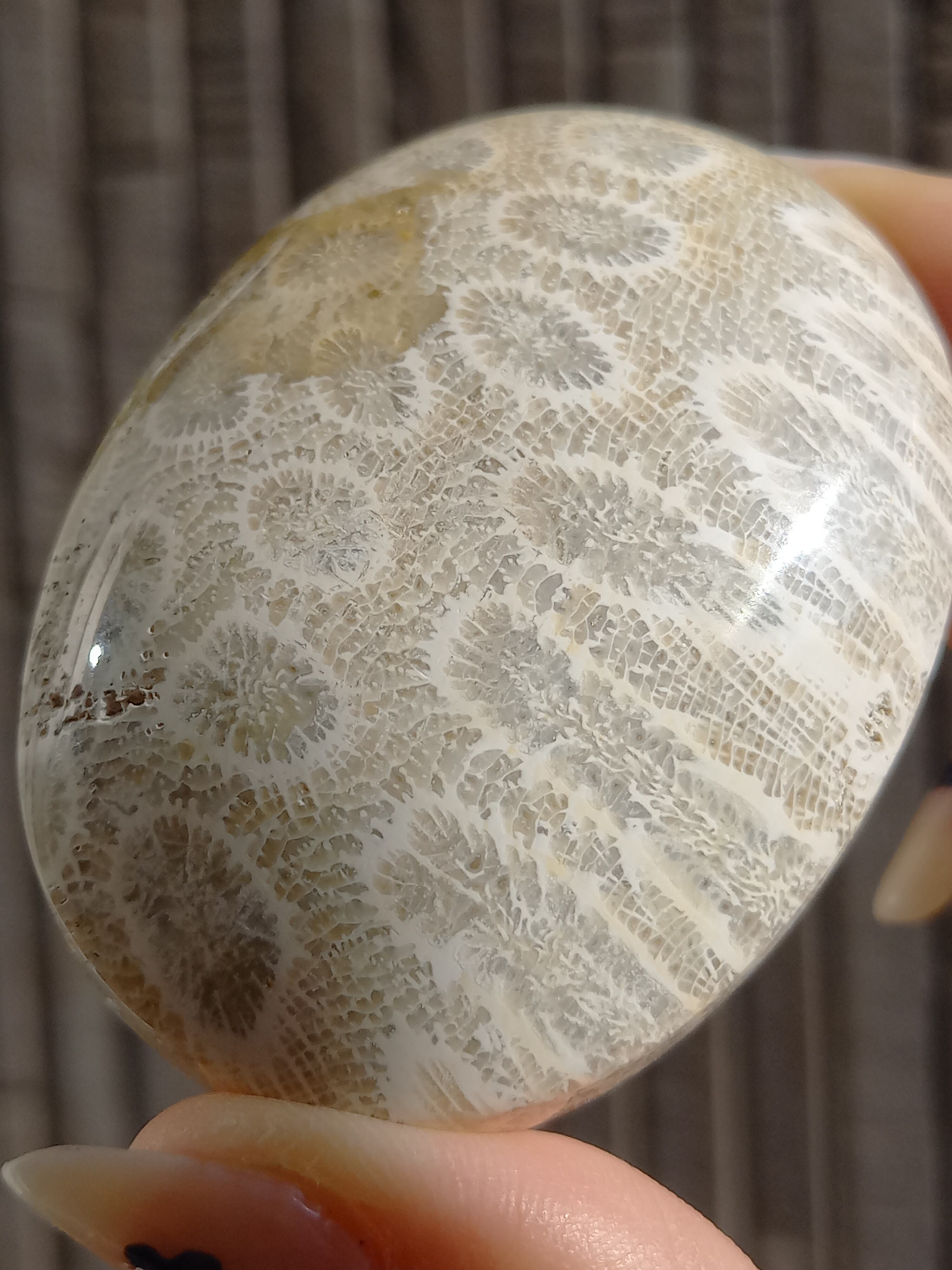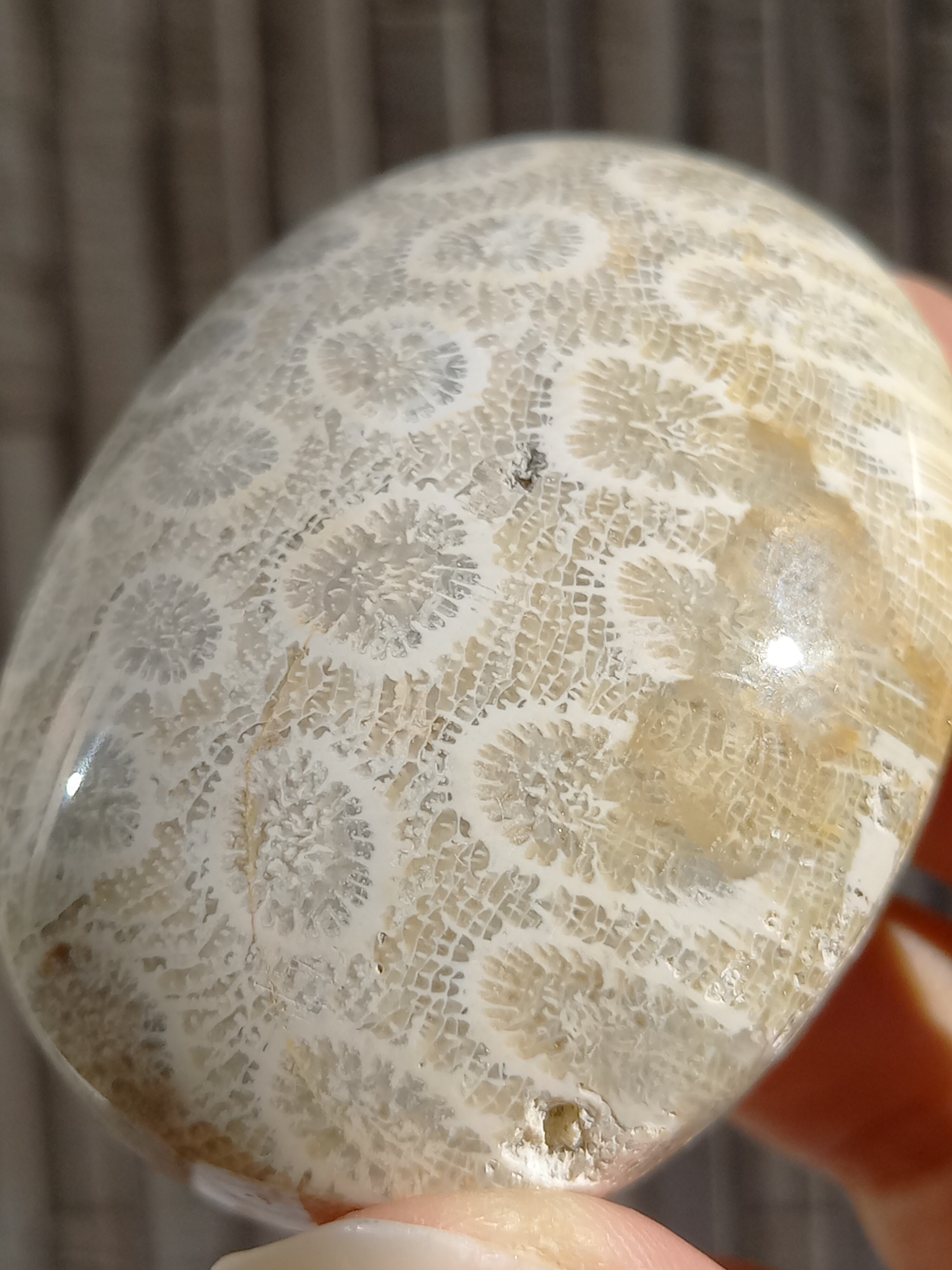 フォシルコーラル(化石珊瑚)は長い時間をかけてクォーツが浸透し、化石となった珊瑚です。 菊の花のような特徴的な模様は、化石化したサンゴの断面に現れるもので、ペトリファイドコーラル・菊目石などとも呼ばれています。 コーラル(珊瑚)は様々な災いや邪気を払う、お守りとして優れた効果を発揮するといわれています。
